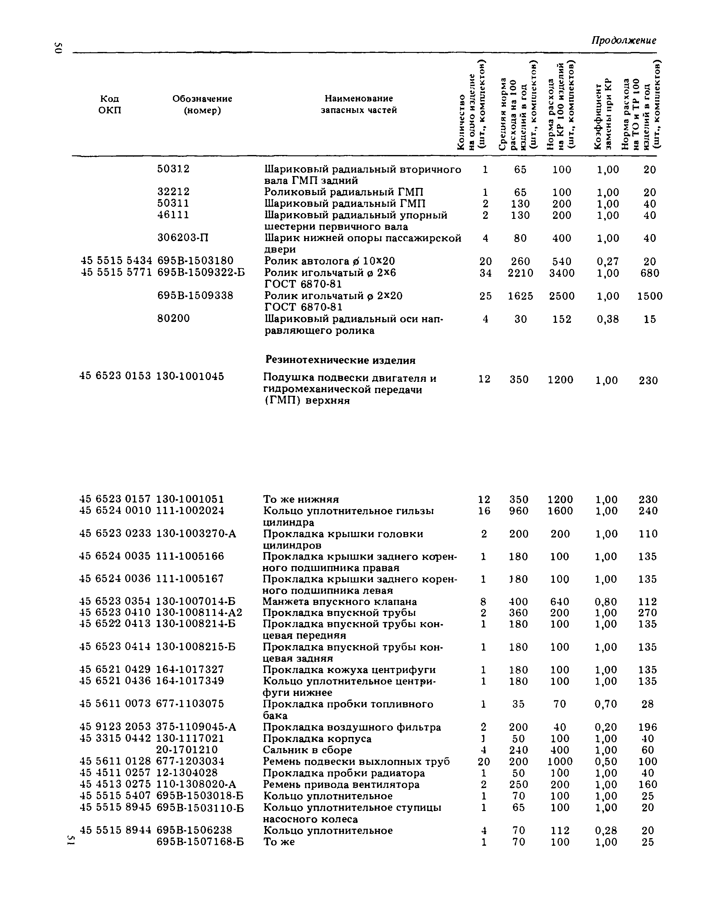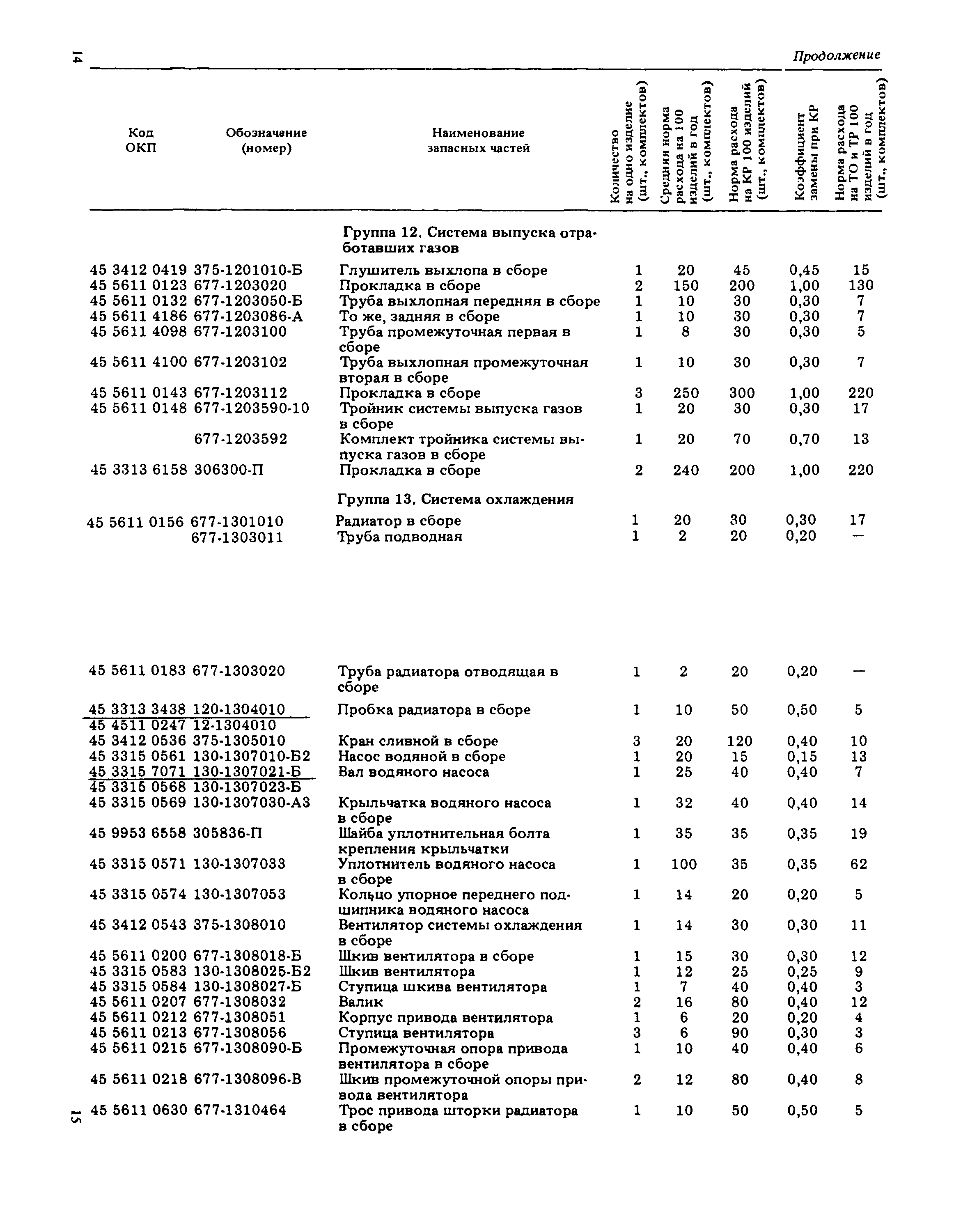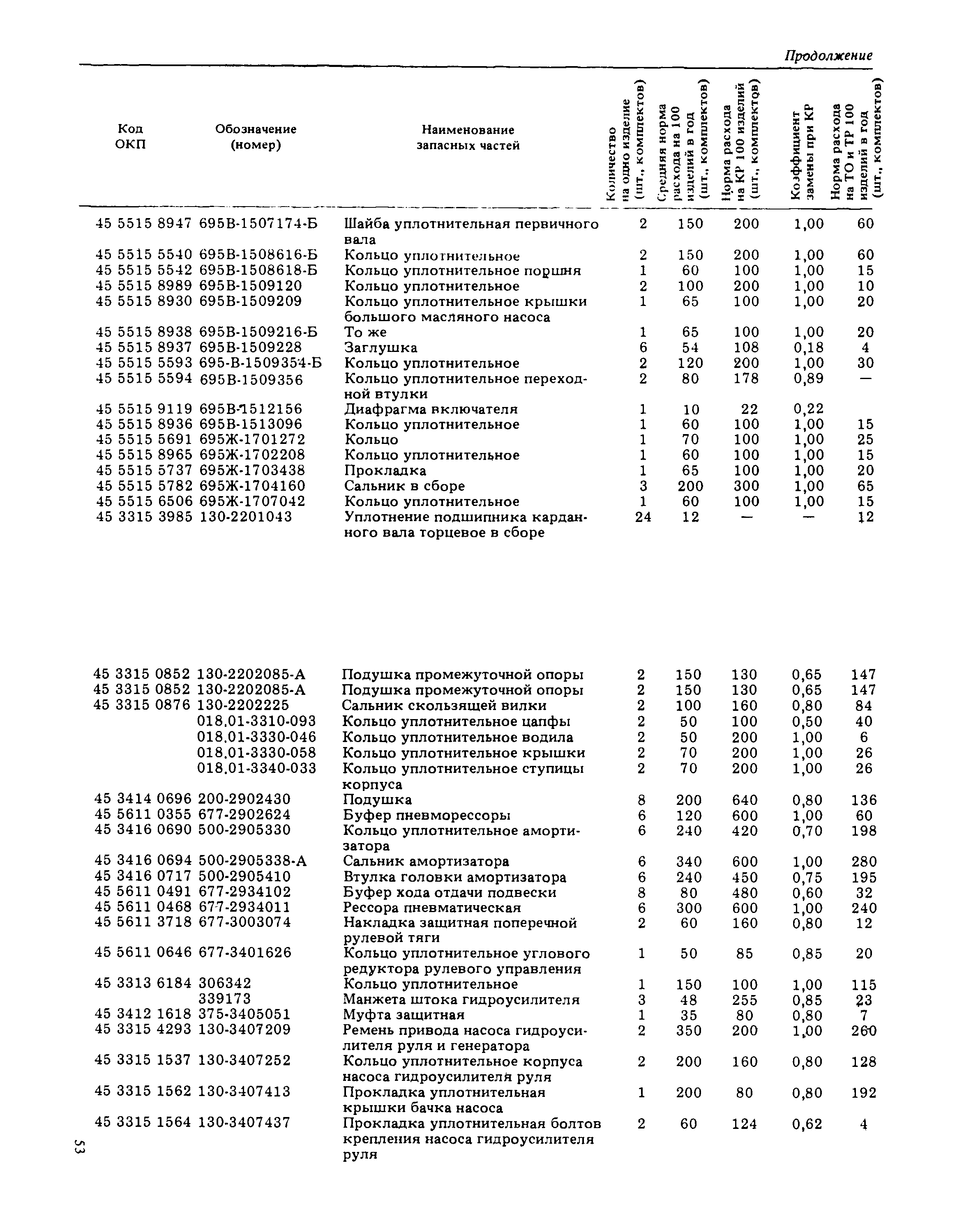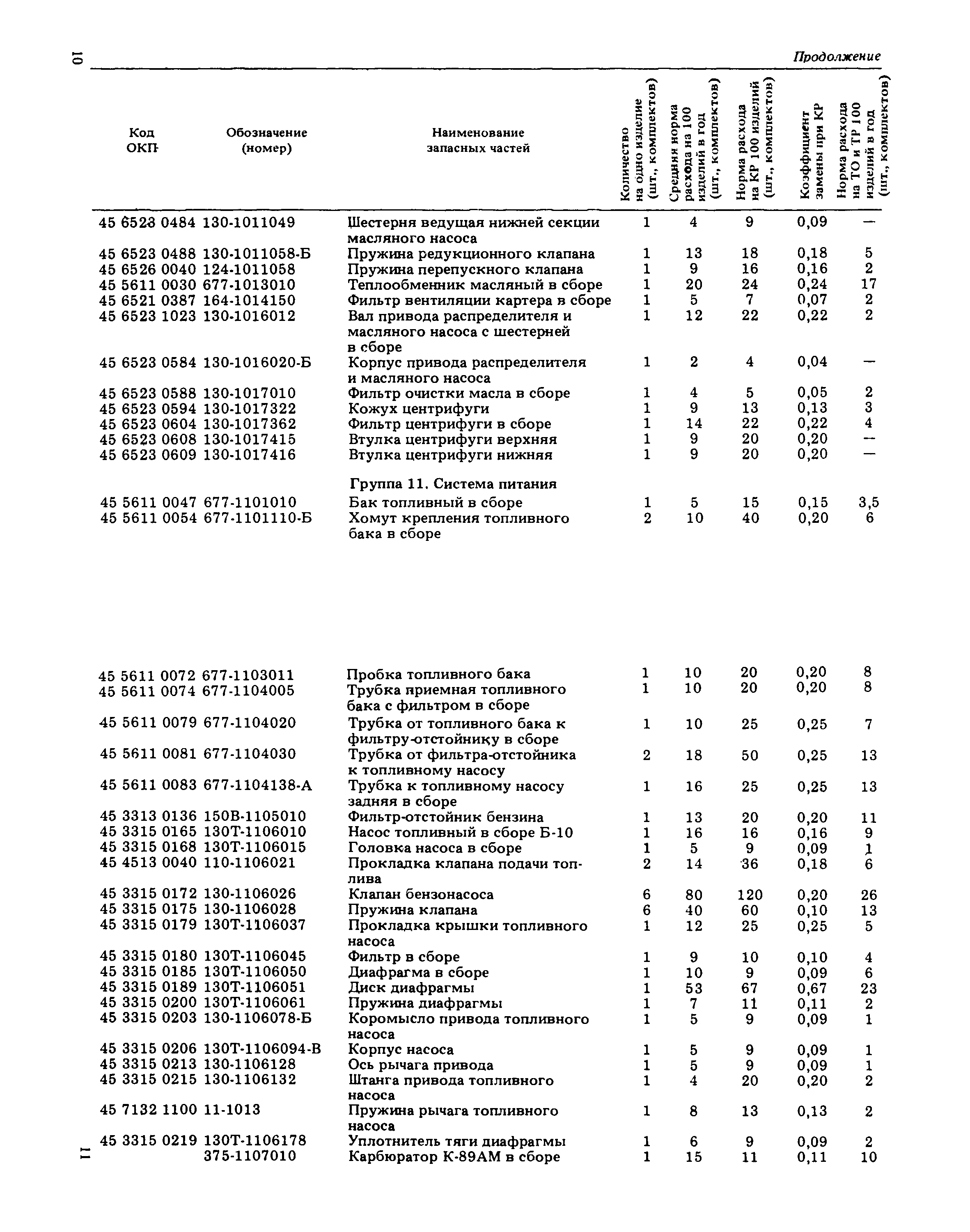 | Оглавление: | Группа 10. Двигатель Группа 11. Система питания Группа 12. Система выпуска отработавших газов Группа 13. Система охлаждения Группа 15 - 17. Передача гидромеханическая Группа 22. Валы карданные Группа 24. Мост задний Группа 29. Подвеска Группа 30. Ось передняя Группа 31. Колеса и ступицы Группа 34. Управление рулевое Группа 35. Тормоза Группа 37. Электрооборудование Группа 38. Приборы Группы 53 - 82. Кузов Подшипники качения, шарики и ролики Резинотехнические изделия Шланги Детали из асбеста Изделия из прессованной пробки Детали из пластмассы Детали из войлока Картонно-бумажные и паронитовые изделия Детали из стекла Изделия из хлопчатобумажных материалов |