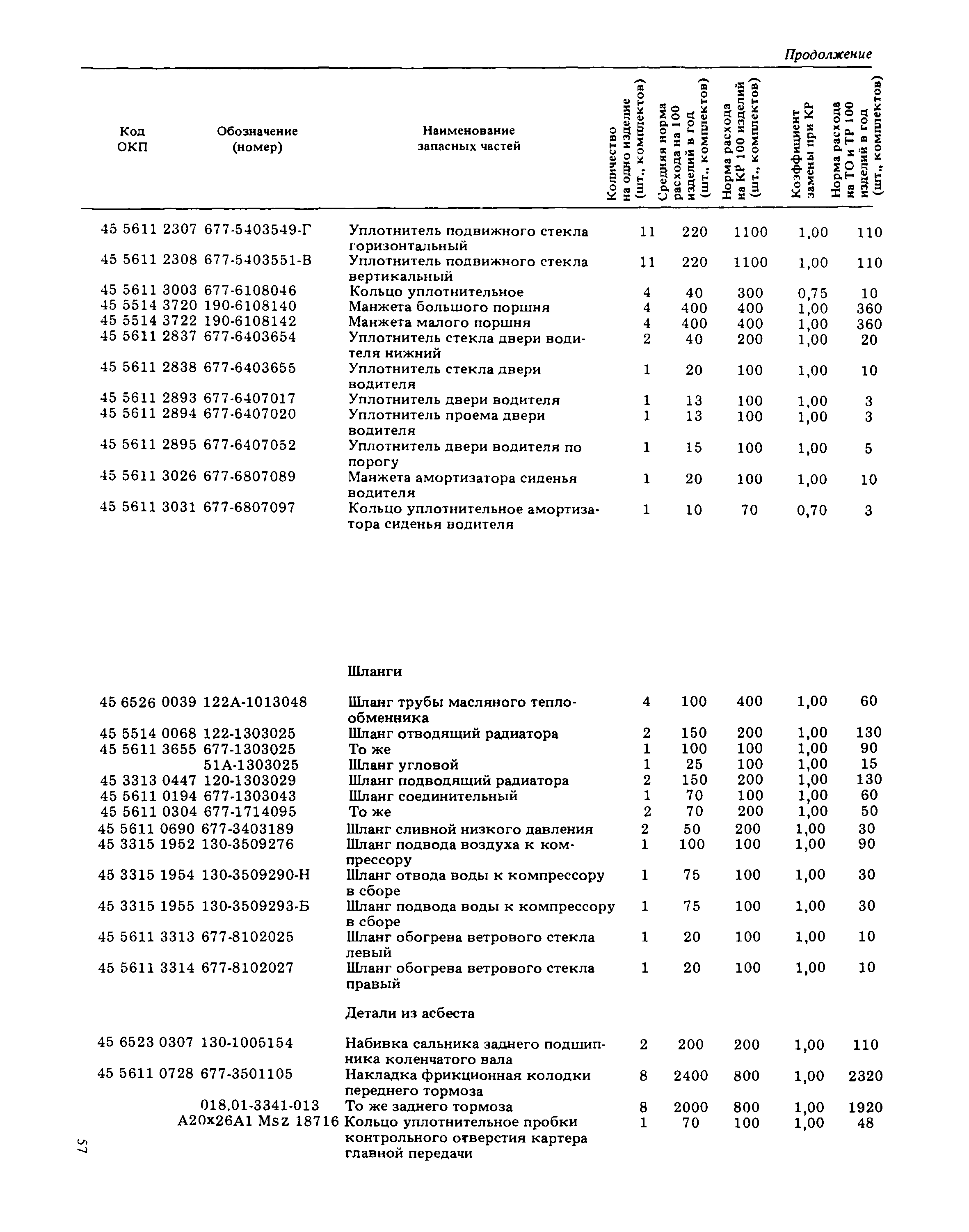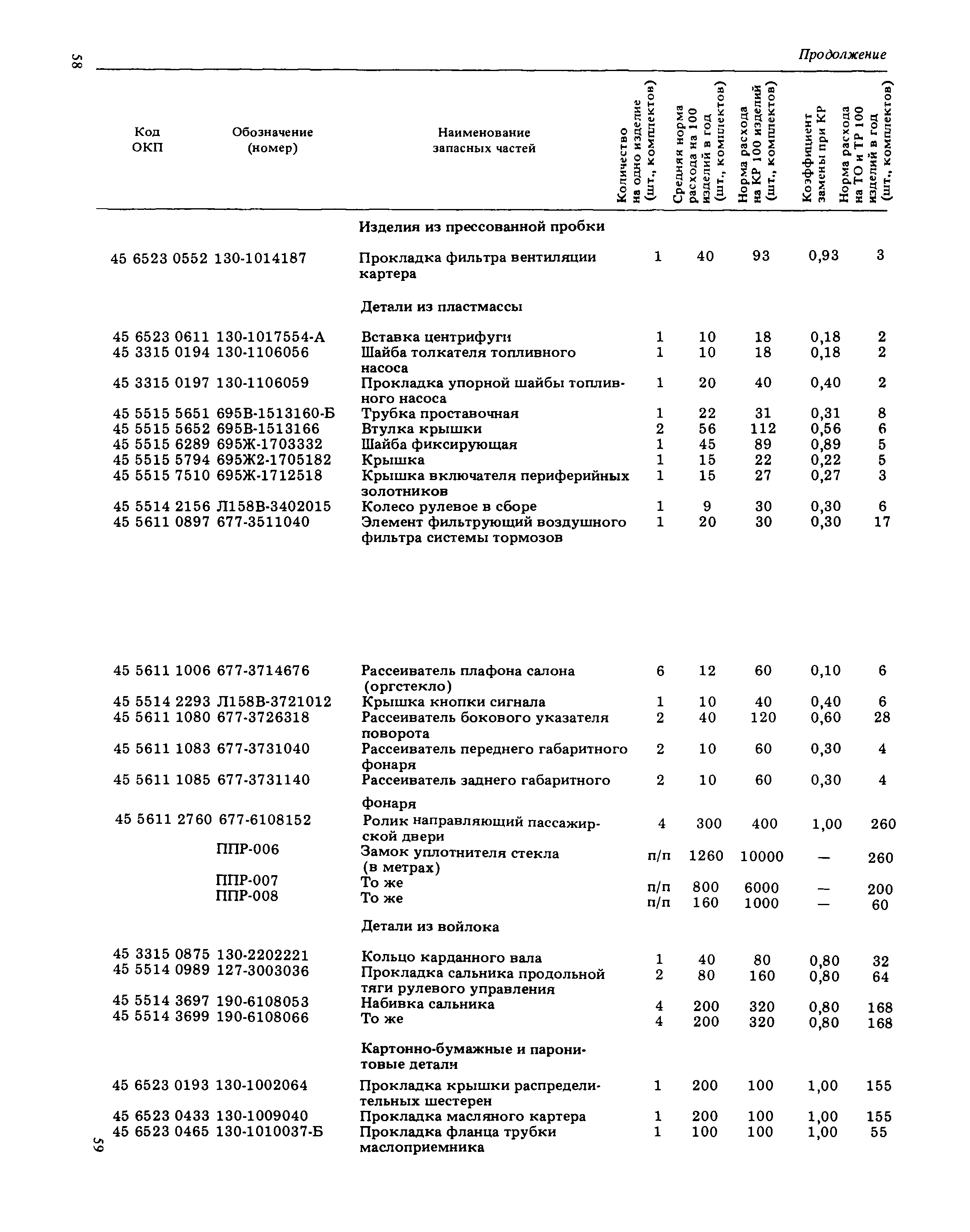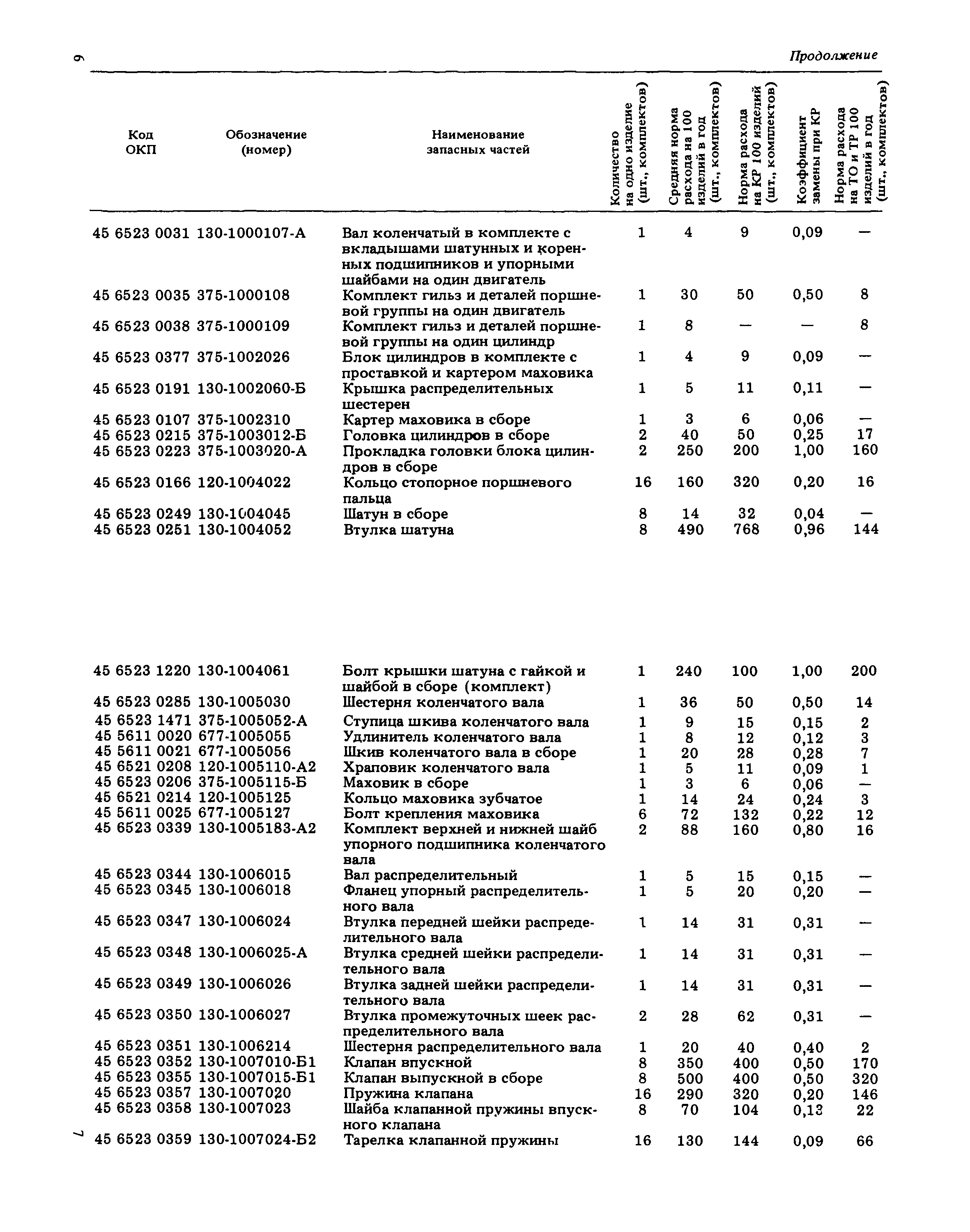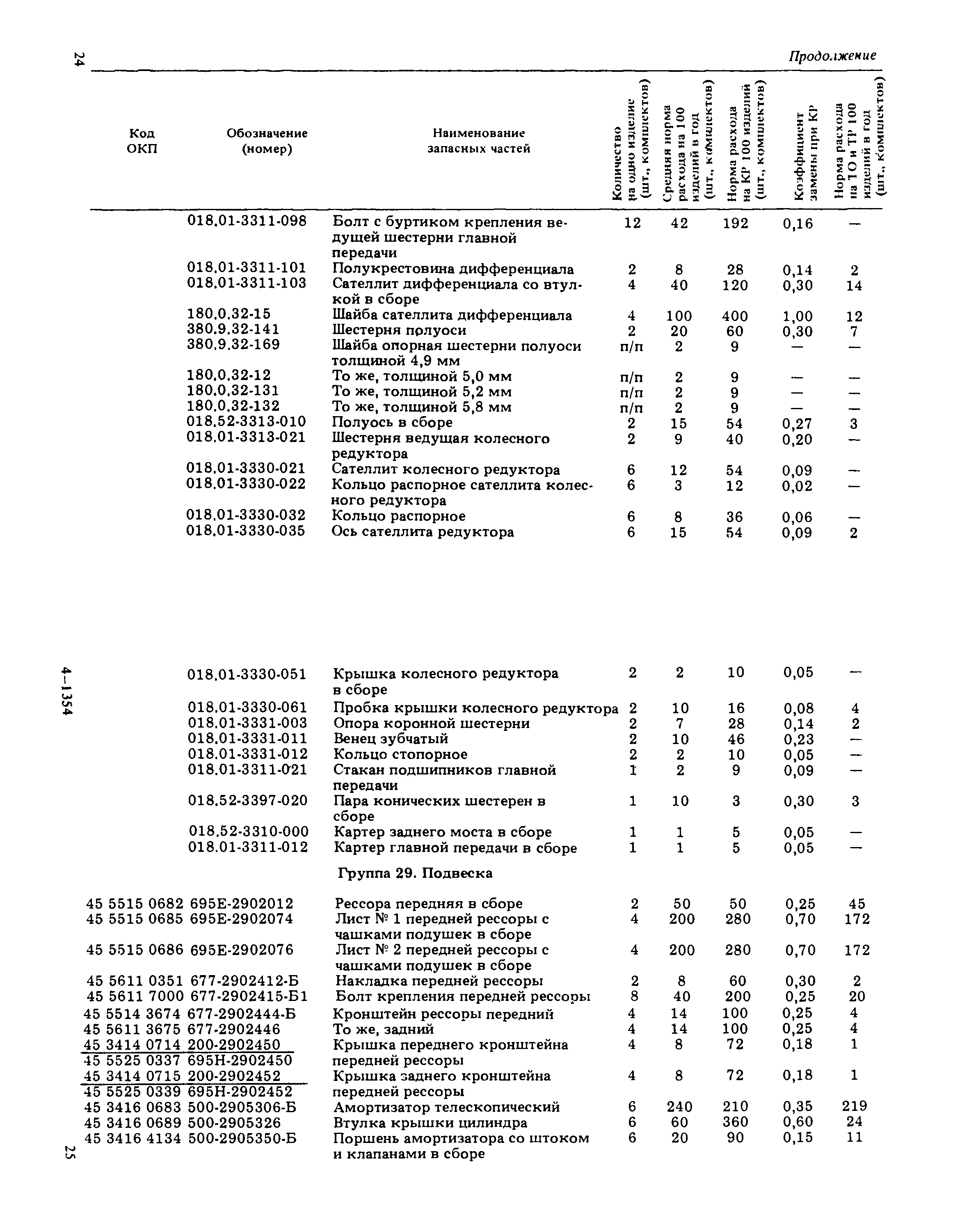 | Оглавление: | Группа 10. Двигатель Группа 11. Система питания Группа 12. Система выпуска отработавших газов Группа 13. Система охлаждения Группа 15 - 17. Передача гидромеханическая Группа 22. Валы карданные Группа 24. Мост задний Группа 29. Подвеска Группа 30. Ось передняя Группа 31. Колеса и ступицы Группа 34. Управление рулевое Группа 35. Тормоза Группа 37. Электрооборудование Группа 38. Приборы Группы 53 - 82. Кузов Подшипники качения, шарики и ролики Резинотехнические изделия Шланги Детали из асбеста Изделия из прессованной пробки Детали из пластмассы Детали из войлока Картонно-бумажные и паронитовые изделия Детали из стекла Изделия из хлопчатобумажных материалов |