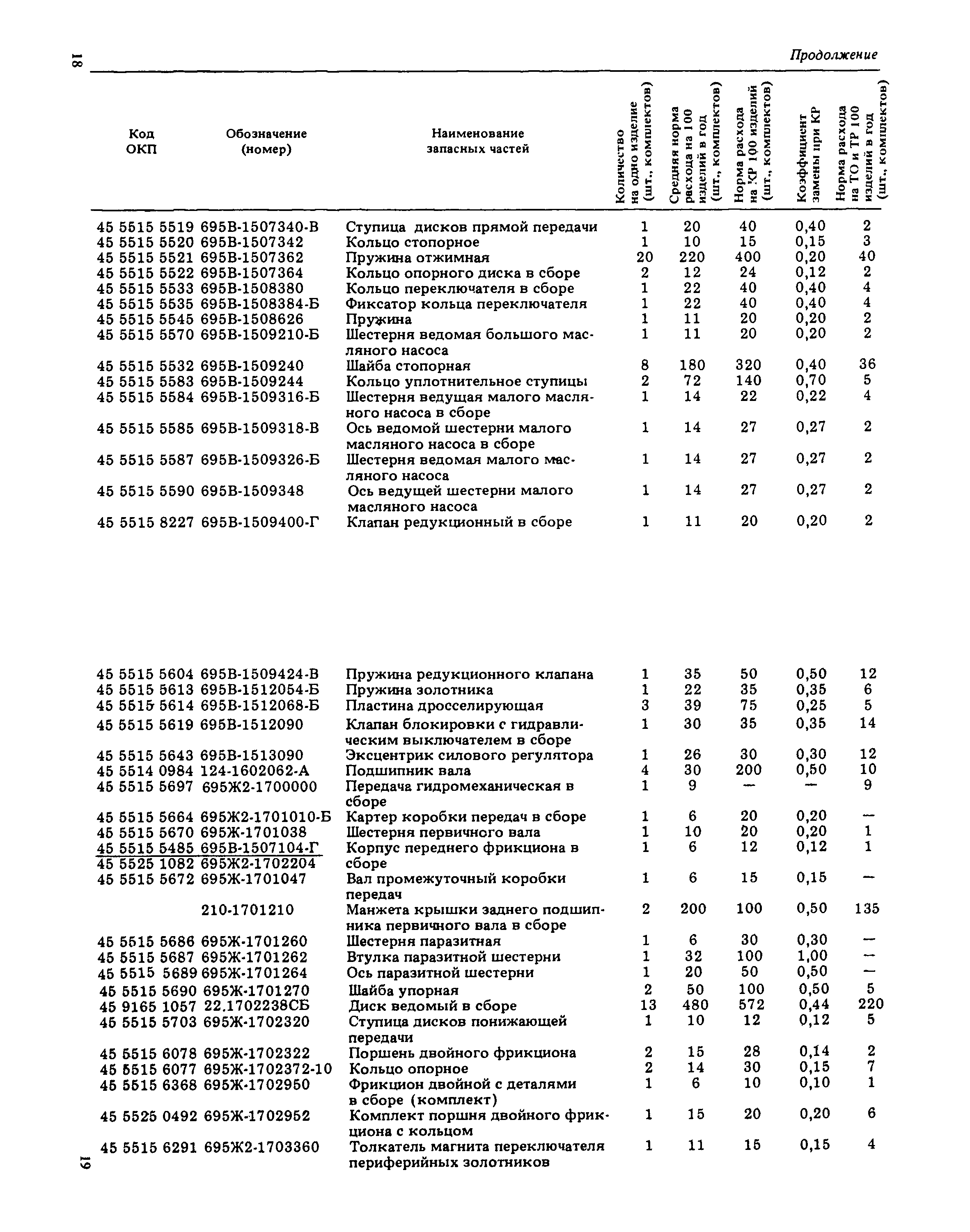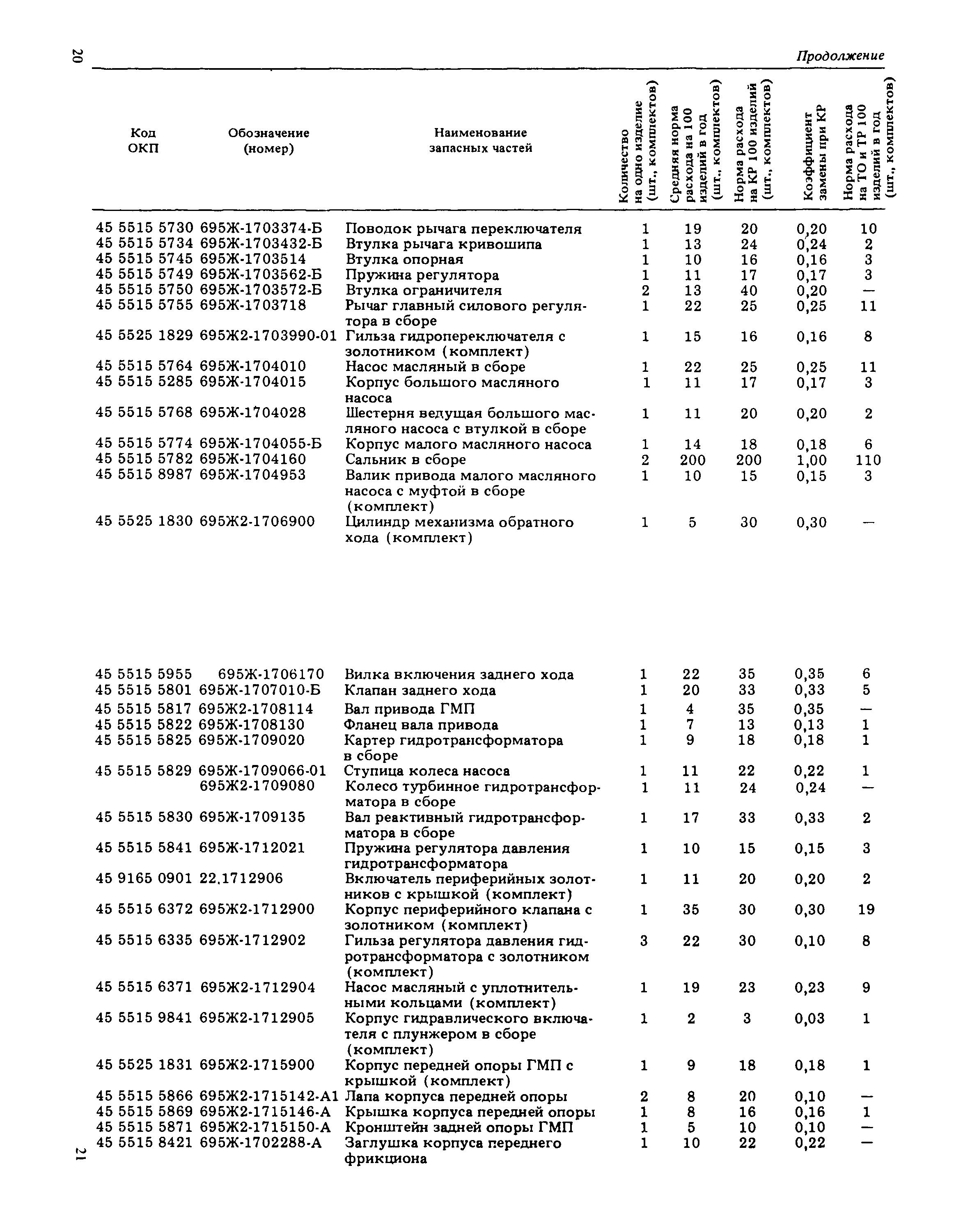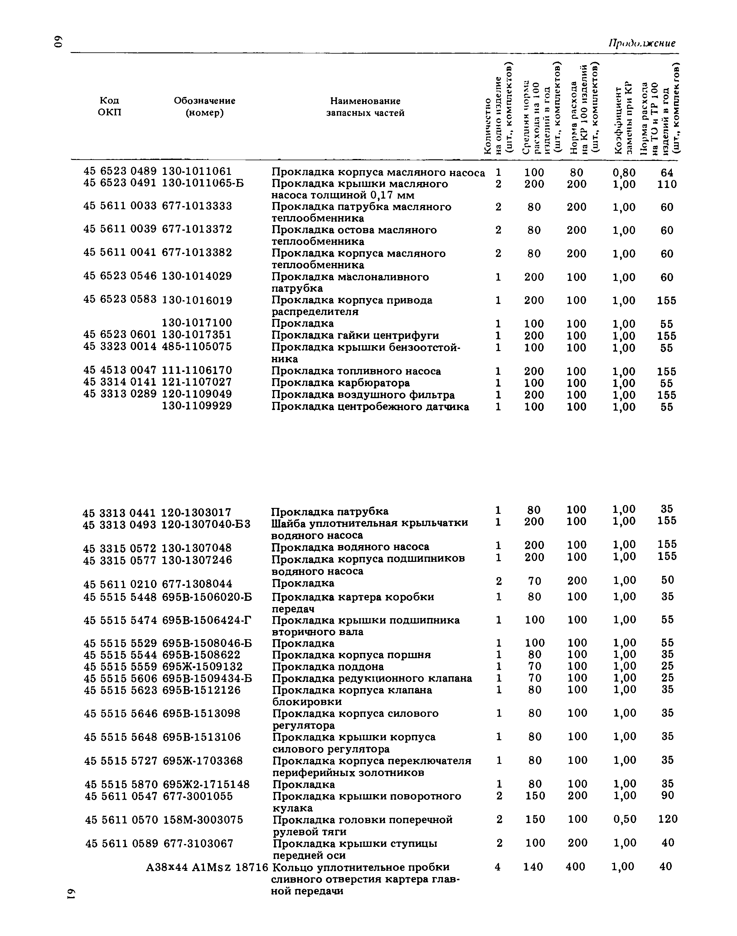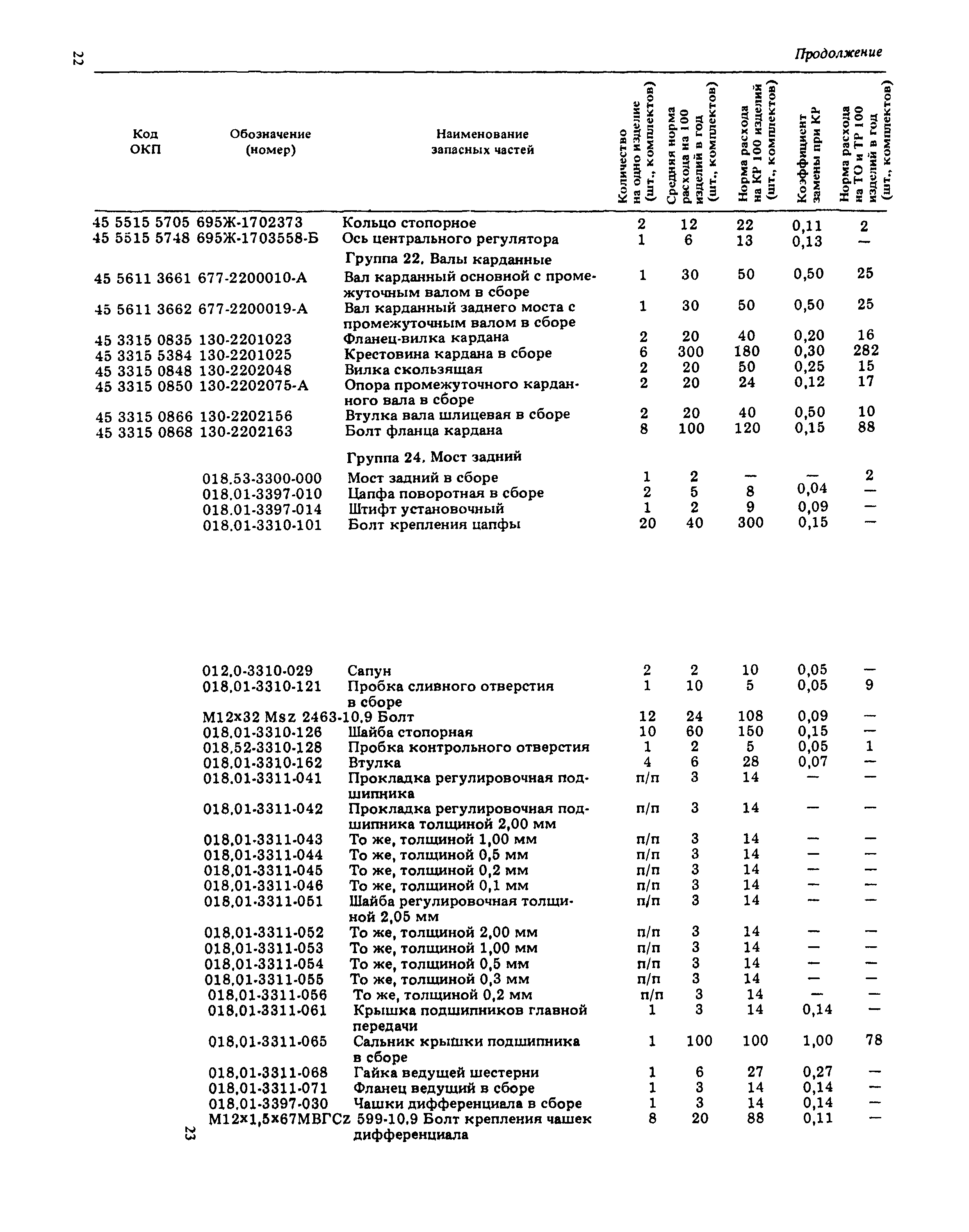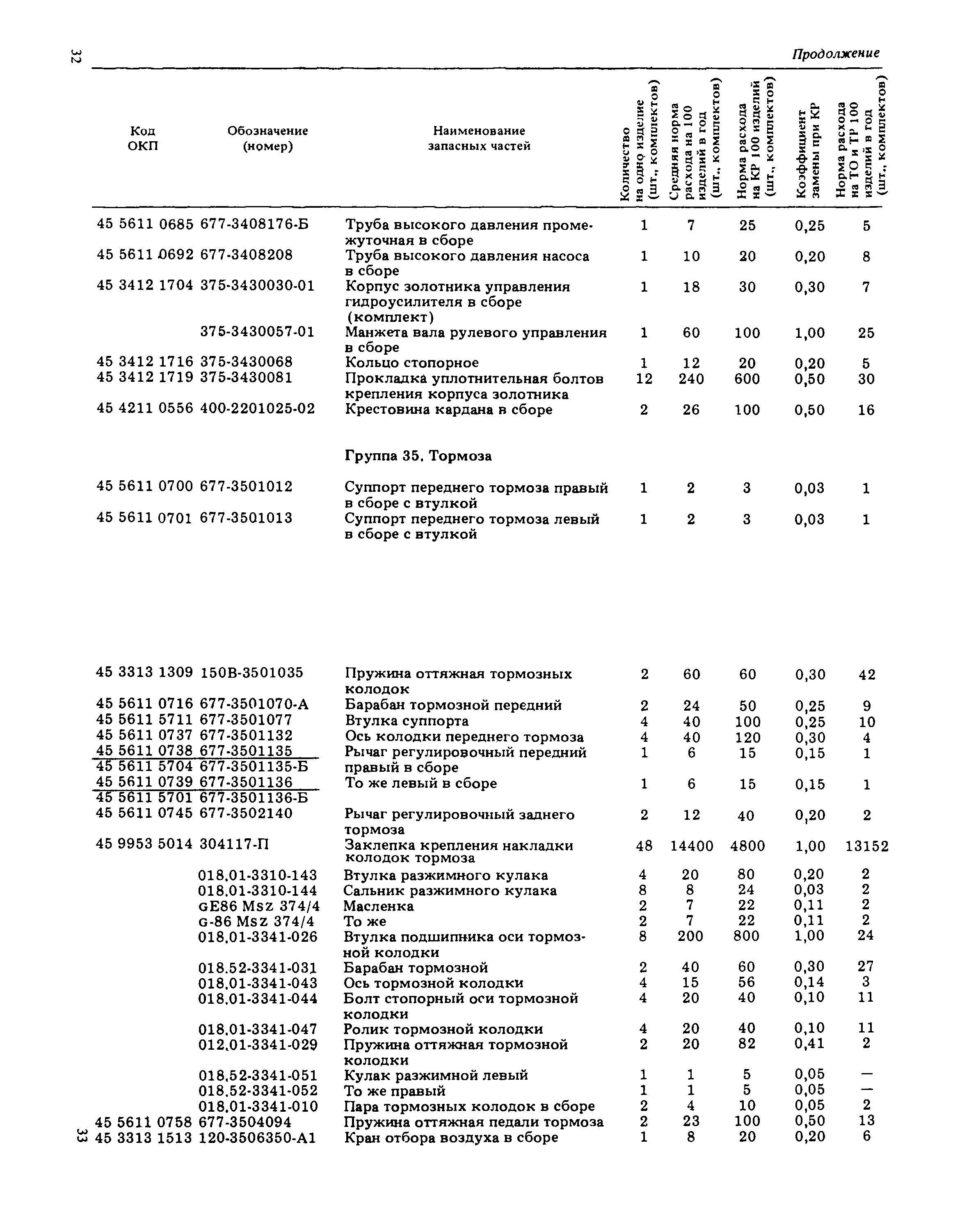 | Оглавление: | Группа 10. Двигатель Группа 11. Система питания Группа 12. Система выпуска отработавших газов Группа 13. Система охлаждения Группа 15 - 17. Передача гидромеханическая Группа 22. Валы карданные Группа 24. Мост задний Группа 29. Подвеска Группа 30. Ось передняя Группа 31. Колеса и ступицы Группа 34. Управление рулевое Группа 35. Тормоза Группа 37. Электрооборудование Группа 38. Приборы Группы 53 - 82. Кузов Подшипники качения, шарики и ролики Резинотехнические изделия Шланги Детали из асбеста Изделия из прессованной пробки Детали из пластмассы Детали из войлока Картонно-бумажные и паронитовые изделия Детали из стекла Изделия из хлопчатобумажных материалов |