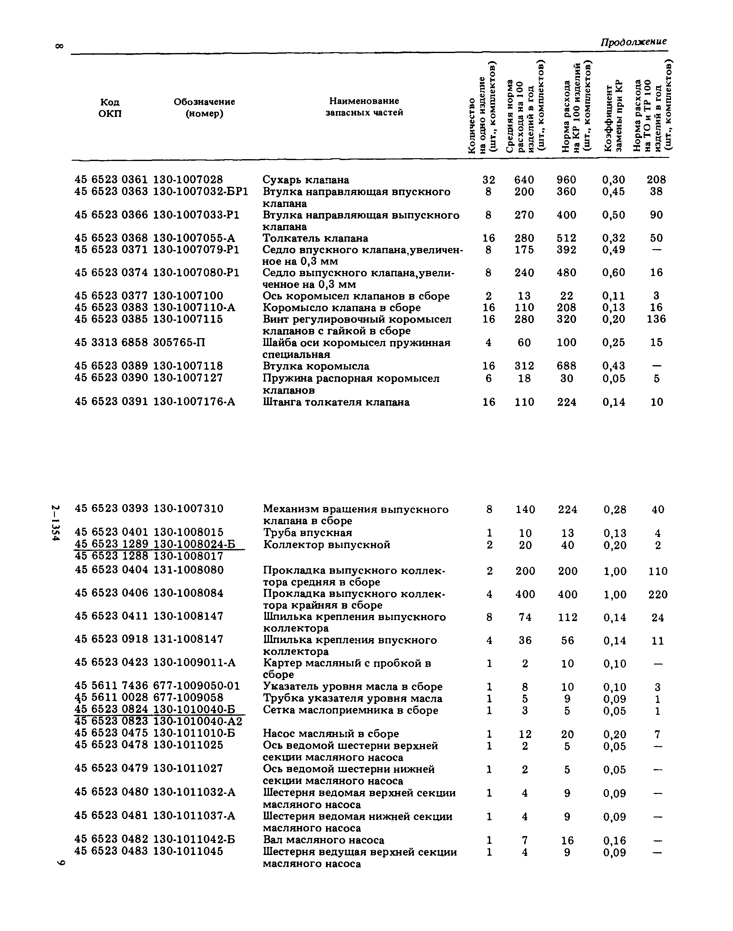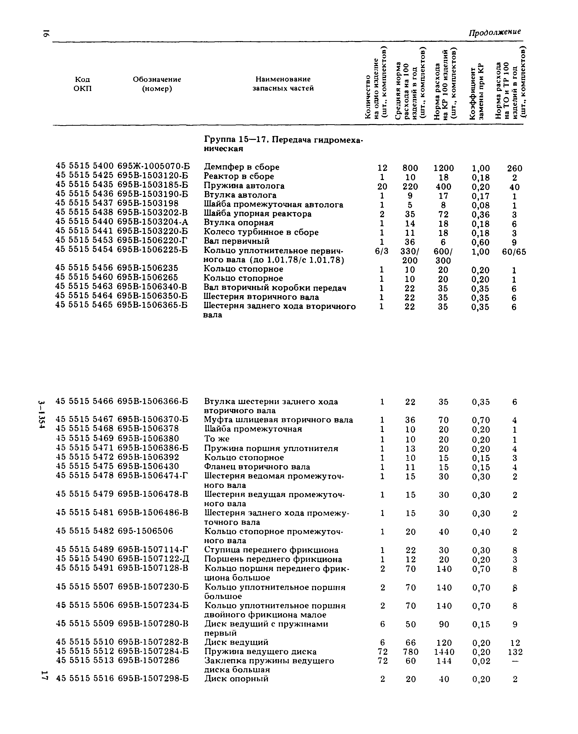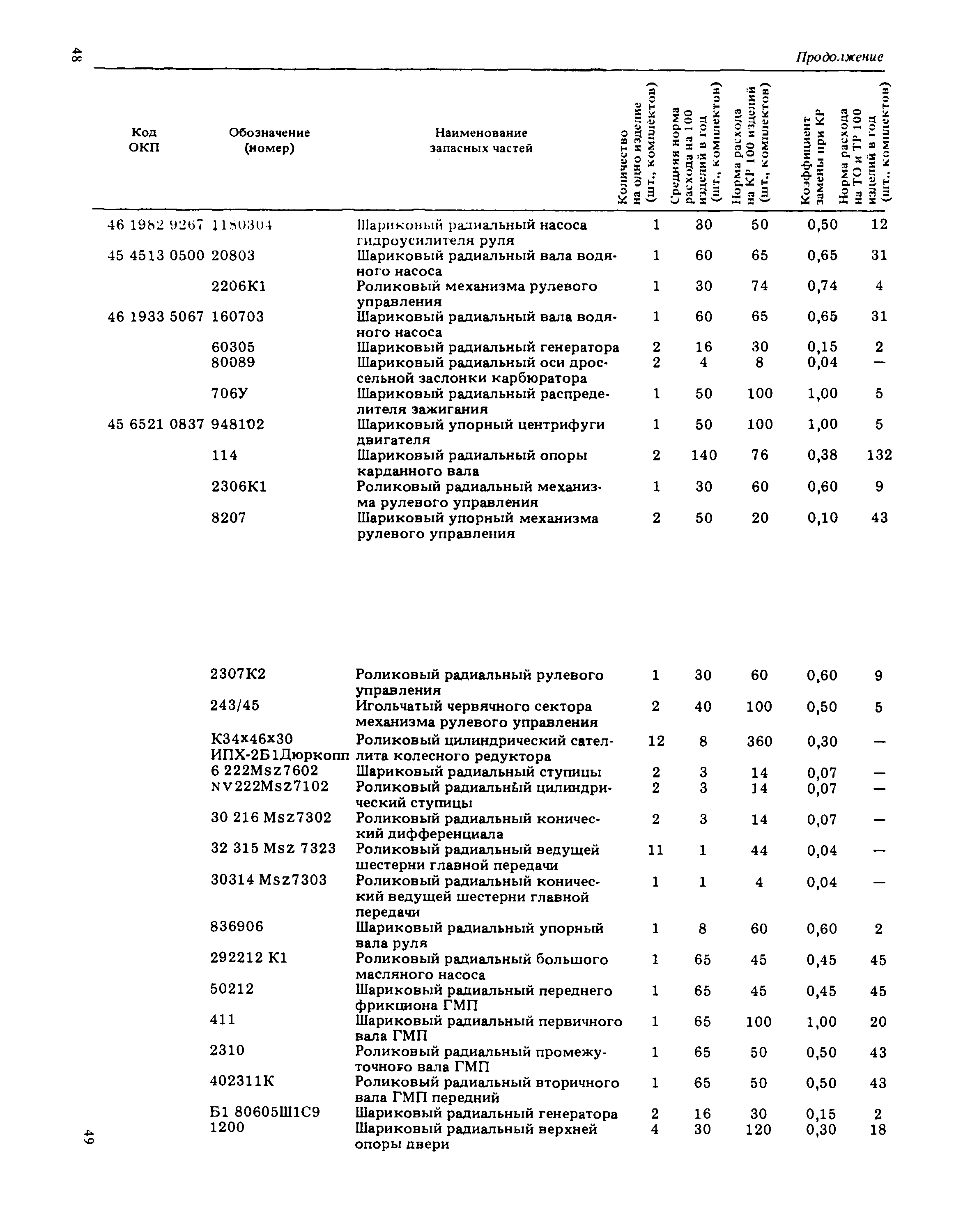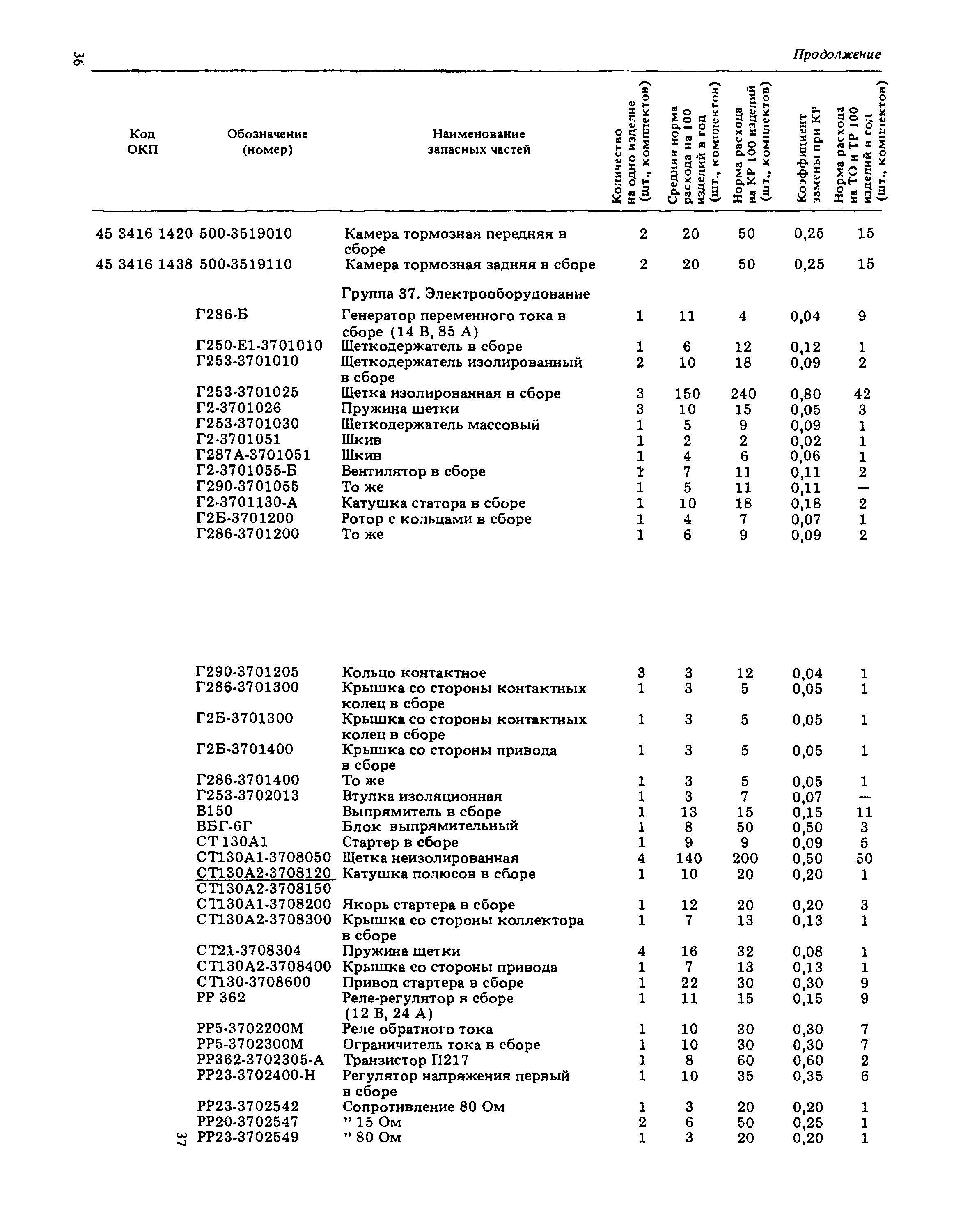 | Оглавление: | Группа 10. Двигатель Группа 11. Система питания Группа 12. Система выпуска отработавших газов Группа 13. Система охлаждения Группа 15 - 17. Передача гидромеханическая Группа 22. Валы карданные Группа 24. Мост задний Группа 29. Подвеска Группа 30. Ось передняя Группа 31. Колеса и ступицы Группа 34. Управление рулевое Группа 35. Тормоза Группа 37. Электрооборудование Группа 38. Приборы Группы 53 - 82. Кузов Подшипники качения, шарики и ролики Резинотехнические изделия Шланги Детали из асбеста Изделия из прессованной пробки Детали из пластмассы Детали из войлока Картонно-бумажные и паронитовые изделия Детали из стекла Изделия из хлопчатобумажных материалов |