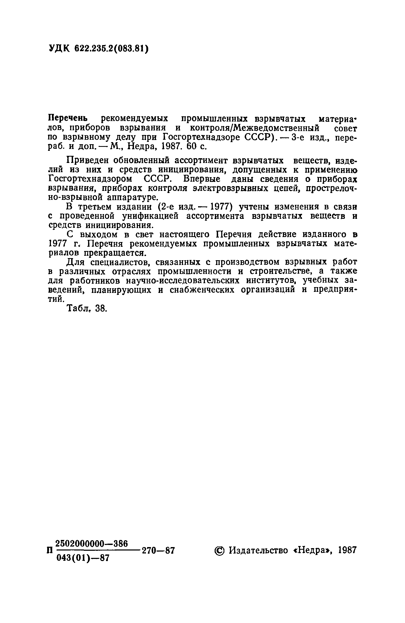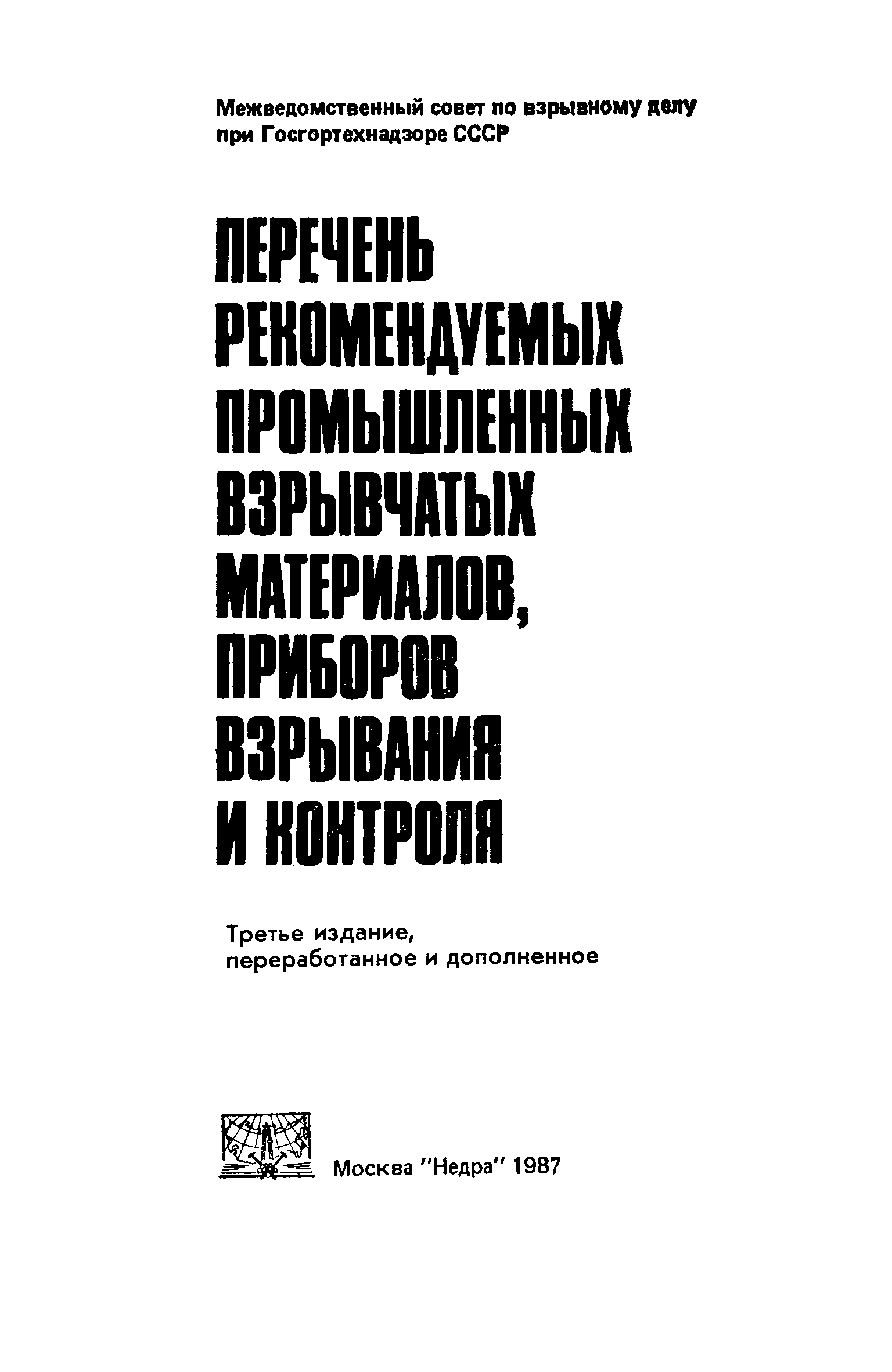 | Область применения: | Перечень предназначен для специалистов, связанных с производством взрывных работ в различных отраслях промышленности и строительстве, а также для работников научно-исследовательских институтов, учебных заведений, планирующих н снабженческих организаций и предприятий. |