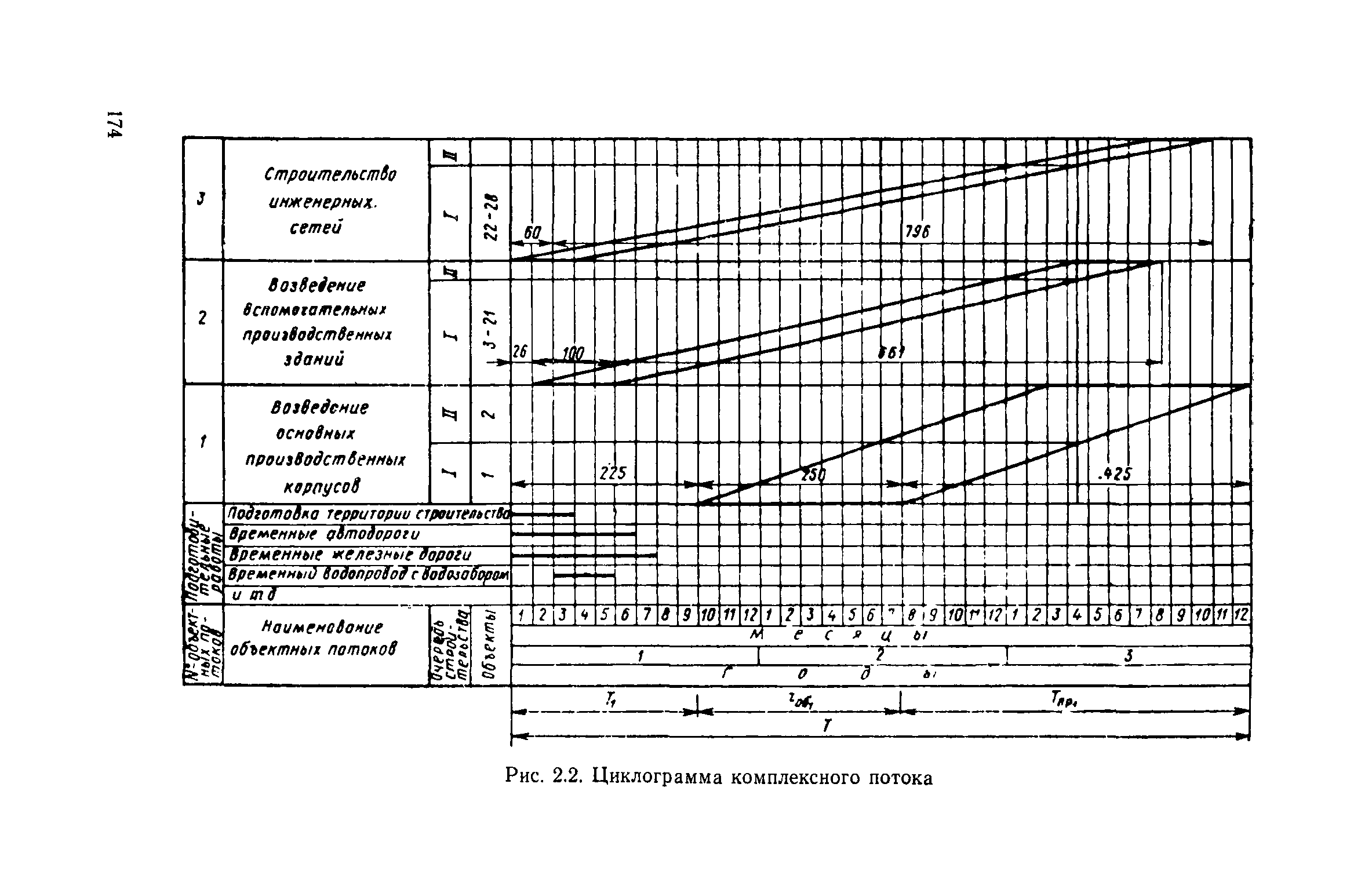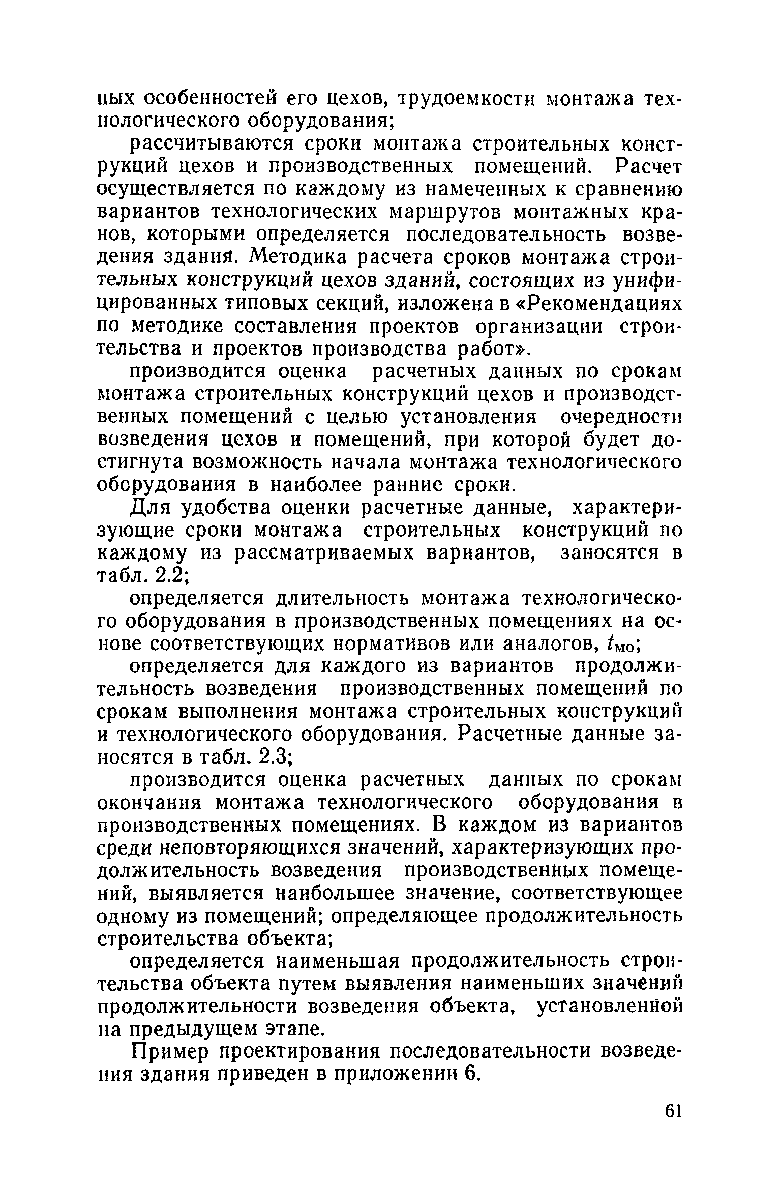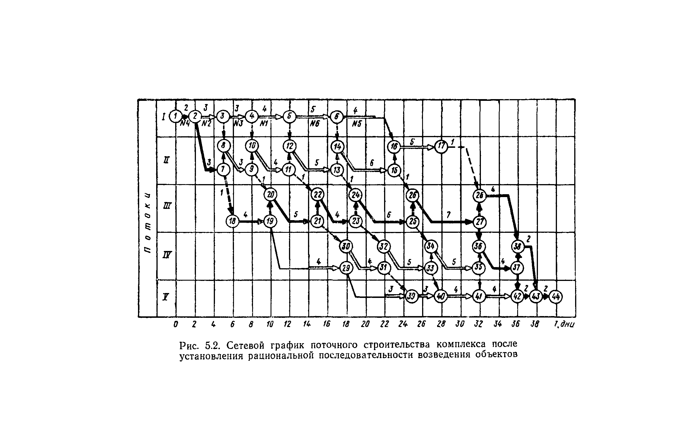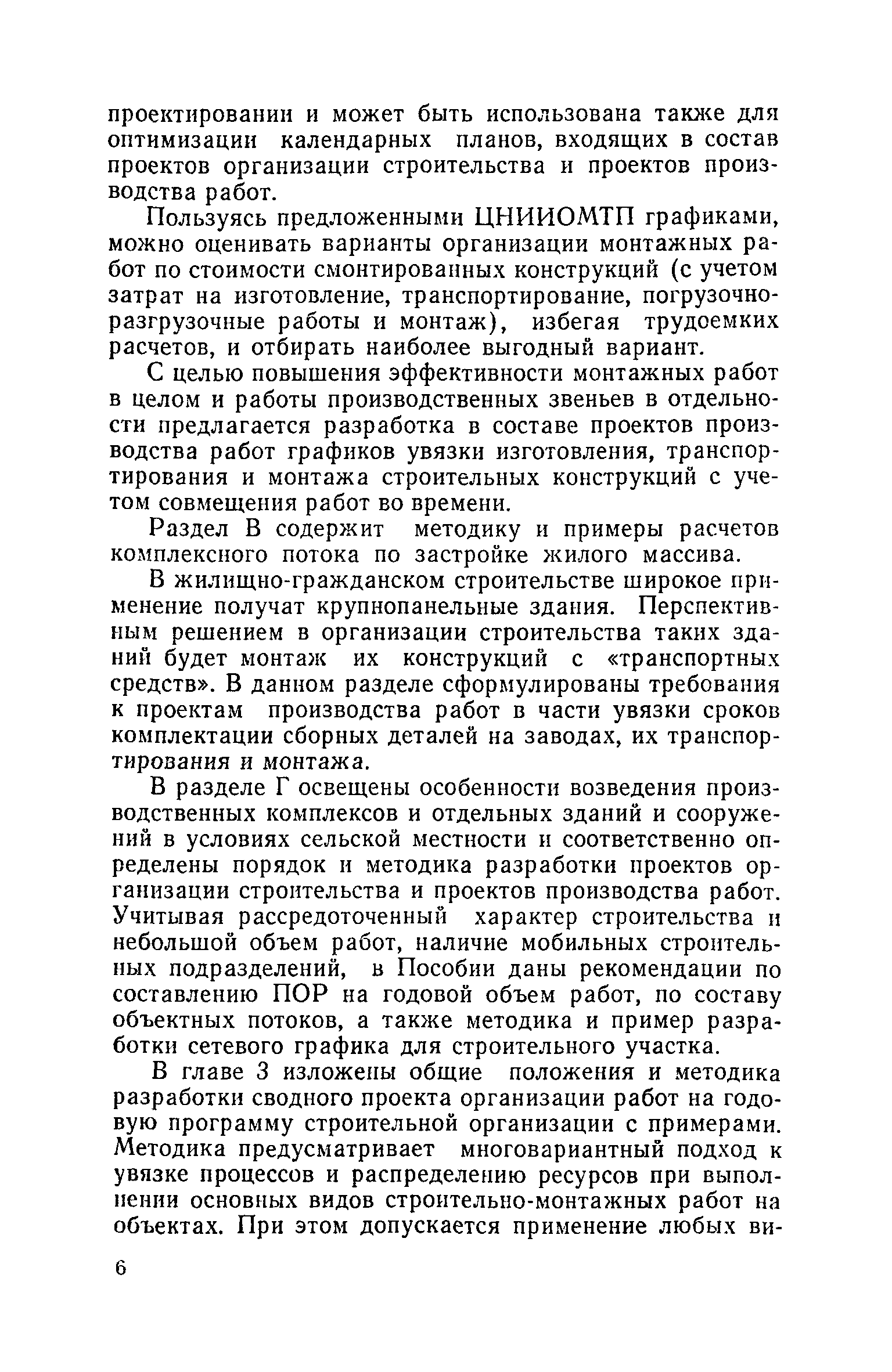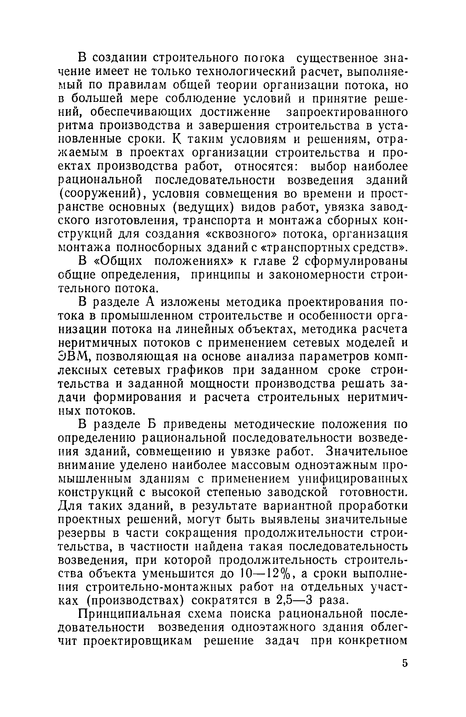 | Оглавление: | Введение Глава 1. Проектирование организации строительства и производства работ Глава 2. Организация строительного производства поточными методами Глава 3. Сводный проект организации работ на годовую программу строительной организации Глава 4. Инвентарные здания для строительства Глава 5. Методы производства основных строительно-монтажных работ Приложение 1. Определение количества строительных организаций и уровня специализации по работам, выполняемым собственными силами, по генподряду, а также отдельным видам работ Приложение 2. Расчет комплексного потока по заданному сроку строительства Приложение 3. Расчет объектного потока по заданному сроку строительства Приложение 4. Расчет специализированного потока по монтажу сборных железобетонных конструкций промышленного здания Приложение 5. Методические рекомендации по проектированию неритмичных потоков с применением сетевых моделей и ЭЦВМ 1. Определение последовательности возведения объектов комплекса 2. Формирование потоков однородных работ 3. Приведение продолжительности поточного строительства объектов и комплексов к заданному сроку 4. Расчет непрерывных потоков при заданном сроке строительства 5. Расчет непрерывных потоков при неизменных уровнях потребления ресурсов в них Приложение 6. Определение последовательности возведения промышленного здания Приложение 7. Характеристика программы на ЭЦВМ для расчета увязки работ при различной последовательности возведения зданий Приложение 8. Методика расчета комплексного потока по заданному сроку строительства при составлении ПОС с использованием типовых проектов Приложение 9. Расчет циклограммы возведения жилого дома Приложение 10. Пример 1. Разработка календарного плана работ на годовую программу строительного треста Анализ и корректировка проекта плана работ Построение организационно-технологической модели годового плана работ Пример 2. Разработка организационно-технологической модели возведения здания Приложение 11. Общесоюзная номенклатура инвентарных зданий Приложение 12. Расчет оптимального набора инвентарных зданий |