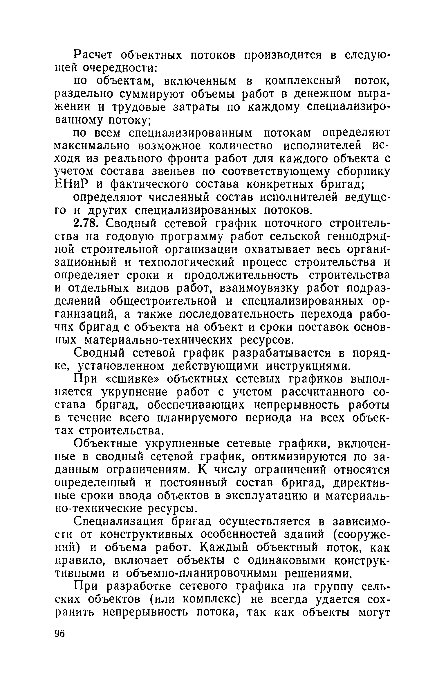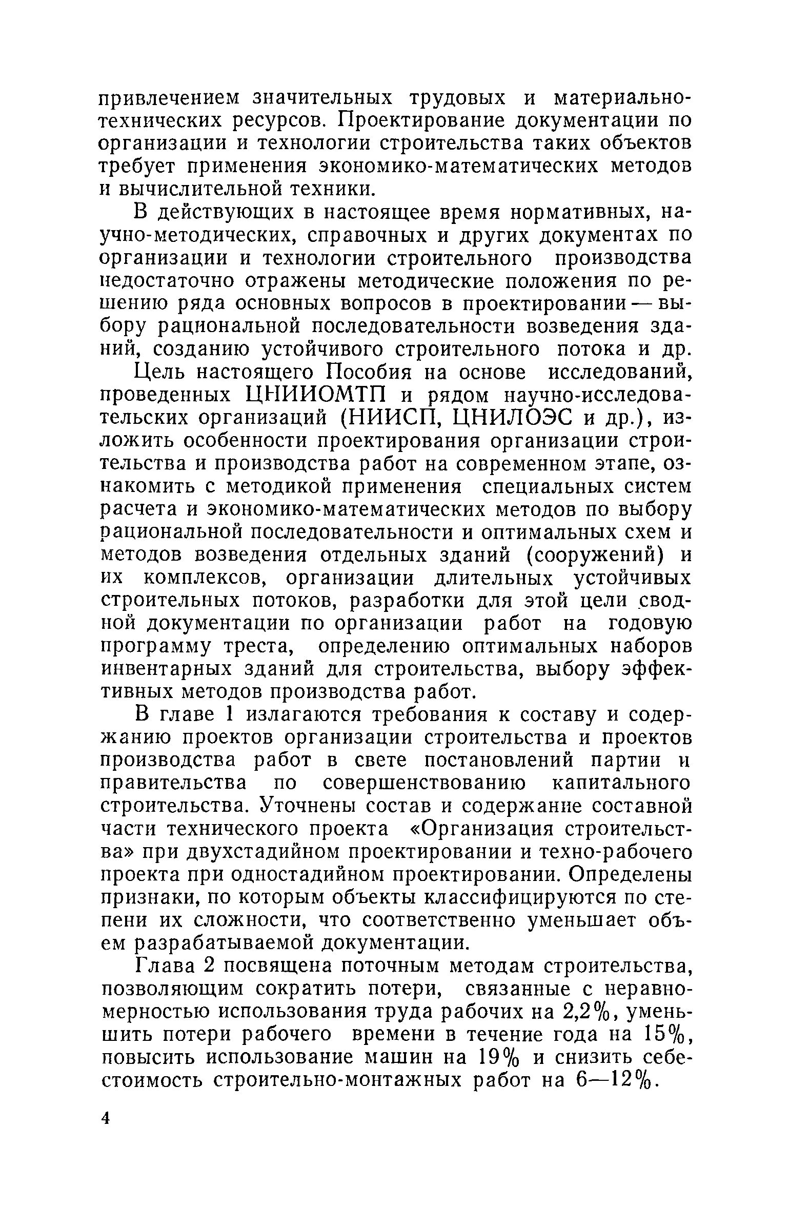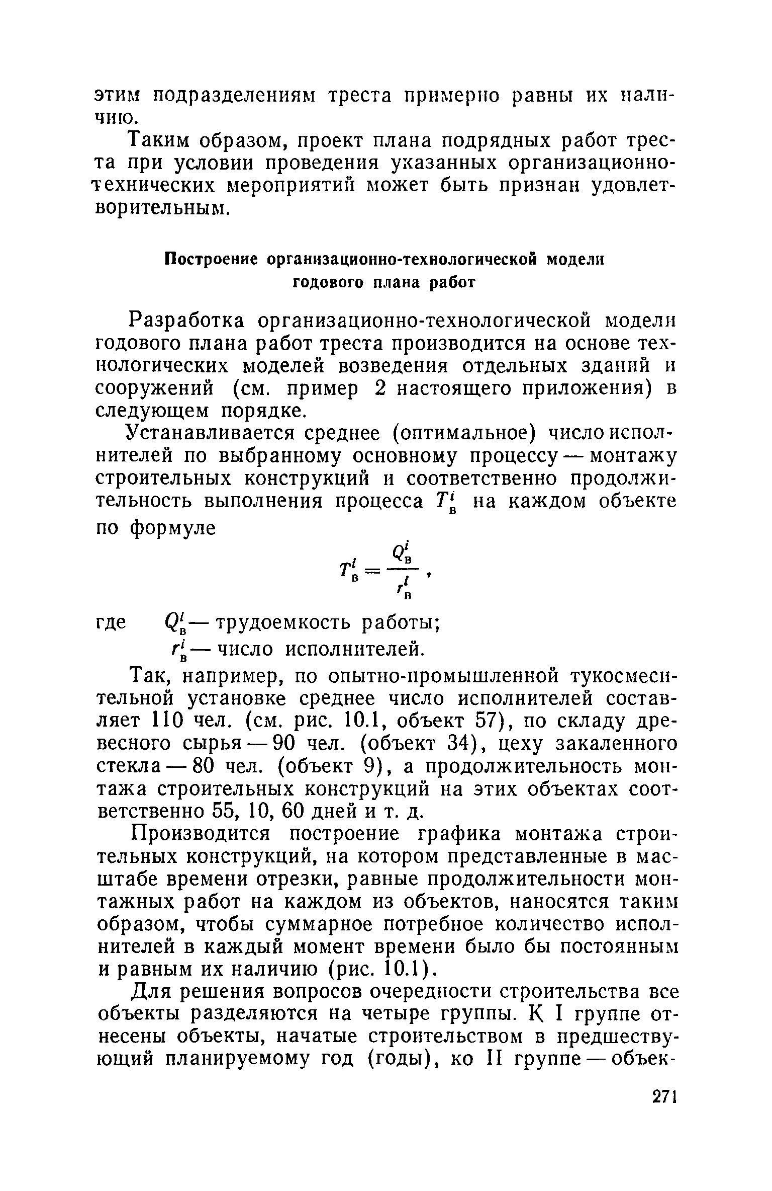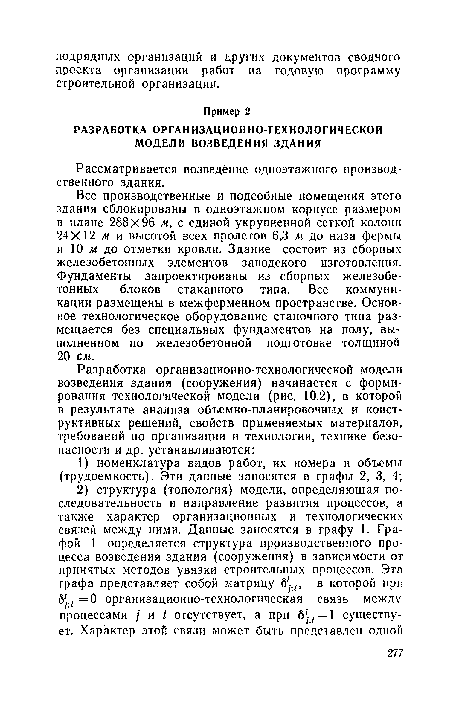 | Оглавление: | Введение Глава 1. Проектирование организации строительства и производства работ Глава 2. Организация строительного производства поточными методами Глава 3. Сводный проект организации работ на годовую программу строительной организации Глава 4. Инвентарные здания для строительства Глава 5. Методы производства основных строительно-монтажных работ Приложение 1. Определение количества строительных организаций и уровня специализации по работам, выполняемым собственными силами, по генподряду, а также отдельным видам работ Приложение 2. Расчет комплексного потока по заданному сроку строительства Приложение 3. Расчет объектного потока по заданному сроку строительства Приложение 4. Расчет специализированного потока по монтажу сборных железобетонных конструкций промышленного здания Приложение 5. Методические рекомендации по проектированию неритмичных потоков с применением сетевых моделей и ЭЦВМ 1. Определение последовательности возведения объектов комплекса 2. Формирование потоков однородных работ 3. Приведение продолжительности поточного строительства объектов и комплексов к заданному сроку 4. Расчет непрерывных потоков при заданном сроке строительства 5. Расчет непрерывных потоков при неизменных уровнях потребления ресурсов в них Приложение 6. Определение последовательности возведения промышленного здания Приложение 7. Характеристика программы на ЭЦВМ для расчета увязки работ при различной последовательности возведения зданий Приложение 8. Методика расчета комплексного потока по заданному сроку строительства при составлении ПОС с использованием типовых проектов Приложение 9. Расчет циклограммы возведения жилого дома Приложение 10. Пример 1. Разработка календарного плана работ на годовую программу строительного треста Анализ и корректировка проекта плана работ Построение организационно-технологической модели годового плана работ Пример 2. Разработка организационно-технологической модели возведения здания Приложение 11. Общесоюзная номенклатура инвентарных зданий Приложение 12. Расчет оптимального набора инвентарных зданий |