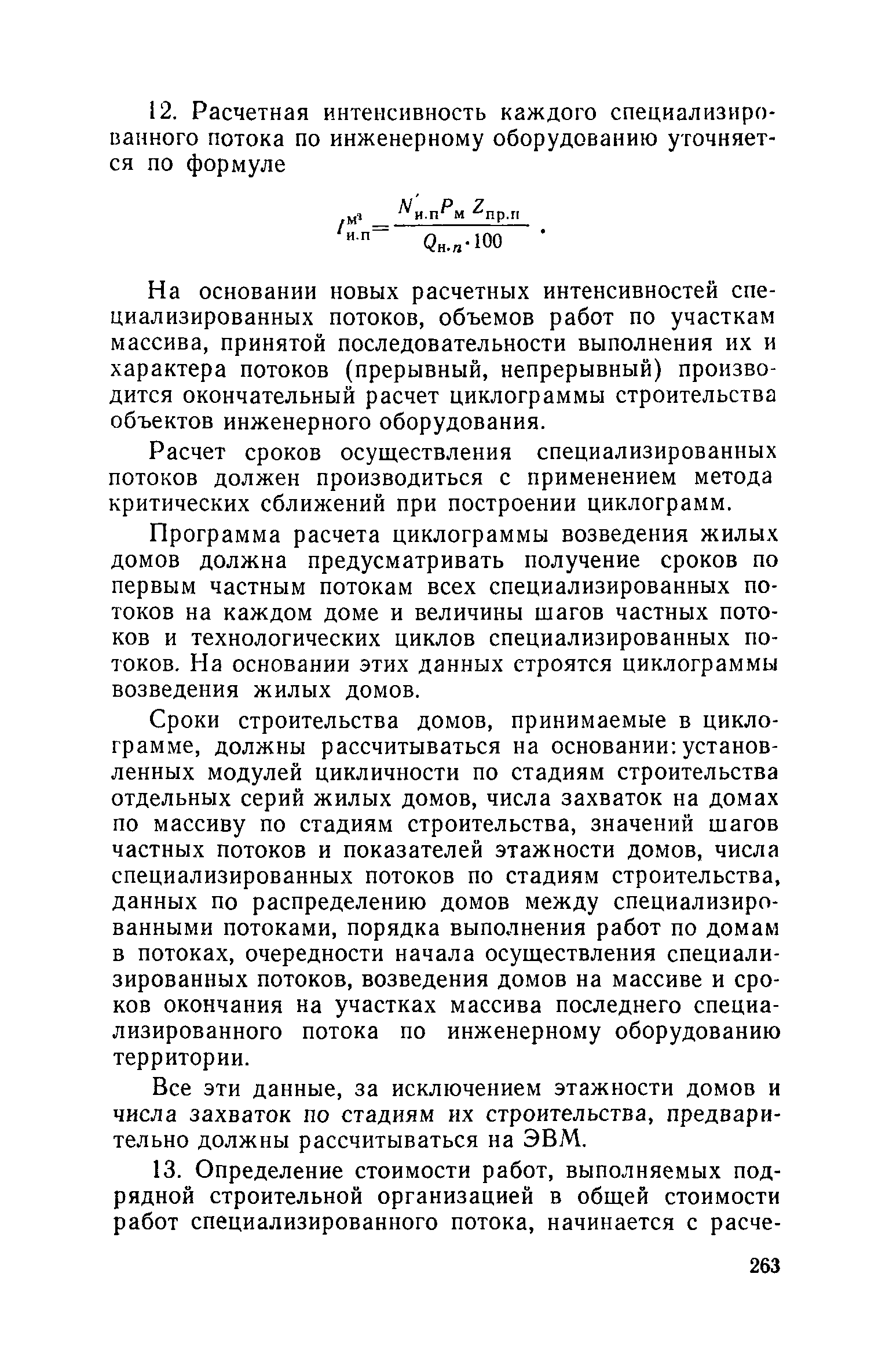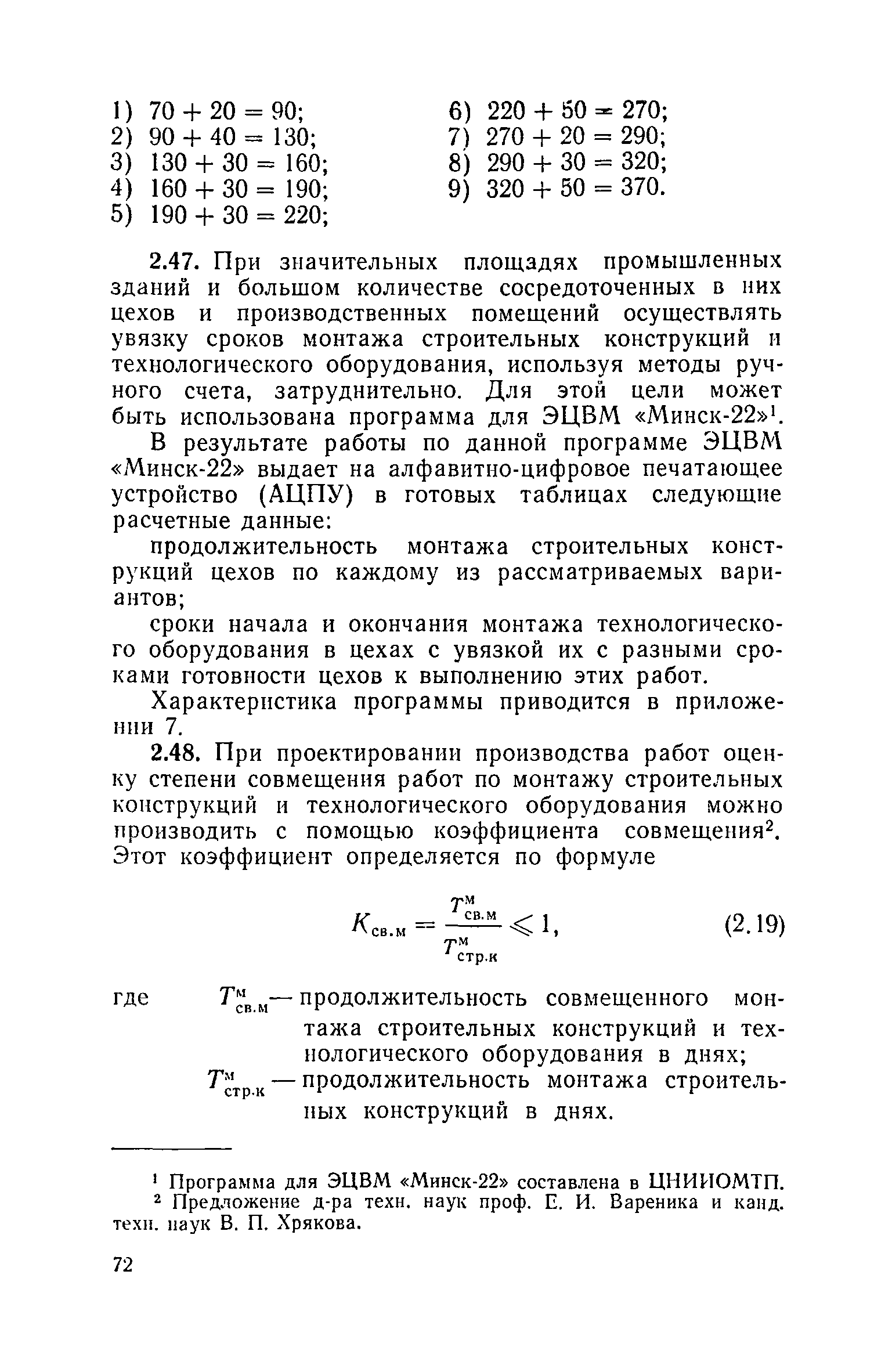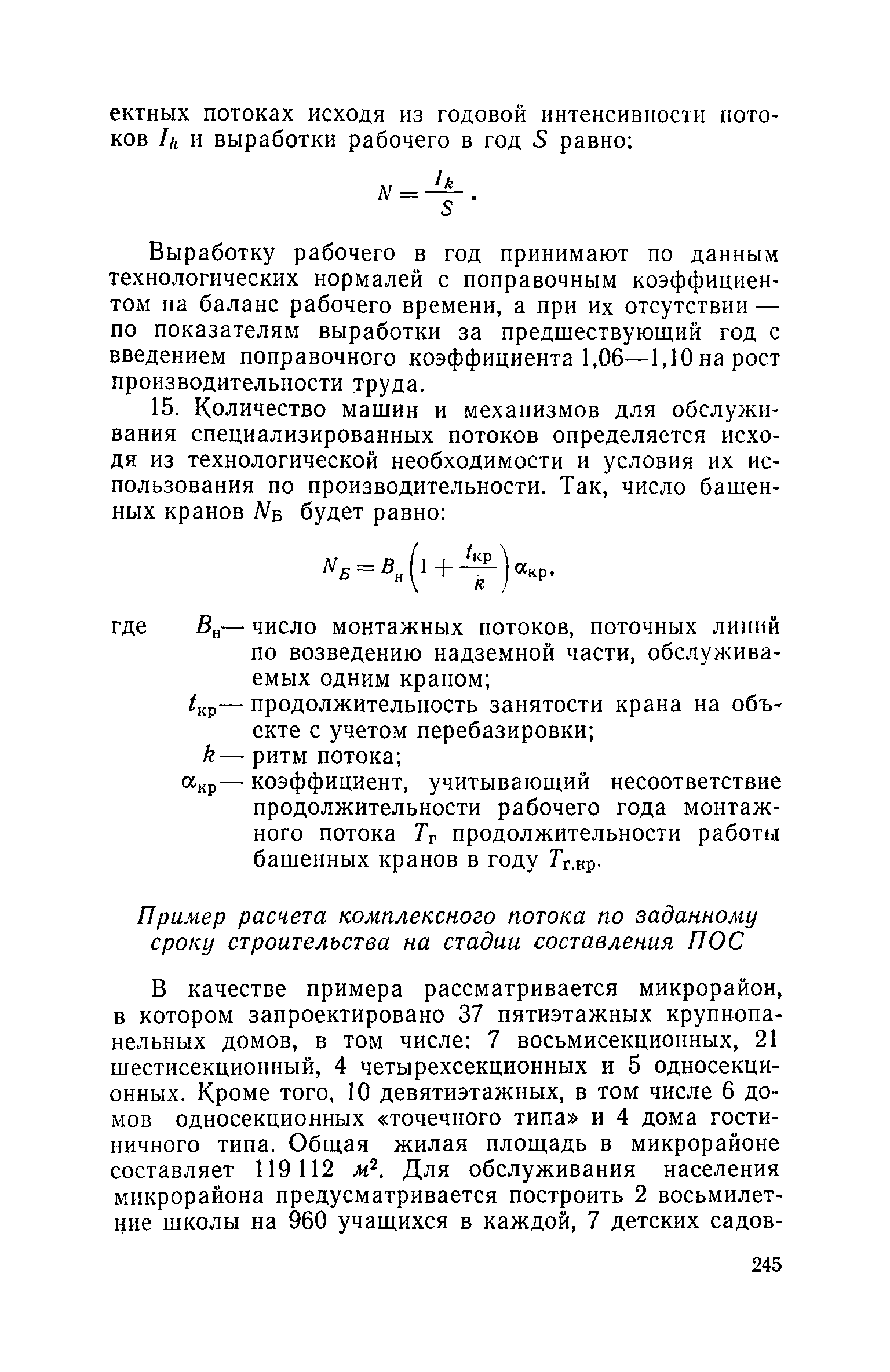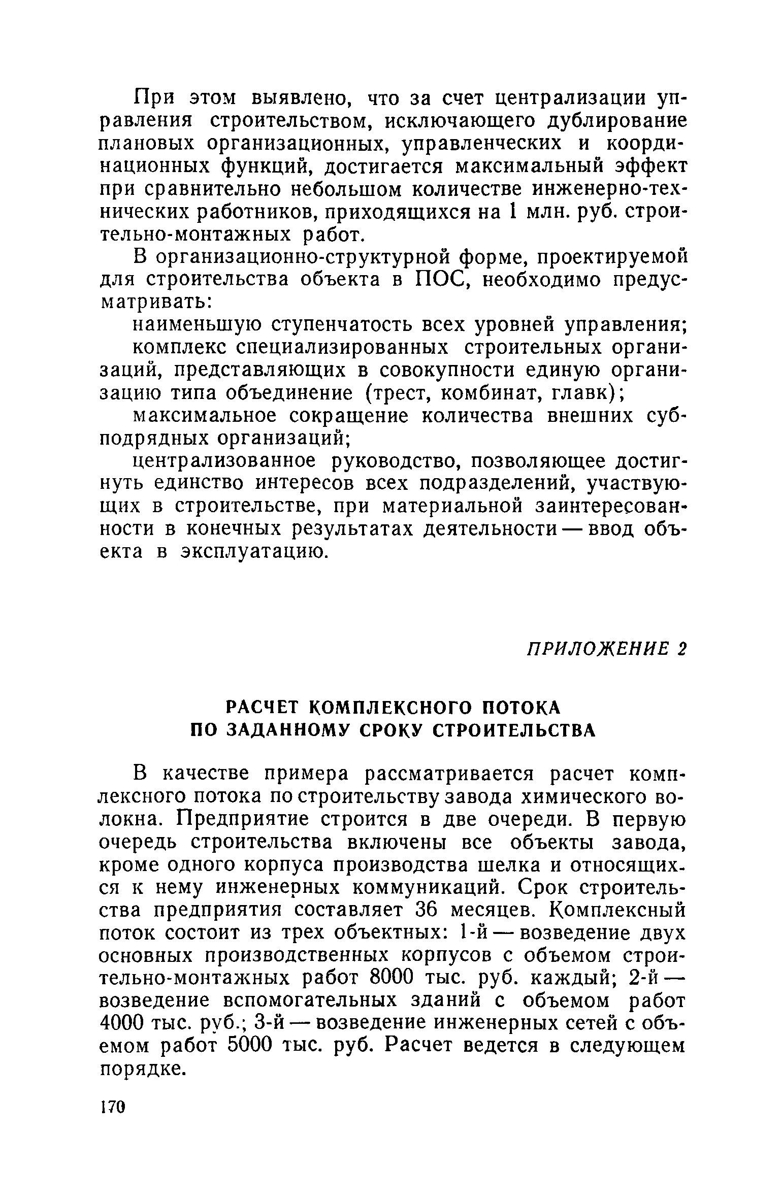 | Оглавление: | Введение Глава 1. Проектирование организации строительства и производства работ Глава 2. Организация строительного производства поточными методами Глава 3. Сводный проект организации работ на годовую программу строительной организации Глава 4. Инвентарные здания для строительства Глава 5. Методы производства основных строительно-монтажных работ Приложение 1. Определение количества строительных организаций и уровня специализации по работам, выполняемым собственными силами, по генподряду, а также отдельным видам работ Приложение 2. Расчет комплексного потока по заданному сроку строительства Приложение 3. Расчет объектного потока по заданному сроку строительства Приложение 4. Расчет специализированного потока по монтажу сборных железобетонных конструкций промышленного здания Приложение 5. Методические рекомендации по проектированию неритмичных потоков с применением сетевых моделей и ЭЦВМ 1. Определение последовательности возведения объектов комплекса 2. Формирование потоков однородных работ 3. Приведение продолжительности поточного строительства объектов и комплексов к заданному сроку 4. Расчет непрерывных потоков при заданном сроке строительства 5. Расчет непрерывных потоков при неизменных уровнях потребления ресурсов в них Приложение 6. Определение последовательности возведения промышленного здания Приложение 7. Характеристика программы на ЭЦВМ для расчета увязки работ при различной последовательности возведения зданий Приложение 8. Методика расчета комплексного потока по заданному сроку строительства при составлении ПОС с использованием типовых проектов Приложение 9. Расчет циклограммы возведения жилого дома Приложение 10. Пример 1. Разработка календарного плана работ на годовую программу строительного треста Анализ и корректировка проекта плана работ Построение организационно-технологической модели годового плана работ Пример 2. Разработка организационно-технологической модели возведения здания Приложение 11. Общесоюзная номенклатура инвентарных зданий Приложение 12. Расчет оптимального набора инвентарных зданий |