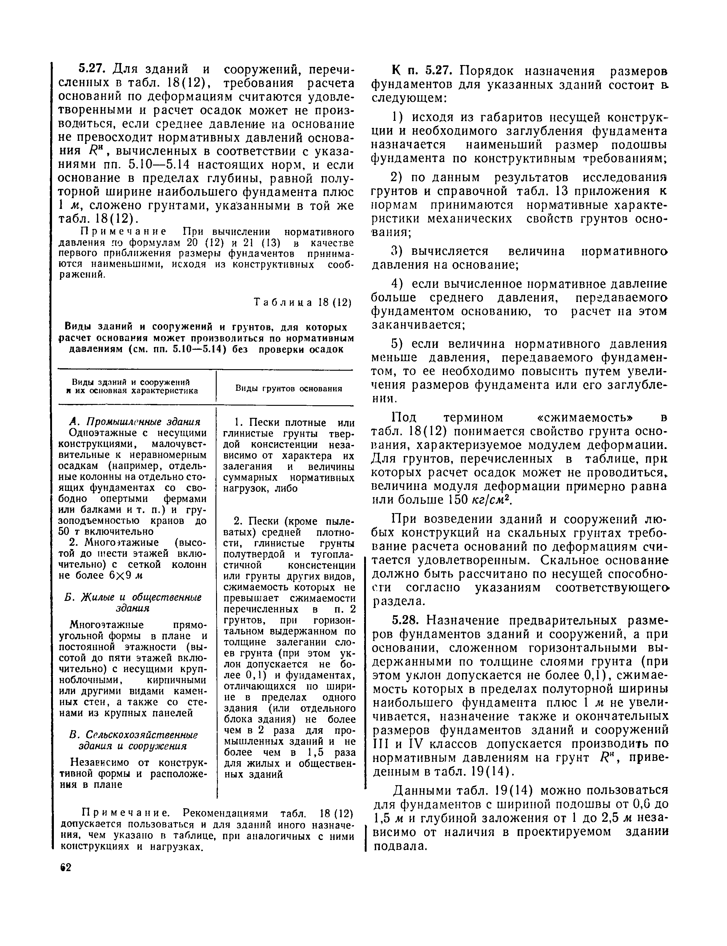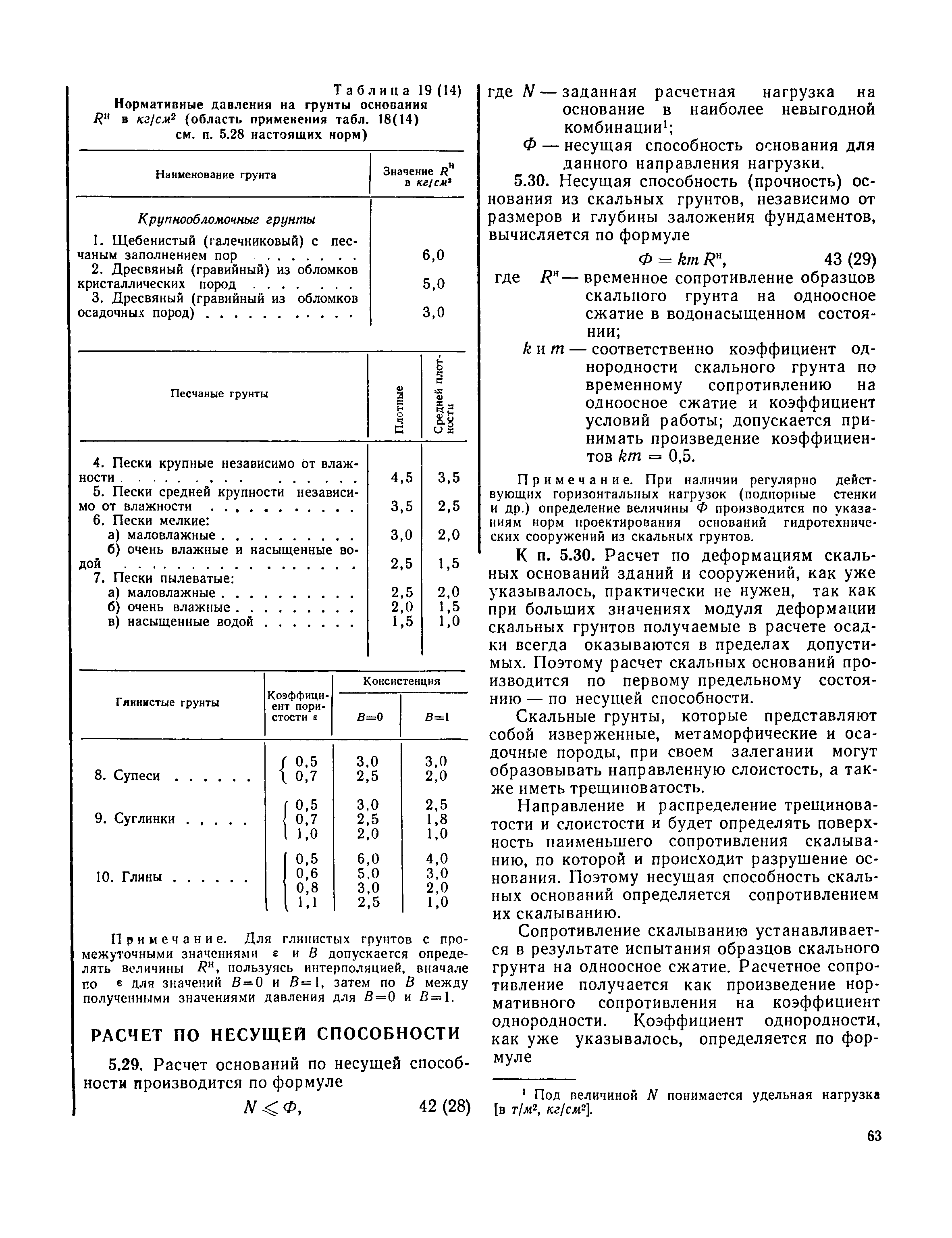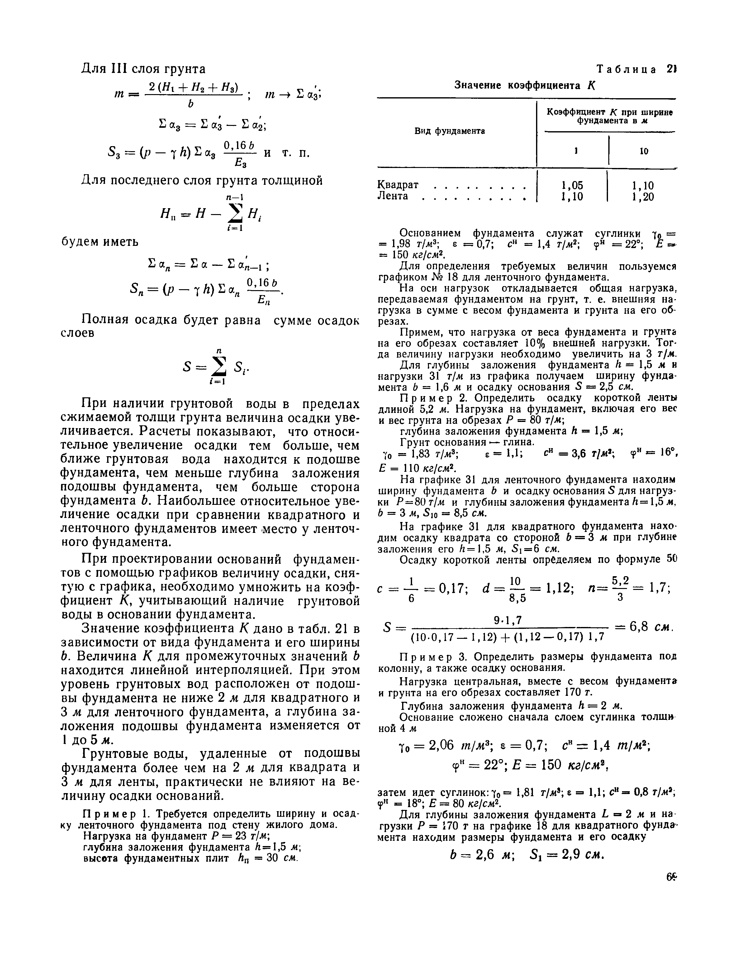 | Оглавление: | 1. Общие положения 2. Номенклатура грунтов основания 3. Грунтовые воды 4. Глубина заложения фундаментов 5. Расчет оснований Общие указания Расчет по деформациям Расчет по несущей способности 6. Графики для расчета оснований фундаментов зданий и сооружений |
