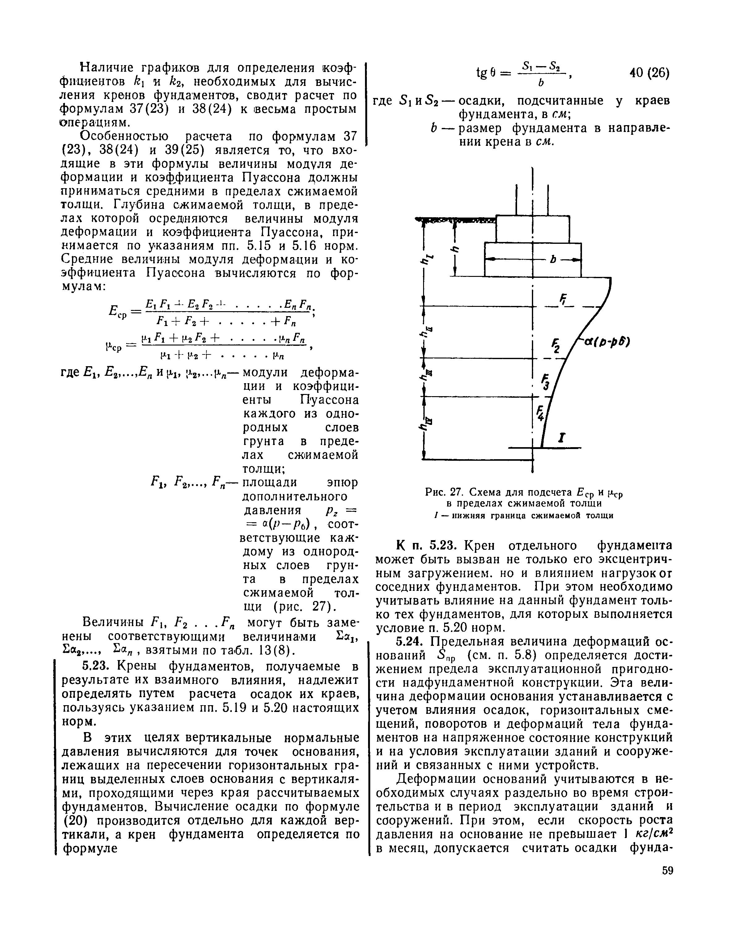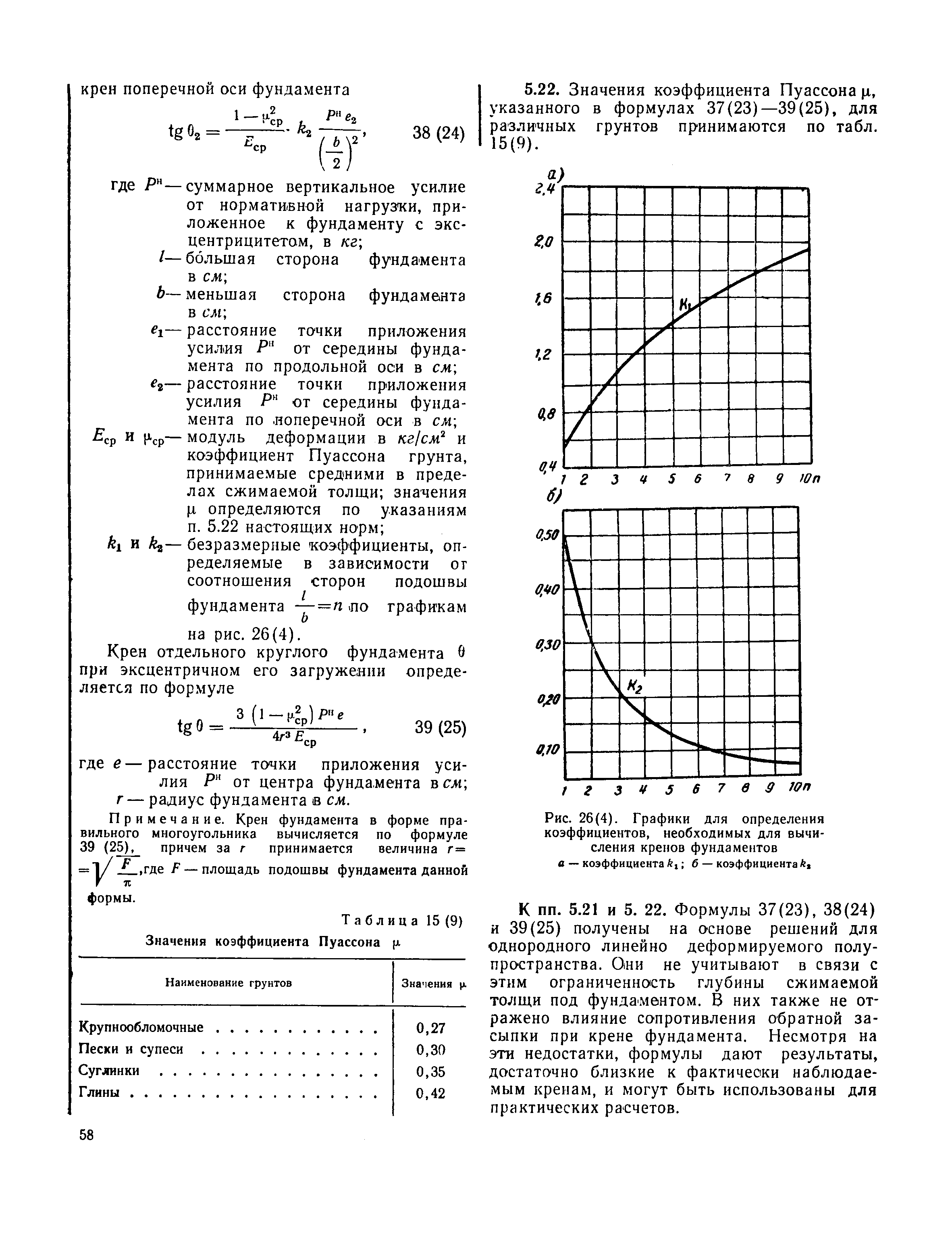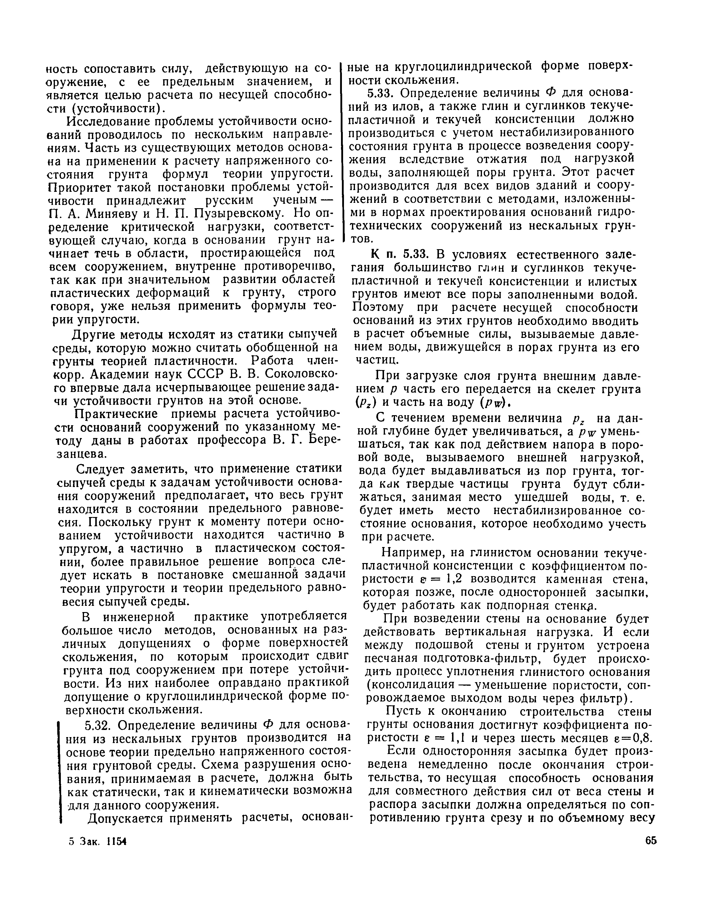 | Оглавление: | 1. Общие положения 2. Номенклатура грунтов основания 3. Грунтовые воды 4. Глубина заложения фундаментов 5. Расчет оснований Общие указания Расчет по деформациям Расчет по несущей способности 6. Графики для расчета оснований фундаментов зданий и сооружений |