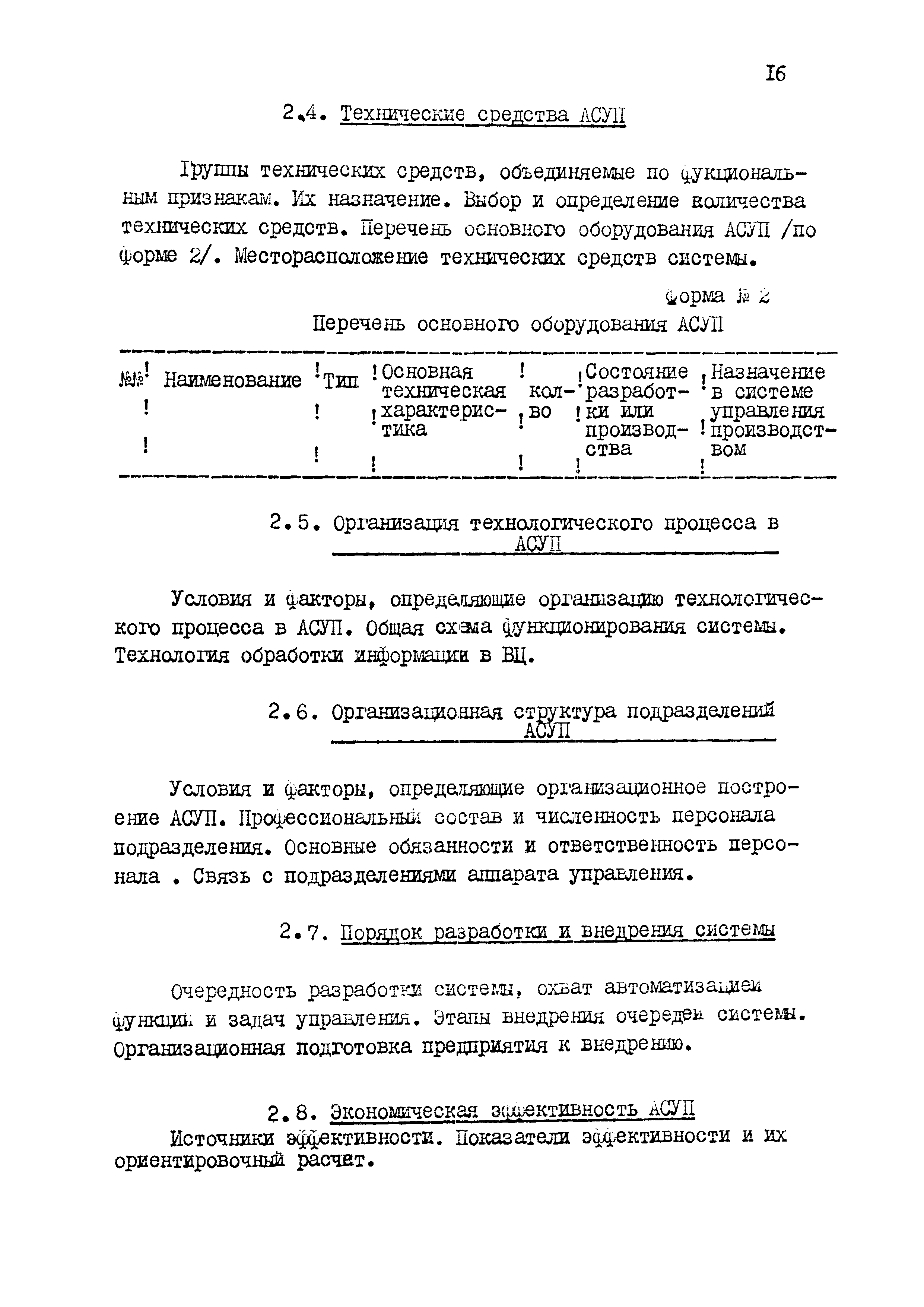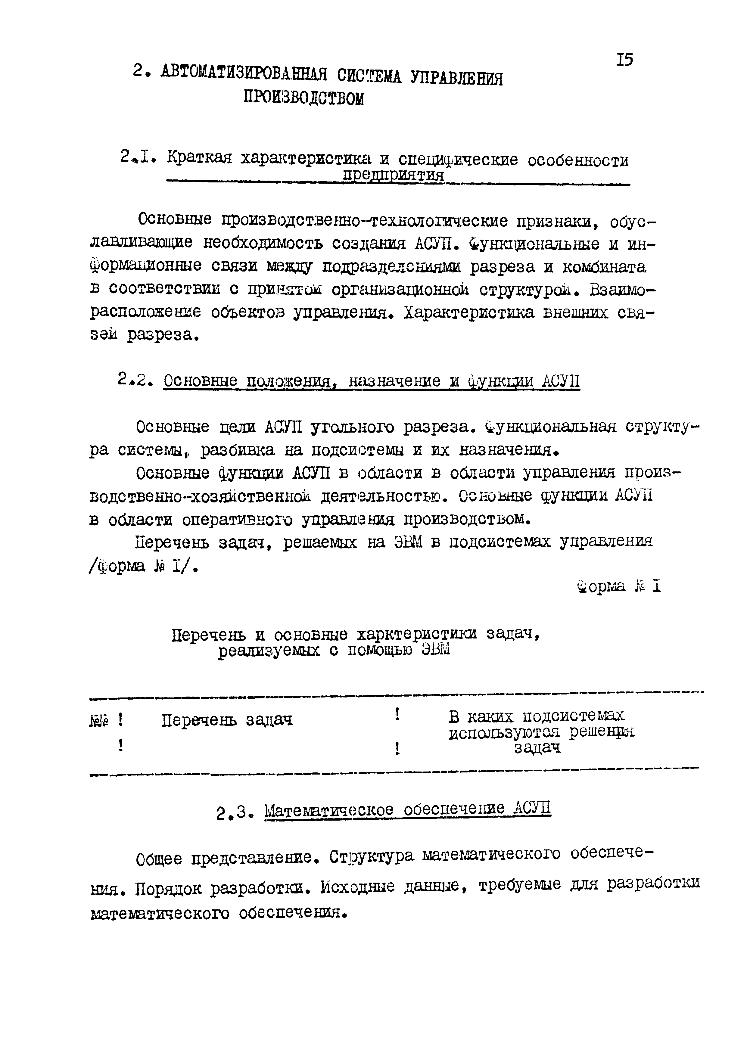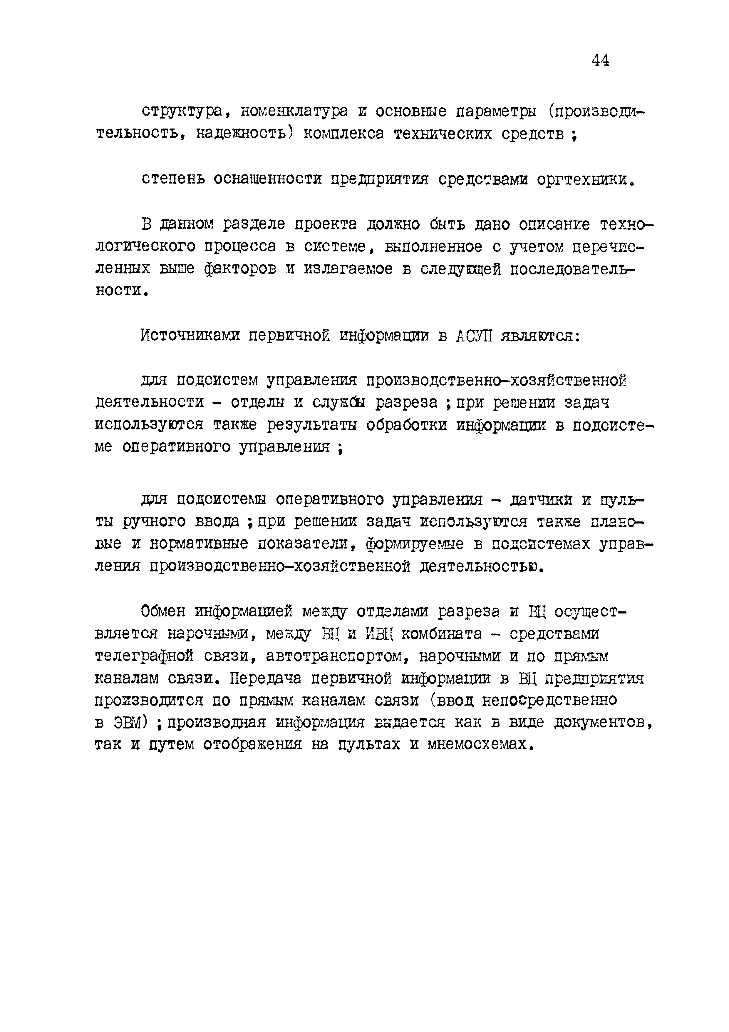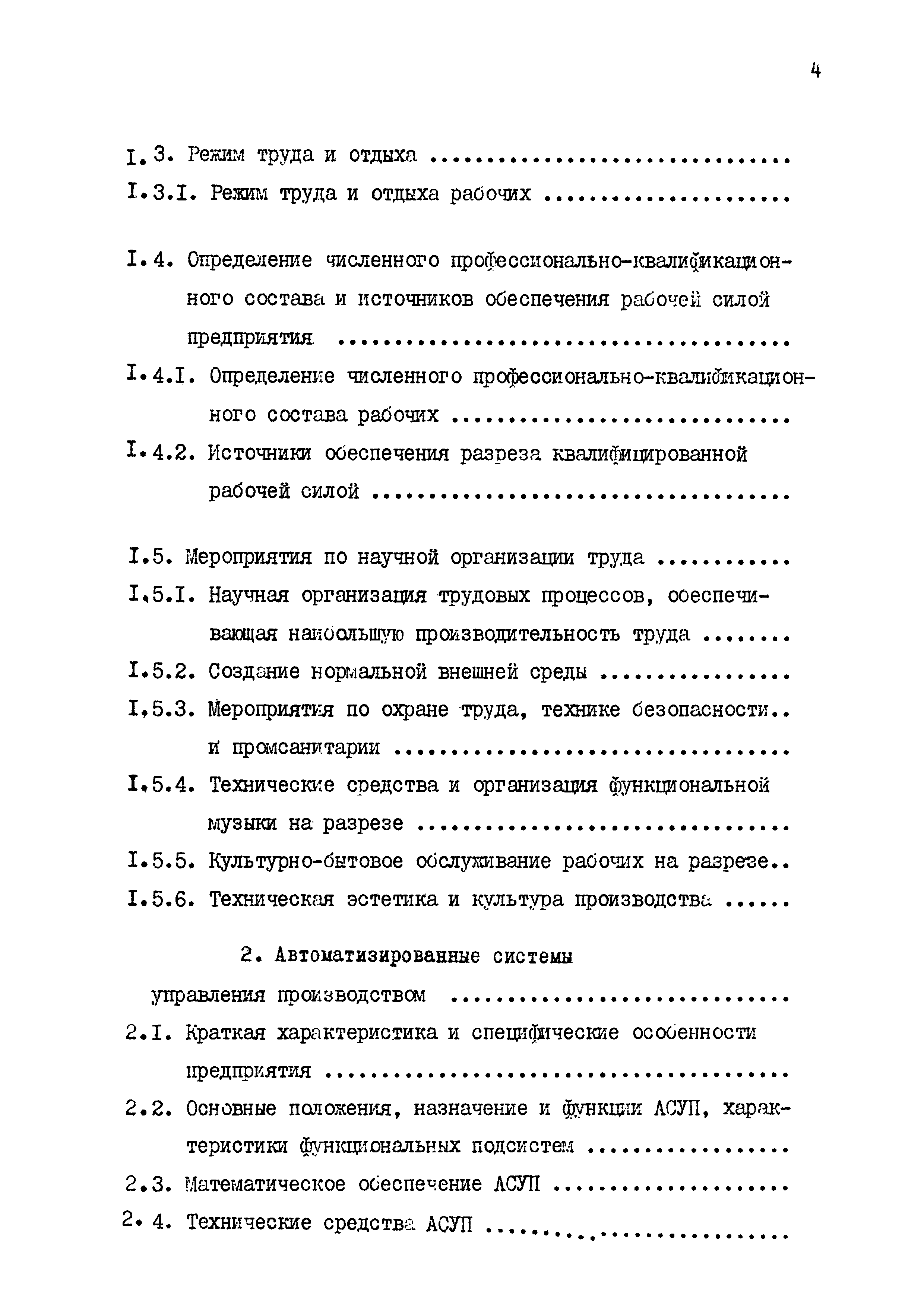 | Оглавление: | 1. Организация труда 1.1. Организация труда на рабочих местах 1.2. Организация обслуживания рабочих мест 1.3. Режим труда и отдыха 1.4. Определение численного профессионально-квалификационного состава и источников обеспечения рабочей силой предприятия 1.5. Мероприятия по научной организации труда 2. Автоматизированные системы 2.1. Краткая характеристика и специфические особенности предприятия 2.2. Основные положения, назначение и функции АСУП, характеристики функциональных подсистем 2.3. Математическое обеспечение АСУП 2.4. Технические средства АСУП 2.5. Организация технологического процесса в АСУП 2.6. Организационная структура подразделений АСУП 2.7. Порядок разработки и внедрения системы 2.8. Экономическая эффективность АСУП Приложение 1 Методические указания по разработке организации труда и системы управления предприятием Приложение 2 Перечень нормативных документов и рекомендуемых материалов по проектированию раздела "Организация труда и системы управления предприятием" Приложение 3 Методические указания по разработке подраздела "Автоматизированные системы правления производством" Приложение 4 Перечень задач, решаемых на ЭВМ в подсистемах управления Приложение 5 Перечень технических средств АСУП разреза (по технологическим процессам) Приложение 6 Нормативные документы для проектирования условий труда персонала аппарата обеспечивающие учет требований НОТ |