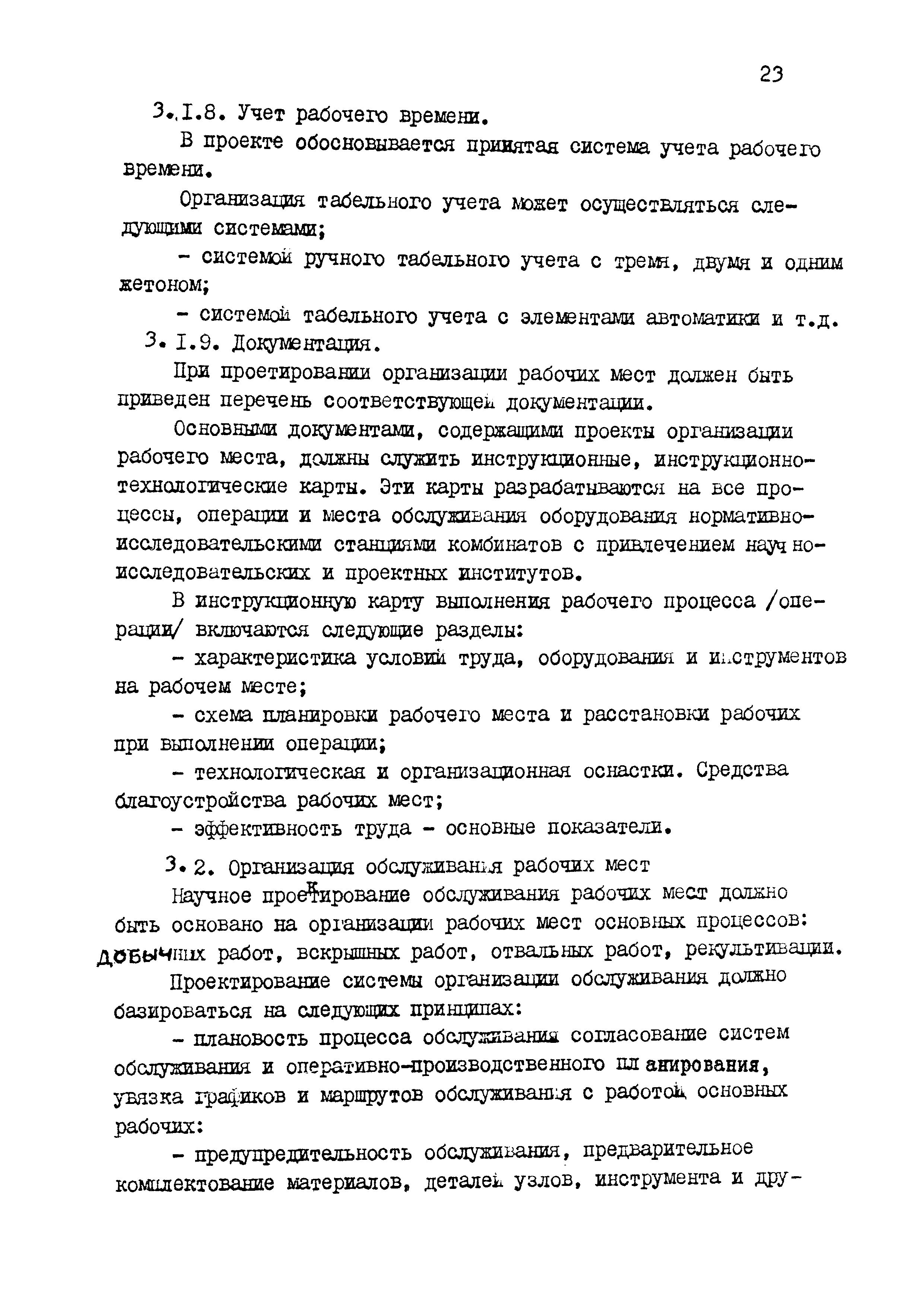 | Область применения: | Отраслевые требования и нормативные материалы по научной организации труда, которые должны учитываться при проектировании новых и реконструкции действующих угольных (сланцевых) разрезов включают требования НОТ, нормативные материалы и методические указания по разработке организации труда и системы управления предприятием на угольных (сланцевых) разрезах. |