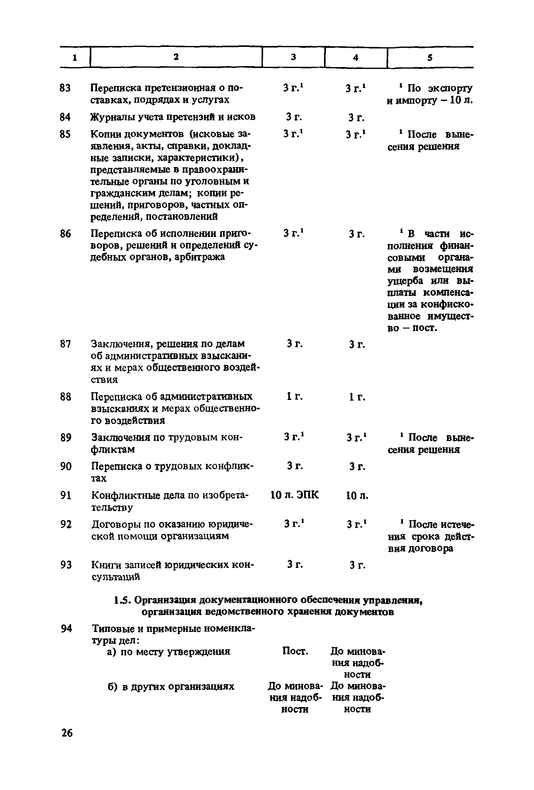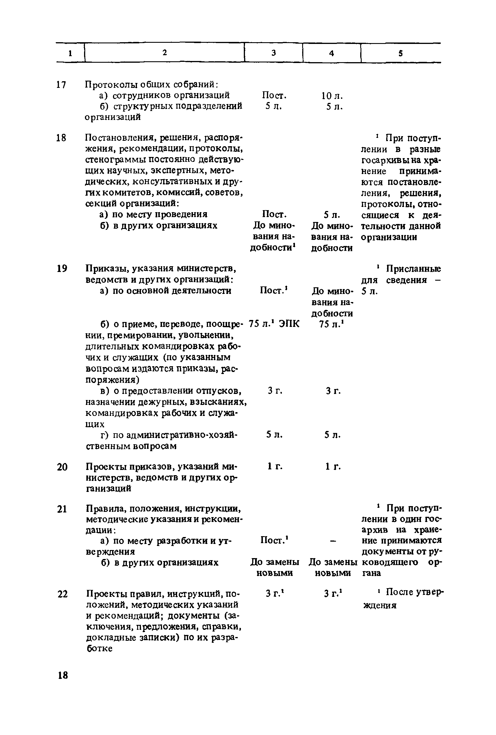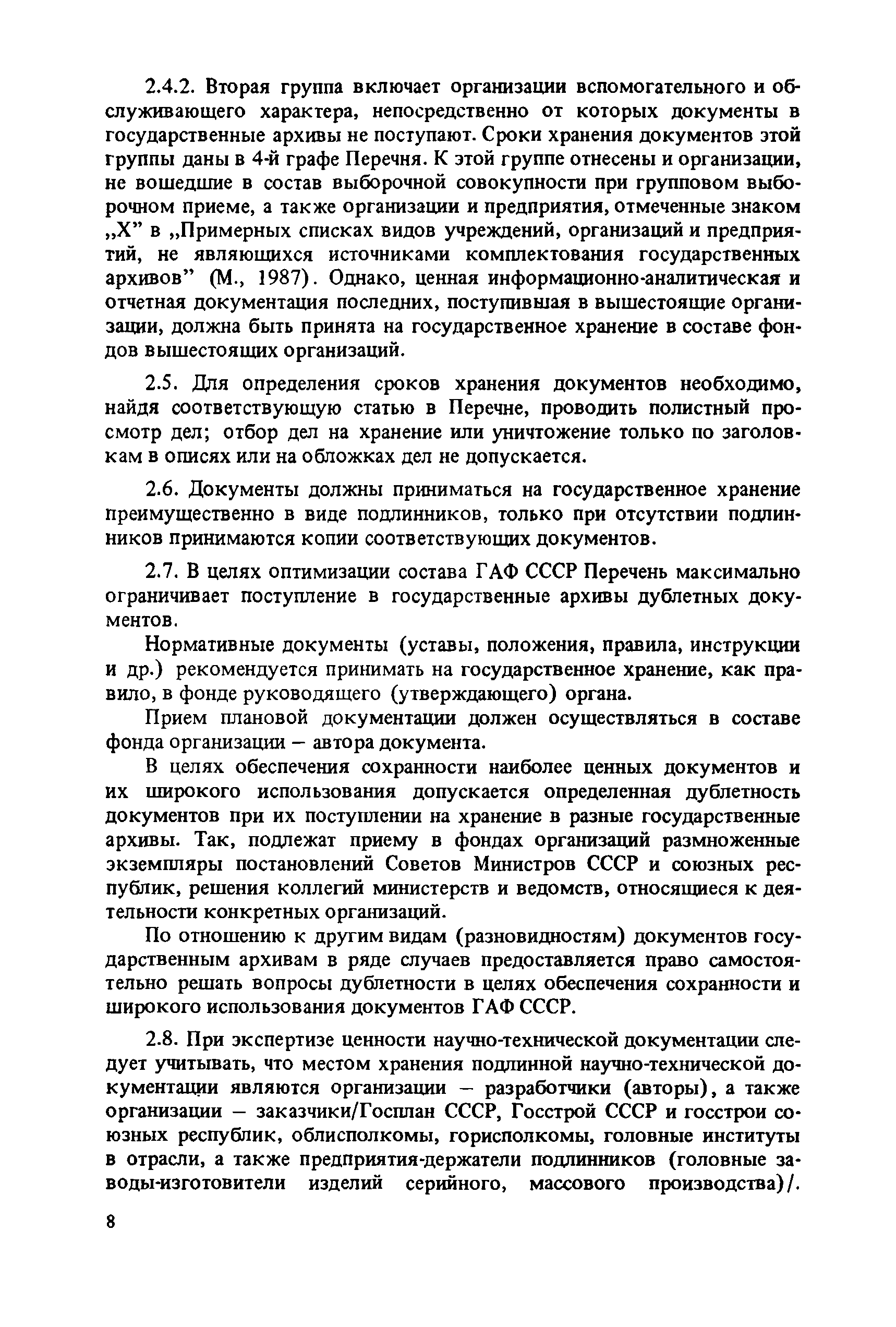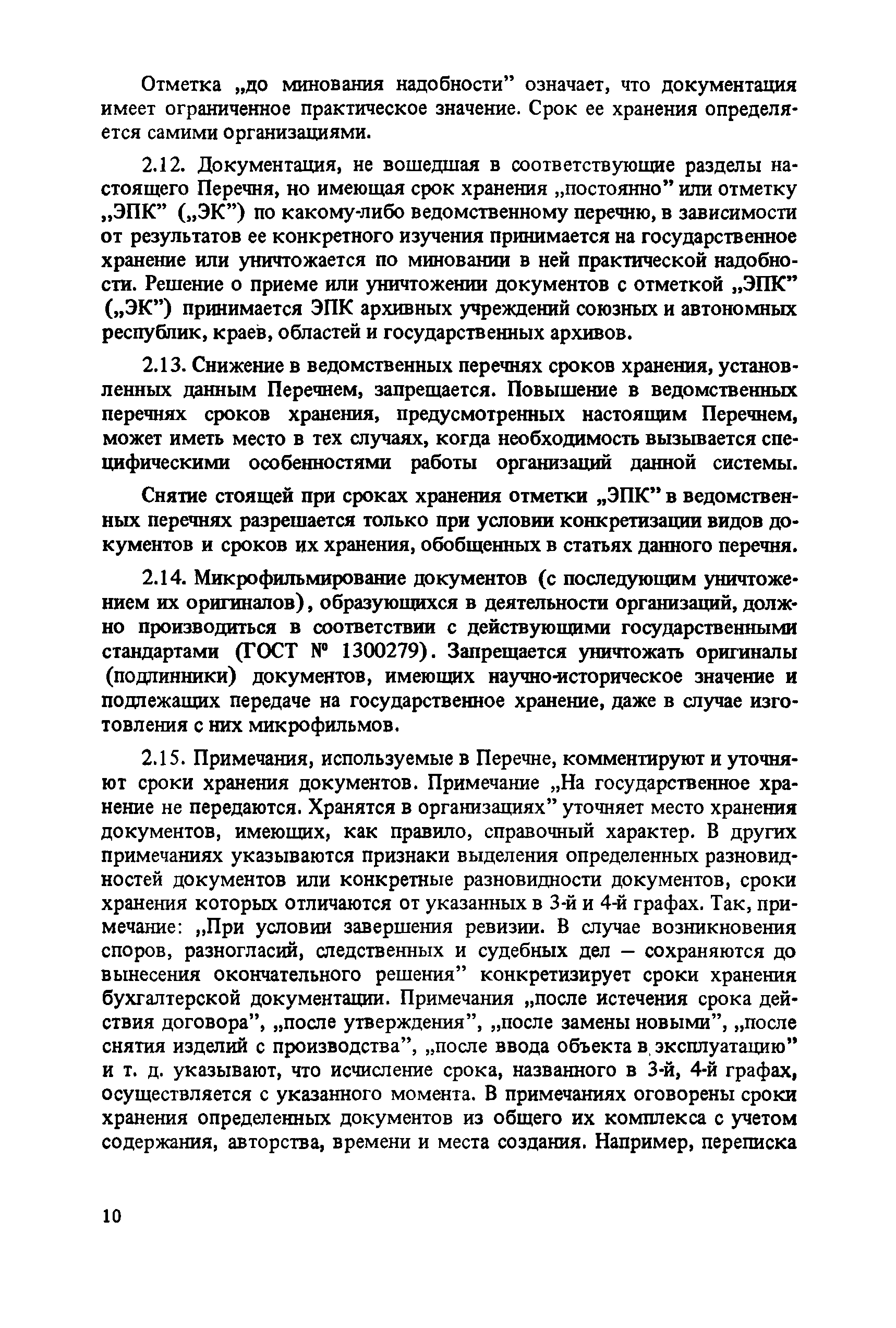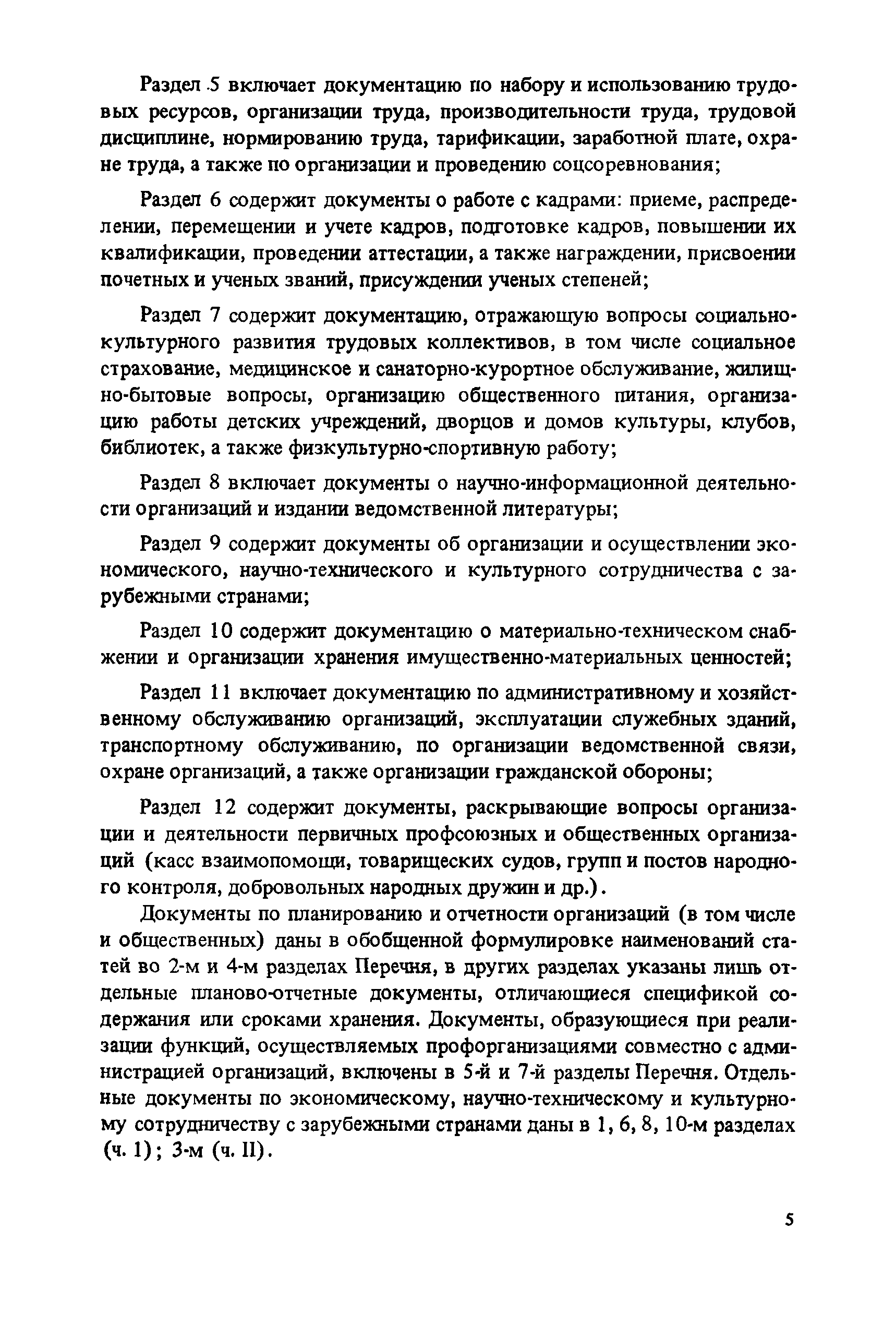 Перечень типовых документов, образующихся в деятельности госкомитетов, министерств, ведомств и других учреждений, организаций, предприятий, с указанием сроков хранения| Статус: | справочные материалы, мп, тпр | | Название рус.: | Перечень типовых документов, образующихся в деятельности госкомитетов, министерств, ведомств и других учреждений, организаций, предприятий, с указанием сроков хранения | | Дата добавления в базу: | 01.01.2021 | | Дата актуализации: | 01.01.2021 | | Область применения: | Перечень включает современные типовые документы, образующиеся при документировании общих для всех учреждений, организаций, предприятий или для большинства из них функций управления, а также функций по осуществлению научно-технической и производственной деятельности, с указанием сроков хранения документов. Является основным нормативным пособием при определении сроков хранения и отборе документов на государственное хранение или уничтожение и должен быть использован при подготовке других пособий по экспертизе ценности документов и комплектованию архивов. Перечень предназначен для работников государственных и ведомственных архивов, а также специалистов учреждений, организаций, предприятий. | | Оглавление: | Указания по применению перечня 1. Общие положения 2. Структура перечня и порядок его применения 3. Организация проведения и оформления отбора документов на хранение и уничтожение Часть I. Документы, образующиеся в управленческой деятельности 1. Организация системы управления 1.1. Распорядительная деятельность 1.2. Контроль 1.3. Организационные основы управления 1.4. Правовое обеспечение управления 1.5. Организация документационного обеспечения управления, организации ведомственного хранения документов 2. Прогнозирование, планирование, ценообразование 2.1. Организация и методика планирования 2.2. Прогнозирование и перспективное планирование . . . 2.3. Текущее планирование 2.4. Ценообразование 3. Финансировавшие, кредитование 3.1. Финансирование 3.2. Кредитование 4. Учет и отчетность 4.1. Оперативный и статистический учет и отчетность 4.2. Бухгалтерский учет и отчетность 5. Организация использования трудовых ресурсов, социалистическое соревнование 5.1. Набор и использование трудовых ресурсов 5.2. Организация труда, производительность труда, трудовая дисциплина 5.3. Техническое нормирование, тарификация, заработная плата 5.4. Охрана труда 5.5. Социалистическое соревнование 6. Работа с кадрами 6.1. Прием, распределение, перемещение и учет кадров 6.2. Подготовка кадров, повышение их квалификации 6.3. Проведение аттестации и установление квалификации 6.4. Награждение, присвоение почетных званий 6.5. Присвоение ученых званий, присуждение ученых степеней 7. Социально-культурное развитие трудовых коллективов 7.1. Социальное страхование трудящихся 7.2. Медицинское и санаторно-курортное обслуживание 7.3. Жилищно-бытовые вопросы и организация общественного питания 7.4. Оздоровительно-воспитательная работа с детьми 7.5. Организация досуга, повышение культурного уровня трудящихся, развитие самодеятельного творчества 7.6. Физкультурно-спортивная работа в трудовых коллективах 8. Научно-информационная деятельность 8.1. Научно-техническая информация 8.2. Издательская деятельность 9. Экономическое, научно-техническое и культурное сотрудничество с зарубежными странами 9.1. Организация с