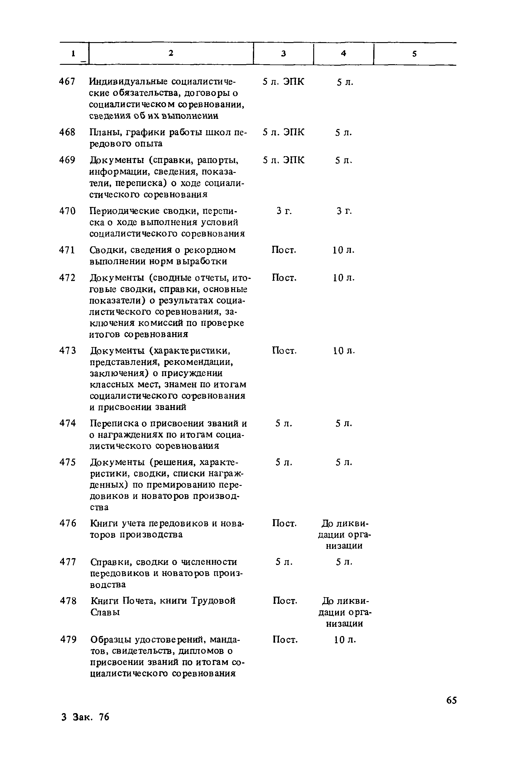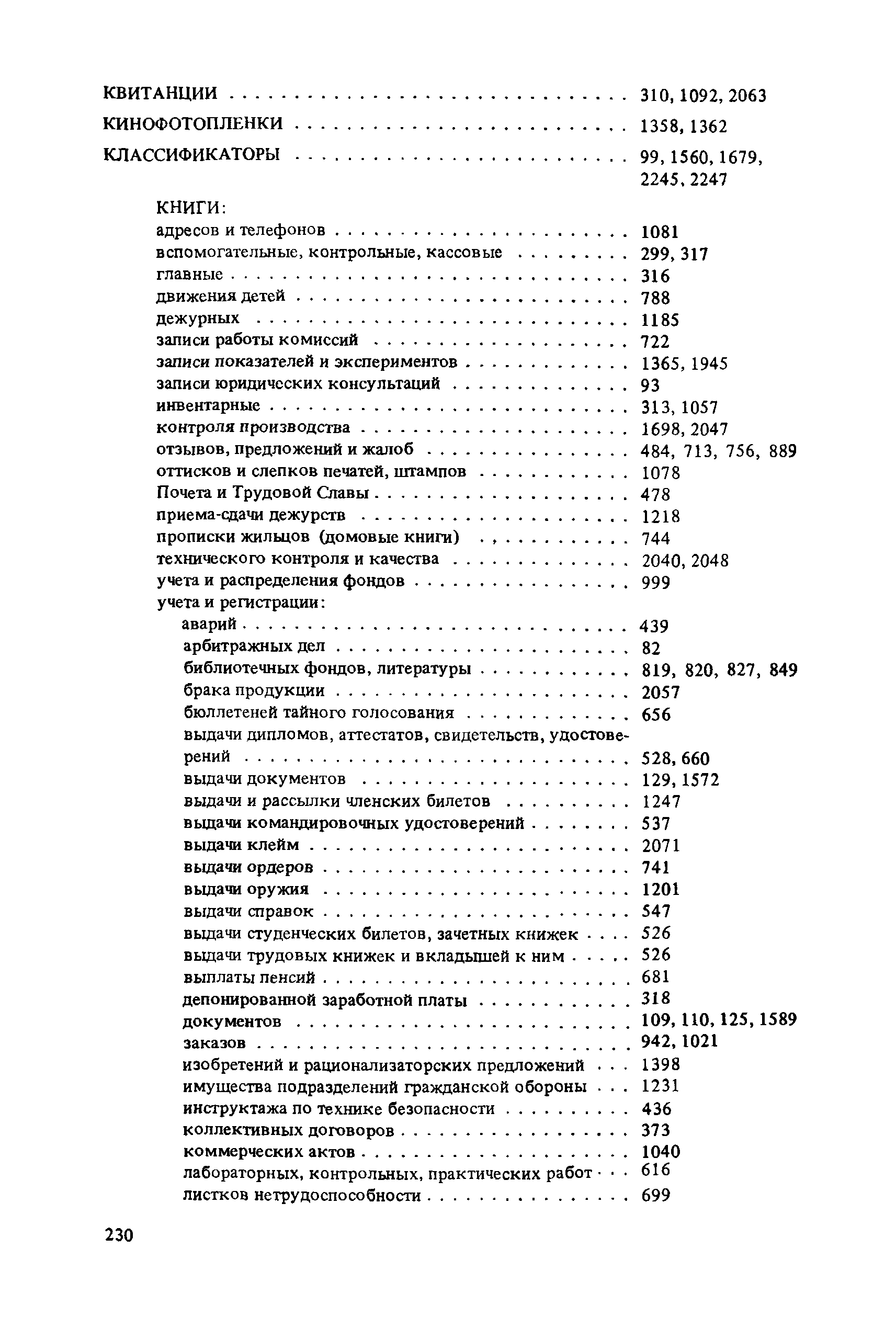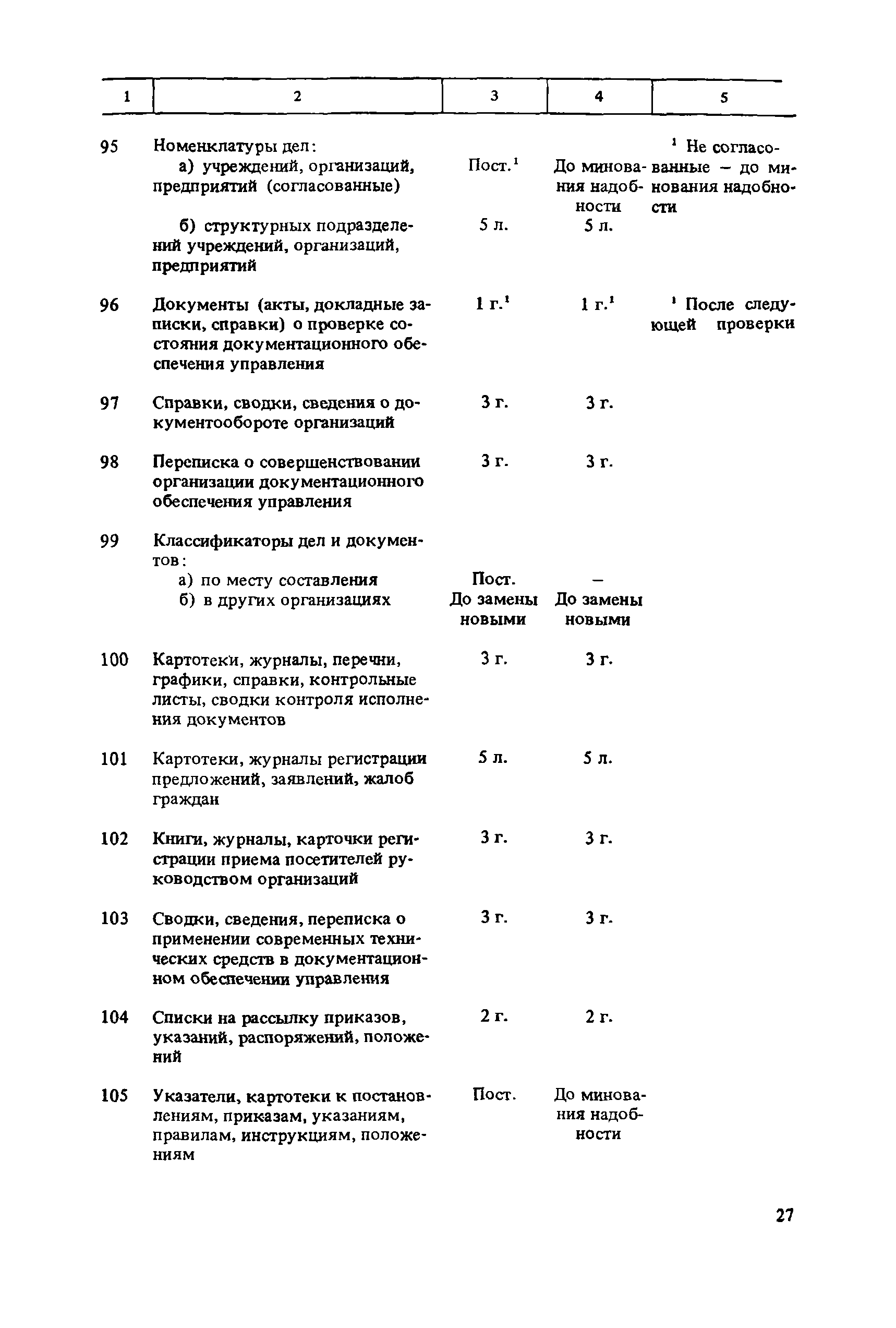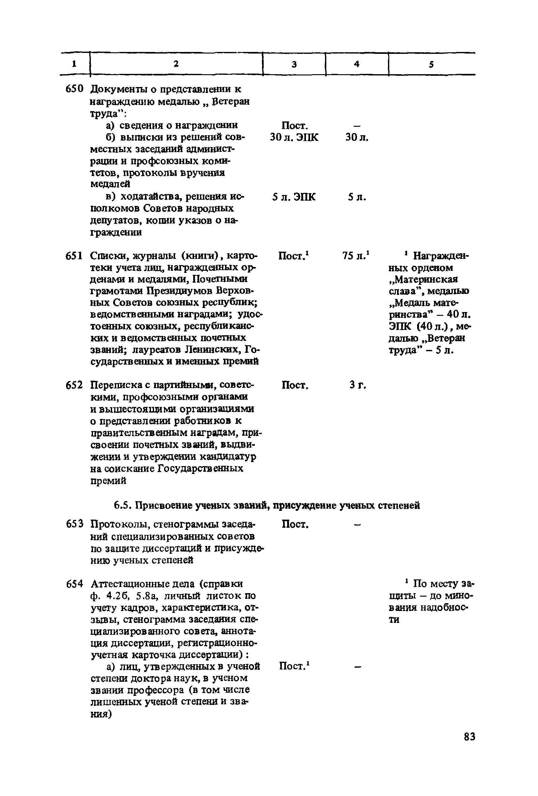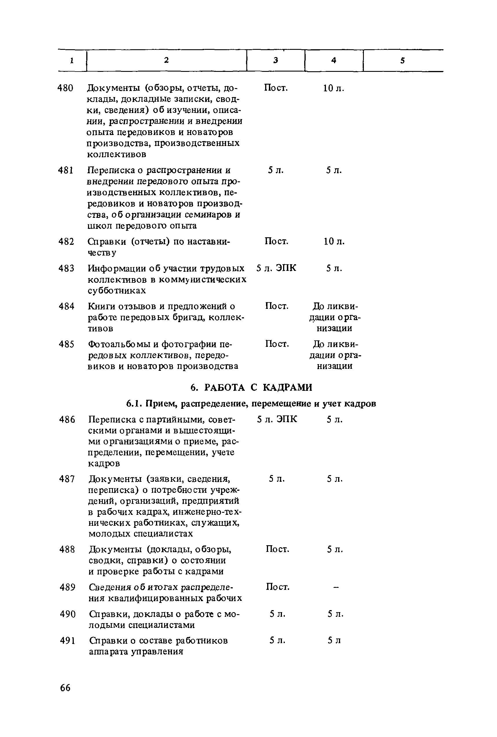 Перечень типовых документов, образующихся в деятельности госкомитетов, министерств, ведомств и других учреждений, организаций, предприятий, с указанием сроков хранения| Статус: | справочные материалы, мп, тпр | | Название рус.: | Перечень типовых документов, образующихся в деятельности госкомитетов, министерств, ведомств и других учреждений, организаций, предприятий, с указанием сроков хранения | | Дата добавления в базу: | 01.01.2021 | | Дата актуализации: | 01.01.2021 | | Область применения: | Перечень включает современные типовые документы, образующиеся при документировании общих для всех учреждений, организаций, предприятий или для большинства из них функций управления, а также функций по осуществлению научно-технической и производственной деятельности, с указанием сроков хранения документов. Является основным нормативным пособием при определении сроков хранения и отборе документов на государственное хранение или уничтожение и должен быть использован при подготовке других пособий по экспертизе ценности документов и комплектованию архивов. Перечень предназначен для работников государственных и ведомственных архивов, а также специалистов учреждений, организаций, предприятий. | | Оглавление: | Указания по применению перечня 1. Общие положения 2. Структура перечня и порядок его применения 3. Организация проведения и оформления отбора документов на хранение и уничтожение Часть I. Документы, образующиеся в управленческой деятельности 1. Организация системы управления 1.1. Распорядительная деятельность 1.2. Контроль 1.3. Организационные основы управления 1.4. Правовое обеспечение управления 1.5. Организация документационного обеспечения управления, организации ведомственного хранения документов 2. Прогнозирование, планирование, ценообразование 2.1. Организация и методика планирования 2.2. Прогнозирование и перспективное планирование . . . 2.3. Текущее планирование 2.4. Ценообразование 3. Финансировавшие, кредитование 3.1. Финансирование 3.2. Кредитование 4. Учет и отчетность 4.1. Оперативный и статистический учет и отчетность 4.2. Бухгалтерский учет и отчетность 5. Организация использования трудовых ресурсов, социалистическое соревнование 5.1. Набор и использование трудовых ресурсов 5.2. Организация труда, производительность труда, трудовая дисциплина 5.3. Техническое нормирование, тарификация, заработная плата 5.4. Охрана труда 5.5. Социалистическое соревнование 6. Работа с кадрами 6.1. Прием, распределение, перемещение и учет кадров 6.2. Подготовка кадров, повышение их квалификации 6.3. Проведение аттестации и установление квалификации 6.4. Награждение, присвоение почетных званий 6.5. Присвоение ученых званий, присуждение ученых степеней 7. Социально-культурное развитие трудовых коллективов 7.1. Социальное страхование трудящихся 7.2. Медицинское и санаторно-курортное обслуживание 7.3. Жилищно-бытовые вопросы и организация общественного питания 7.4. Оздоровительно-воспитательная работа с детьми 7.5. Организация досуга, повышение культурного уровня трудящихся, развитие самодеятельного творчества 7.6. Физкультурно-спортивная работа в трудовых коллективах 8. Научно-информационная деятельность 8.1. Научно-техническая информация 8.2. Издательская деятельность 9. Экономическое, научно-техническое и культурное сотрудничество с зарубежными странами 9.1. Организация с