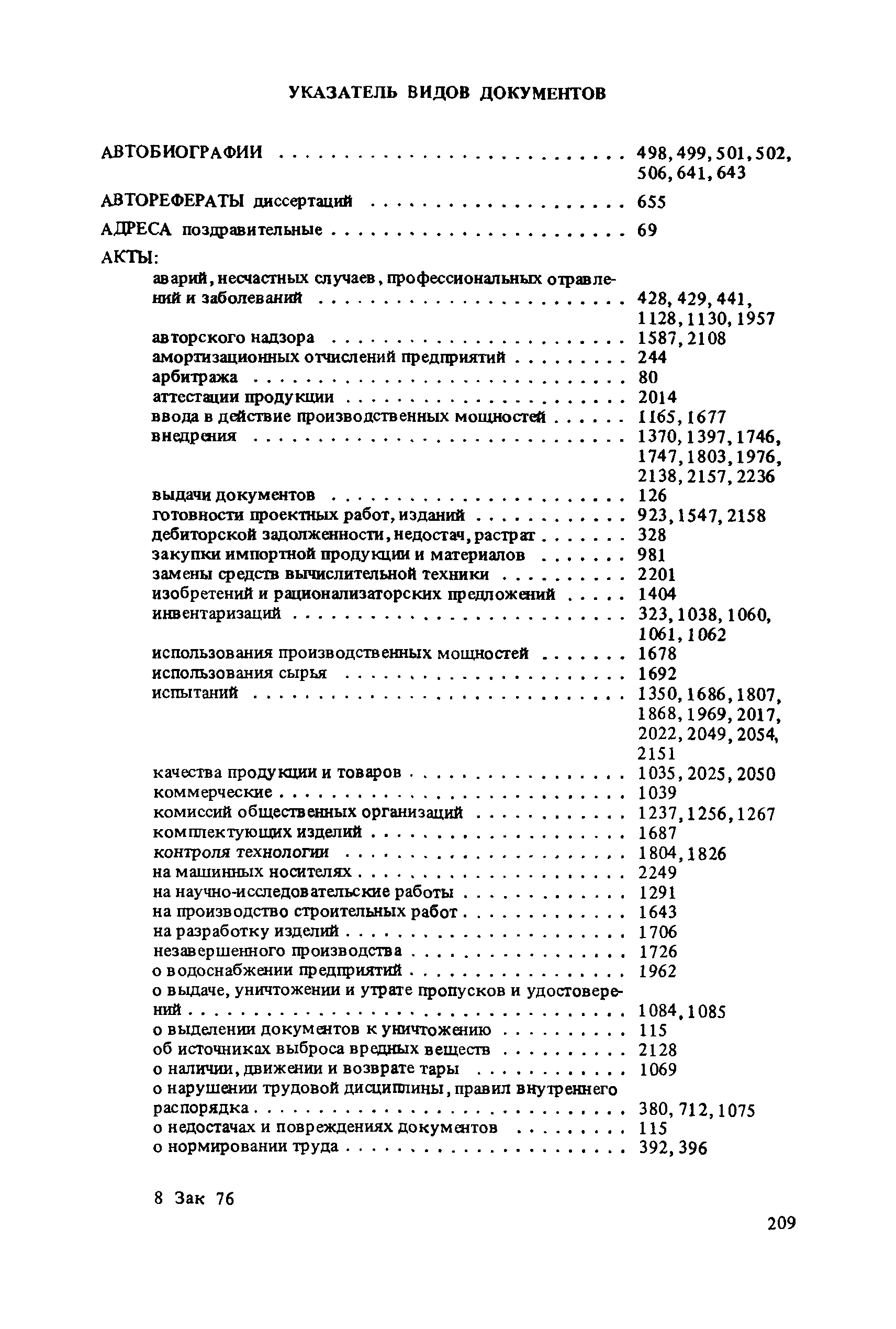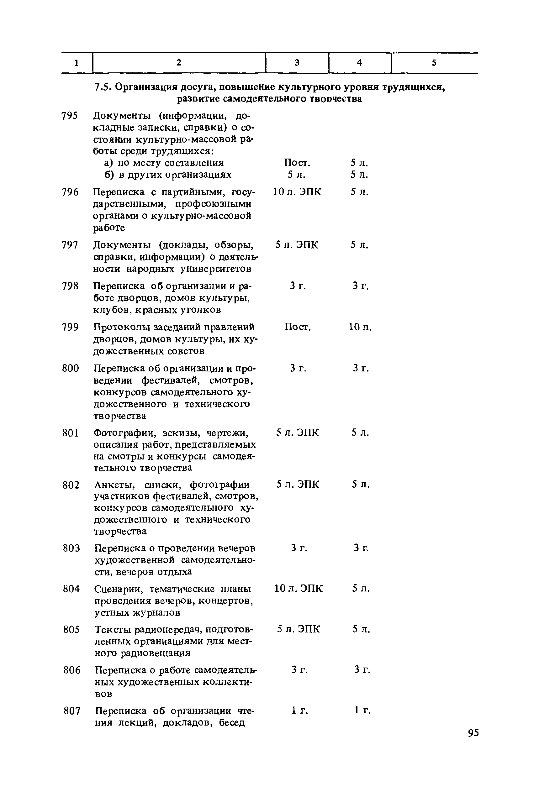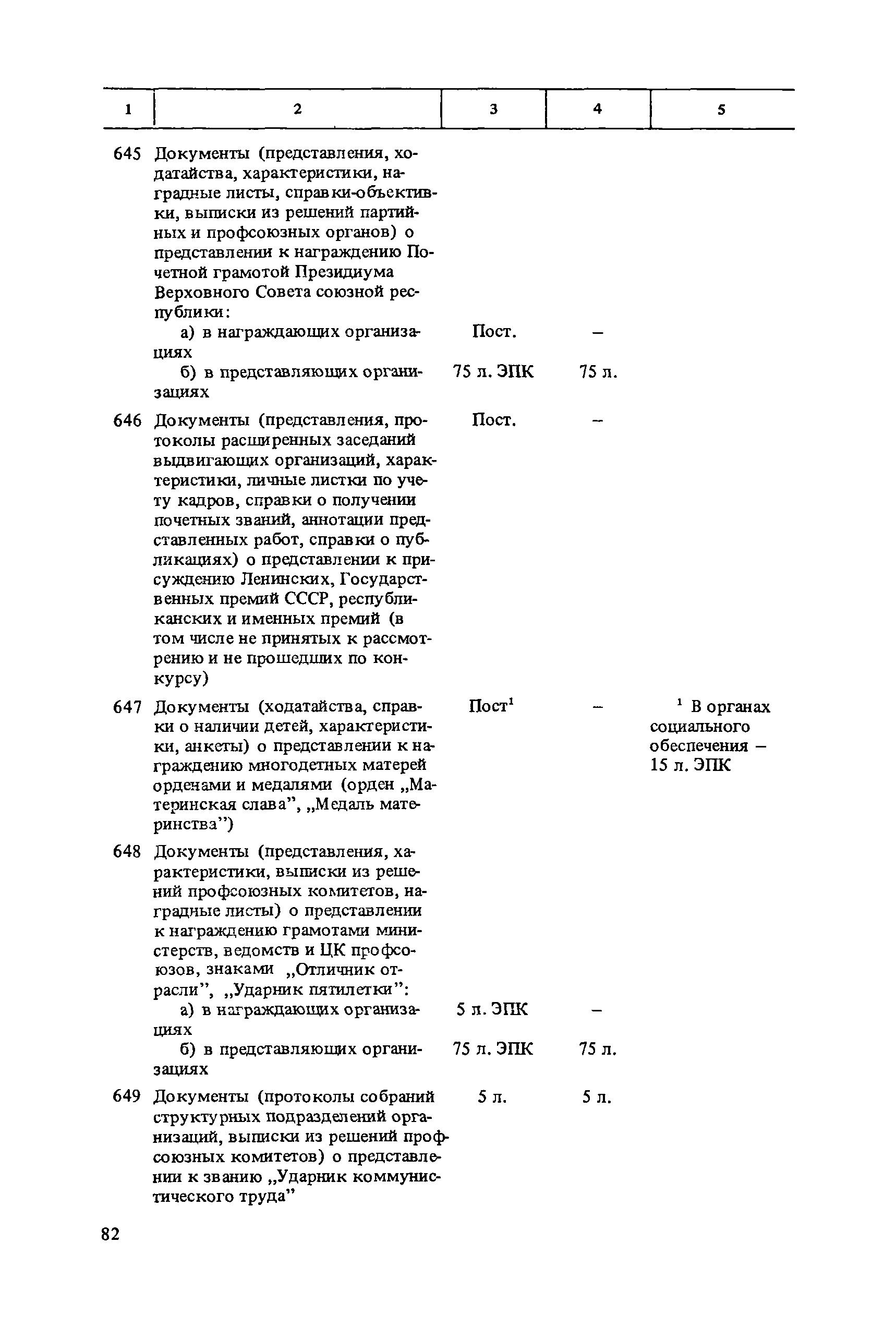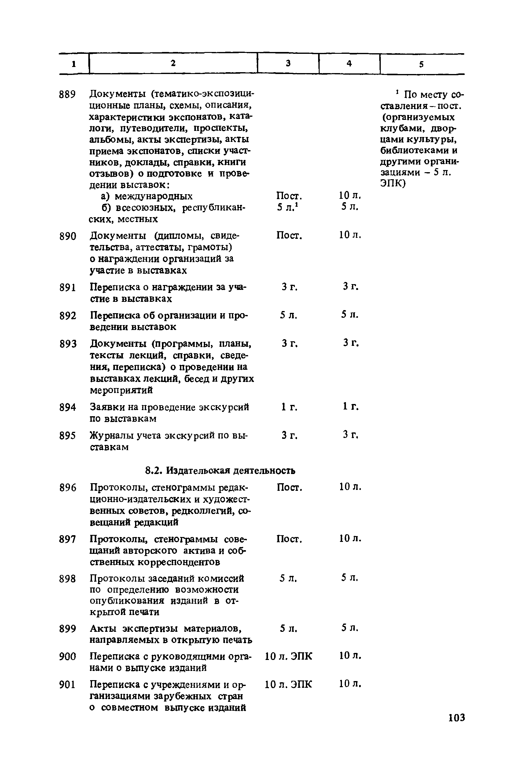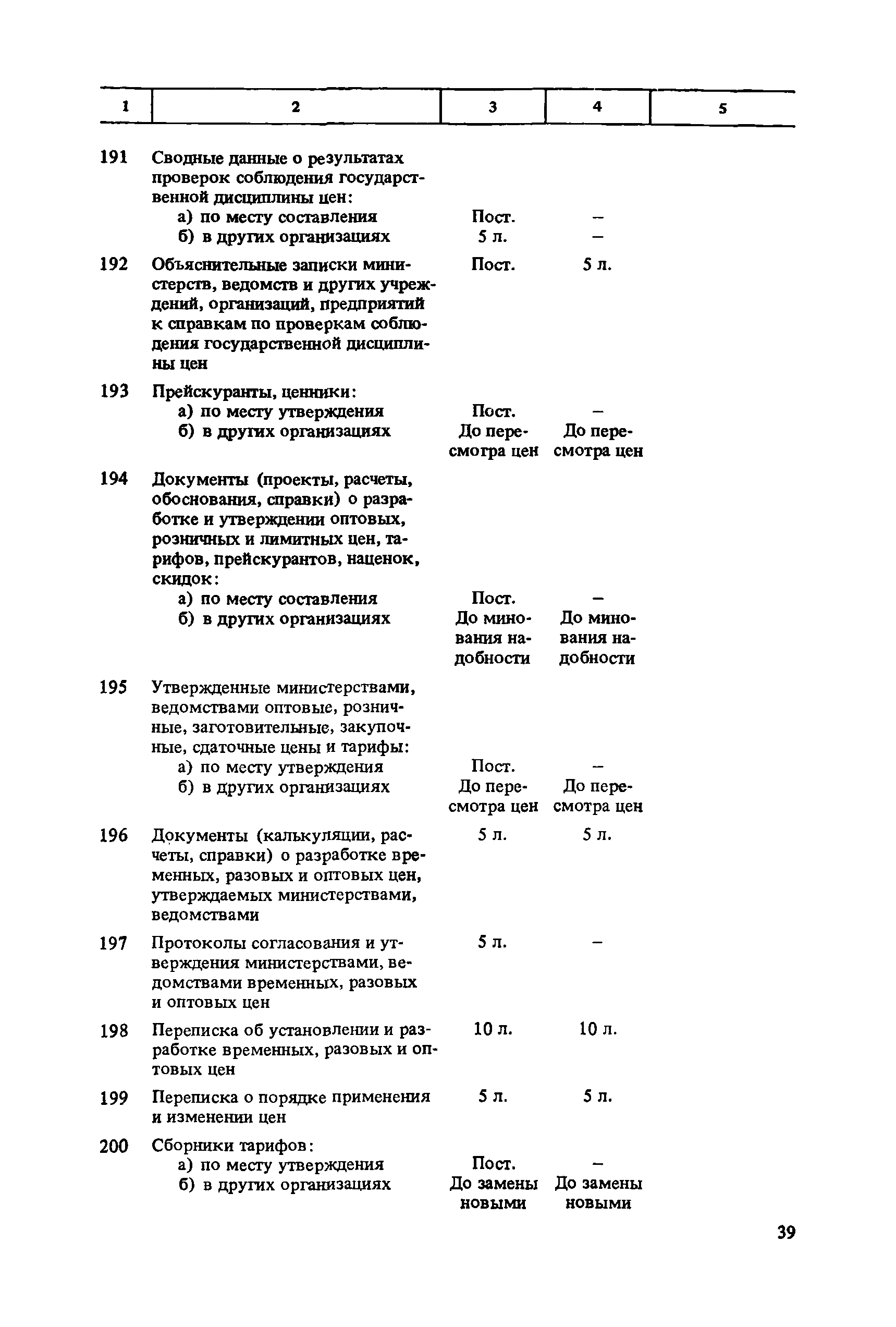 Перечень типовых документов, образующихся в деятельности госкомитетов, министерств, ведомств и других учреждений, организаций, предприятий, с указанием сроков хранения| Статус: | справочные материалы, мп, тпр | | Название рус.: | Перечень типовых документов, образующихся в деятельности госкомитетов, министерств, ведомств и других учреждений, организаций, предприятий, с указанием сроков хранения | | Дата добавления в базу: | 01.01.2021 | | Дата актуализации: | 01.01.2021 | | Область применения: | Перечень включает современные типовые документы, образующиеся при документировании общих для всех учреждений, организаций, предприятий или для большинства из них функций управления, а также функций по осуществлению научно-технической и производственной деятельности, с указанием сроков хранения документов. Является основным нормативным пособием при определении сроков хранения и отборе документов на государственное хранение или уничтожение и должен быть использован при подготовке других пособий по экспертизе ценности документов и комплектованию архивов. Перечень предназначен для работников государственных и ведомственных архивов, а также специалистов учреждений, организаций, предприятий. | | Оглавление: | Указания по применению перечня 1. Общие положения 2. Структура перечня и порядок его применения 3. Организация проведения и оформления отбора документов на хранение и уничтожение Часть I. Документы, образующиеся в управленческой деятельности 1. Организация системы управления 1.1. Распорядительная деятельность 1.2. Контроль 1.3. Организационные основы управления 1.4. Правовое обеспечение управления 1.5. Организация документационного обеспечения управления, организации ведомственного хранения документов 2. Прогнозирование, планирование, ценообразование 2.1. Организация и методика планирования 2.2. Прогнозирование и перспективное планирование . . . 2.3. Текущее планирование 2.4. Ценообразование 3. Финансировавшие, кредитование 3.1. Финансирование 3.2. Кредитование 4. Учет и отчетность 4.1. Оперативный и статистический учет и отчетность 4.2. Бухгалтерский учет и отчетность 5. Организация использования трудовых ресурсов, социалистическое соревнование 5.1. Набор и использование трудовых ресурсов 5.2. Организация труда, производительность труда, трудовая дисциплина 5.3. Техническое нормирование, тарификация, заработная плата 5.4. Охрана труда 5.5. Социалистическое соревнование 6. Работа с кадрами 6.1. Прием, распределение, перемещение и учет кадров 6.2. Подготовка кадров, повышение их квалификации 6.3. Проведение аттестации и установление квалификации 6.4. Награждение, присвоение почетных званий 6.5. Присвоение ученых званий, присуждение ученых степеней 7. Социально-культурное развитие трудовых коллективов 7.1. Социальное страхование трудящихся 7.2. Медицинское и санаторно-курортное обслуживание 7.3. Жилищно-бытовые вопросы и организация общественного питания 7.4. Оздоровительно-воспитательная работа с детьми 7.5. Организация досуга, повышение культурного уровня трудящихся, развитие самодеятельного творчества 7.6. Физкультурно-спортивная работа в трудовых коллективах 8. Научно-информационная деятельность 8.1. Научно-техническая информация 8.2. Издательская деятельность 9. Экономическое, научно-техническое и культурное сотрудничество с зарубежными странами 9.1. Организация с