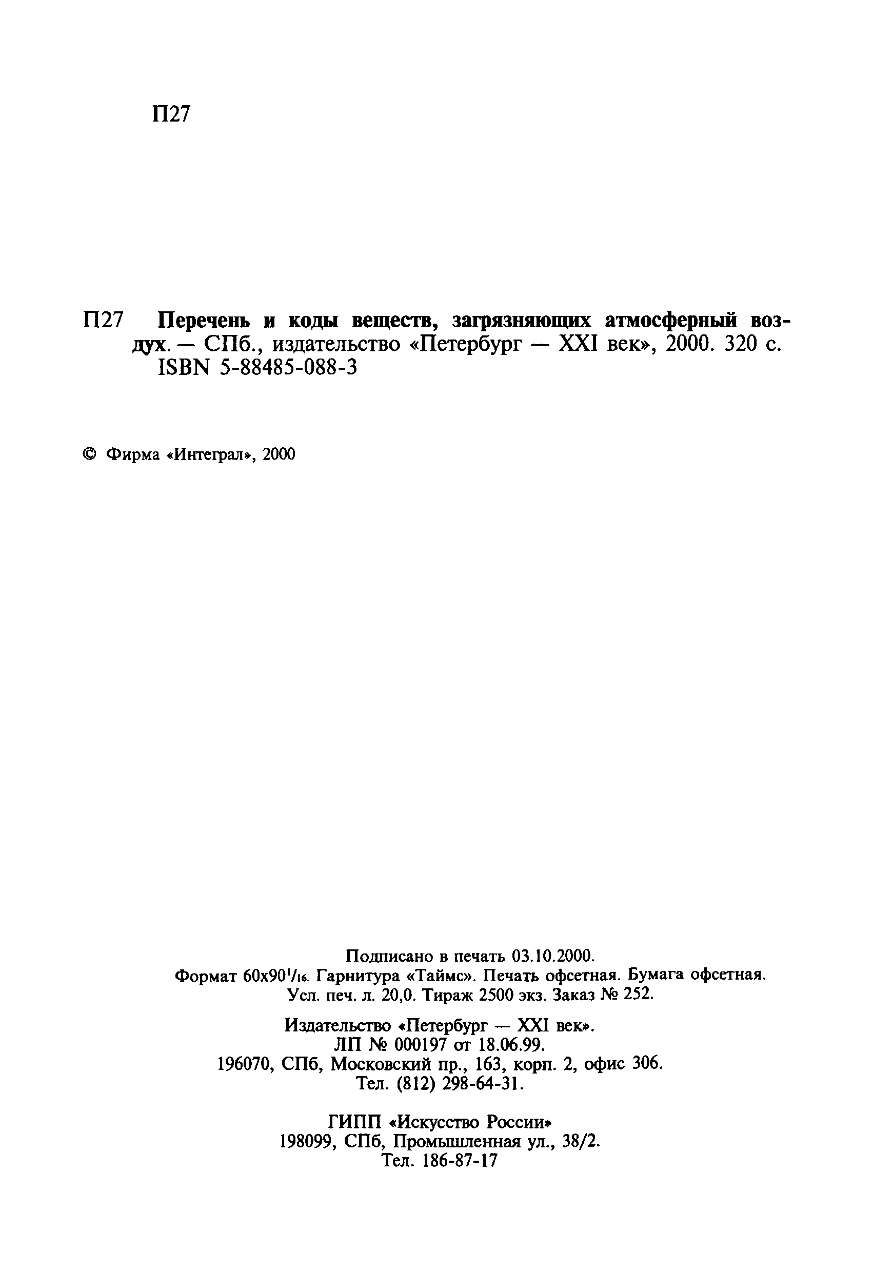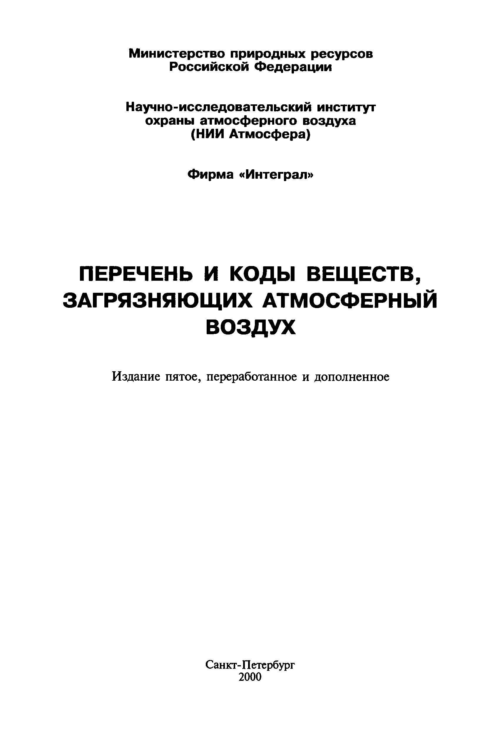 | Название рус.: | Перечень и коды веществ, загрязняющих атмосферный воздух (5 издание) |