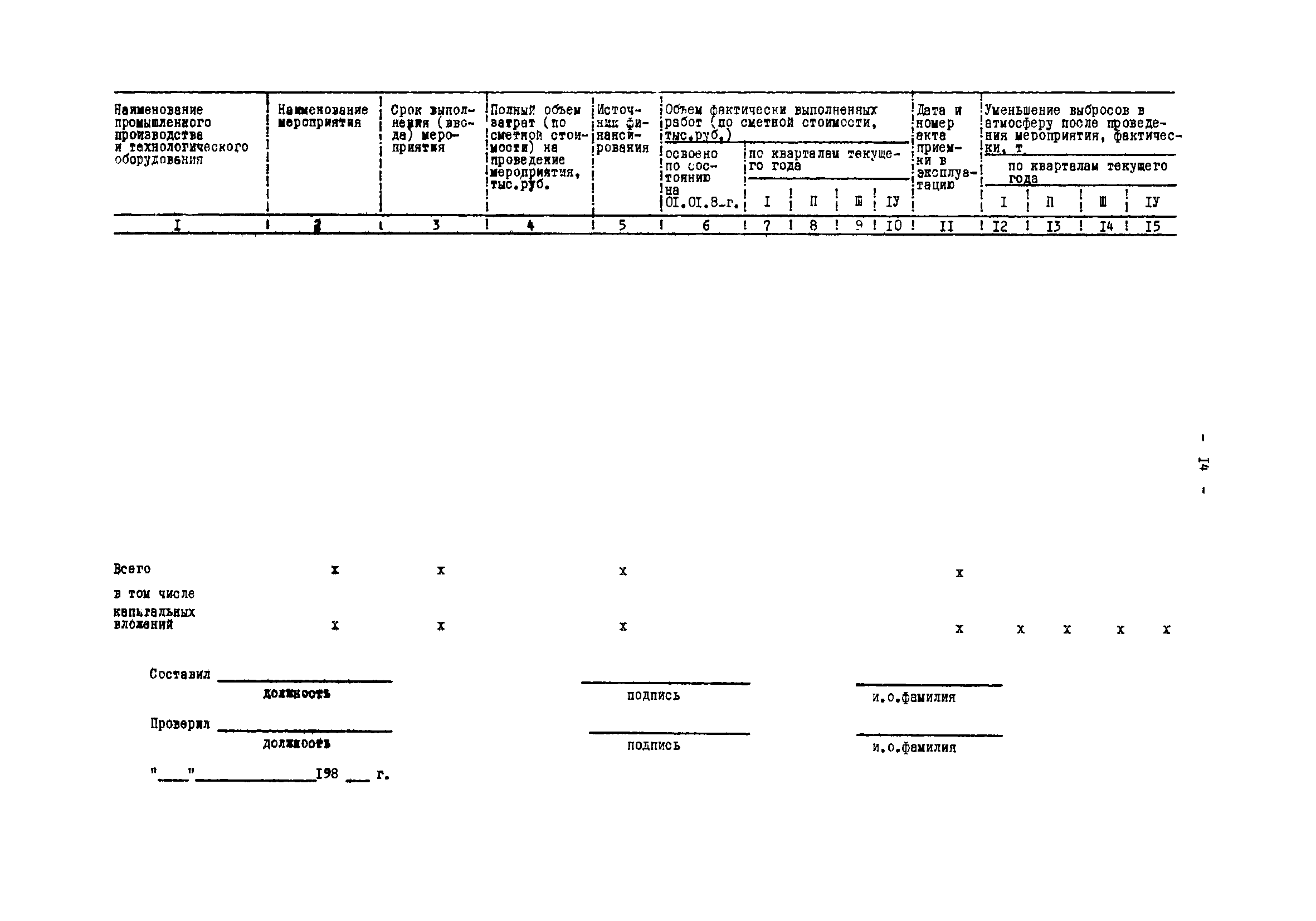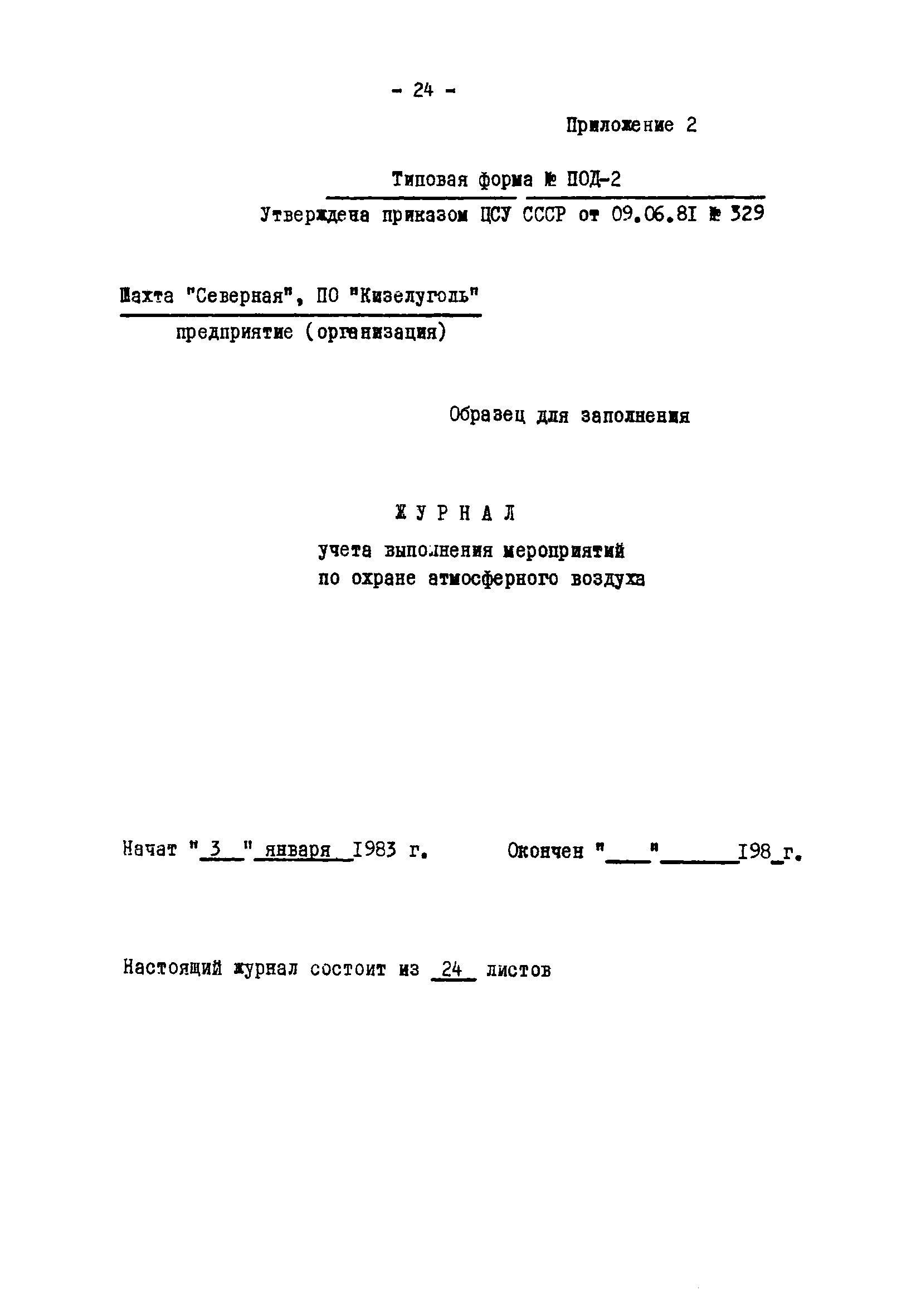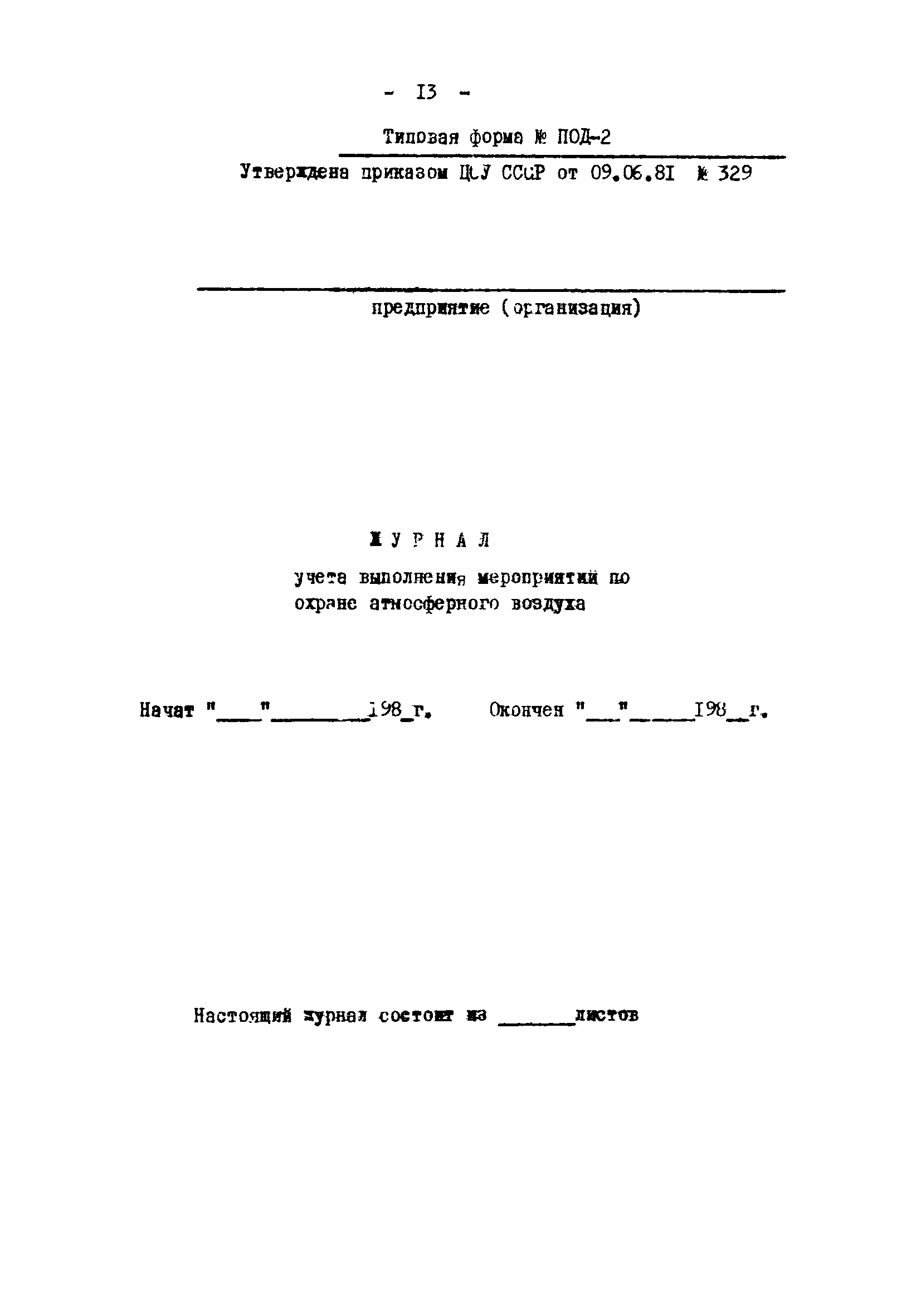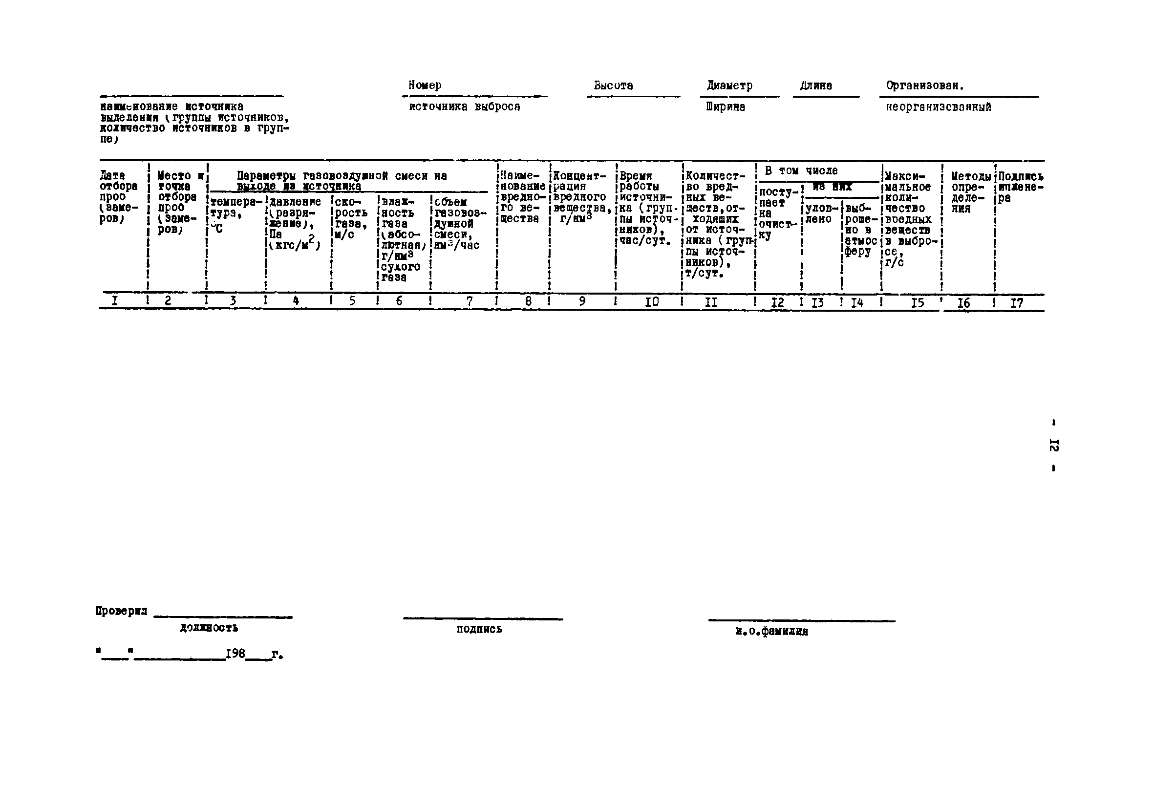 | Оглавление: | 1. Общие положения 2. Организация первичного учета стационарных источников 3. Указания по заполнению журнала учета стационарных источников загрязнения и их характеристик (ПОД-1) 4. Указания по заполнению журнала учета выполнения мероприятий по охране атмосферного воздуха (ПОД-2) 5. Указания по заполнению журнала учета работы газоочистных и пылеулавливающих установок (ПОД-3) 6. Форма журнала ПОД-1 7. Форма журнала ПОД-2 8. Форма журнала ПОД-3 9. Исходные данные для примера заполнения журнала ПОД-1, ПОД-2, ПОД-3 Приложение 1 Пример заполнения журнала ПОД-1 Приложение 2 Пример заполнения журнала ПОД-2 Приложение 3 Пример заполнения журнала ПОД-3 Приложение 4 Перечень основных мероприятий по уменьшению выбросов вредных веществ в атмосферу и расчет их эффективности Приложение 5 Тип очистки Список использованных источников |