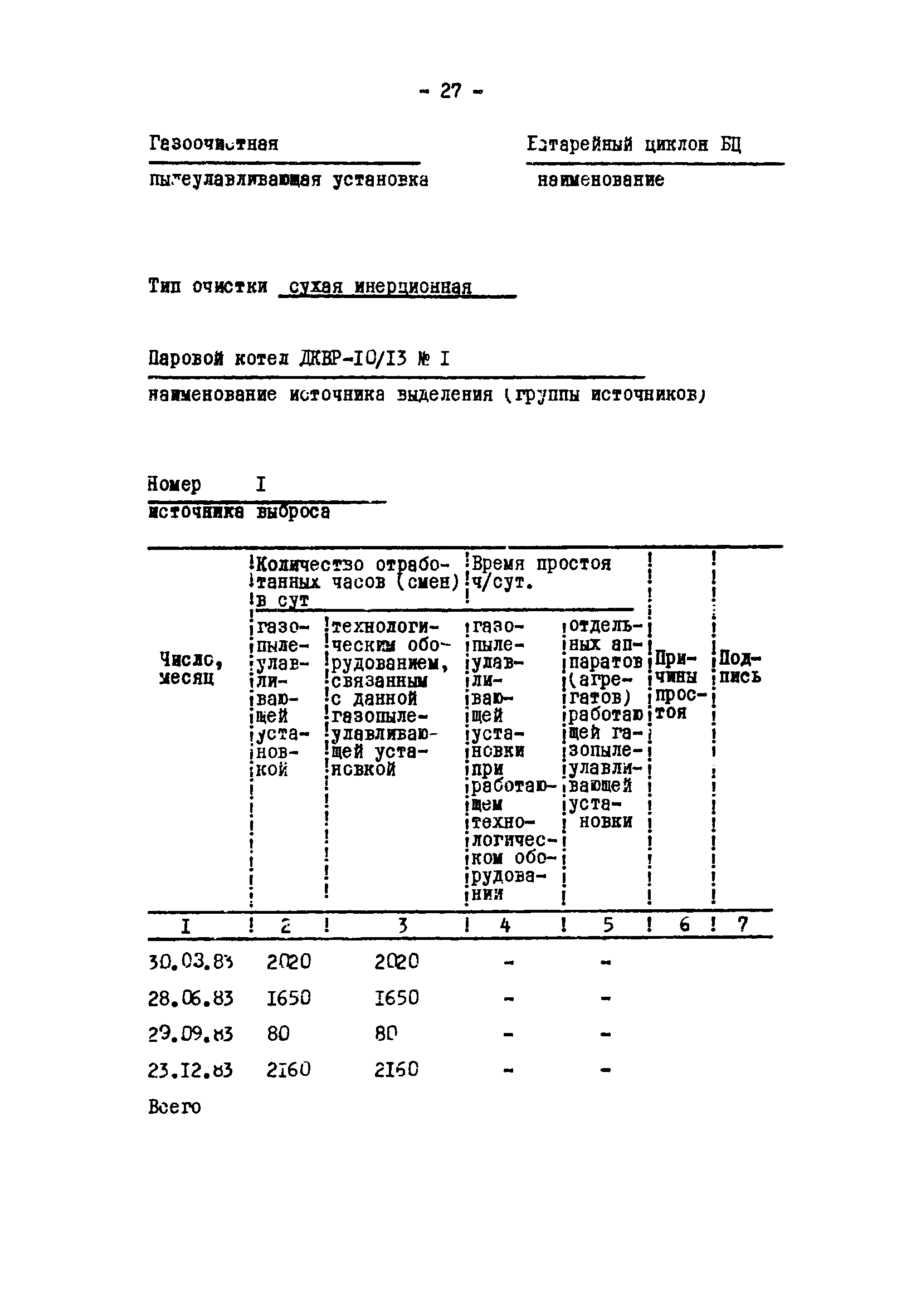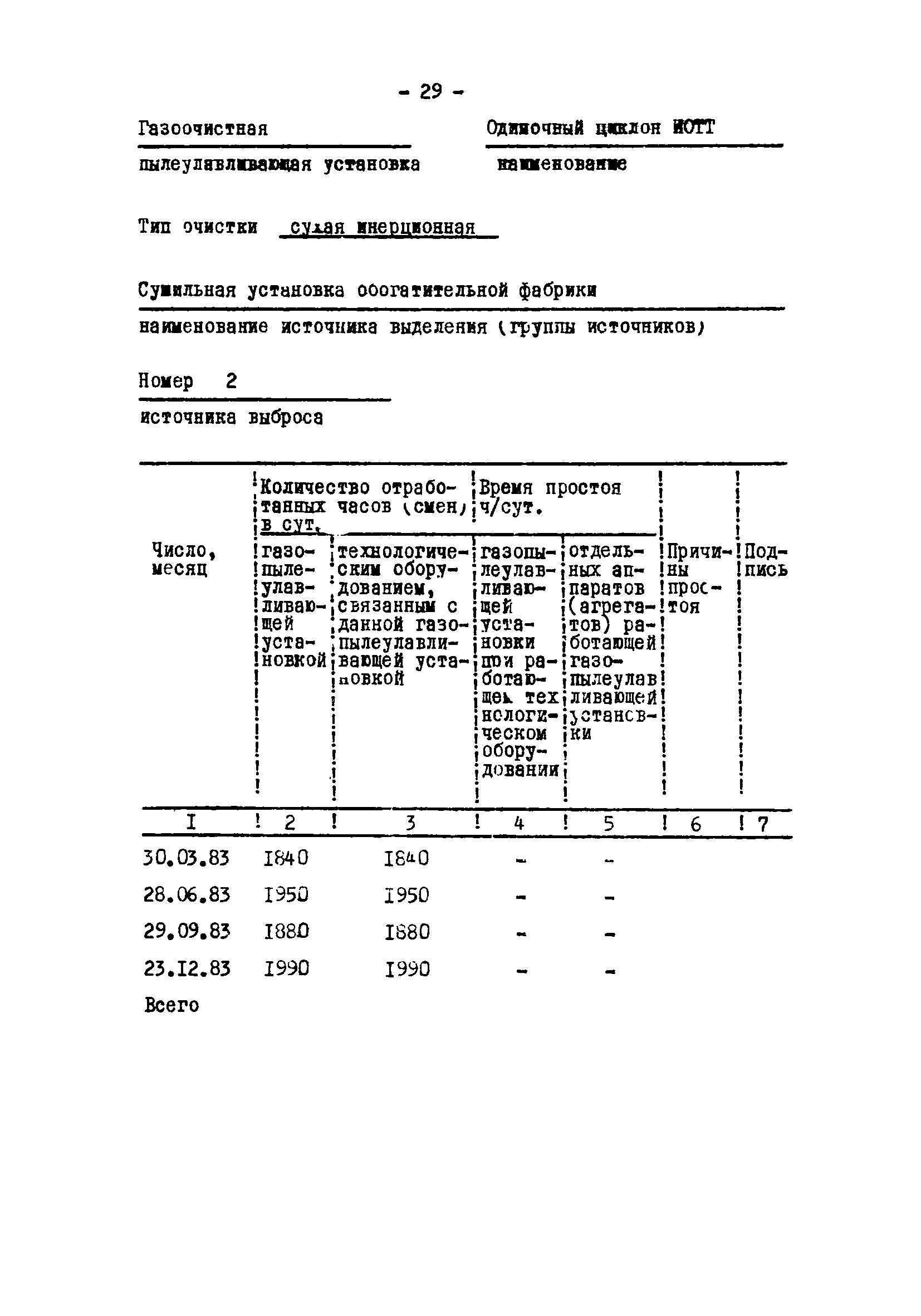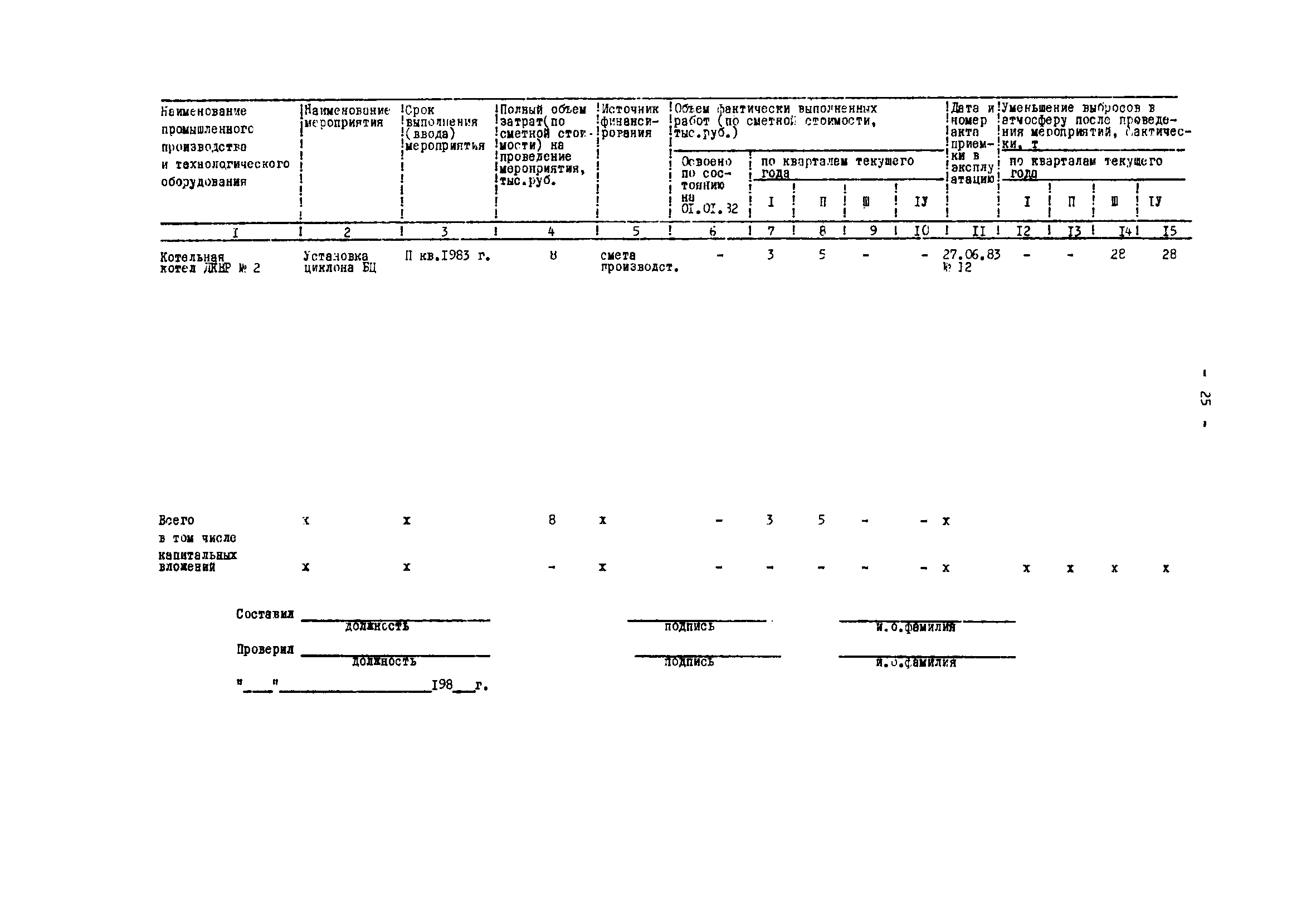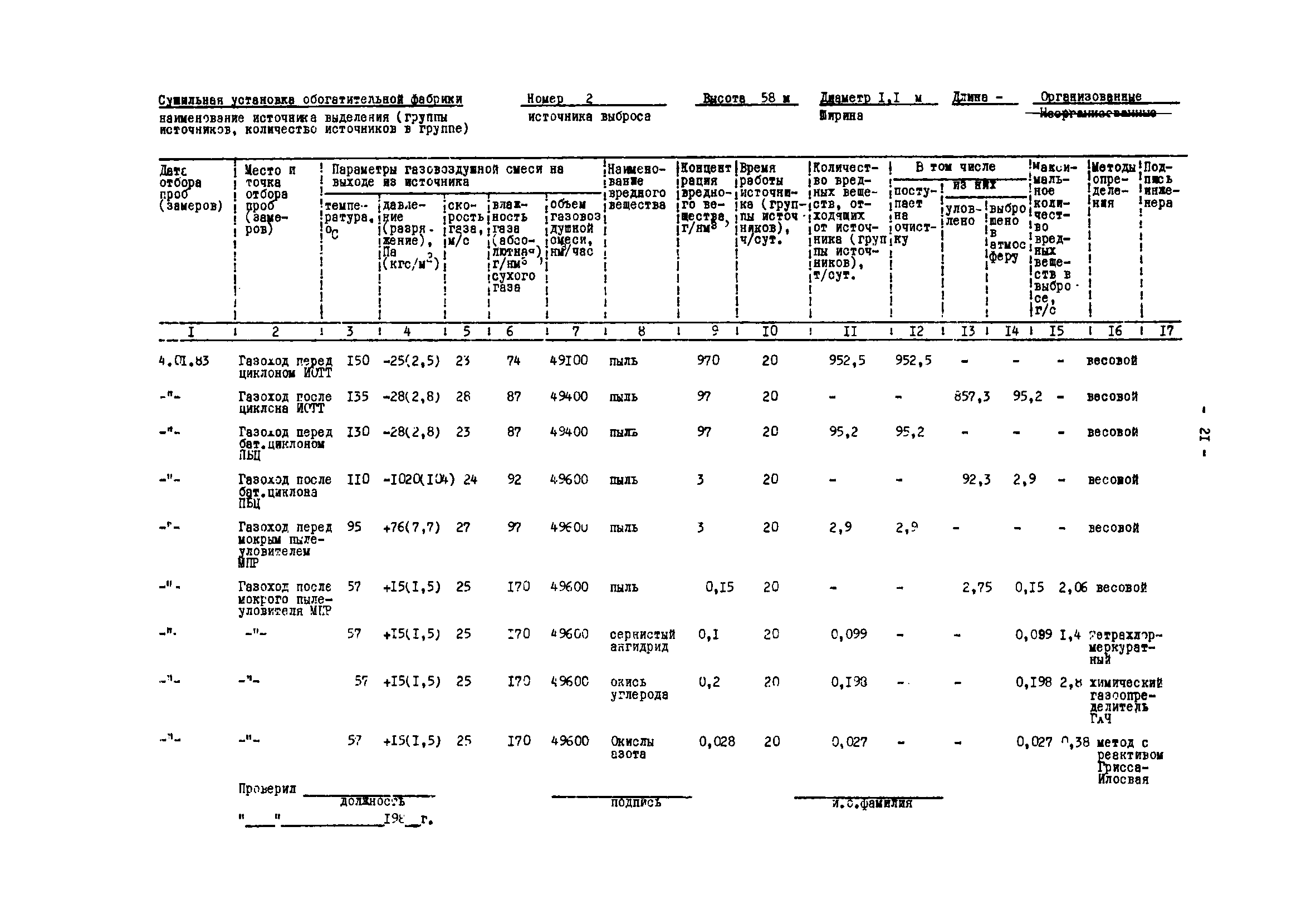 | Оглавление: | 1. Общие положения 2. Организация первичного учета стационарных источников 3. Указания по заполнению журнала учета стационарных источников загрязнения и их характеристик (ПОД-1) 4. Указания по заполнению журнала учета выполнения мероприятий по охране атмосферного воздуха (ПОД-2) 5. Указания по заполнению журнала учета работы газоочистных и пылеулавливающих установок (ПОД-3) 6. Форма журнала ПОД-1 7. Форма журнала ПОД-2 8. Форма журнала ПОД-3 9. Исходные данные для примера заполнения журнала ПОД-1, ПОД-2, ПОД-3 Приложение 1 Пример заполнения журнала ПОД-1 Приложение 2 Пример заполнения журнала ПОД-2 Приложение 3 Пример заполнения журнала ПОД-3 Приложение 4 Перечень основных мероприятий по уменьшению выбросов вредных веществ в атмосферу и расчет их эффективности Приложение 5 Тип очистки Список использованных источников |
