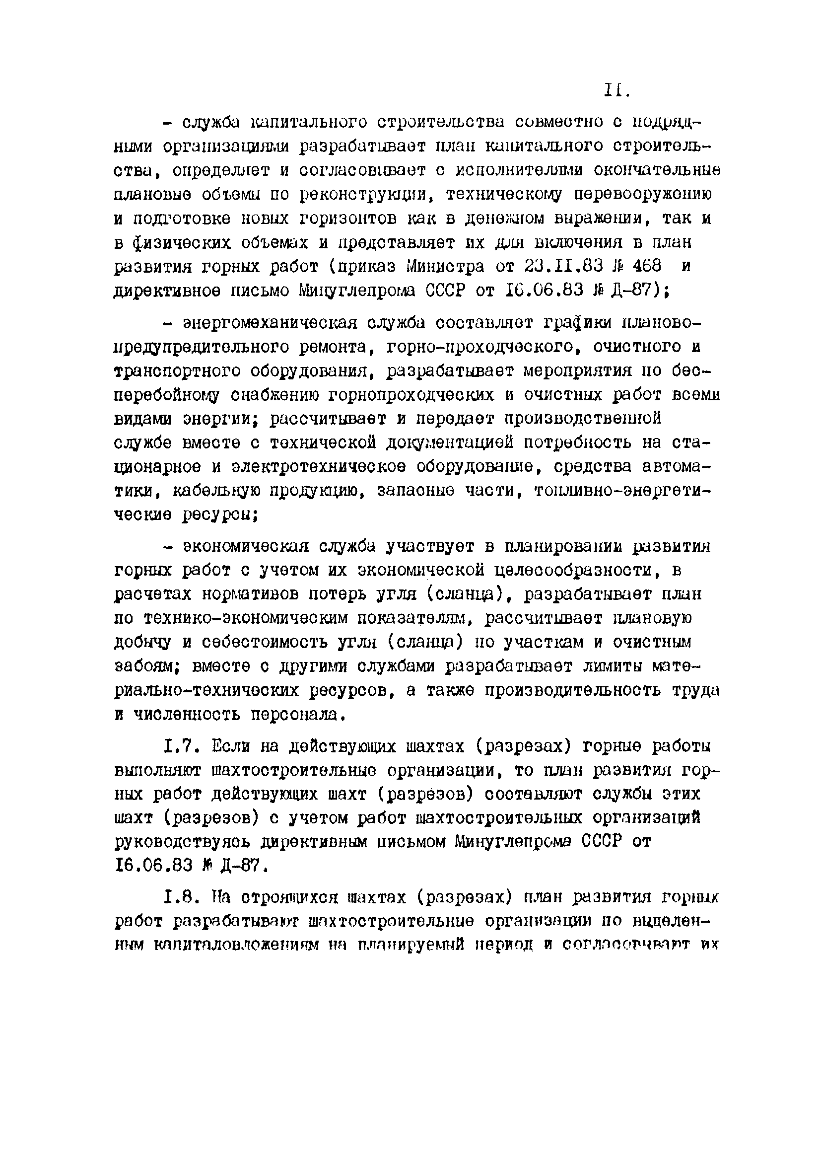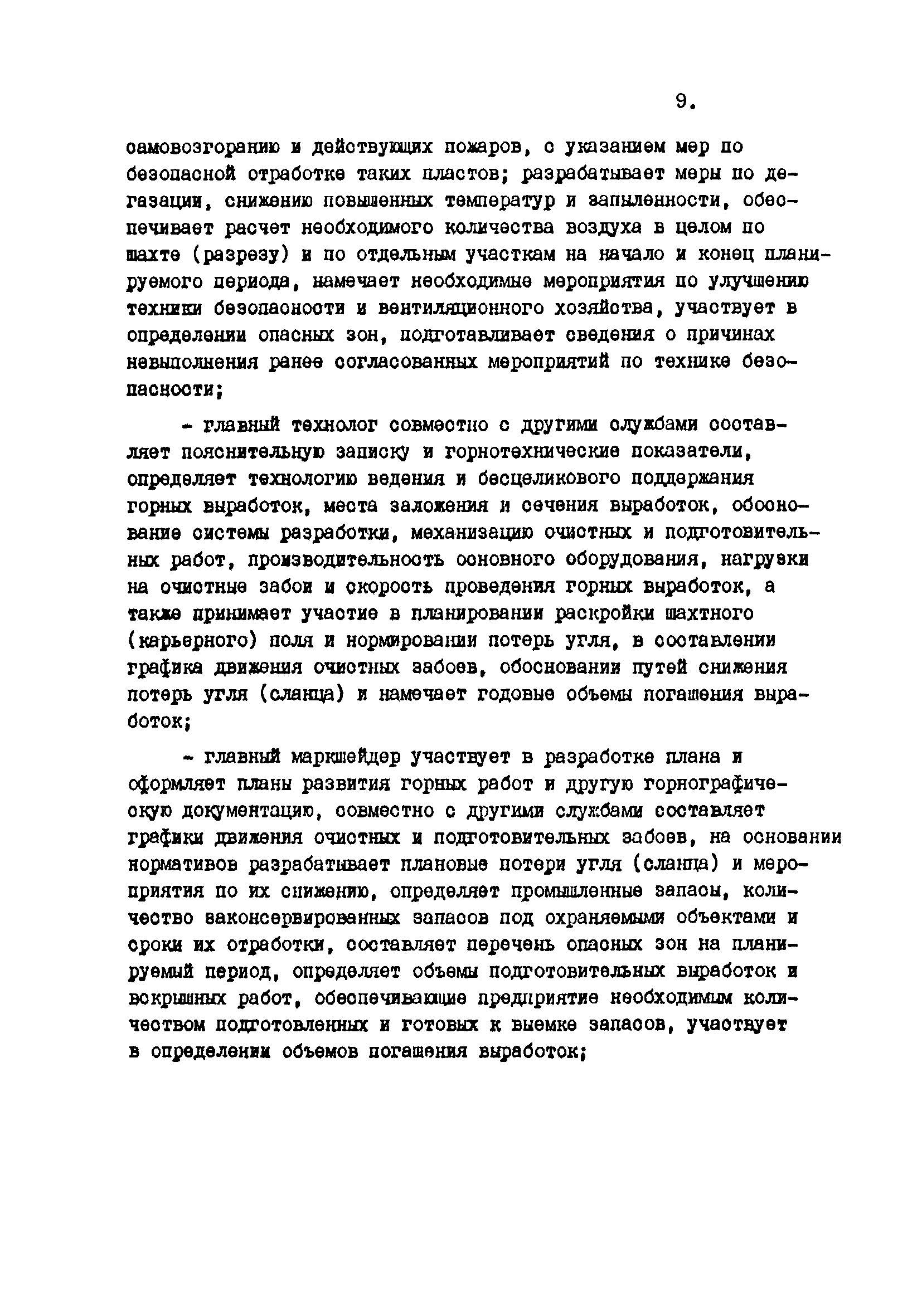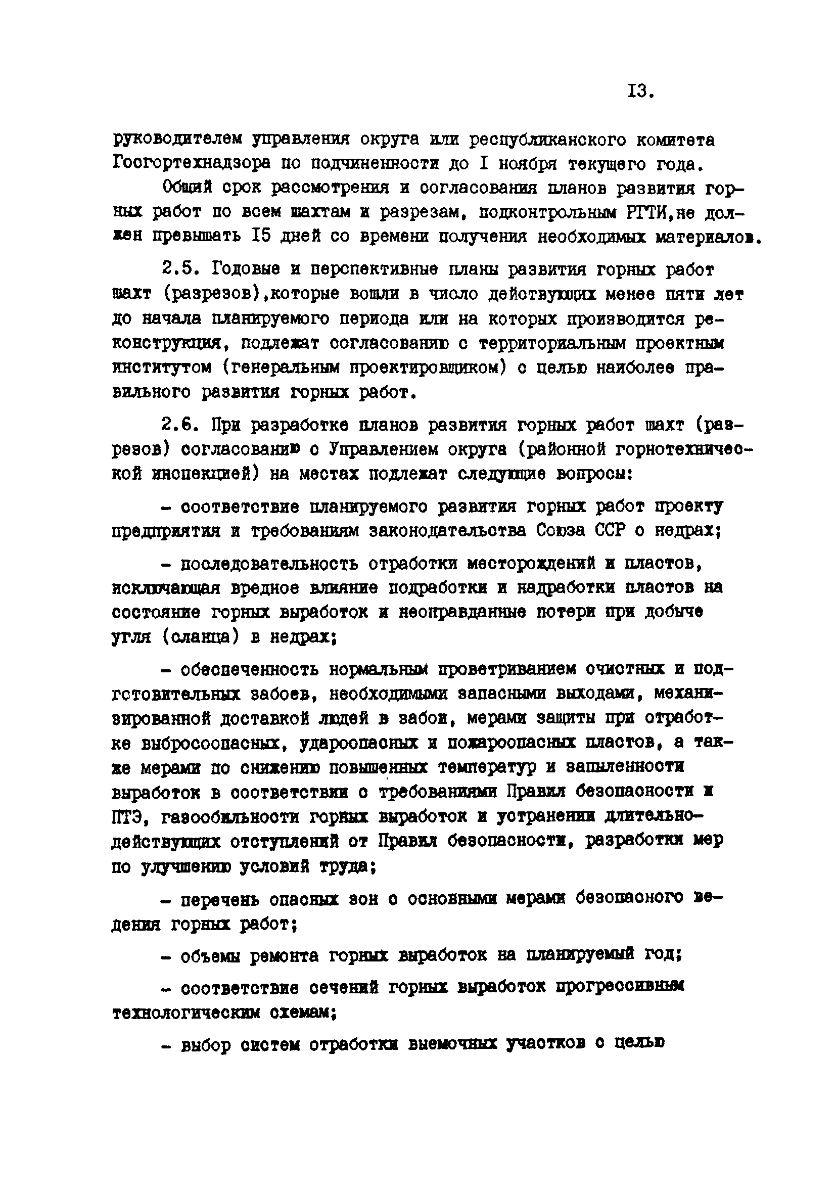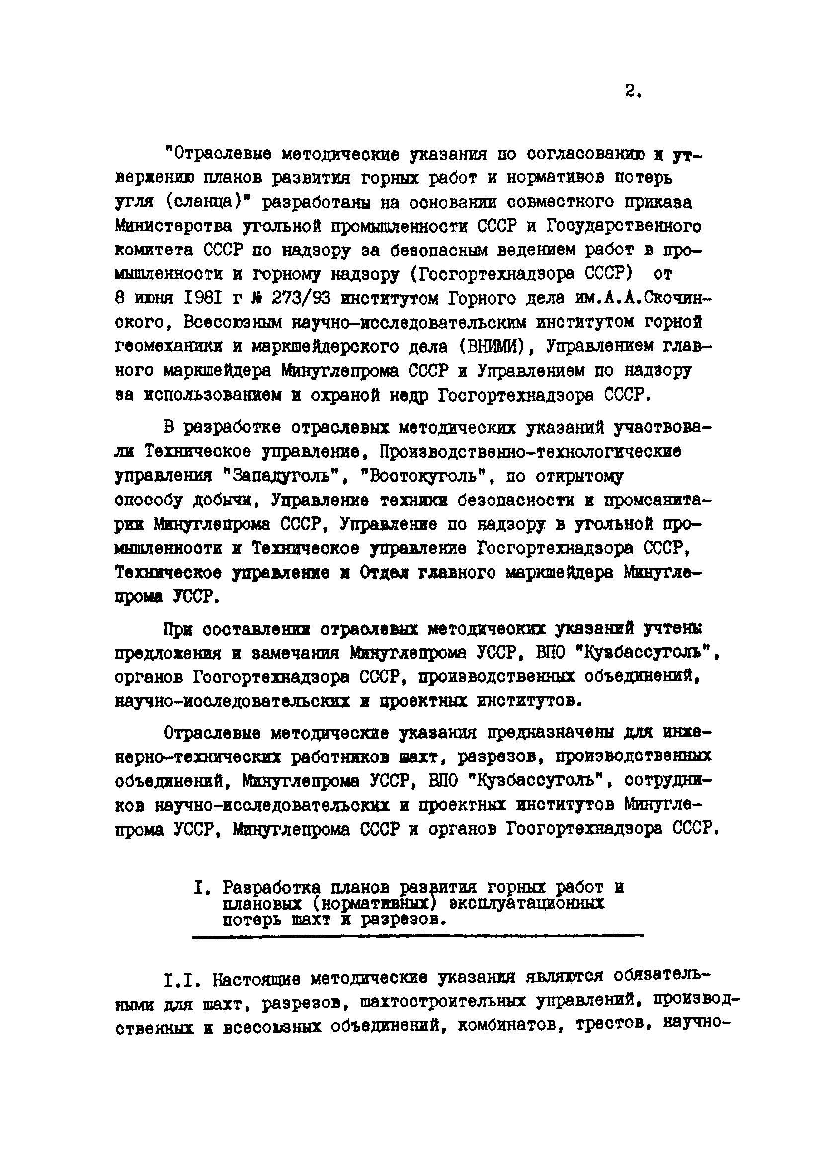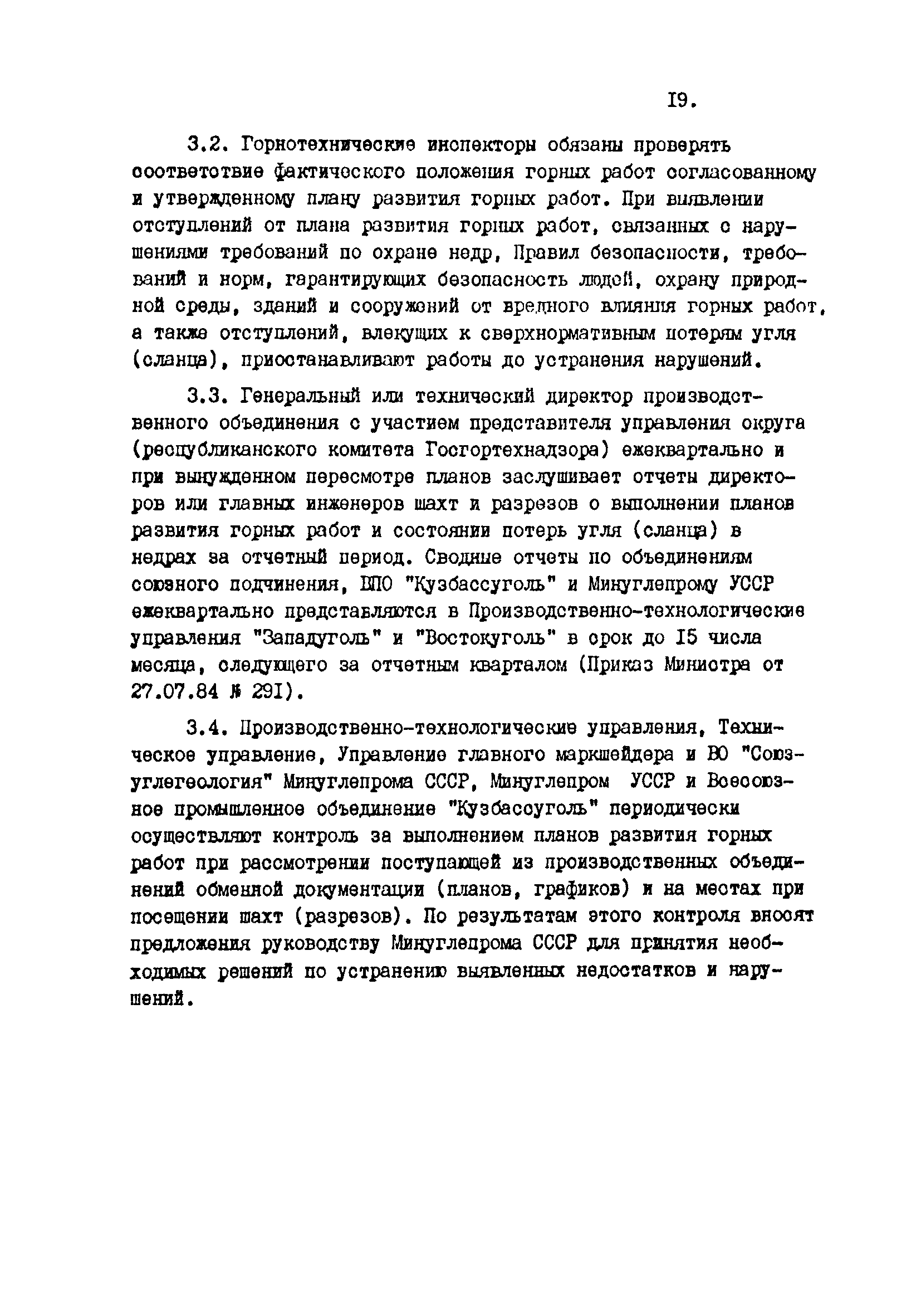 Отраслевые методические указания по согласованию и утверждению планов развития горных работ и нормативов потерь угля (сланца)| Статус: | утратил силу | | Название рус.: | Отраслевые методические указания по согласованию и утверждению планов развития горных работ и нормативов потерь угля (сланца) | | Дата добавления в базу: | 01.01.2021 | | Дата актуализации: | 01.01.2021 | | Область применения: | Методические указания являются обязательными для шахт, разрезов, шахтостроительных управлений, производственных и всесоюзных объединений, комбинатов, трестов, научно-исследовательских и проектных институтов, Всесоюзного промышленного объединения "Кузбассуголь", Министерства угольной промышленности УССР, Министерства угольной промышленности УССР, Министерства угольной промышленности СССР и органов Госгортехнадзора СССР при разработке, согласовании, утверждении и контроле исполнения готовых и перспективных планов развития горных работ и потерь угля (сланца) в недрах. | | Оглавление: | 1. Разработка планов развития горных работ и плановых (нормативных) эксплуатационных потерь шахт и разрезов 2. Согласование и утверждение планов развития горных работ и плановых потерь угля (сланца) в недрах 3. Контроль за выполнение планов развития горных работ и полнотой отработки запасов угля (сланца) на шахтах (разрезах) Приложение 1 План эксплуатационных потерь угля (сланца) Приложение 2 Перечень директивных материалов, необходимых для разработки планов развития горных работ на шахтах и разрезах | | Разработан: | ВНИМИ