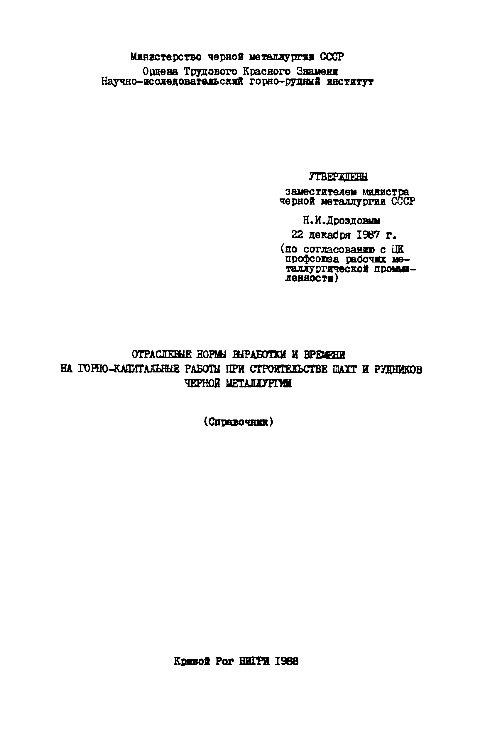 | Утверждён: | 22.12.1987 Министерство черной металлургии СССР