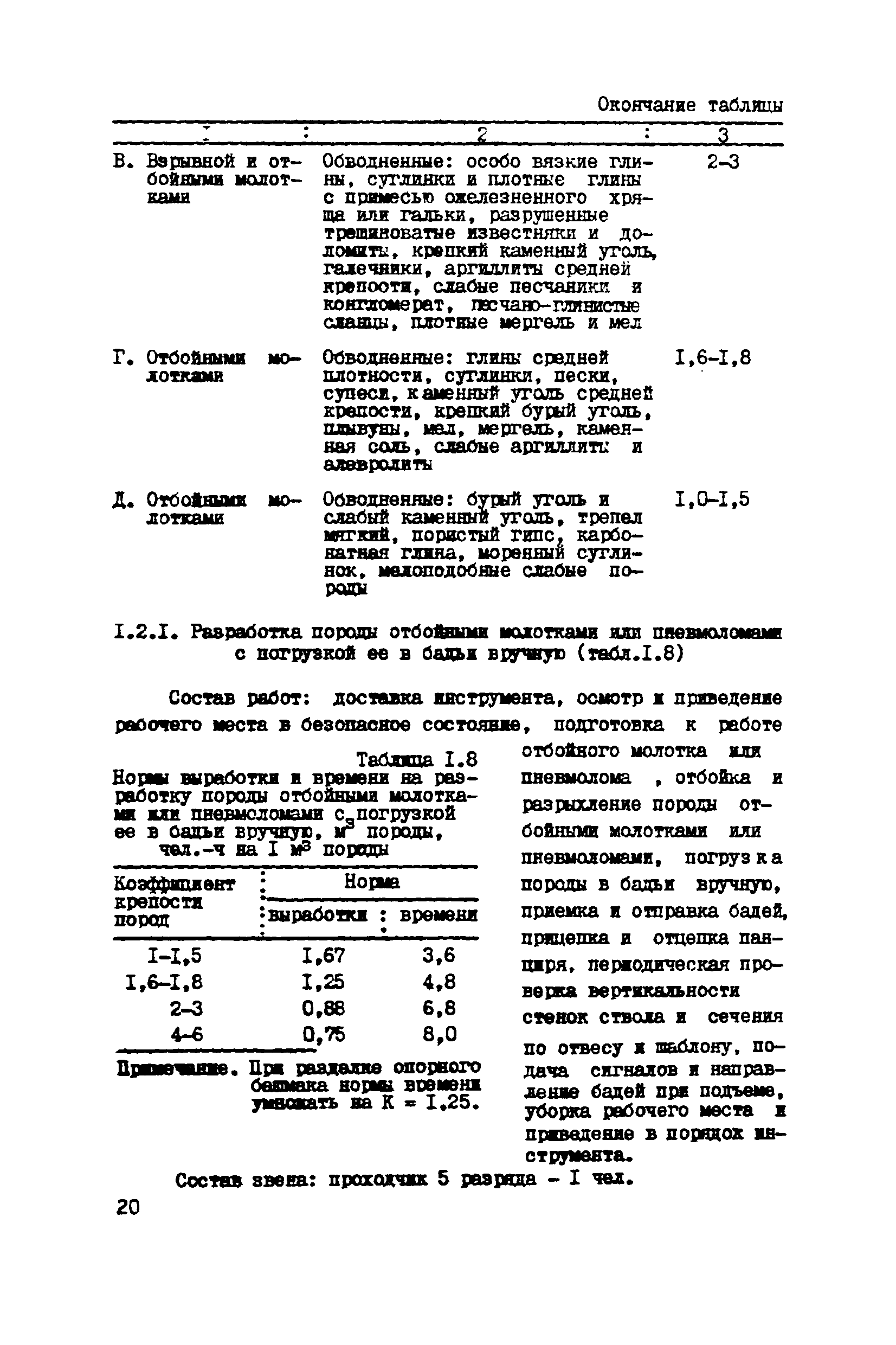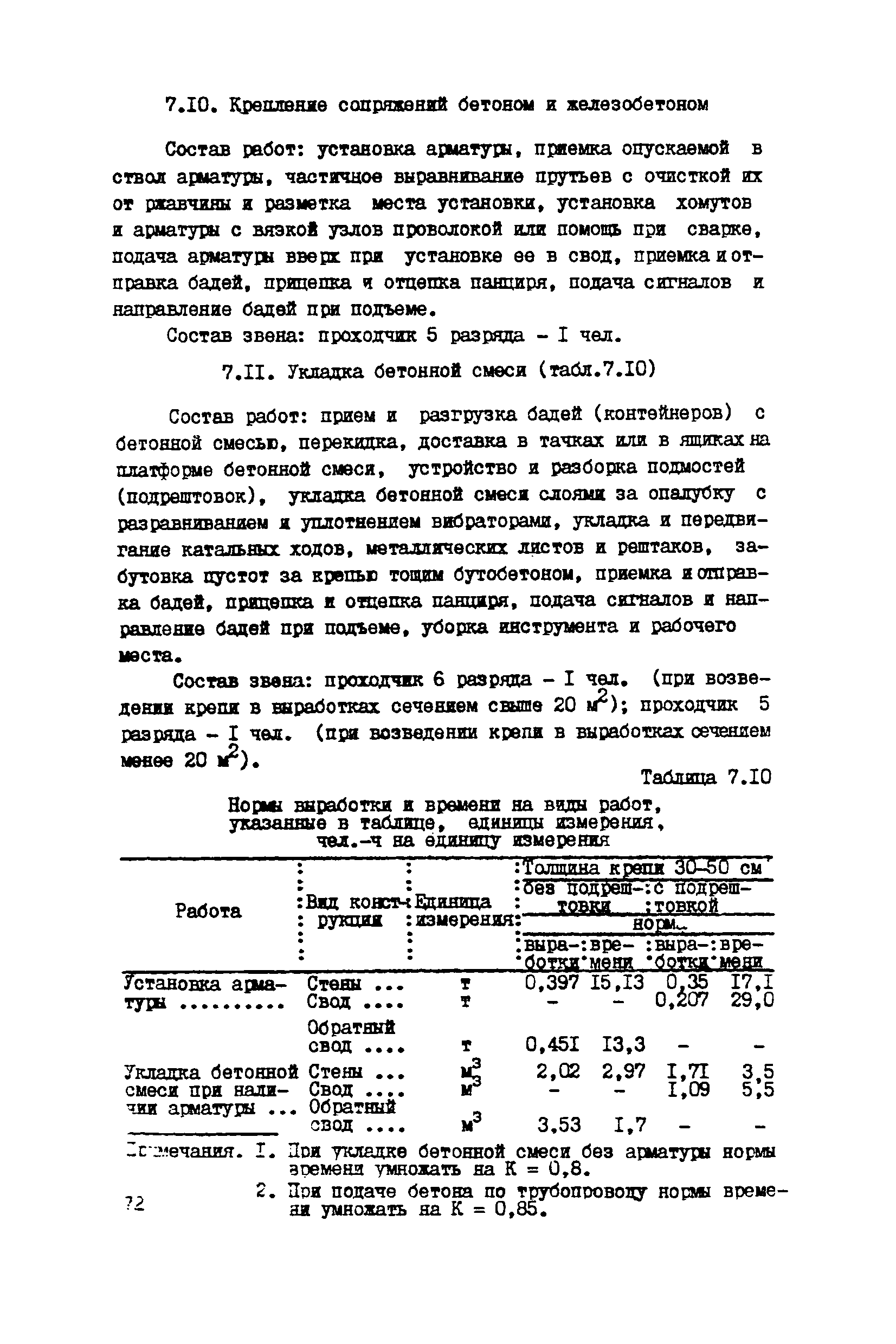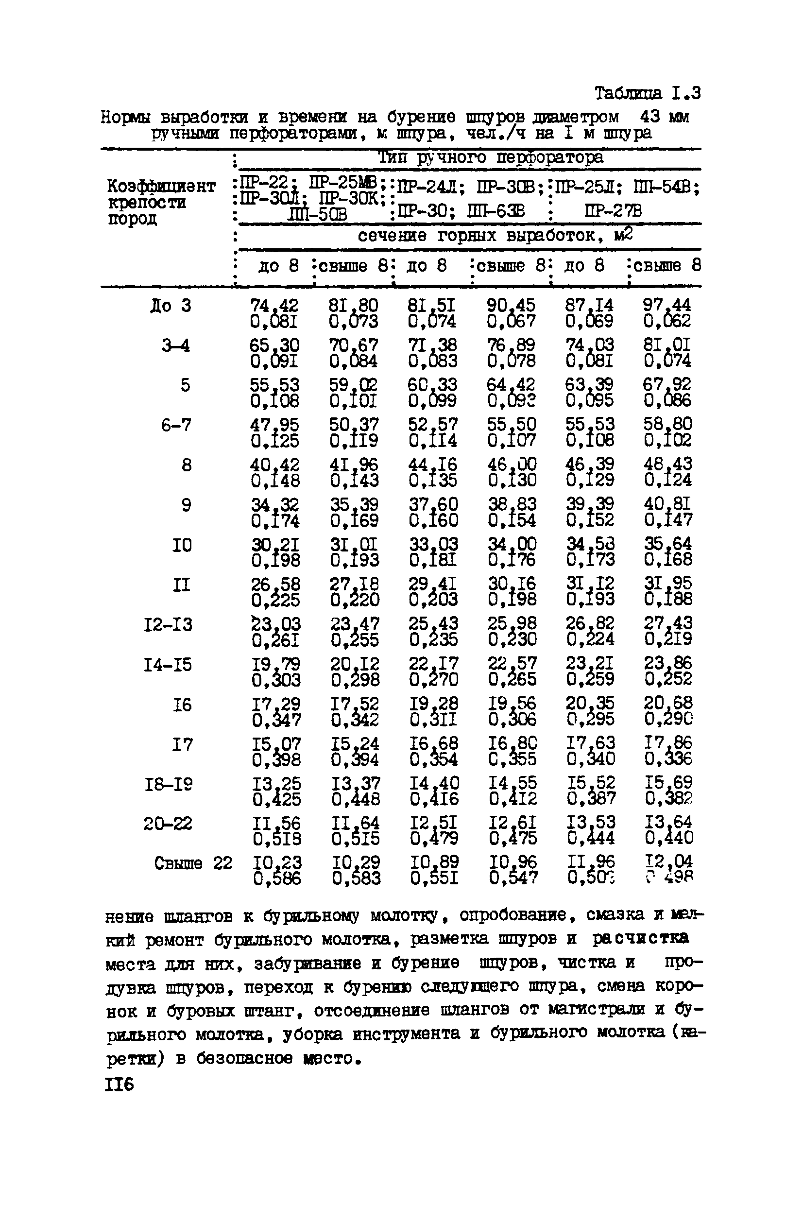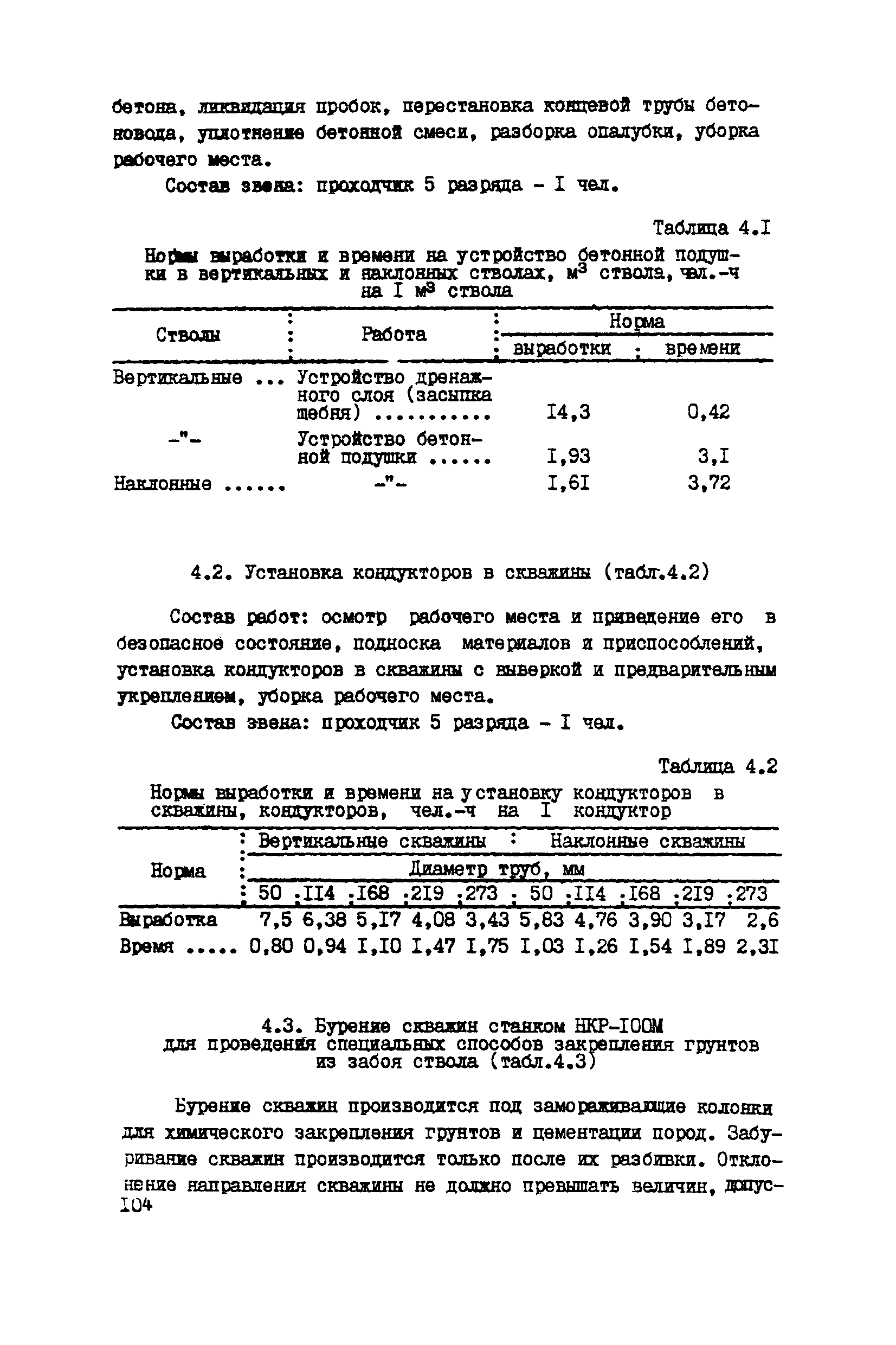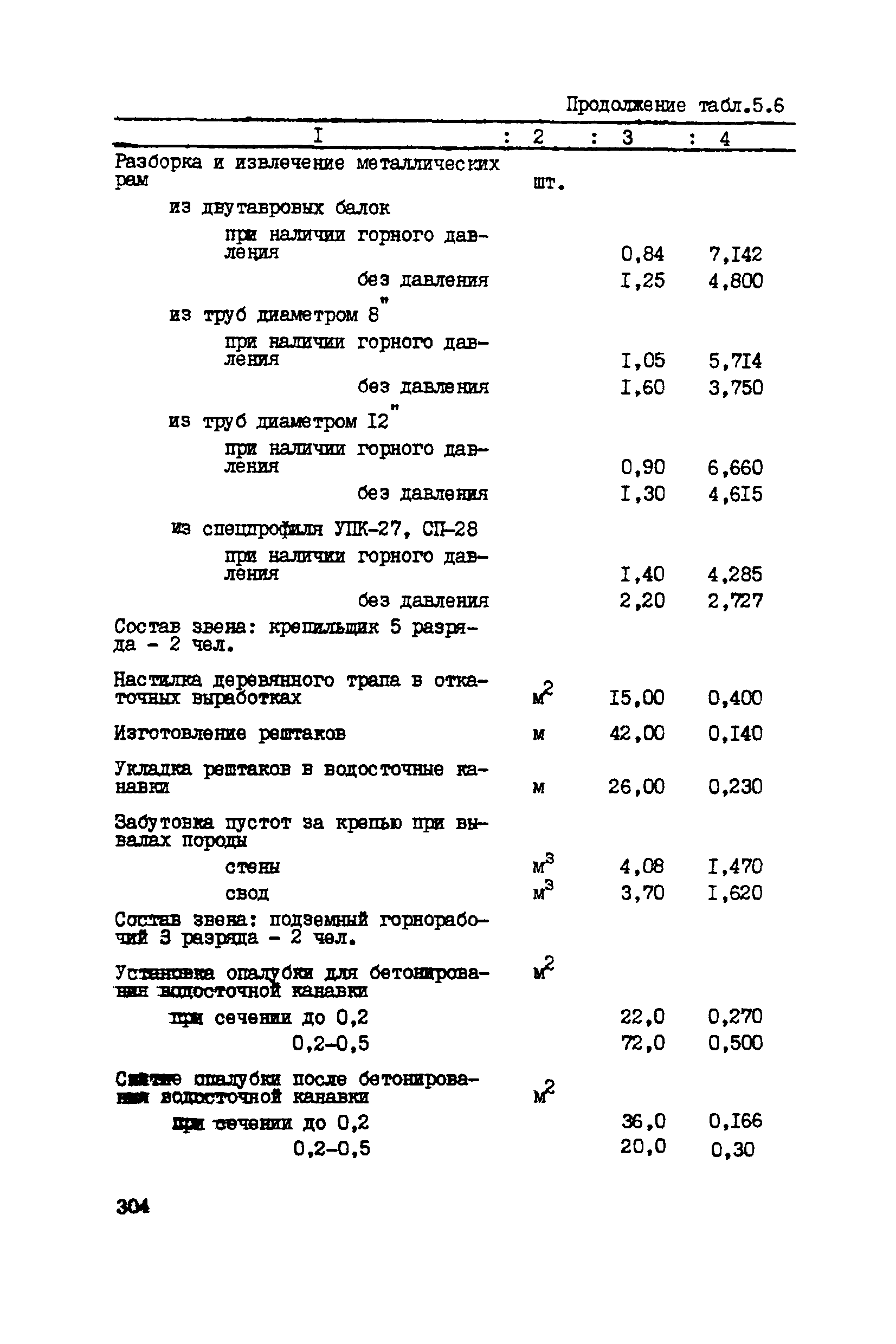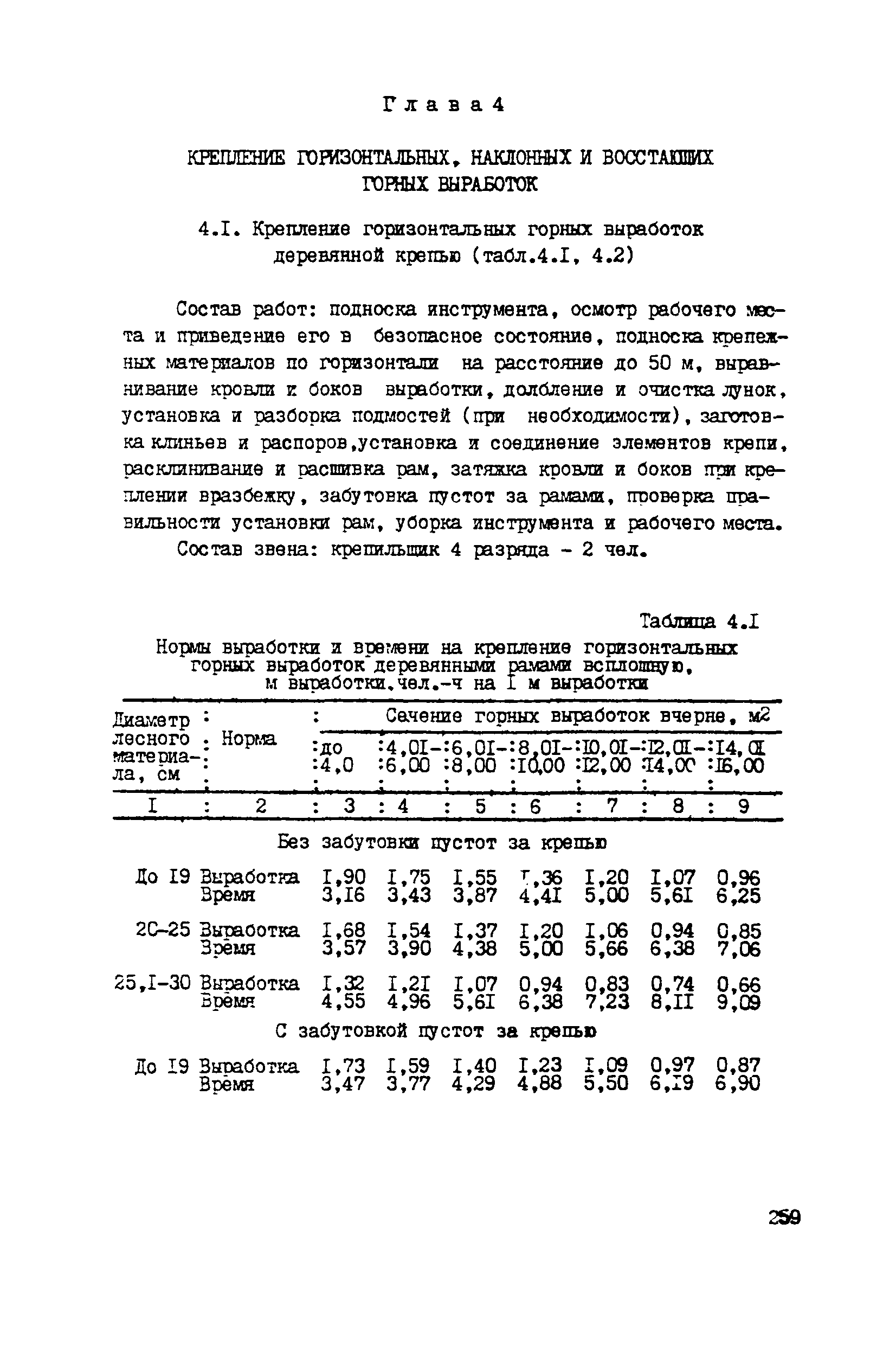 | Оглавление: | Общая часть Раздел 1. Проходка, крепление и армирование вертикальных стволов шахт; проведение сопряжений стволов с околоствольными дворами Глава 1. Проходка вертикальных стволов шахт 1.1 Проходка вертикальных стволов обычном способом 1.2 Проходка вертикальных стволов по замороженным породам 1.3 Проходка вертикальных стволов по породам, предварительно закрепленным химическим способом Глава 2. Крепление вертикальных стволов шахт бетоном 2.1 Временное крепление стволов металлическими кольцами 2.2 Крепление стволов круглого сечения бетоном и железобетоном 2.3 Крепление вертикальных стволов тюбингами 2.4 Крепление вертикальных стволов анкерной крепью 2.5 Установка и снятие деревянной опалубки заводного тюбингового кольца в конце заходки 2.6 Снятие первого тюбингового кольца 2.7 Сбивка кромки бетона на контакте заходки 2.8 Установка опорного венца из чугунных тюбингов 2.9 Укладка холодного бетона за опалубку при спуске его по трубам 2.10 Крепление стволов торкрет—бетоном Глава 3. Гидроизоляционные работы 3.1 Гидроизоляция тюбинговой крепи 3.2 Расчеканка свинцовых прокладок в тюбинговых швах и чеканка тюбинговых швов свинцовым шнуром 3.3 Очистка чугунной тюбинговой крепи после проходки и крепления ствола 3.4 Пикотаж горизонтального шва между двумя звеньями тюбинговой крепи ствола 3.5 Гидроизоляция чугунной тюбинговой крепи тампонажным раствором при поступлении его по трубам самотеком с поверхности 3.6 Первичное нагнетание за крепь шахтного ствола 3.7 Контрольное в нагнетание за крепь шахтного ствола 3.8 Контрольное подтягивание и замена болтов в тюбинговой отделке шахтного ствола 3.9 Установка и замена пробок в отверстиях тюбингов 3.10 Изоляция стыков тюбинговой крепи шахтного ствола 3.11 Штукатурка бетонной поверхности под изоляцию и по изоляции 3.12 Оклеечная изоляция стенок шахтного ствола 3.13 Устройство пикотажных манжет при крепления вертикальных стволов шахт железобетонными тюбингами 3.14 Бурение шпуров в бетоне Глава 4. Армирование стволов 4.1 Долбление лунок под расстрелы 4.2 Установка и заделка металлических расстрелов в готовые лунки 4.3 Сболчивание стальных расстрелов 4.4 Установка проводников 4.5 Оборудование лестничных отделений в стволах шахт 4.6 Устройство и разборка настилов по расстрелам 4.7 Установка рудничных станков на сопряжение с околоствольным двором 4.8 Монтаж компенсационных балок из спец профиля в стволе 4.9 Монтаж и демонтаж постоянных трубопроводов Глава 5. Вспомогательные работы при проходке и креплении стволов шахт 5.1 Устройство, разборка и переноска рабочего полка 5.2 Устройство деревянного временного переносного полка в стволе 5.3 Монтаж одноэтажных и двухэтажных подвесных металлических полков в стволах натяжных рам и предохранительных полков Глава 6. Устройство в стволах круглого сечения бетонного опорного венца (башмака) Глава 7. Проведение сопряжений вертикальных стволов с околоствольными дворами Раздел II. Проходка и крепление наклонных стволов Глава 1. Проходка наклонных стволов Глава 2. Крепление наклонных стволов Глава 3. Гидроизоляционные работы Глава 4. Вспомогательные работы при проходке и креплении вертикальных и наклонных стволов с применением специальных способов Раздел III. Проходка и крепление горизонтальных, наклонных и восстающих горных выработок Глава 1. Буровые работы Глава 2. Д