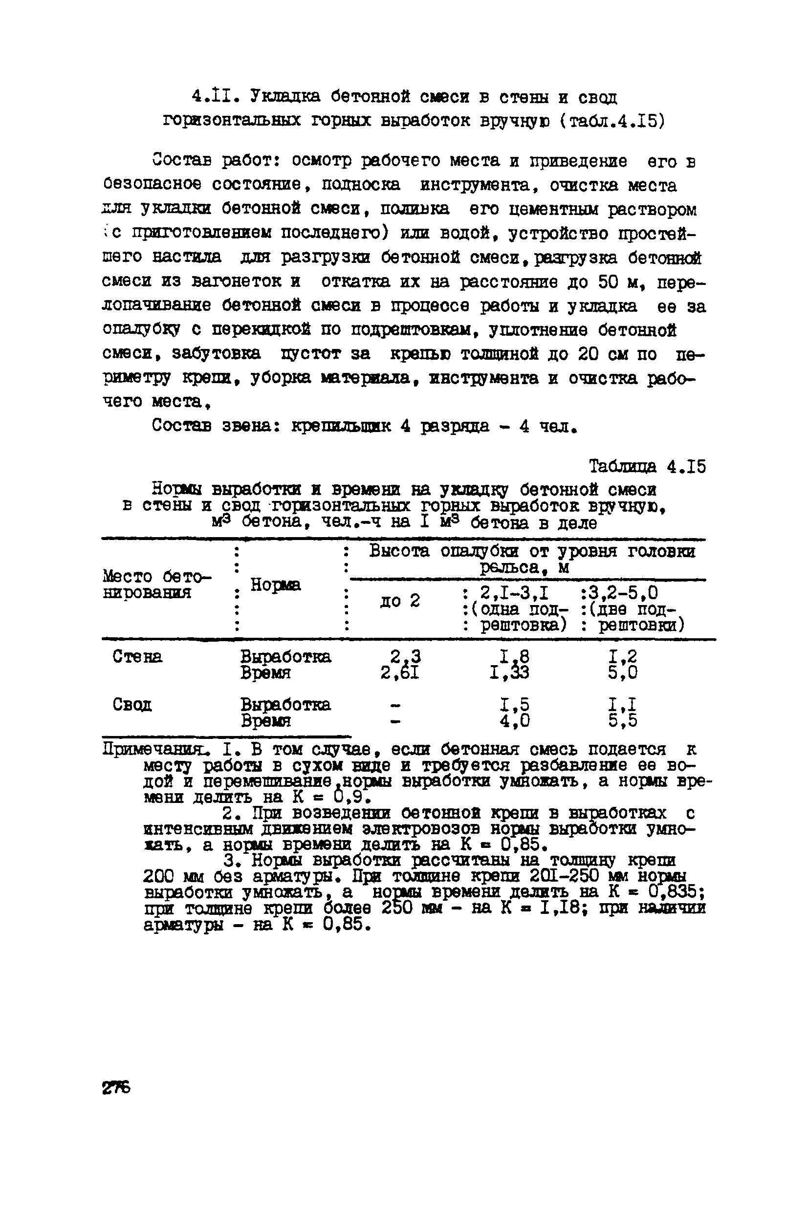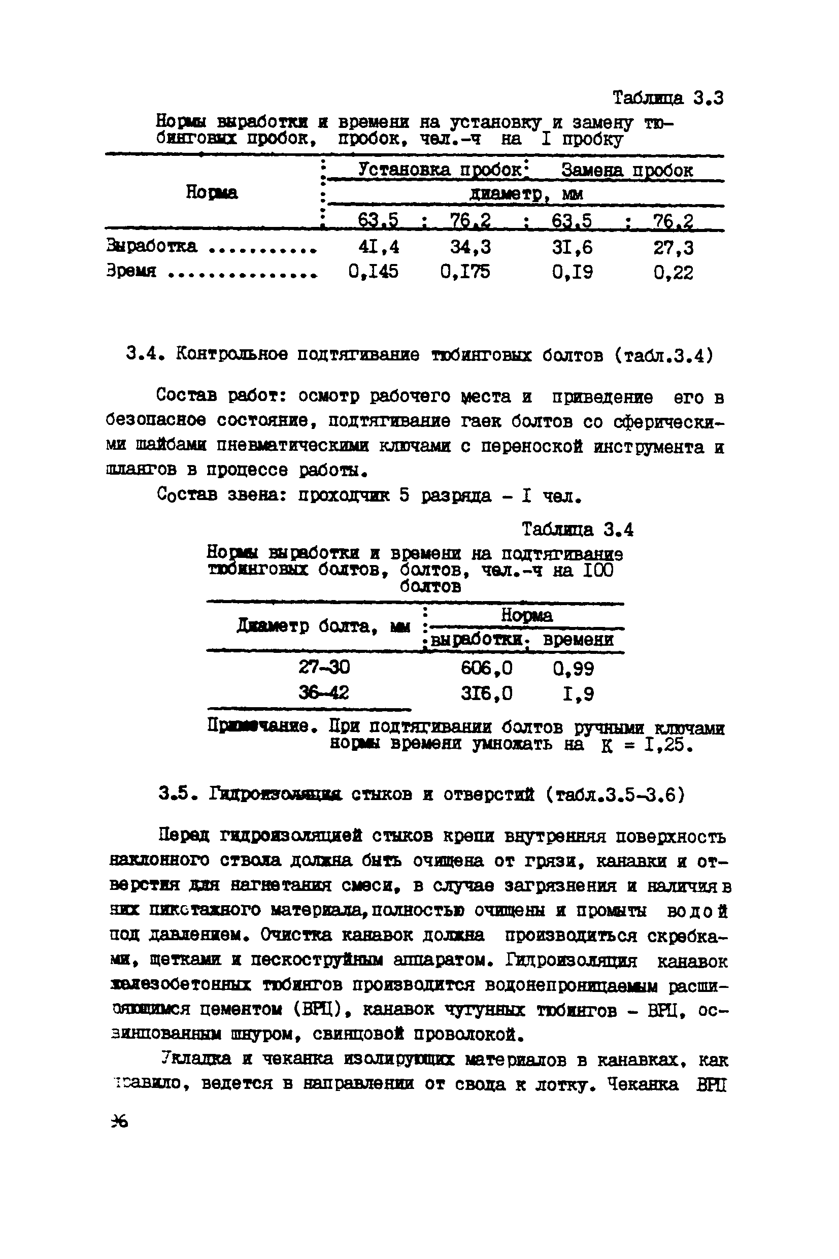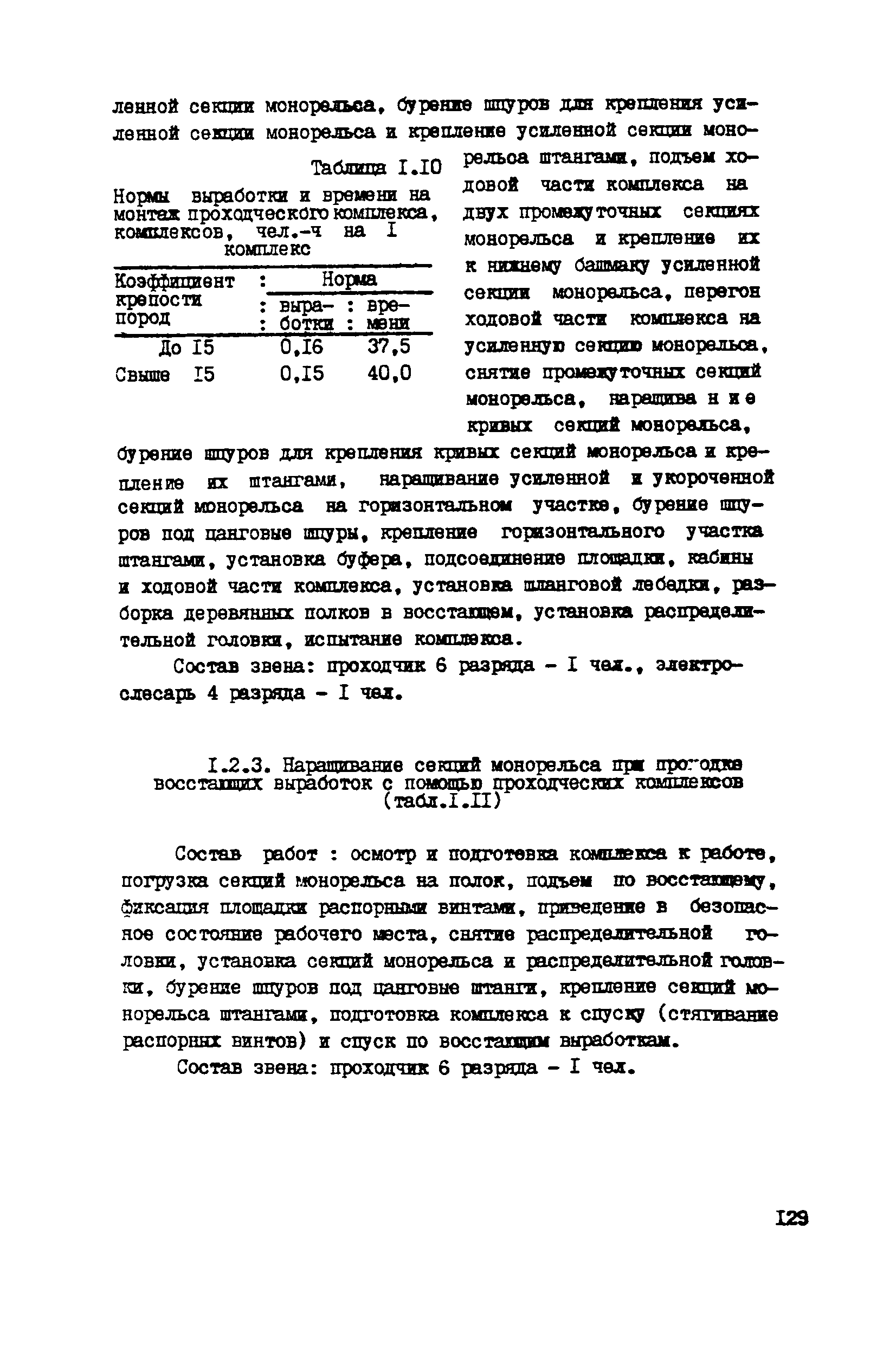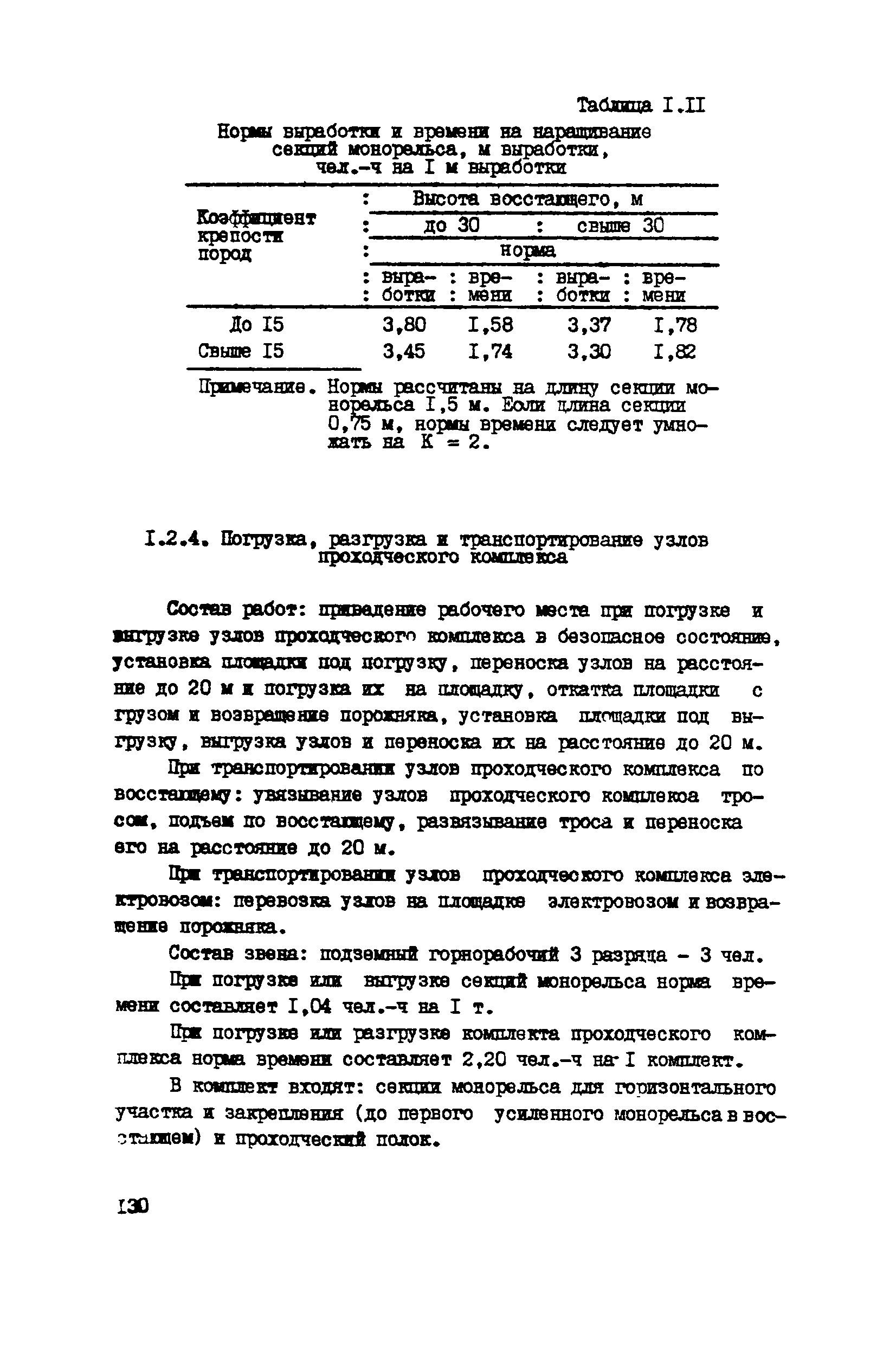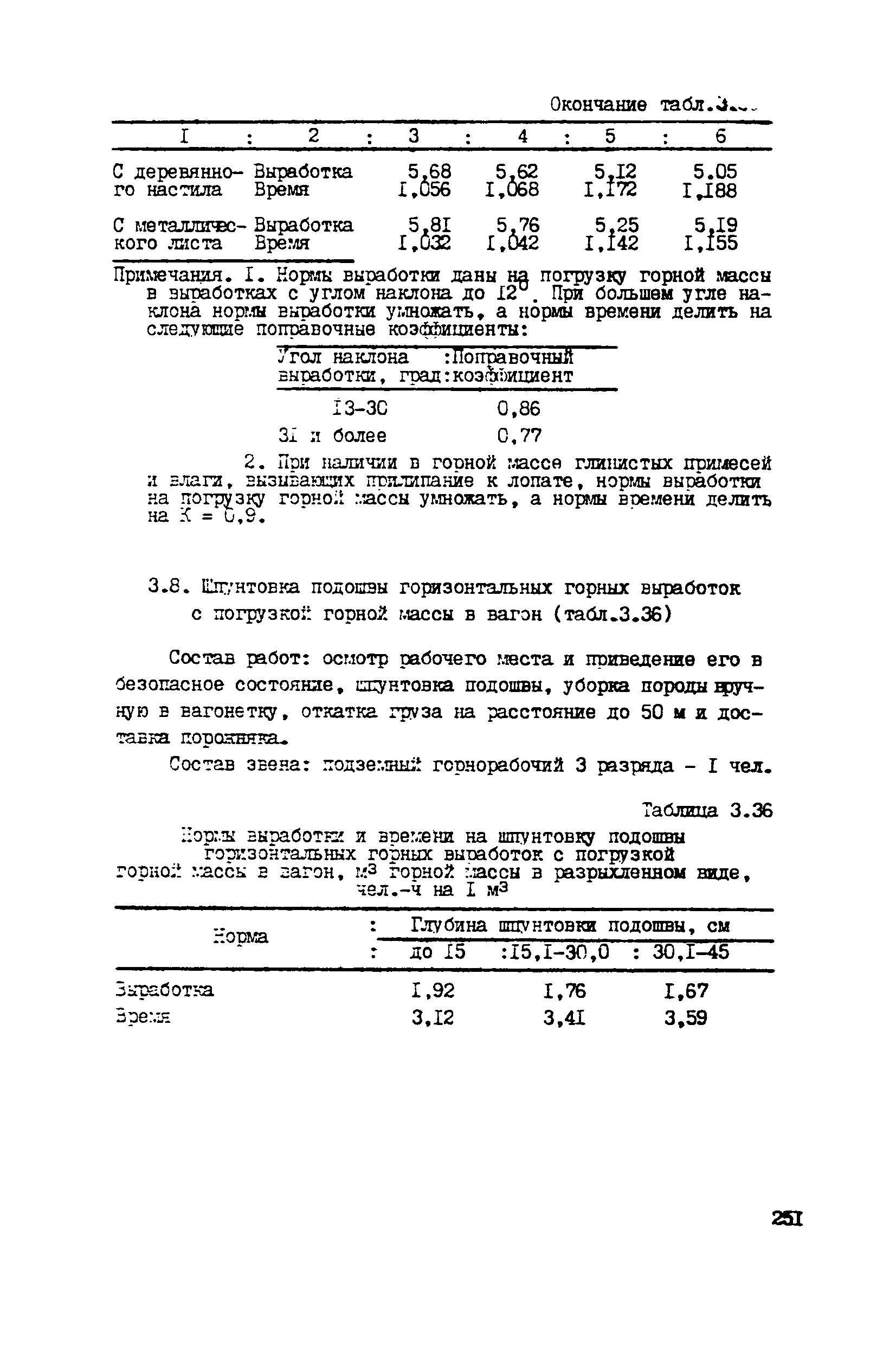 | Оглавление: | Общая часть Раздел 1. Проходка, крепление и армирование вертикальных стволов шахт; проведение сопряжений стволов с околоствольными дворами Глава 1. Проходка вертикальных стволов шахт 1.1 Проходка вертикальных стволов обычном способом 1.2 Проходка вертикальных стволов по замороженным породам 1.3 Проходка вертикальных стволов по породам, предварительно закрепленным химическим способом Глава 2. Крепление вертикальных стволов шахт бетоном 2.1 Временное крепление стволов металлическими кольцами 2.2 Крепление стволов круглого сечения бетоном и железобетоном 2.3 Крепление вертикальных стволов тюбингами 2.4 Крепление вертикальных стволов анкерной крепью 2.5 Установка и снятие деревянной опалубки заводного тюбингового кольца в конце заходки 2.6 Снятие первого тюбингового кольца 2.7 Сбивка кромки бетона на контакте заходки 2.8 Установка опорного венца из чугунных тюбингов 2.9 Укладка холодного бетона за опалубку при спуске его по трубам 2.10 Крепление стволов торкрет—бетоном Глава 3. Гидроизоляционные работы 3.1 Гидроизоляция тюбинговой крепи 3.2 Расчеканка свинцовых прокладок в тюбинговых швах и чеканка тюбинговых швов свинцовым шнуром 3.3 Очистка чугунной тюбинговой крепи после проходки и крепления ствола 3.4 Пикотаж горизонтального шва между двумя звеньями тюбинговой крепи ствола 3.5 Гидроизоляция чугунной тюбинговой крепи тампонажным раствором при поступлении его по трубам самотеком с поверхности 3.6 Первичное нагнетание за крепь шахтного ствола 3.7 Контрольное в нагнетание за крепь шахтного ствола 3.8 Контрольное подтягивание и замена болтов в тюбинговой отделке шахтного ствола 3.9 Установка и замена пробок в отверстиях тюбингов 3.10 Изоляция стыков тюбинговой крепи шахтного ствола 3.11 Штукатурка бетонной поверхности под изоляцию и по изоляции 3.12 Оклеечная изоляция стенок шахтного ствола 3.13 Устройство пикотажных манжет при крепления вертикальных стволов шахт железобетонными тюбингами 3.14 Бурение шпуров в бетоне Глава 4. Армирование стволов 4.1 Долбление лунок под расстрелы 4.2 Установка и заделка металлических расстрелов в готовые лунки 4.3 Сболчивание стальных расстрелов 4.4 Установка проводников 4.5 Оборудование лестничных отделений в стволах шахт 4.6 Устройство и разборка настилов по расстрелам 4.7 Установка рудничных станков на сопряжение с околоствольным двором 4.8 Монтаж компенсационных балок из спец профиля в стволе 4.9 Монтаж и демонтаж постоянных трубопроводов Глава 5. Вспомогательные работы при проходке и креплении стволов шахт 5.1 Устройство, разборка и переноска рабочего полка 5.2 Устройство деревянного временного переносного полка в стволе 5.3 Монтаж одноэтажных и двухэтажных подвесных металлических полков в стволах натяжных рам и предохранительных полков Глава 6. Устройство в стволах круглого сечения бетонного опорного венца (башмака) Глава 7. Проведение сопряжений вертикальных стволов с околоствольными дворами Раздел II. Проходка и крепление наклонных стволов Глава 1. Проходка наклонных стволов Глава 2. Крепление наклонных стволов Глава 3. Гидроизоляционные работы Глава 4. Вспомогательные работы при проходке и креплении вертикальных и наклонных стволов с применением специальных способов Раздел III. Проходка и крепление горизонтальных, наклонных и восстающих горных выработок Глава 1. Буровые работы Глава 2. Д