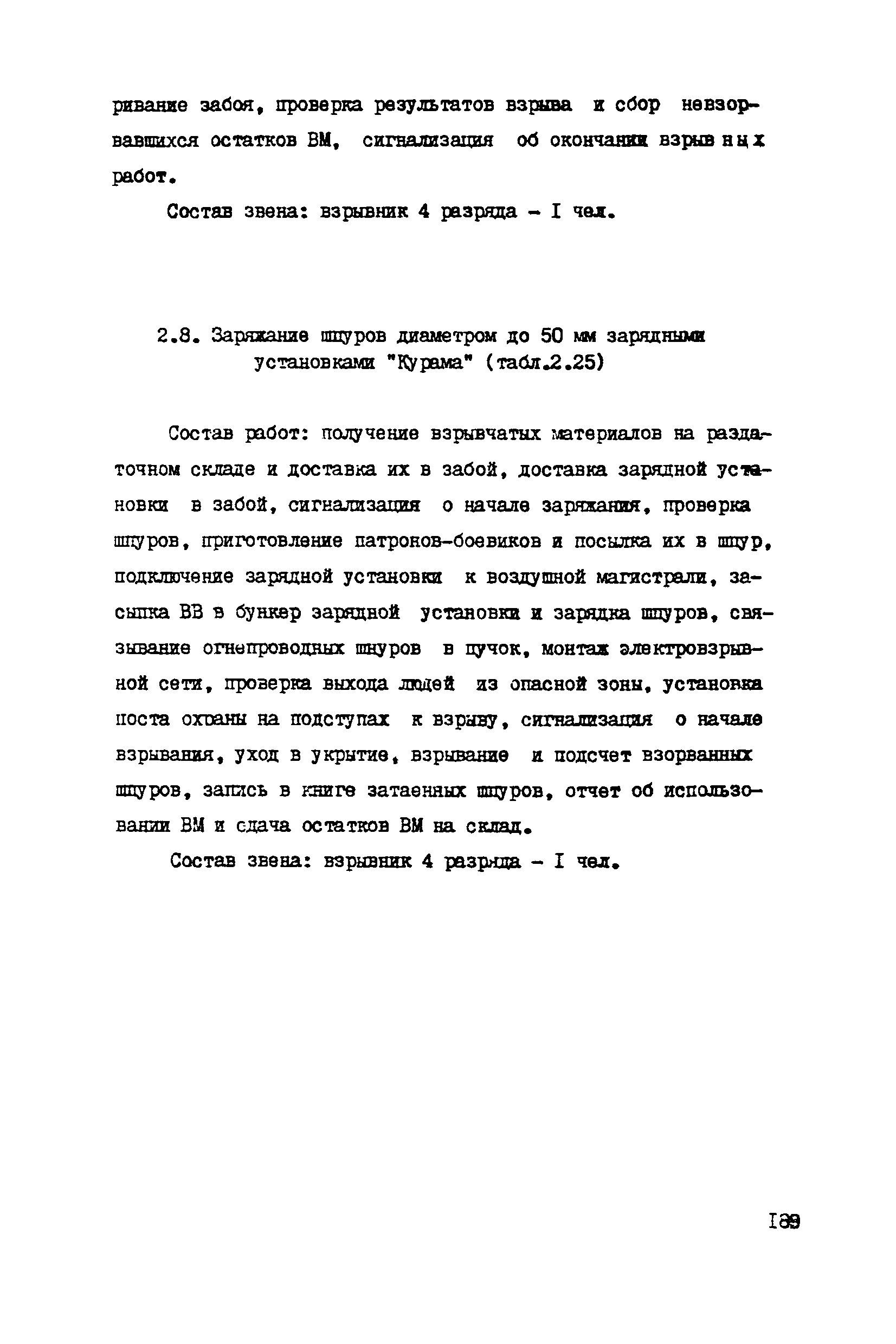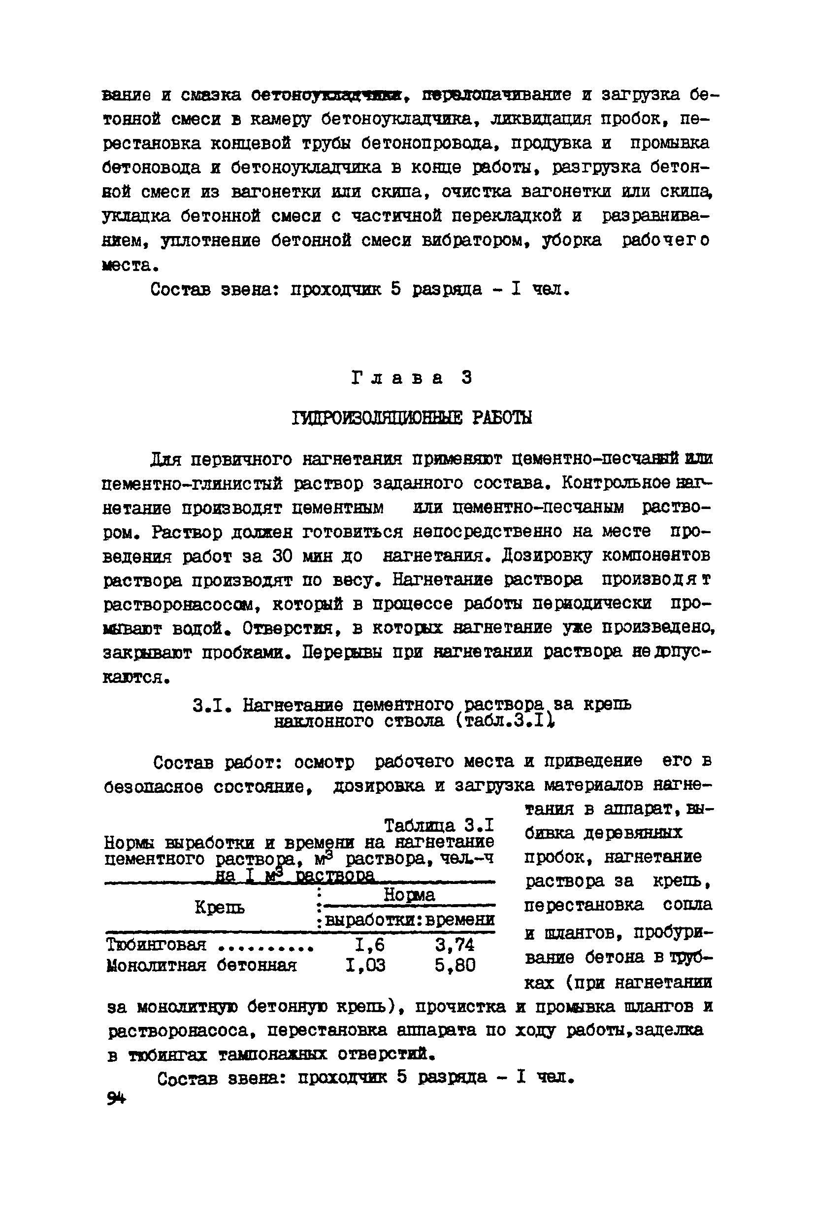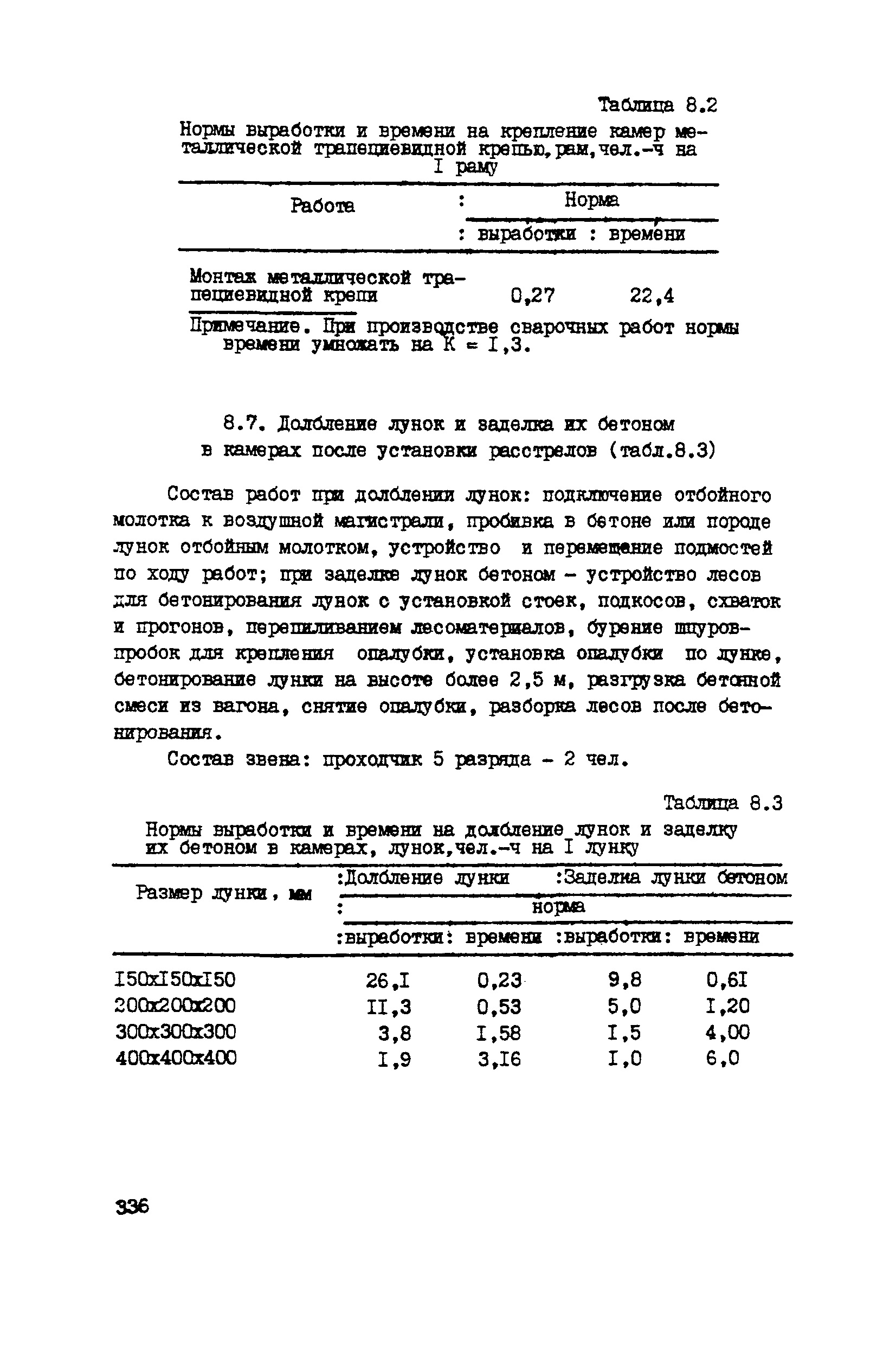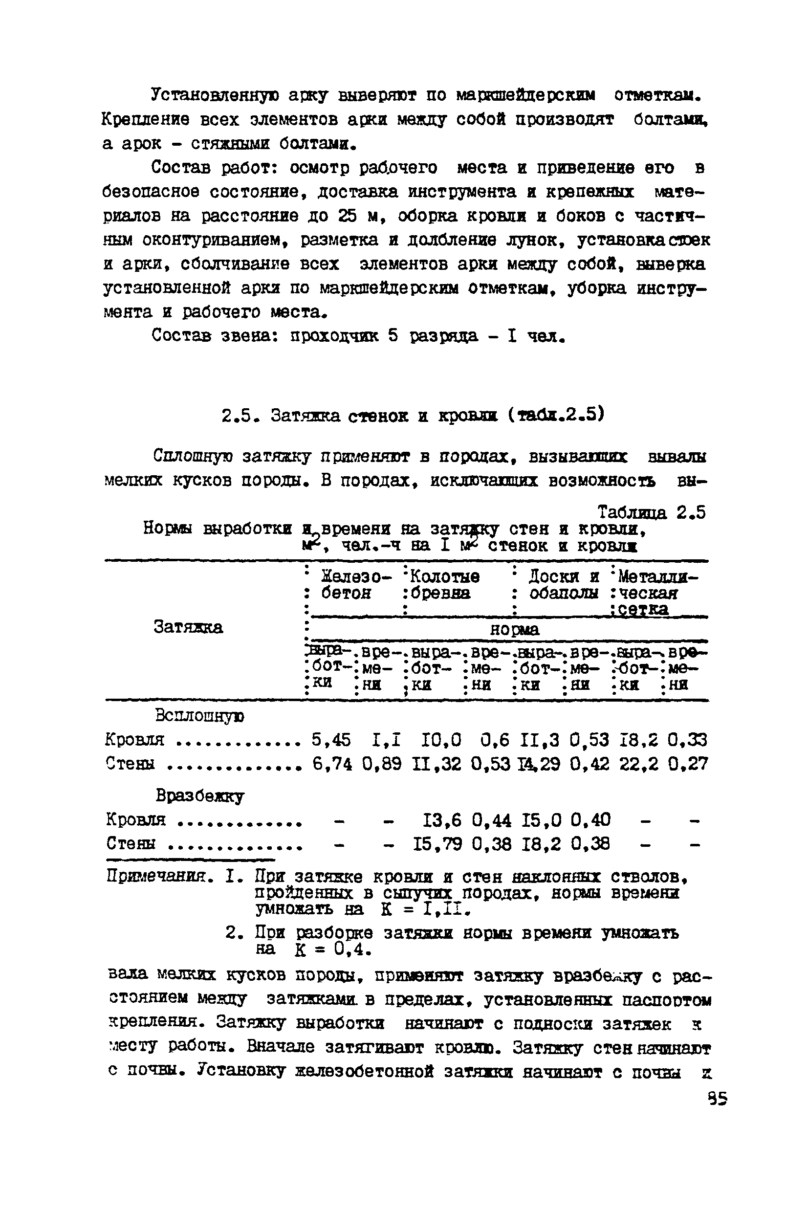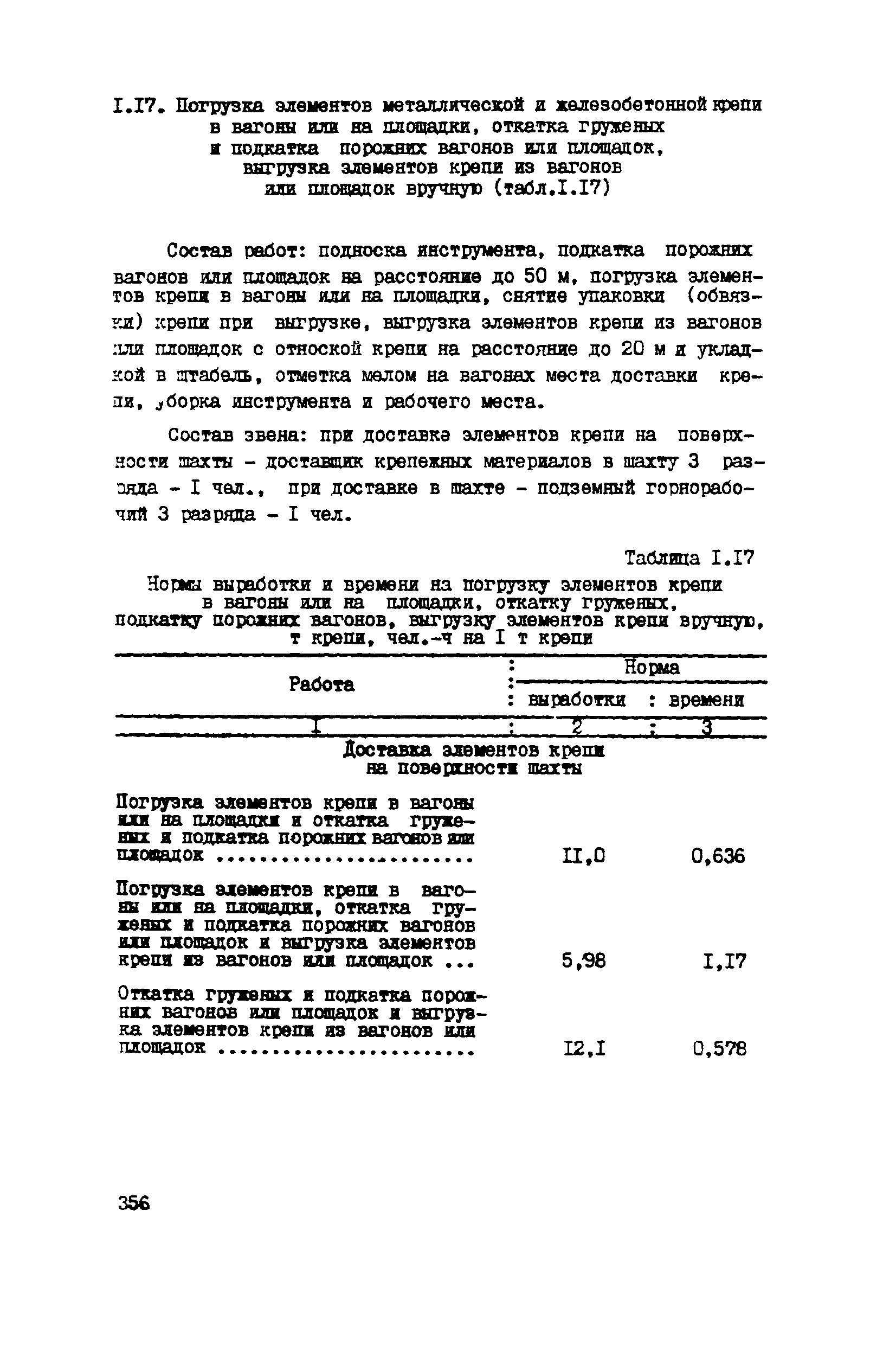 | Оглавление: | Общая часть Раздел 1. Проходка, крепление и армирование вертикальных стволов шахт; проведение сопряжений стволов с околоствольными дворами Глава 1. Проходка вертикальных стволов шахт 1.1 Проходка вертикальных стволов обычном способом 1.2 Проходка вертикальных стволов по замороженным породам 1.3 Проходка вертикальных стволов по породам, предварительно закрепленным химическим способом Глава 2. Крепление вертикальных стволов шахт бетоном 2.1 Временное крепление стволов металлическими кольцами 2.2 Крепление стволов круглого сечения бетоном и железобетоном 2.3 Крепление вертикальных стволов тюбингами 2.4 Крепление вертикальных стволов анкерной крепью 2.5 Установка и снятие деревянной опалубки заводного тюбингового кольца в конце заходки 2.6 Снятие первого тюбингового кольца 2.7 Сбивка кромки бетона на контакте заходки 2.8 Установка опорного венца из чугунных тюбингов 2.9 Укладка холодного бетона за опалубку при спуске его по трубам 2.10 Крепление стволов торкрет—бетоном Глава 3. Гидроизоляционные работы 3.1 Гидроизоляция тюбинговой крепи 3.2 Расчеканка свинцовых прокладок в тюбинговых швах и чеканка тюбинговых швов свинцовым шнуром 3.3 Очистка чугунной тюбинговой крепи после проходки и крепления ствола 3.4 Пикотаж горизонтального шва между двумя звеньями тюбинговой крепи ствола 3.5 Гидроизоляция чугунной тюбинговой крепи тампонажным раствором при поступлении его по трубам самотеком с поверхности 3.6 Первичное нагнетание за крепь шахтного ствола 3.7 Контрольное в нагнетание за крепь шахтного ствола 3.8 Контрольное подтягивание и замена болтов в тюбинговой отделке шахтного ствола 3.9 Установка и замена пробок в отверстиях тюбингов 3.10 Изоляция стыков тюбинговой крепи шахтного ствола 3.11 Штукатурка бетонной поверхности под изоляцию и по изоляции 3.12 Оклеечная изоляция стенок шахтного ствола 3.13 Устройство пикотажных манжет при крепления вертикальных стволов шахт железобетонными тюбингами 3.14 Бурение шпуров в бетоне Глава 4. Армирование стволов 4.1 Долбление лунок под расстрелы 4.2 Установка и заделка металлических расстрелов в готовые лунки 4.3 Сболчивание стальных расстрелов 4.4 Установка проводников 4.5 Оборудование лестничных отделений в стволах шахт 4.6 Устройство и разборка настилов по расстрелам 4.7 Установка рудничных станков на сопряжение с околоствольным двором 4.8 Монтаж компенсационных балок из спец профиля в стволе 4.9 Монтаж и демонтаж постоянных трубопроводов Глава 5. Вспомогательные работы при проходке и креплении стволов шахт 5.1 Устройство, разборка и переноска рабочего полка 5.2 Устройство деревянного временного переносного полка в стволе 5.3 Монтаж одноэтажных и двухэтажных подвесных металлических полков в стволах натяжных рам и предохранительных полков Глава 6. Устройство в стволах круглого сечения бетонного опорного венца (башмака) Глава 7. Проведение сопряжений вертикальных стволов с околоствольными дворами Раздел II. Проходка и крепление наклонных стволов Глава 1. Проходка наклонных стволов Глава 2. Крепление наклонных стволов Глава 3. Гидроизоляционные работы Глава 4. Вспомогательные работы при проходке и креплении вертикальных и наклонных стволов с применением специальных способов Раздел III. Проходка и крепление горизонтальных, наклонных и восстающих горных выработок Глава 1. Буровые работы Глава 2. Д