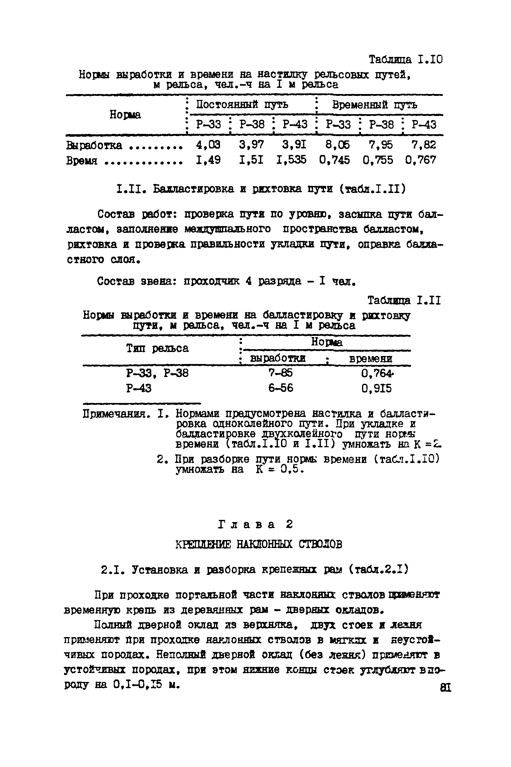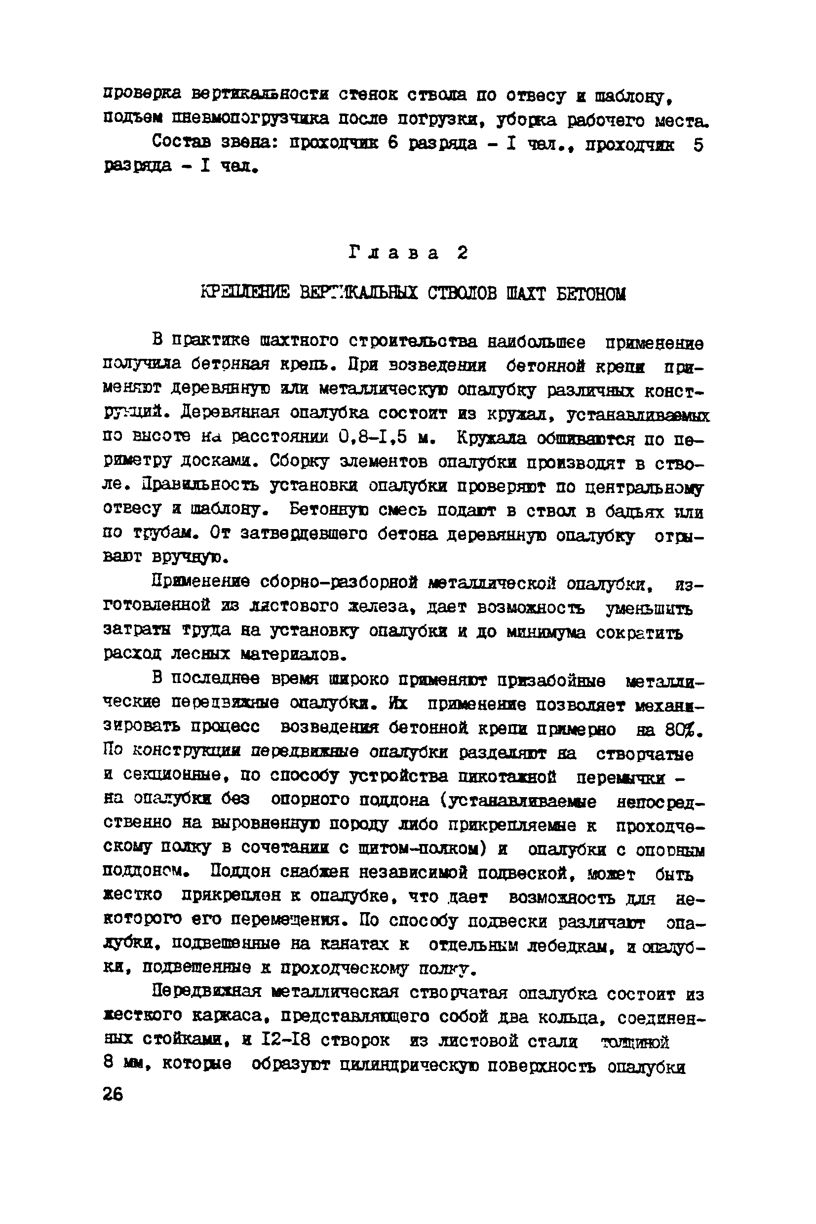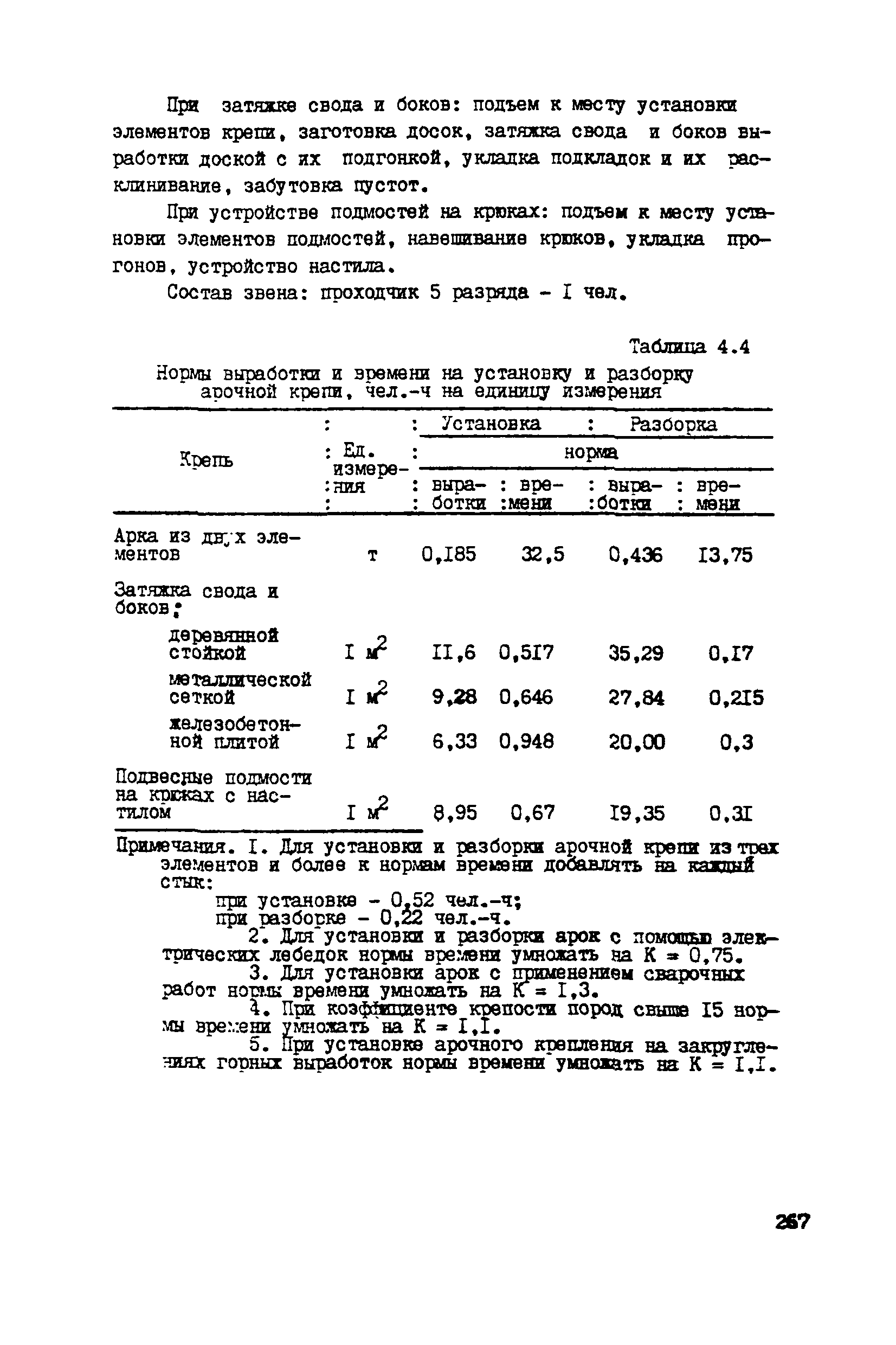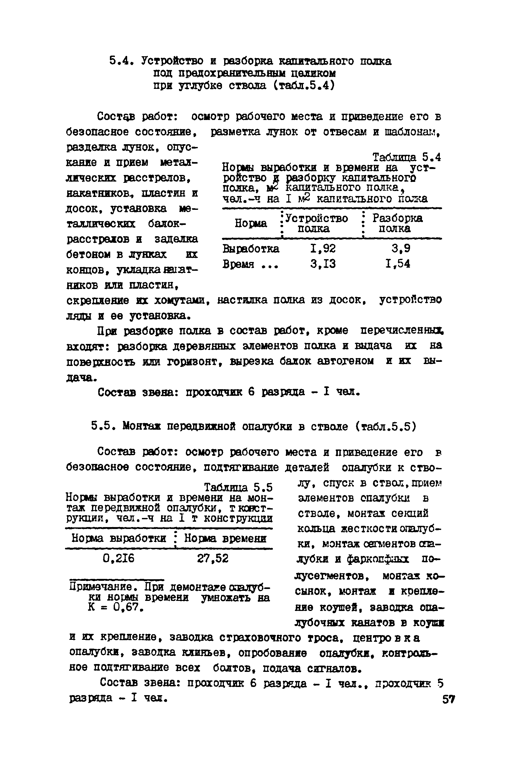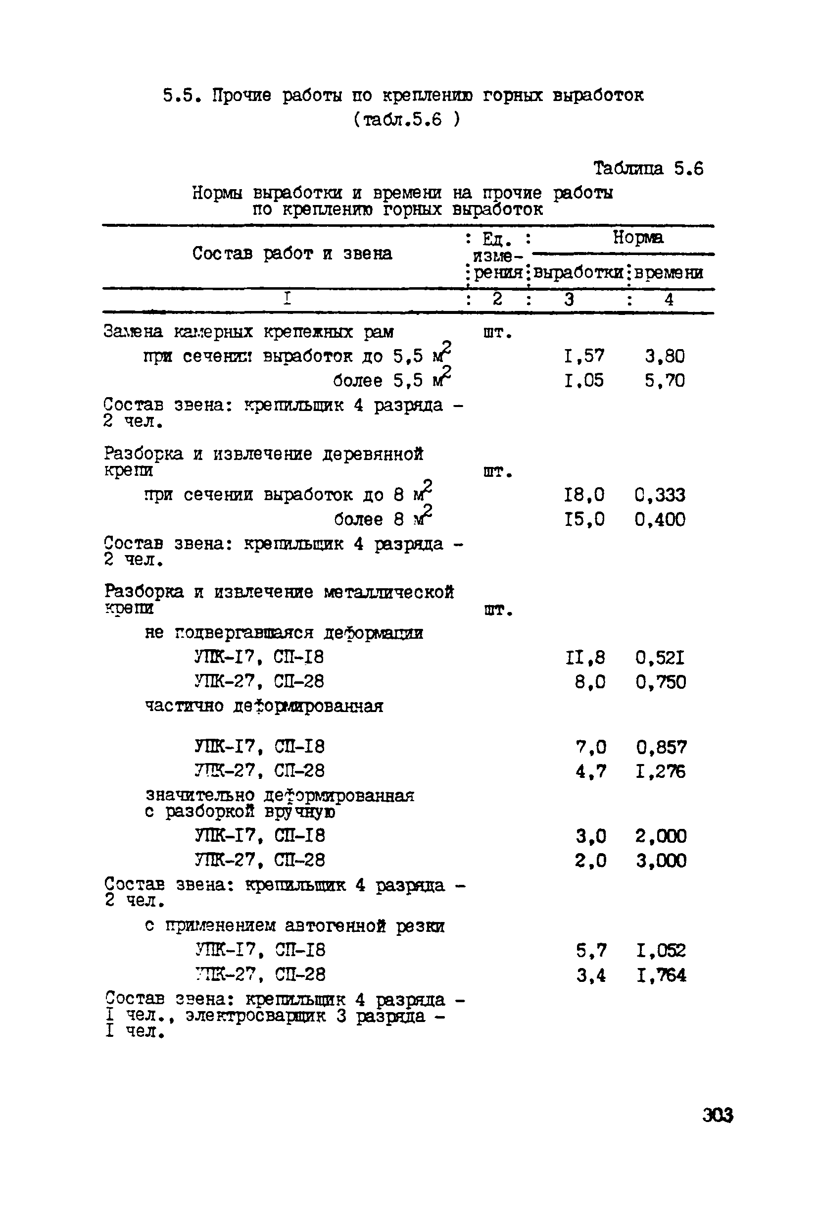 | Оглавление: | Общая часть Раздел 1. Проходка, крепление и армирование вертикальных стволов шахт; проведение сопряжений стволов с околоствольными дворами Глава 1. Проходка вертикальных стволов шахт 1.1 Проходка вертикальных стволов обычном способом 1.2 Проходка вертикальных стволов по замороженным породам 1.3 Проходка вертикальных стволов по породам, предварительно закрепленным химическим способом Глава 2. Крепление вертикальных стволов шахт бетоном 2.1 Временное крепление стволов металлическими кольцами 2.2 Крепление стволов круглого сечения бетоном и железобетоном 2.3 Крепление вертикальных стволов тюбингами 2.4 Крепление вертикальных стволов анкерной крепью 2.5 Установка и снятие деревянной опалубки заводного тюбингового кольца в конце заходки 2.6 Снятие первого тюбингового кольца 2.7 Сбивка кромки бетона на контакте заходки 2.8 Установка опорного венца из чугунных тюбингов 2.9 Укладка холодного бетона за опалубку при спуске его по трубам 2.10 Крепление стволов торкрет—бетоном Глава 3. Гидроизоляционные работы 3.1 Гидроизоляция тюбинговой крепи 3.2 Расчеканка свинцовых прокладок в тюбинговых швах и чеканка тюбинговых швов свинцовым шнуром 3.3 Очистка чугунной тюбинговой крепи после проходки и крепления ствола 3.4 Пикотаж горизонтального шва между двумя звеньями тюбинговой крепи ствола 3.5 Гидроизоляция чугунной тюбинговой крепи тампонажным раствором при поступлении его по трубам самотеком с поверхности 3.6 Первичное нагнетание за крепь шахтного ствола 3.7 Контрольное в нагнетание за крепь шахтного ствола 3.8 Контрольное подтягивание и замена болтов в тюбинговой отделке шахтного ствола 3.9 Установка и замена пробок в отверстиях тюбингов 3.10 Изоляция стыков тюбинговой крепи шахтного ствола 3.11 Штукатурка бетонной поверхности под изоляцию и по изоляции 3.12 Оклеечная изоляция стенок шахтного ствола 3.13 Устройство пикотажных манжет при крепления вертикальных стволов шахт железобетонными тюбингами 3.14 Бурение шпуров в бетоне Глава 4. Армирование стволов 4.1 Долбление лунок под расстрелы 4.2 Установка и заделка металлических расстрелов в готовые лунки 4.3 Сболчивание стальных расстрелов 4.4 Установка проводников 4.5 Оборудование лестничных отделений в стволах шахт 4.6 Устройство и разборка настилов по расстрелам 4.7 Установка рудничных станков на сопряжение с околоствольным двором 4.8 Монтаж компенсационных балок из спец профиля в стволе 4.9 Монтаж и демонтаж постоянных трубопроводов Глава 5. Вспомогательные работы при проходке и креплении стволов шахт 5.1 Устройство, разборка и переноска рабочего полка 5.2 Устройство деревянного временного переносного полка в стволе 5.3 Монтаж одноэтажных и двухэтажных подвесных металлических полков в стволах натяжных рам и предохранительных полков Глава 6. Устройство в стволах круглого сечения бетонного опорного венца (башмака) Глава 7. Проведение сопряжений вертикальных стволов с околоствольными дворами Раздел II. Проходка и крепление наклонных стволов Глава 1. Проходка наклонных стволов Глава 2. Крепление наклонных стволов Глава 3. Гидроизоляционные работы Глава 4. Вспомогательные работы при проходке и креплении вертикальных и наклонных стволов с применением специальных способов Раздел III. Проходка и крепление горизонтальных, наклонных и восстающих горных выработок Глава 1. Буровые работы Глава 2. Д