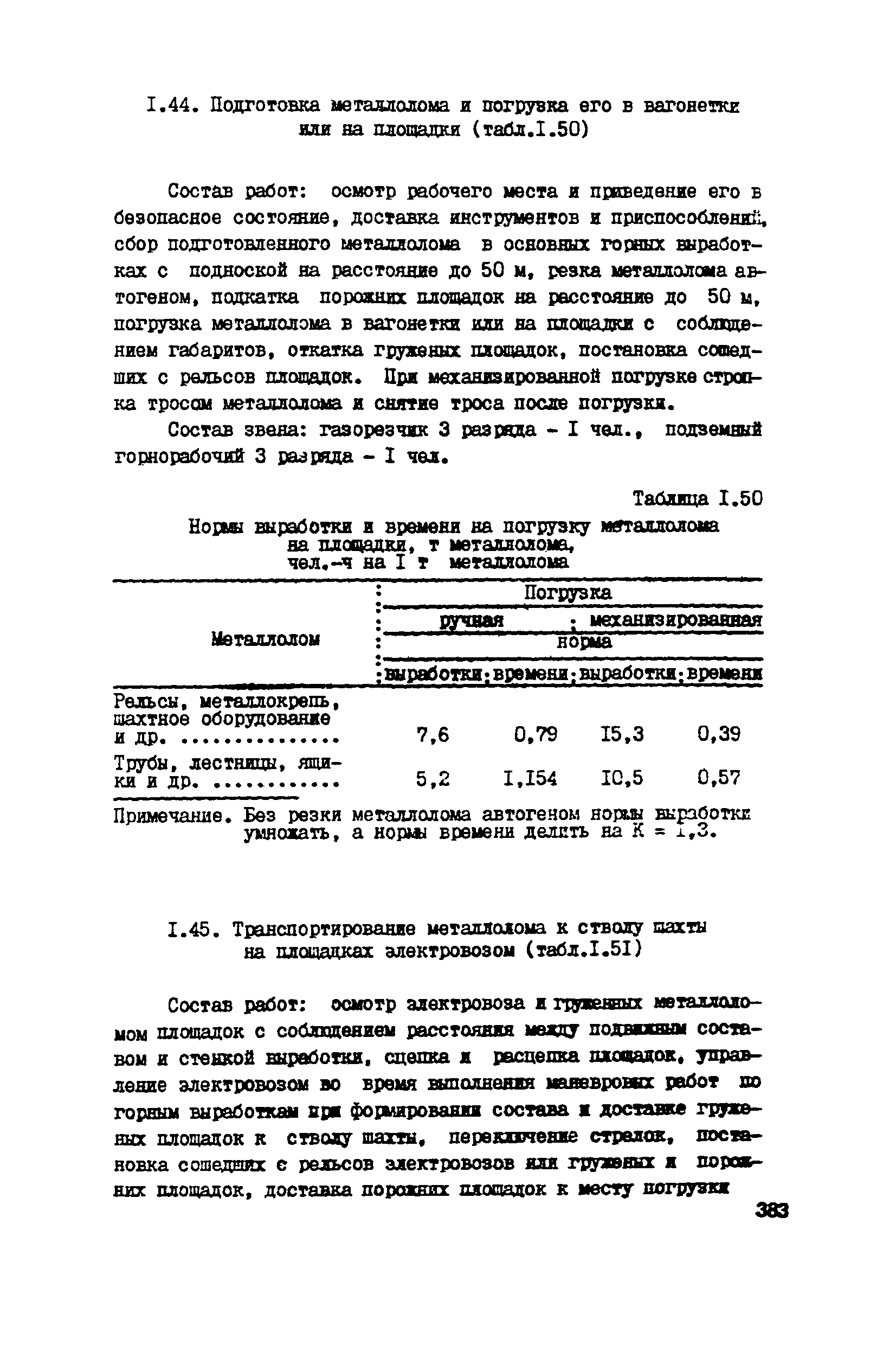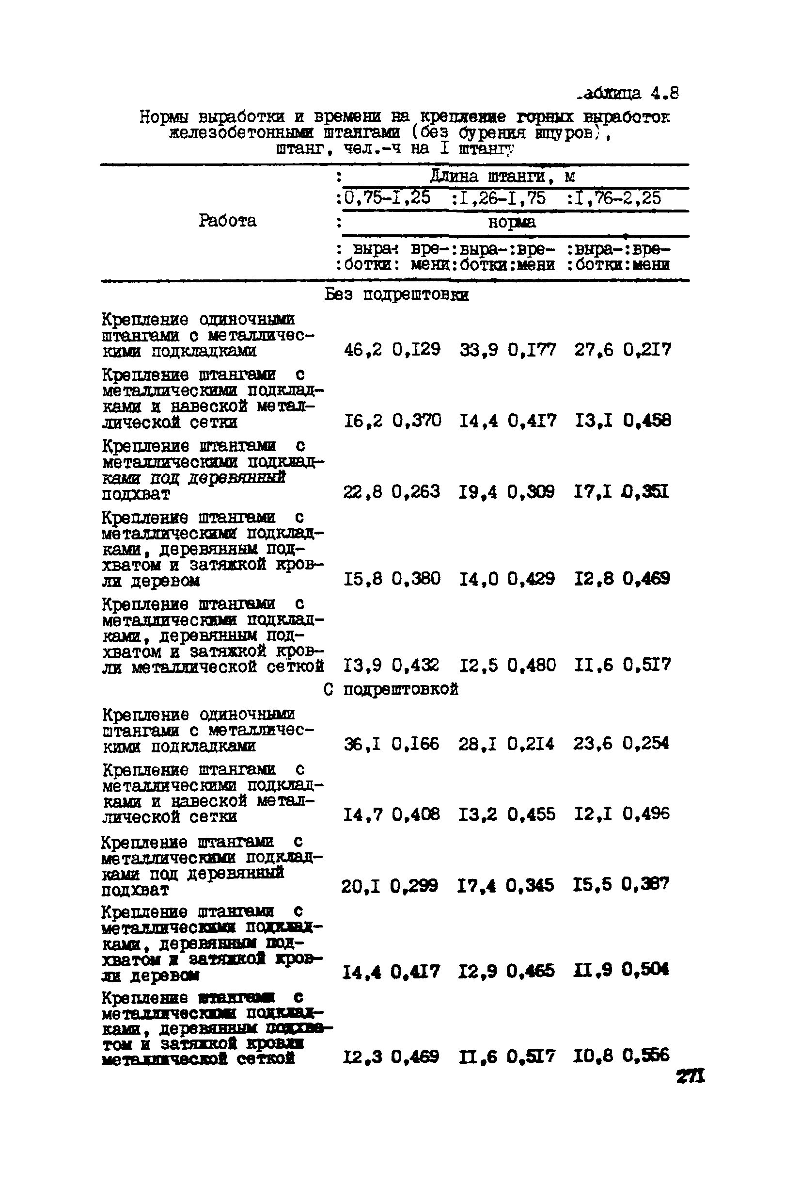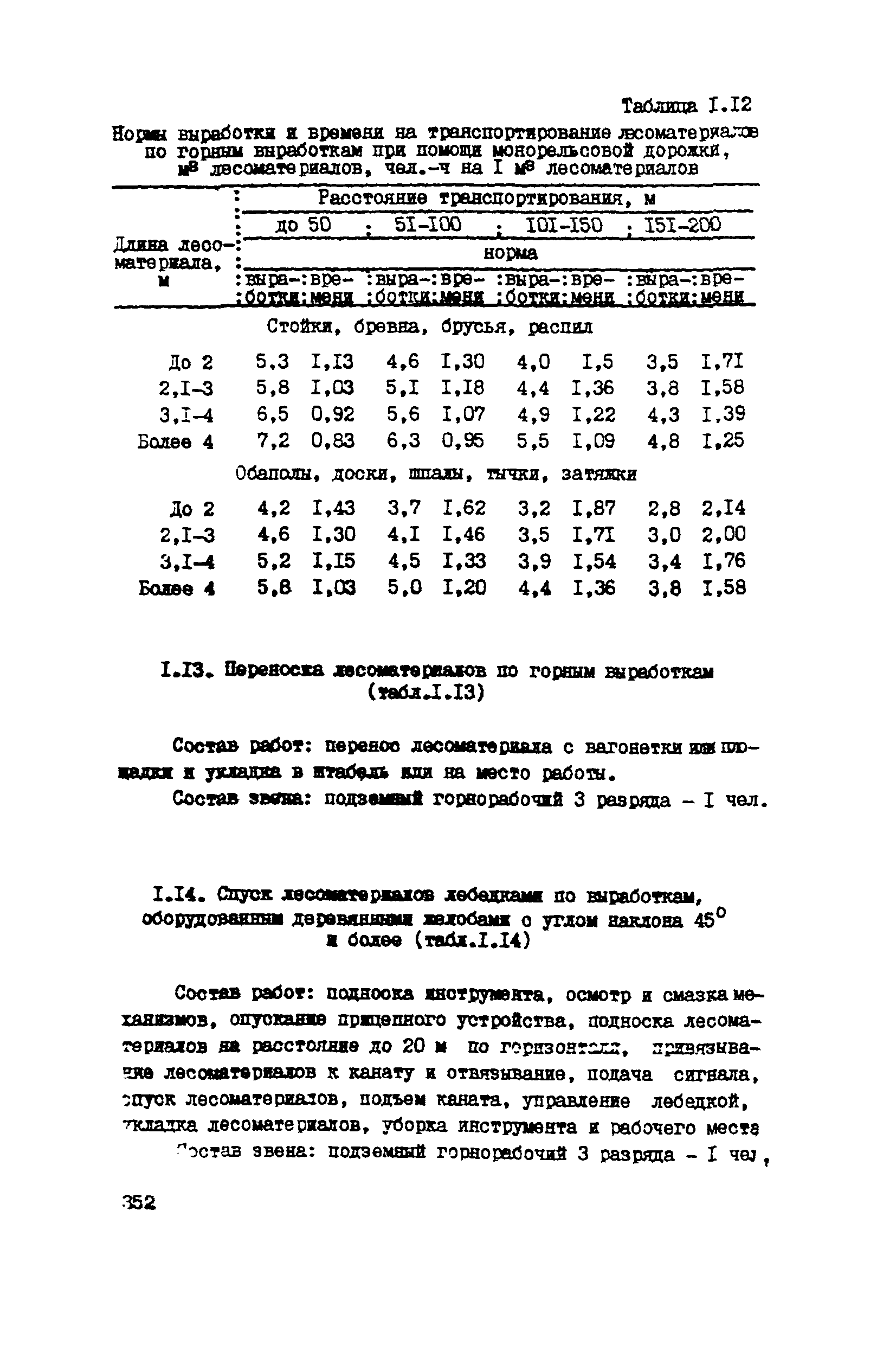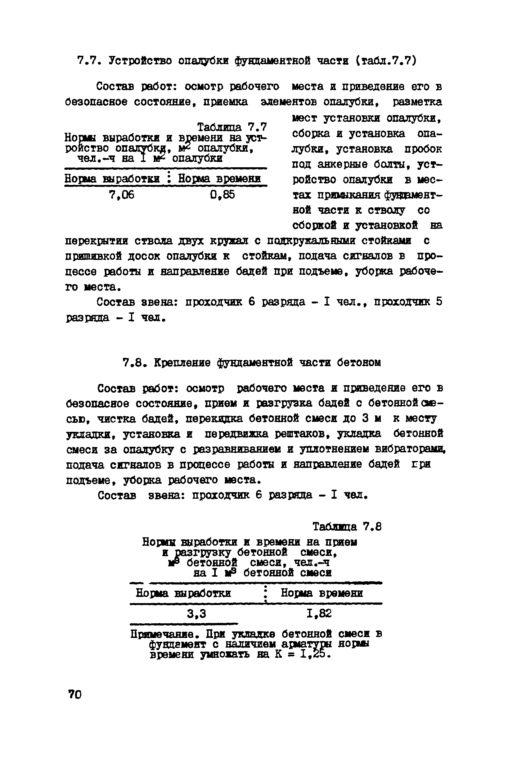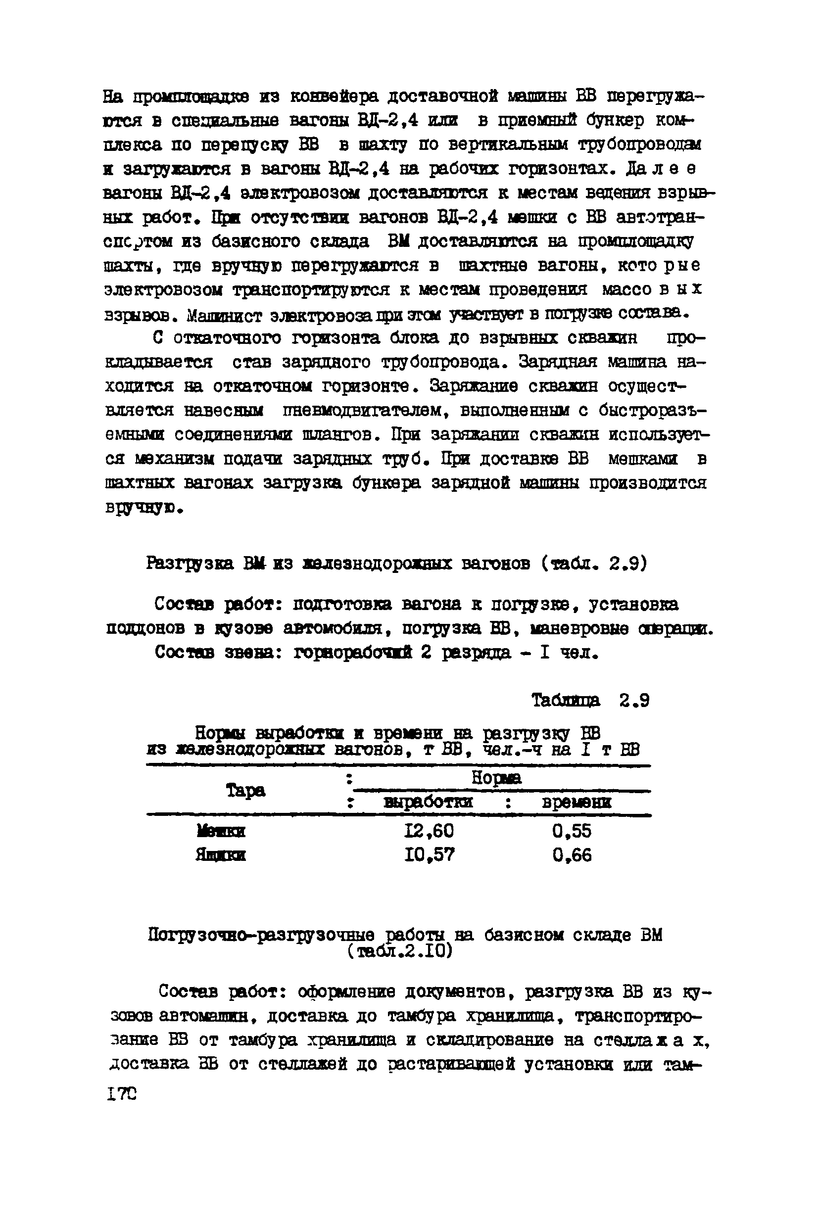 | Оглавление: | Общая часть Раздел 1. Проходка, крепление и армирование вертикальных стволов шахт; проведение сопряжений стволов с околоствольными дворами Глава 1. Проходка вертикальных стволов шахт 1.1 Проходка вертикальных стволов обычном способом 1.2 Проходка вертикальных стволов по замороженным породам 1.3 Проходка вертикальных стволов по породам, предварительно закрепленным химическим способом Глава 2. Крепление вертикальных стволов шахт бетоном 2.1 Временное крепление стволов металлическими кольцами 2.2 Крепление стволов круглого сечения бетоном и железобетоном 2.3 Крепление вертикальных стволов тюбингами 2.4 Крепление вертикальных стволов анкерной крепью 2.5 Установка и снятие деревянной опалубки заводного тюбингового кольца в конце заходки 2.6 Снятие первого тюбингового кольца 2.7 Сбивка кромки бетона на контакте заходки 2.8 Установка опорного венца из чугунных тюбингов 2.9 Укладка холодного бетона за опалубку при спуске его по трубам 2.10 Крепление стволов торкрет—бетоном Глава 3. Гидроизоляционные работы 3.1 Гидроизоляция тюбинговой крепи 3.2 Расчеканка свинцовых прокладок в тюбинговых швах и чеканка тюбинговых швов свинцовым шнуром 3.3 Очистка чугунной тюбинговой крепи после проходки и крепления ствола 3.4 Пикотаж горизонтального шва между двумя звеньями тюбинговой крепи ствола 3.5 Гидроизоляция чугунной тюбинговой крепи тампонажным раствором при поступлении его по трубам самотеком с поверхности 3.6 Первичное нагнетание за крепь шахтного ствола 3.7 Контрольное в нагнетание за крепь шахтного ствола 3.8 Контрольное подтягивание и замена болтов в тюбинговой отделке шахтного ствола 3.9 Установка и замена пробок в отверстиях тюбингов 3.10 Изоляция стыков тюбинговой крепи шахтного ствола 3.11 Штукатурка бетонной поверхности под изоляцию и по изоляции 3.12 Оклеечная изоляция стенок шахтного ствола 3.13 Устройство пикотажных манжет при крепления вертикальных стволов шахт железобетонными тюбингами 3.14 Бурение шпуров в бетоне Глава 4. Армирование стволов 4.1 Долбление лунок под расстрелы 4.2 Установка и заделка металлических расстрелов в готовые лунки 4.3 Сболчивание стальных расстрелов 4.4 Установка проводников 4.5 Оборудование лестничных отделений в стволах шахт 4.6 Устройство и разборка настилов по расстрелам 4.7 Установка рудничных станков на сопряжение с околоствольным двором 4.8 Монтаж компенсационных балок из спец профиля в стволе 4.9 Монтаж и демонтаж постоянных трубопроводов Глава 5. Вспомогательные работы при проходке и креплении стволов шахт 5.1 Устройство, разборка и переноска рабочего полка 5.2 Устройство деревянного временного переносного полка в стволе 5.3 Монтаж одноэтажных и двухэтажных подвесных металлических полков в стволах натяжных рам и предохранительных полков Глава 6. Устройство в стволах круглого сечения бетонного опорного венца (башмака) Глава 7. Проведение сопряжений вертикальных стволов с околоствольными дворами Раздел II. Проходка и крепление наклонных стволов Глава 1. Проходка наклонных стволов Глава 2. Крепление наклонных стволов Глава 3. Гидроизоляционные работы Глава 4. Вспомогательные работы при проходке и креплении вертикальных и наклонных стволов с применением специальных способов Раздел III. Проходка и крепление горизонтальных, наклонных и восстающих горных выработок Глава 1. Буровые работы Глава 2. Д