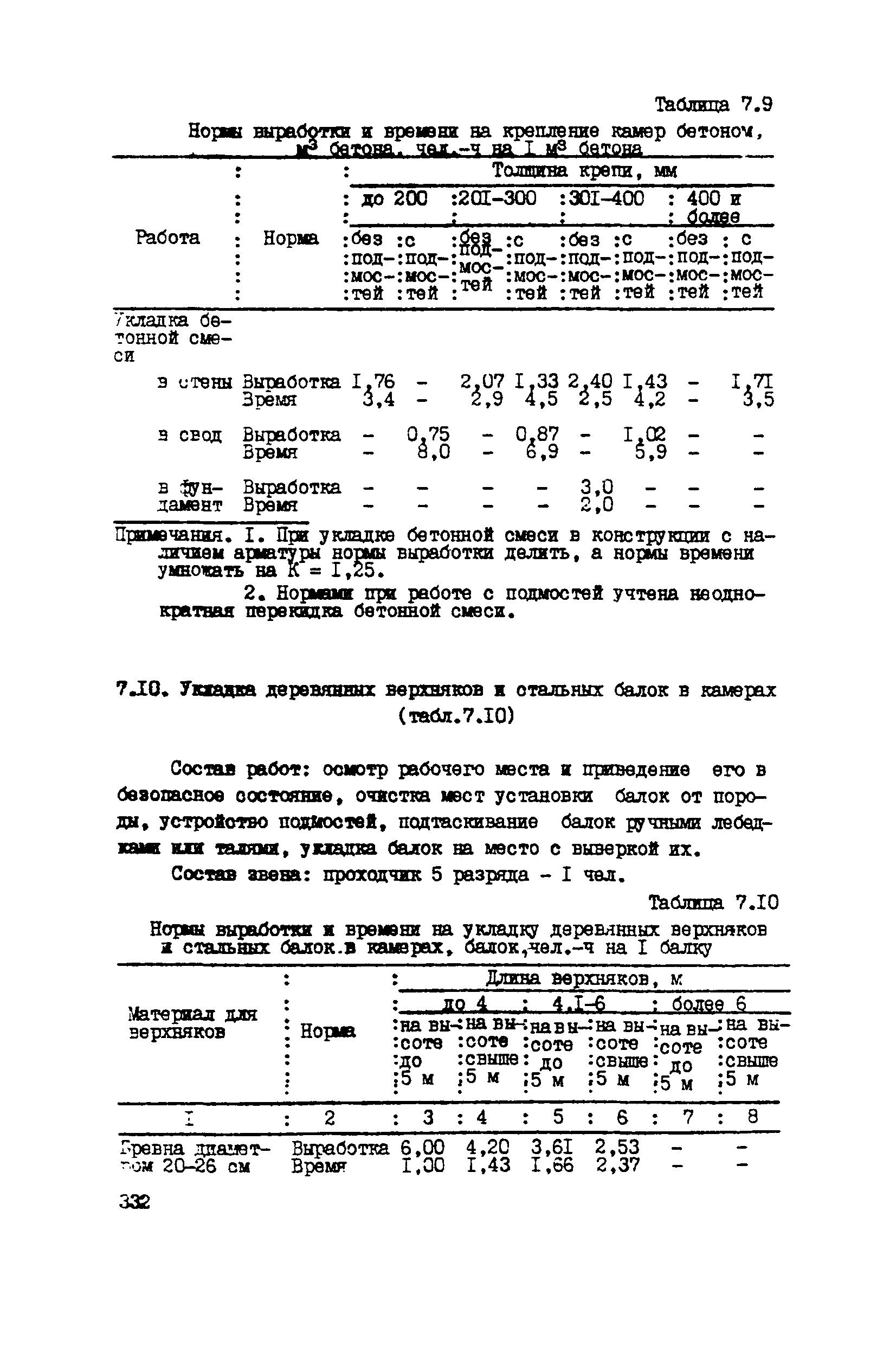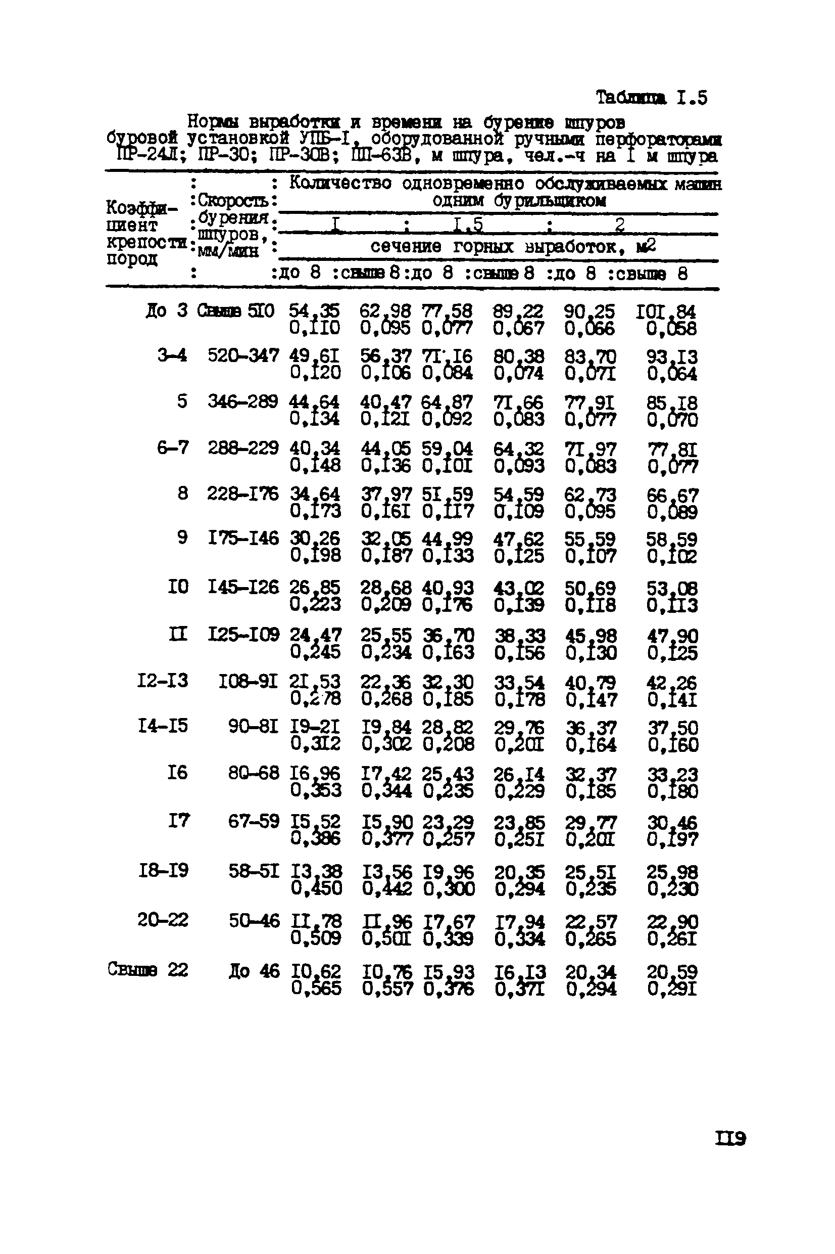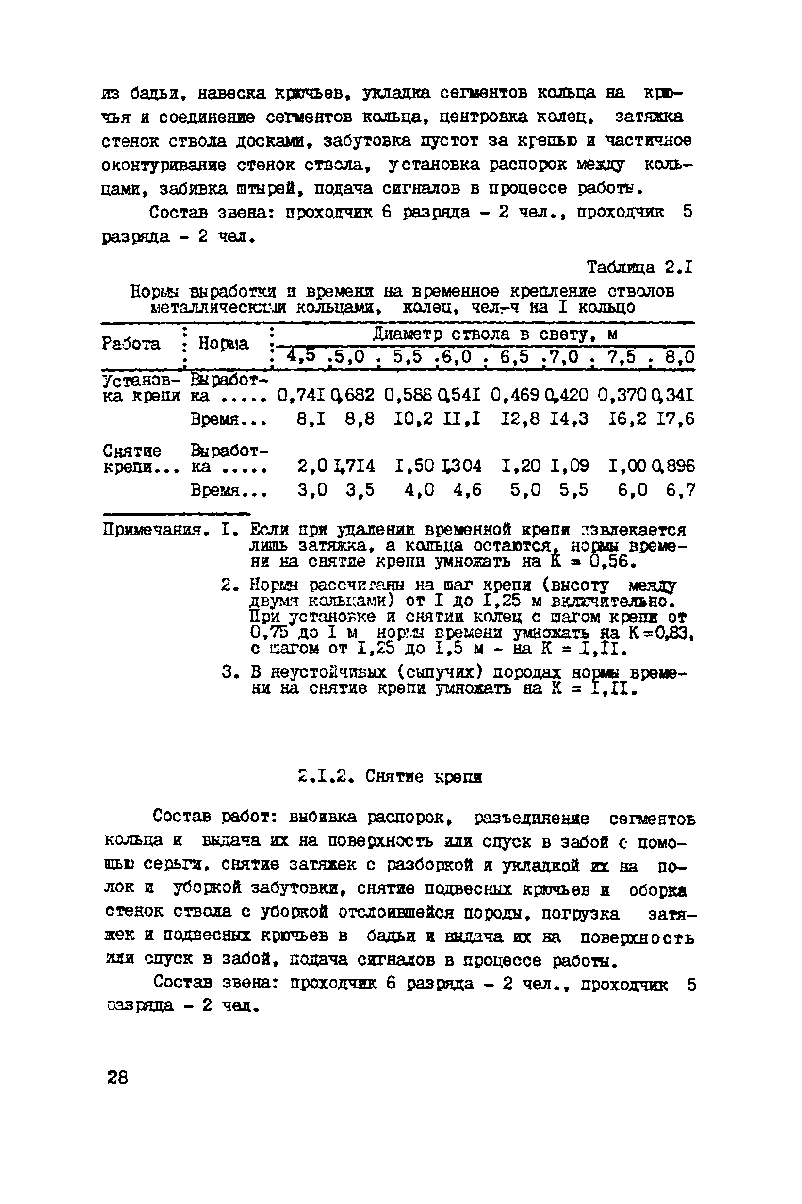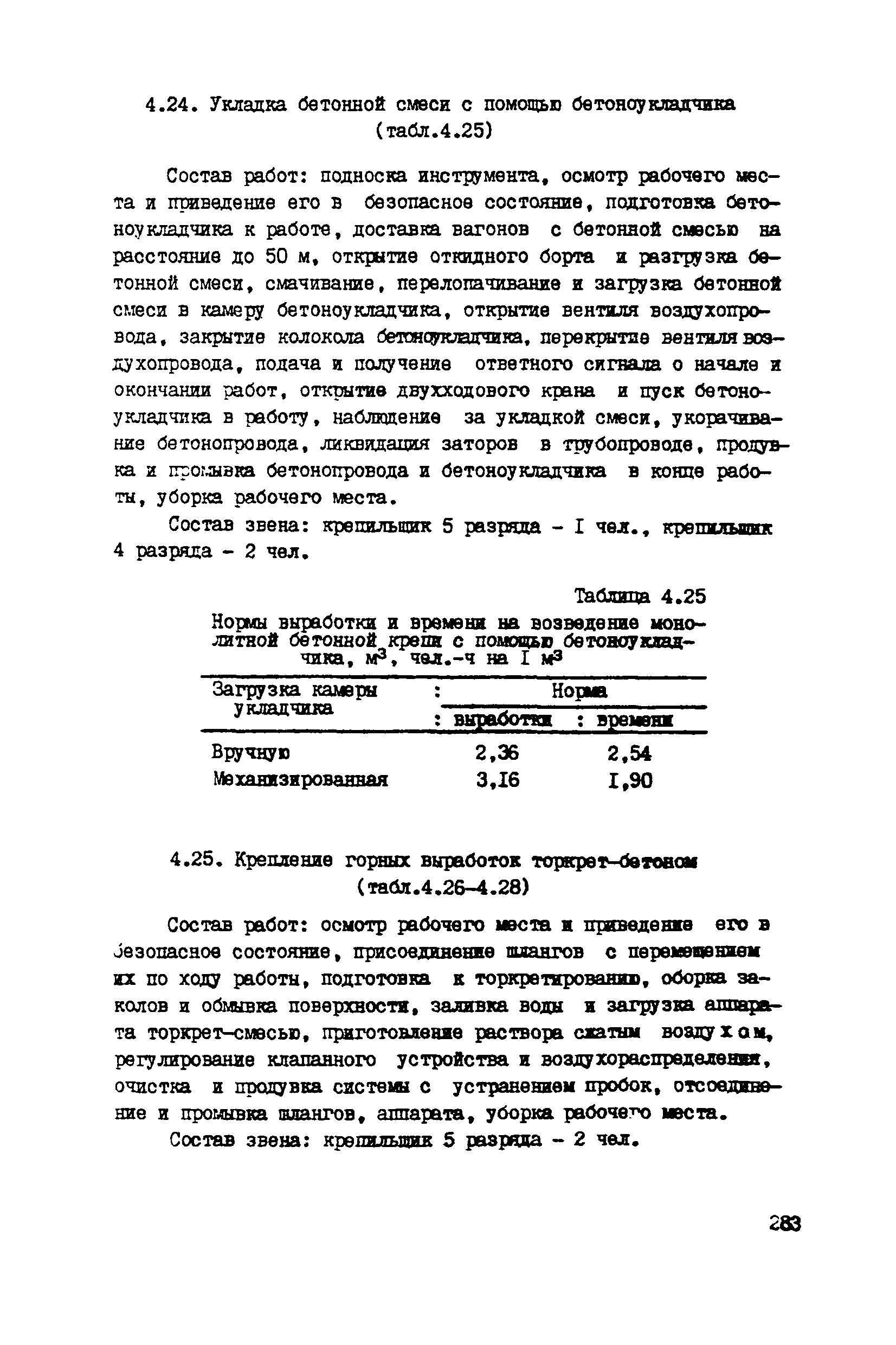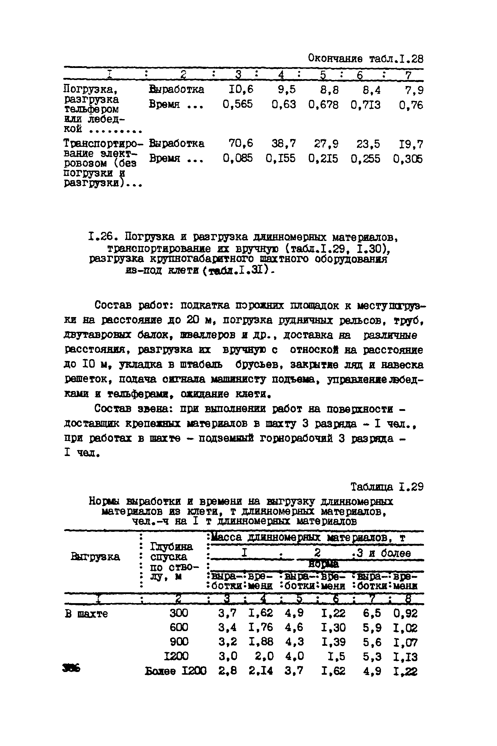 | Оглавление: | Общая часть Раздел 1. Проходка, крепление и армирование вертикальных стволов шахт; проведение сопряжений стволов с околоствольными дворами Глава 1. Проходка вертикальных стволов шахт 1.1 Проходка вертикальных стволов обычном способом 1.2 Проходка вертикальных стволов по замороженным породам 1.3 Проходка вертикальных стволов по породам, предварительно закрепленным химическим способом Глава 2. Крепление вертикальных стволов шахт бетоном 2.1 Временное крепление стволов металлическими кольцами 2.2 Крепление стволов круглого сечения бетоном и железобетоном 2.3 Крепление вертикальных стволов тюбингами 2.4 Крепление вертикальных стволов анкерной крепью 2.5 Установка и снятие деревянной опалубки заводного тюбингового кольца в конце заходки 2.6 Снятие первого тюбингового кольца 2.7 Сбивка кромки бетона на контакте заходки 2.8 Установка опорного венца из чугунных тюбингов 2.9 Укладка холодного бетона за опалубку при спуске его по трубам 2.10 Крепление стволов торкрет—бетоном Глава 3. Гидроизоляционные работы 3.1 Гидроизоляция тюбинговой крепи 3.2 Расчеканка свинцовых прокладок в тюбинговых швах и чеканка тюбинговых швов свинцовым шнуром 3.3 Очистка чугунной тюбинговой крепи после проходки и крепления ствола 3.4 Пикотаж горизонтального шва между двумя звеньями тюбинговой крепи ствола 3.5 Гидроизоляция чугунной тюбинговой крепи тампонажным раствором при поступлении его по трубам самотеком с поверхности 3.6 Первичное нагнетание за крепь шахтного ствола 3.7 Контрольное в нагнетание за крепь шахтного ствола 3.8 Контрольное подтягивание и замена болтов в тюбинговой отделке шахтного ствола 3.9 Установка и замена пробок в отверстиях тюбингов 3.10 Изоляция стыков тюбинговой крепи шахтного ствола 3.11 Штукатурка бетонной поверхности под изоляцию и по изоляции 3.12 Оклеечная изоляция стенок шахтного ствола 3.13 Устройство пикотажных манжет при крепления вертикальных стволов шахт железобетонными тюбингами 3.14 Бурение шпуров в бетоне Глава 4. Армирование стволов 4.1 Долбление лунок под расстрелы 4.2 Установка и заделка металлических расстрелов в готовые лунки 4.3 Сболчивание стальных расстрелов 4.4 Установка проводников 4.5 Оборудование лестничных отделений в стволах шахт 4.6 Устройство и разборка настилов по расстрелам 4.7 Установка рудничных станков на сопряжение с околоствольным двором 4.8 Монтаж компенсационных балок из спец профиля в стволе 4.9 Монтаж и демонтаж постоянных трубопроводов Глава 5. Вспомогательные работы при проходке и креплении стволов шахт 5.1 Устройство, разборка и переноска рабочего полка 5.2 Устройство деревянного временного переносного полка в стволе 5.3 Монтаж одноэтажных и двухэтажных подвесных металлических полков в стволах натяжных рам и предохранительных полков Глава 6. Устройство в стволах круглого сечения бетонного опорного венца (башмака) Глава 7. Проведение сопряжений вертикальных стволов с околоствольными дворами Раздел II. Проходка и крепление наклонных стволов Глава 1. Проходка наклонных стволов Глава 2. Крепление наклонных стволов Глава 3. Гидроизоляционные работы Глава 4. Вспомогательные работы при проходке и креплении вертикальных и наклонных стволов с применением специальных способов Раздел III. Проходка и крепление горизонтальных, наклонных и восстающих горных выработок Глава 1. Буровые работы Глава 2. Д