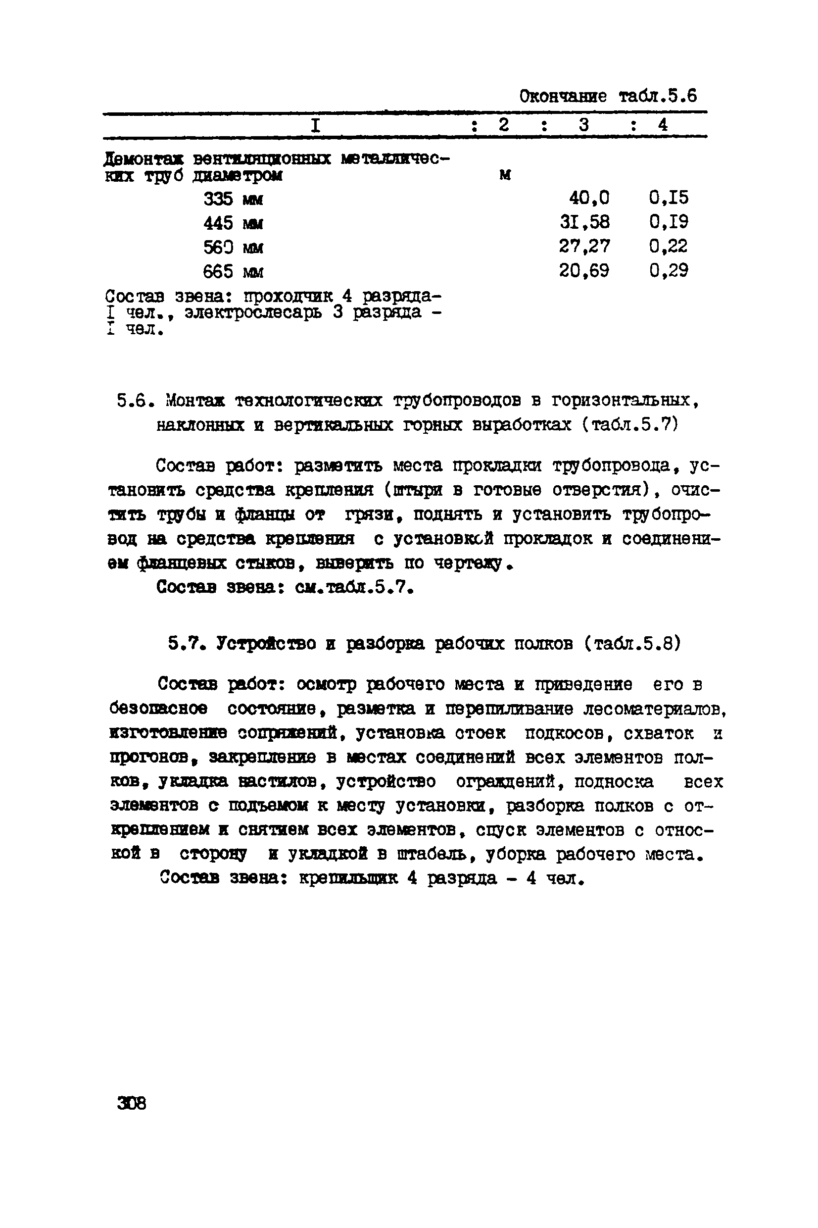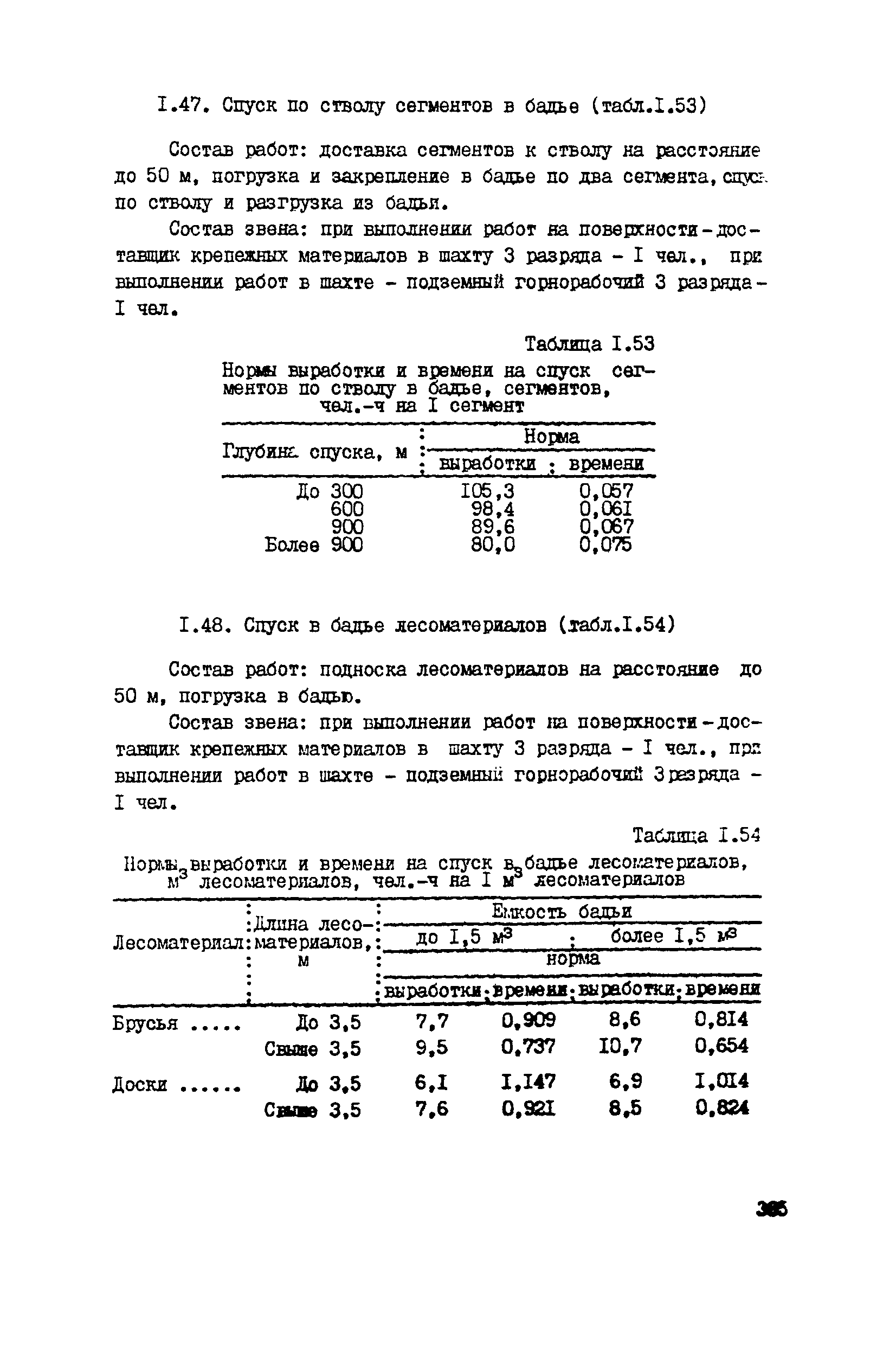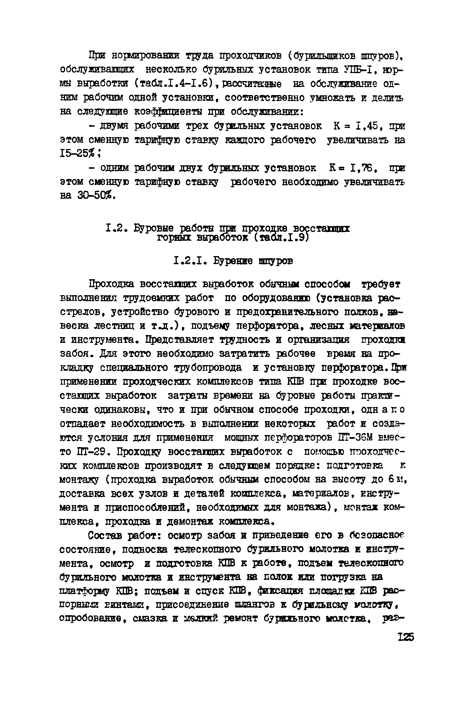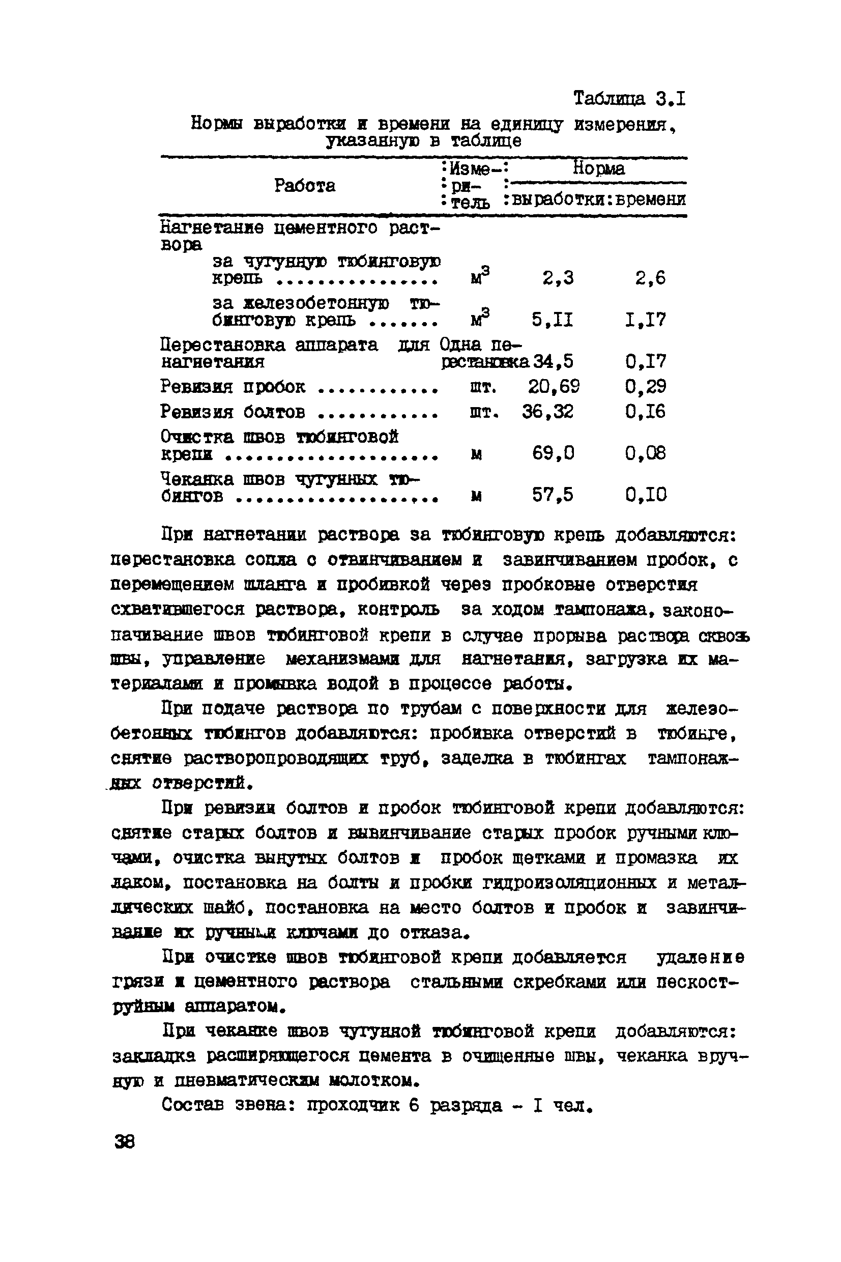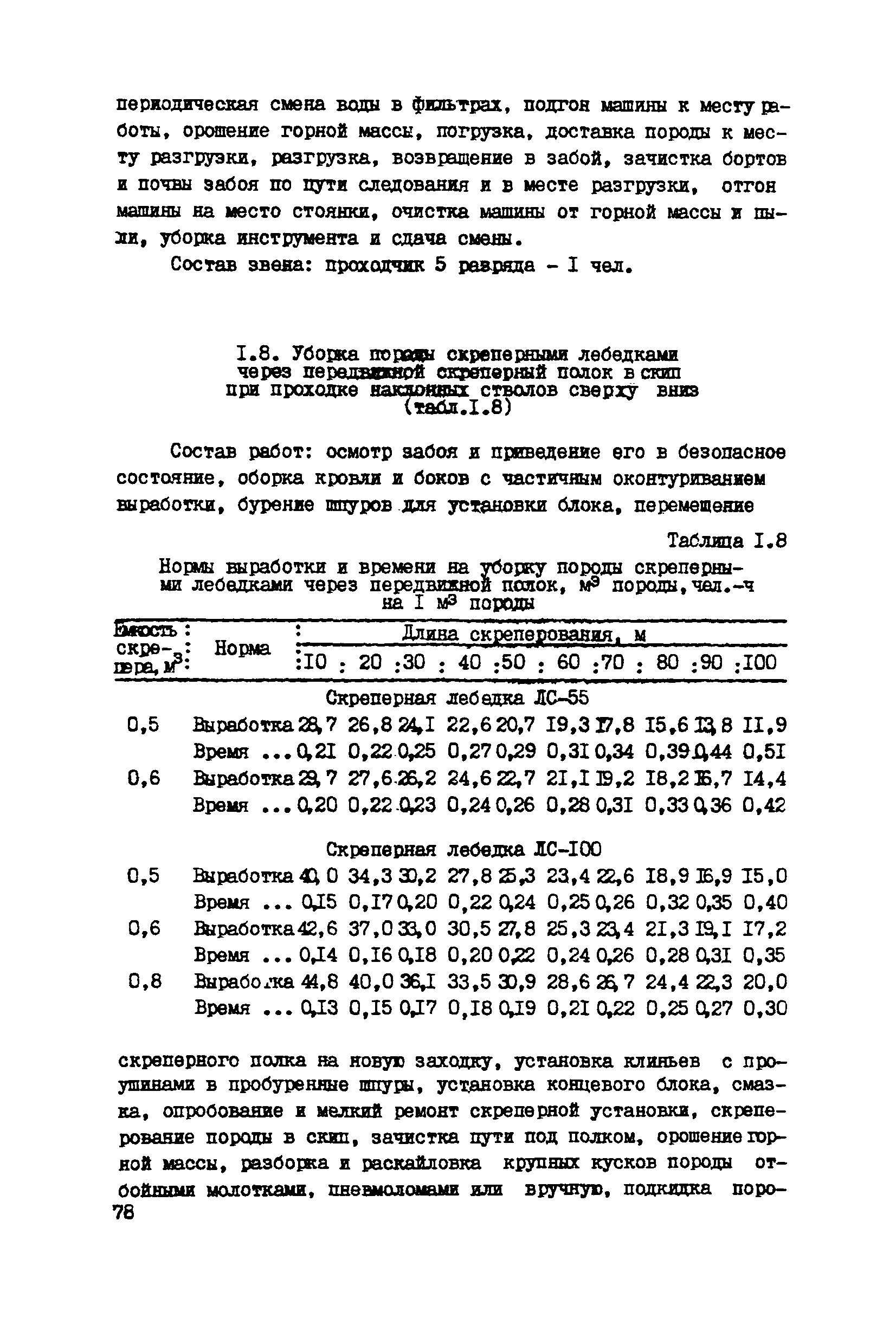 | Оглавление: | Общая часть Раздел 1. Проходка, крепление и армирование вертикальных стволов шахт; проведение сопряжений стволов с околоствольными дворами Глава 1. Проходка вертикальных стволов шахт 1.1 Проходка вертикальных стволов обычном способом 1.2 Проходка вертикальных стволов по замороженным породам 1.3 Проходка вертикальных стволов по породам, предварительно закрепленным химическим способом Глава 2. Крепление вертикальных стволов шахт бетоном 2.1 Временное крепление стволов металлическими кольцами 2.2 Крепление стволов круглого сечения бетоном и железобетоном 2.3 Крепление вертикальных стволов тюбингами 2.4 Крепление вертикальных стволов анкерной крепью 2.5 Установка и снятие деревянной опалубки заводного тюбингового кольца в конце заходки 2.6 Снятие первого тюбингового кольца 2.7 Сбивка кромки бетона на контакте заходки 2.8 Установка опорного венца из чугунных тюбингов 2.9 Укладка холодного бетона за опалубку при спуске его по трубам 2.10 Крепление стволов торкрет—бетоном Глава 3. Гидроизоляционные работы 3.1 Гидроизоляция тюбинговой крепи 3.2 Расчеканка свинцовых прокладок в тюбинговых швах и чеканка тюбинговых швов свинцовым шнуром 3.3 Очистка чугунной тюбинговой крепи после проходки и крепления ствола 3.4 Пикотаж горизонтального шва между двумя звеньями тюбинговой крепи ствола 3.5 Гидроизоляция чугунной тюбинговой крепи тампонажным раствором при поступлении его по трубам самотеком с поверхности 3.6 Первичное нагнетание за крепь шахтного ствола 3.7 Контрольное в нагнетание за крепь шахтного ствола 3.8 Контрольное подтягивание и замена болтов в тюбинговой отделке шахтного ствола 3.9 Установка и замена пробок в отверстиях тюбингов 3.10 Изоляция стыков тюбинговой крепи шахтного ствола 3.11 Штукатурка бетонной поверхности под изоляцию и по изоляции 3.12 Оклеечная изоляция стенок шахтного ствола 3.13 Устройство пикотажных манжет при крепления вертикальных стволов шахт железобетонными тюбингами 3.14 Бурение шпуров в бетоне Глава 4. Армирование стволов 4.1 Долбление лунок под расстрелы 4.2 Установка и заделка металлических расстрелов в готовые лунки 4.3 Сболчивание стальных расстрелов 4.4 Установка проводников 4.5 Оборудование лестничных отделений в стволах шахт 4.6 Устройство и разборка настилов по расстрелам 4.7 Установка рудничных станков на сопряжение с околоствольным двором 4.8 Монтаж компенсационных балок из спец профиля в стволе 4.9 Монтаж и демонтаж постоянных трубопроводов Глава 5. Вспомогательные работы при проходке и креплении стволов шахт 5.1 Устройство, разборка и переноска рабочего полка 5.2 Устройство деревянного временного переносного полка в стволе 5.3 Монтаж одноэтажных и двухэтажных подвесных металлических полков в стволах натяжных рам и предохранительных полков Глава 6. Устройство в стволах круглого сечения бетонного опорного венца (башмака) Глава 7. Проведение сопряжений вертикальных стволов с околоствольными дворами Раздел II. Проходка и крепление наклонных стволов Глава 1. Проходка наклонных стволов Глава 2. Крепление наклонных стволов Глава 3. Гидроизоляционные работы Глава 4. Вспомогательные работы при проходке и креплении вертикальных и наклонных стволов с применением специальных способов Раздел III. Проходка и крепление горизонтальных, наклонных и восстающих горных выработок Глава 1. Буровые работы Глава 2. Д