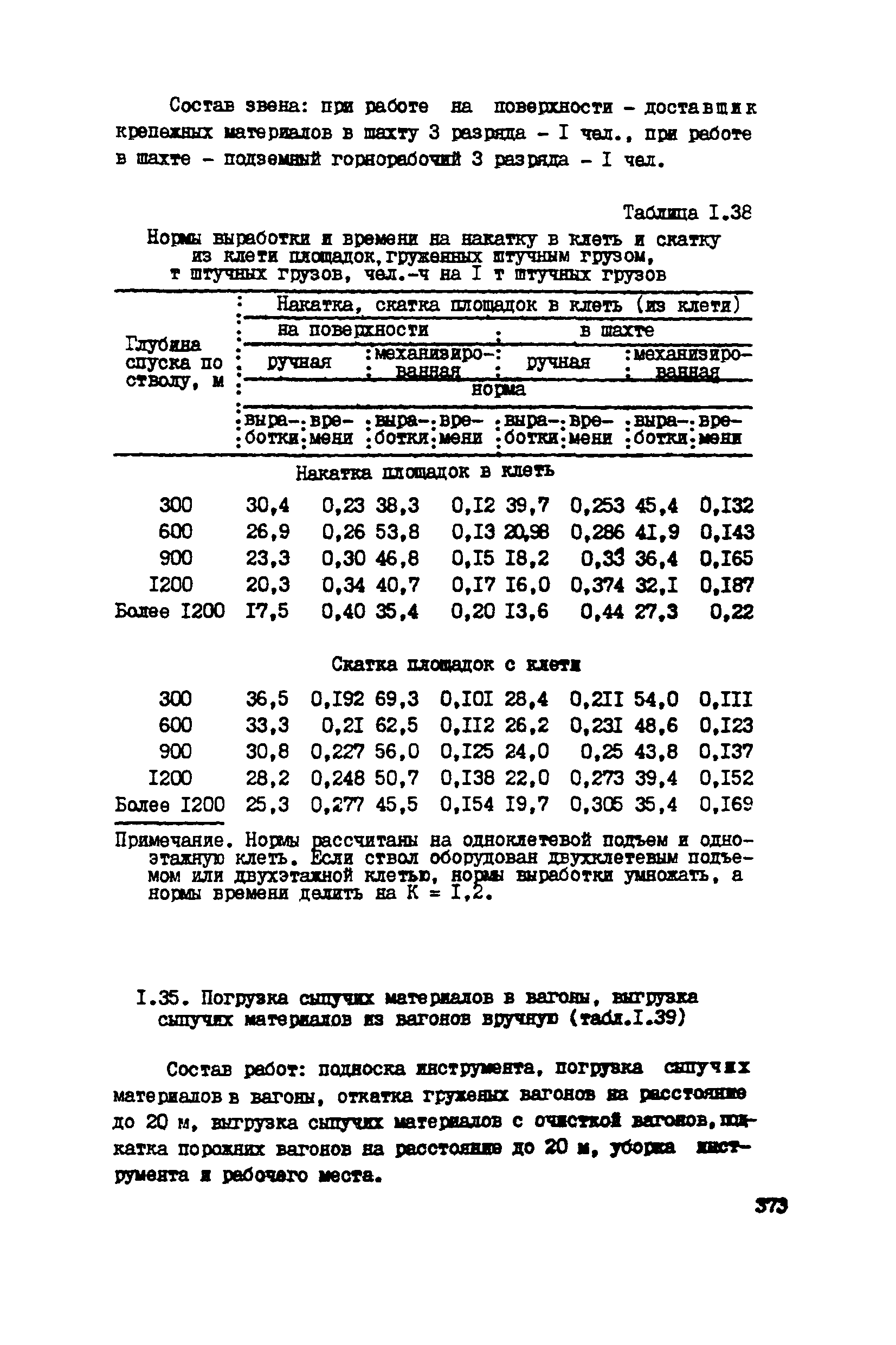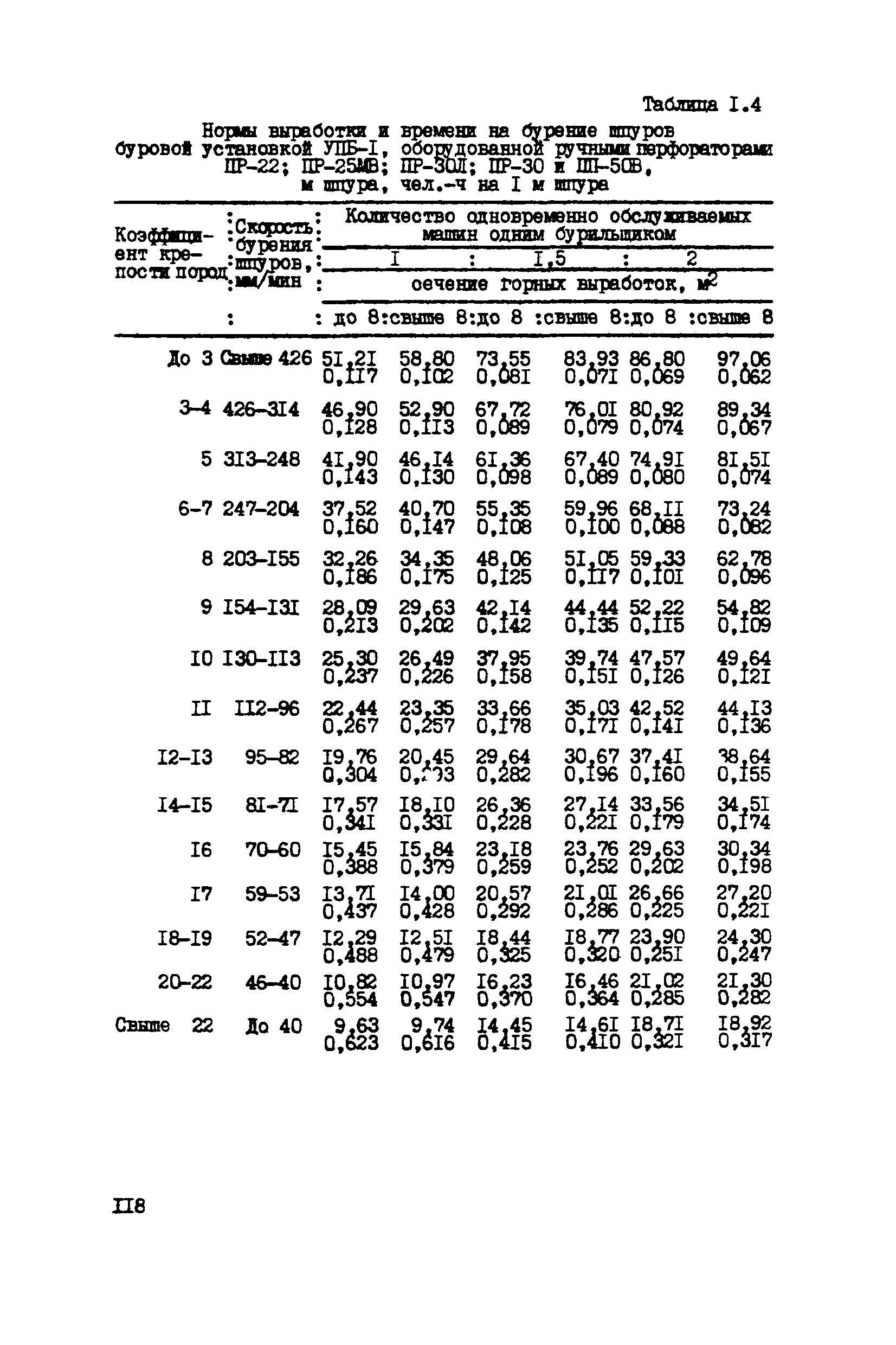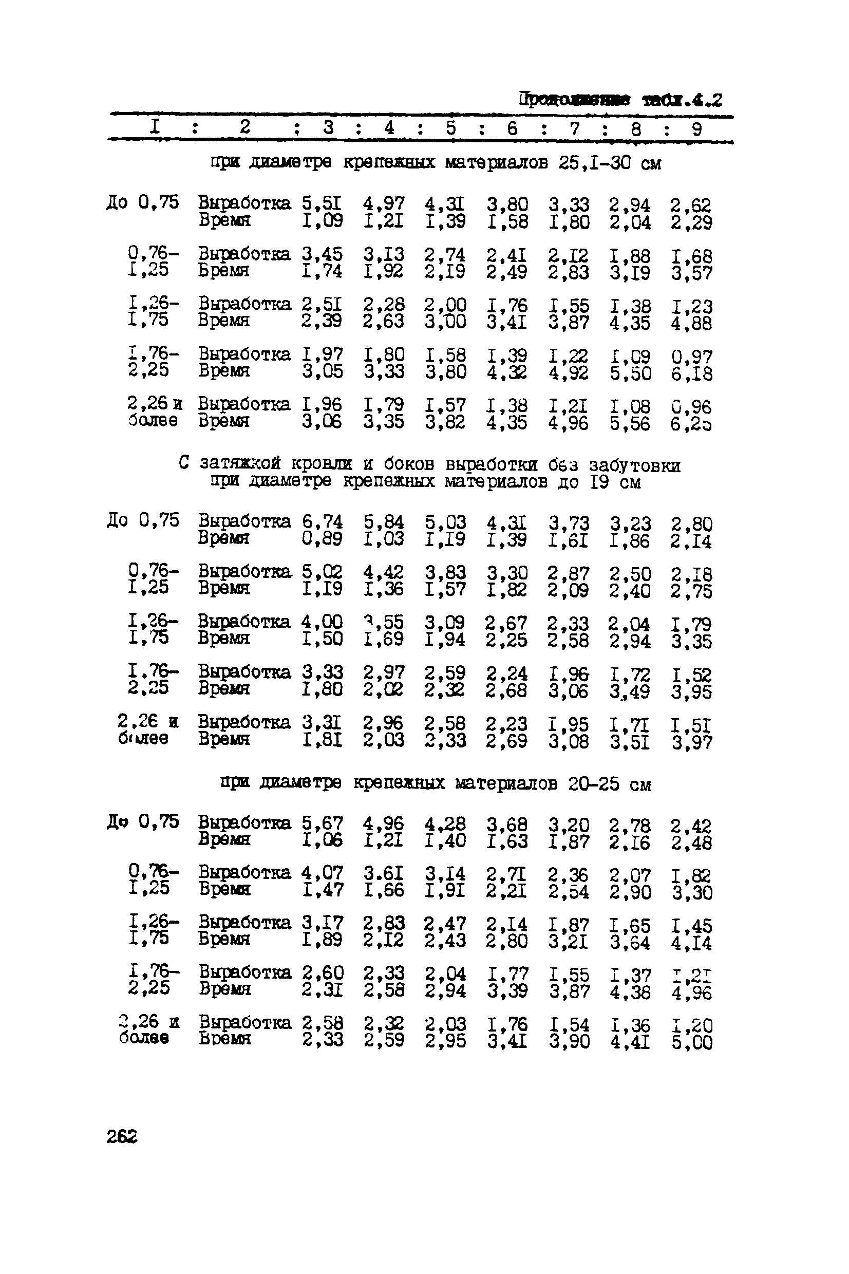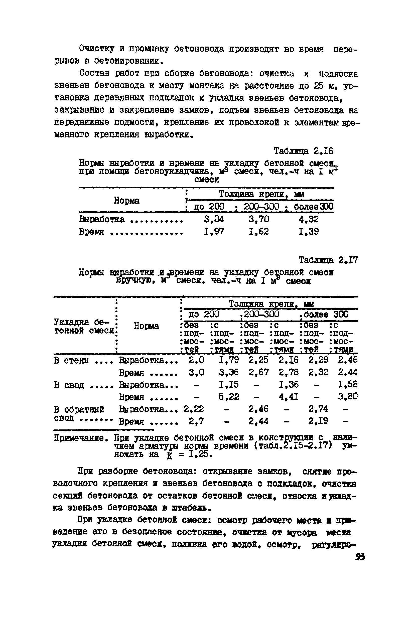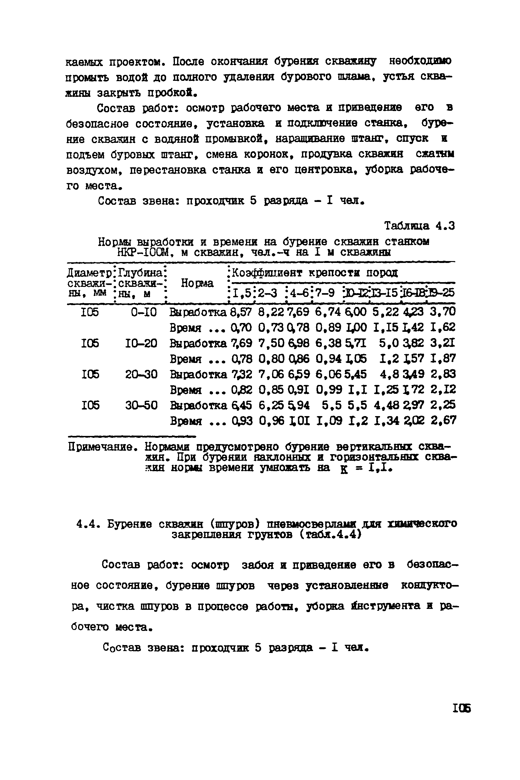 | Оглавление: | Общая часть Раздел 1. Проходка, крепление и армирование вертикальных стволов шахт; проведение сопряжений стволов с околоствольными дворами Глава 1. Проходка вертикальных стволов шахт 1.1 Проходка вертикальных стволов обычном способом 1.2 Проходка вертикальных стволов по замороженным породам 1.3 Проходка вертикальных стволов по породам, предварительно закрепленным химическим способом Глава 2. Крепление вертикальных стволов шахт бетоном 2.1 Временное крепление стволов металлическими кольцами 2.2 Крепление стволов круглого сечения бетоном и железобетоном 2.3 Крепление вертикальных стволов тюбингами 2.4 Крепление вертикальных стволов анкерной крепью 2.5 Установка и снятие деревянной опалубки заводного тюбингового кольца в конце заходки 2.6 Снятие первого тюбингового кольца 2.7 Сбивка кромки бетона на контакте заходки 2.8 Установка опорного венца из чугунных тюбингов 2.9 Укладка холодного бетона за опалубку при спуске его по трубам 2.10 Крепление стволов торкрет—бетоном Глава 3. Гидроизоляционные работы 3.1 Гидроизоляция тюбинговой крепи 3.2 Расчеканка свинцовых прокладок в тюбинговых швах и чеканка тюбинговых швов свинцовым шнуром 3.3 Очистка чугунной тюбинговой крепи после проходки и крепления ствола 3.4 Пикотаж горизонтального шва между двумя звеньями тюбинговой крепи ствола 3.5 Гидроизоляция чугунной тюбинговой крепи тампонажным раствором при поступлении его по трубам самотеком с поверхности 3.6 Первичное нагнетание за крепь шахтного ствола 3.7 Контрольное в нагнетание за крепь шахтного ствола 3.8 Контрольное подтягивание и замена болтов в тюбинговой отделке шахтного ствола 3.9 Установка и замена пробок в отверстиях тюбингов 3.10 Изоляция стыков тюбинговой крепи шахтного ствола 3.11 Штукатурка бетонной поверхности под изоляцию и по изоляции 3.12 Оклеечная изоляция стенок шахтного ствола 3.13 Устройство пикотажных манжет при крепления вертикальных стволов шахт железобетонными тюбингами 3.14 Бурение шпуров в бетоне Глава 4. Армирование стволов 4.1 Долбление лунок под расстрелы 4.2 Установка и заделка металлических расстрелов в готовые лунки 4.3 Сболчивание стальных расстрелов 4.4 Установка проводников 4.5 Оборудование лестничных отделений в стволах шахт 4.6 Устройство и разборка настилов по расстрелам 4.7 Установка рудничных станков на сопряжение с околоствольным двором 4.8 Монтаж компенсационных балок из спец профиля в стволе 4.9 Монтаж и демонтаж постоянных трубопроводов Глава 5. Вспомогательные работы при проходке и креплении стволов шахт 5.1 Устройство, разборка и переноска рабочего полка 5.2 Устройство деревянного временного переносного полка в стволе 5.3 Монтаж одноэтажных и двухэтажных подвесных металлических полков в стволах натяжных рам и предохранительных полков Глава 6. Устройство в стволах круглого сечения бетонного опорного венца (башмака) Глава 7. Проведение сопряжений вертикальных стволов с околоствольными дворами Раздел II. Проходка и крепление наклонных стволов Глава 1. Проходка наклонных стволов Глава 2. Крепление наклонных стволов Глава 3. Гидроизоляционные работы Глава 4. Вспомогательные работы при проходке и креплении вертикальных и наклонных стволов с применением специальных способов Раздел III. Проходка и крепление горизонтальных, наклонных и восстающих горных выработок Глава 1. Буровые работы Глава 2. Д