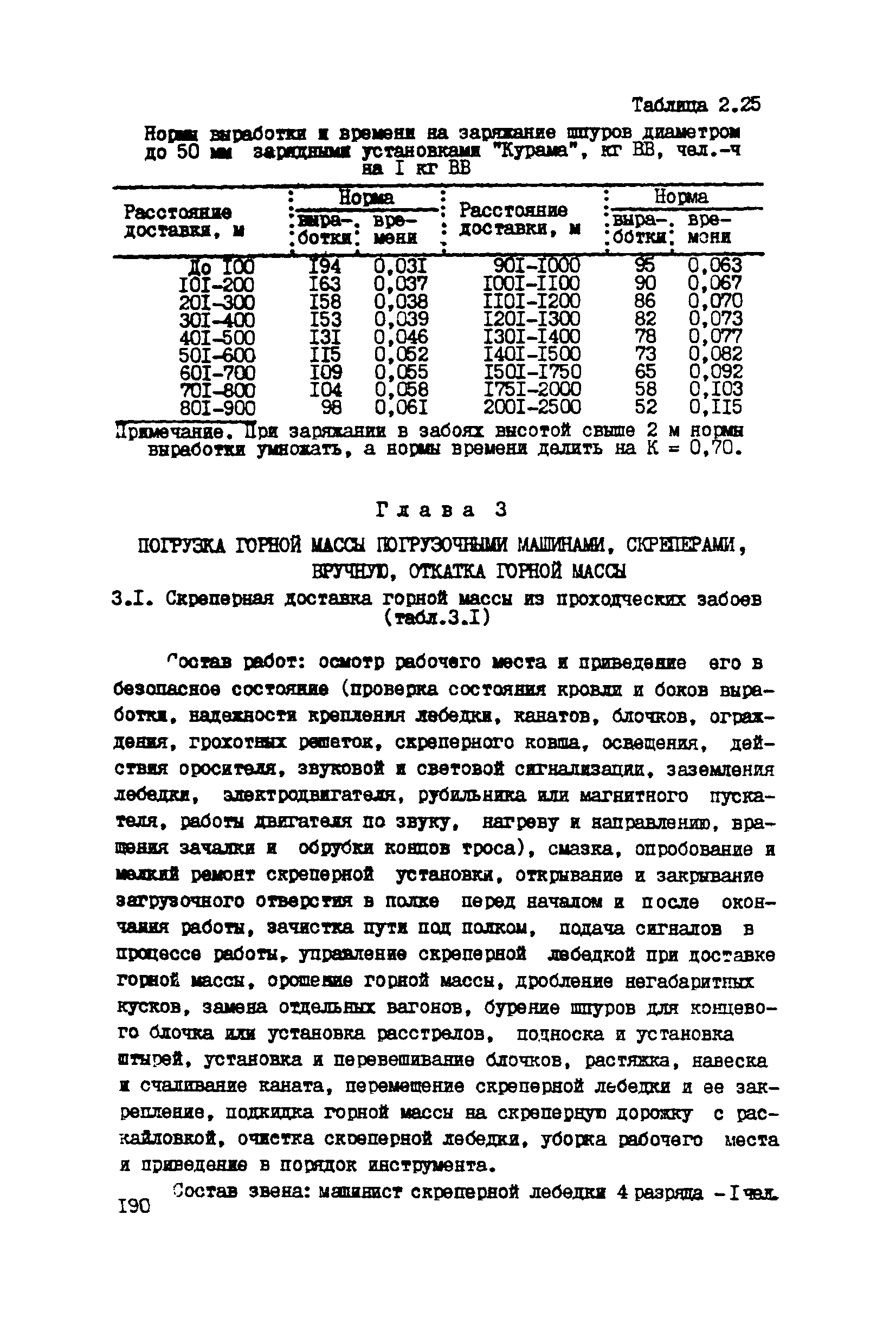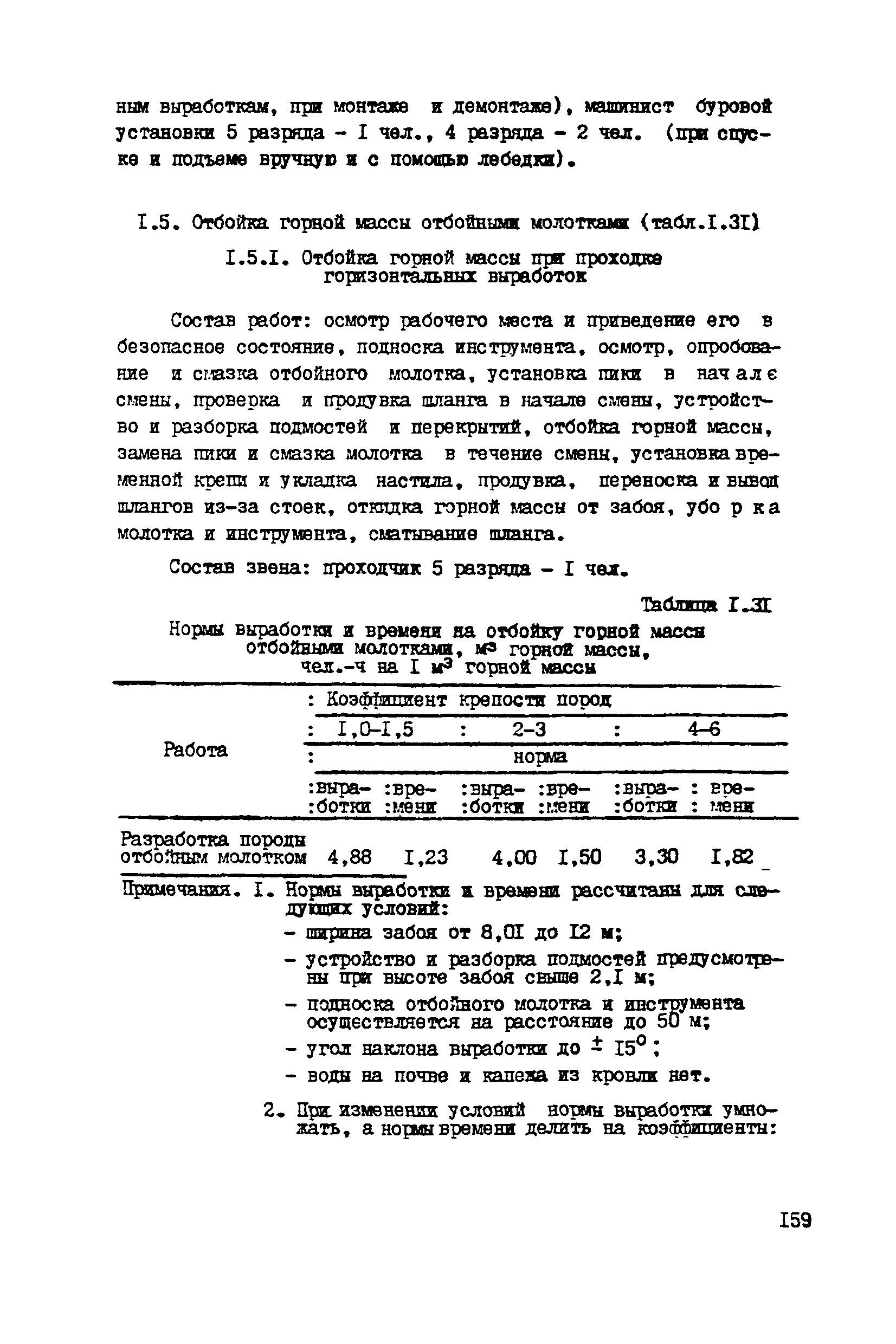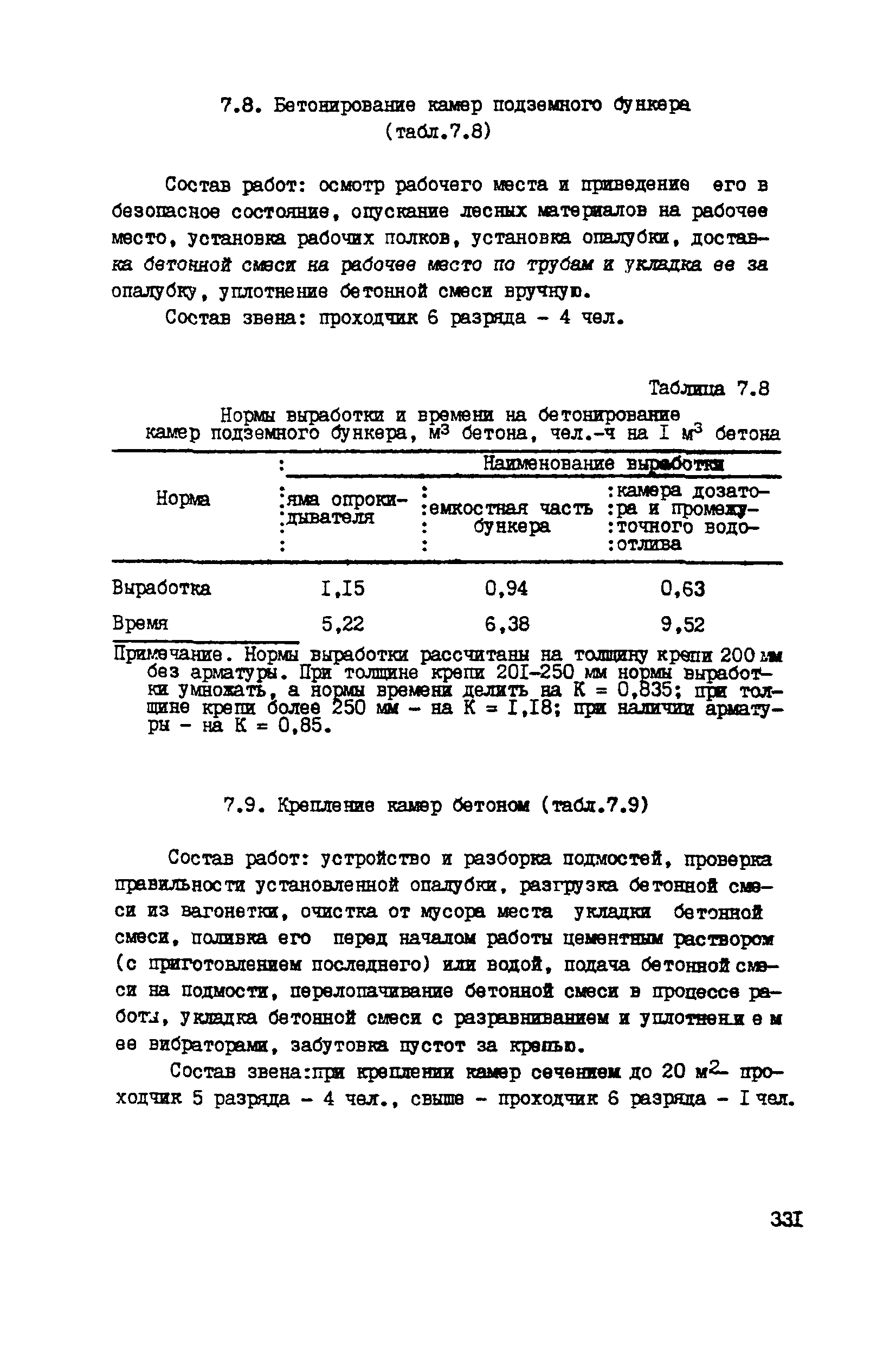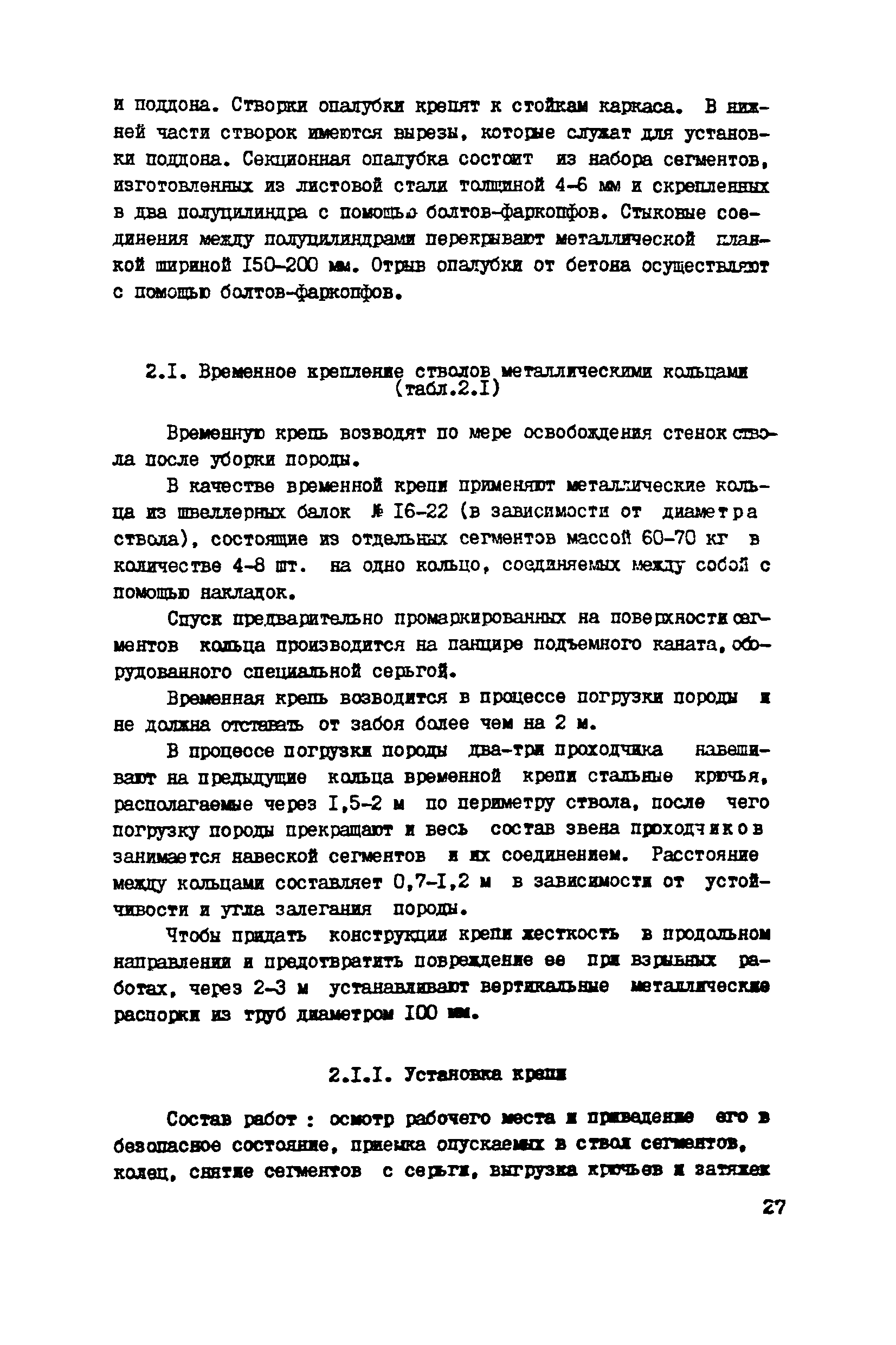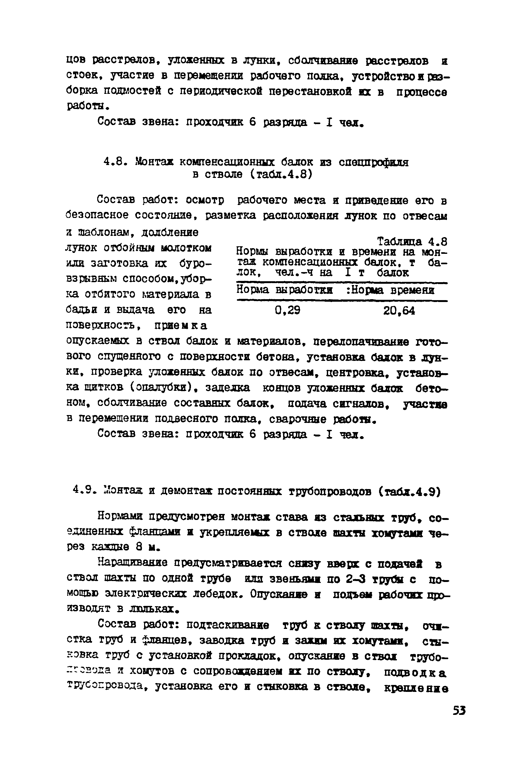 | Оглавление: | Общая часть Раздел 1. Проходка, крепление и армирование вертикальных стволов шахт; проведение сопряжений стволов с околоствольными дворами Глава 1. Проходка вертикальных стволов шахт 1.1 Проходка вертикальных стволов обычном способом 1.2 Проходка вертикальных стволов по замороженным породам 1.3 Проходка вертикальных стволов по породам, предварительно закрепленным химическим способом Глава 2. Крепление вертикальных стволов шахт бетоном 2.1 Временное крепление стволов металлическими кольцами 2.2 Крепление стволов круглого сечения бетоном и железобетоном 2.3 Крепление вертикальных стволов тюбингами 2.4 Крепление вертикальных стволов анкерной крепью 2.5 Установка и снятие деревянной опалубки заводного тюбингового кольца в конце заходки 2.6 Снятие первого тюбингового кольца 2.7 Сбивка кромки бетона на контакте заходки 2.8 Установка опорного венца из чугунных тюбингов 2.9 Укладка холодного бетона за опалубку при спуске его по трубам 2.10 Крепление стволов торкрет—бетоном Глава 3. Гидроизоляционные работы 3.1 Гидроизоляция тюбинговой крепи 3.2 Расчеканка свинцовых прокладок в тюбинговых швах и чеканка тюбинговых швов свинцовым шнуром 3.3 Очистка чугунной тюбинговой крепи после проходки и крепления ствола 3.4 Пикотаж горизонтального шва между двумя звеньями тюбинговой крепи ствола 3.5 Гидроизоляция чугунной тюбинговой крепи тампонажным раствором при поступлении его по трубам самотеком с поверхности 3.6 Первичное нагнетание за крепь шахтного ствола 3.7 Контрольное в нагнетание за крепь шахтного ствола 3.8 Контрольное подтягивание и замена болтов в тюбинговой отделке шахтного ствола 3.9 Установка и замена пробок в отверстиях тюбингов 3.10 Изоляция стыков тюбинговой крепи шахтного ствола 3.11 Штукатурка бетонной поверхности под изоляцию и по изоляции 3.12 Оклеечная изоляция стенок шахтного ствола 3.13 Устройство пикотажных манжет при крепления вертикальных стволов шахт железобетонными тюбингами 3.14 Бурение шпуров в бетоне Глава 4. Армирование стволов 4.1 Долбление лунок под расстрелы 4.2 Установка и заделка металлических расстрелов в готовые лунки 4.3 Сболчивание стальных расстрелов 4.4 Установка проводников 4.5 Оборудование лестничных отделений в стволах шахт 4.6 Устройство и разборка настилов по расстрелам 4.7 Установка рудничных станков на сопряжение с околоствольным двором 4.8 Монтаж компенсационных балок из спец профиля в стволе 4.9 Монтаж и демонтаж постоянных трубопроводов Глава 5. Вспомогательные работы при проходке и креплении стволов шахт 5.1 Устройство, разборка и переноска рабочего полка 5.2 Устройство деревянного временного переносного полка в стволе 5.3 Монтаж одноэтажных и двухэтажных подвесных металлических полков в стволах натяжных рам и предохранительных полков Глава 6. Устройство в стволах круглого сечения бетонного опорного венца (башмака) Глава 7. Проведение сопряжений вертикальных стволов с околоствольными дворами Раздел II. Проходка и крепление наклонных стволов Глава 1. Проходка наклонных стволов Глава 2. Крепление наклонных стволов Глава 3. Гидроизоляционные работы Глава 4. Вспомогательные работы при проходке и креплении вертикальных и наклонных стволов с применением специальных способов Раздел III. Проходка и крепление горизонтальных, наклонных и восстающих горных выработок Глава 1. Буровые работы Глава 2. Д