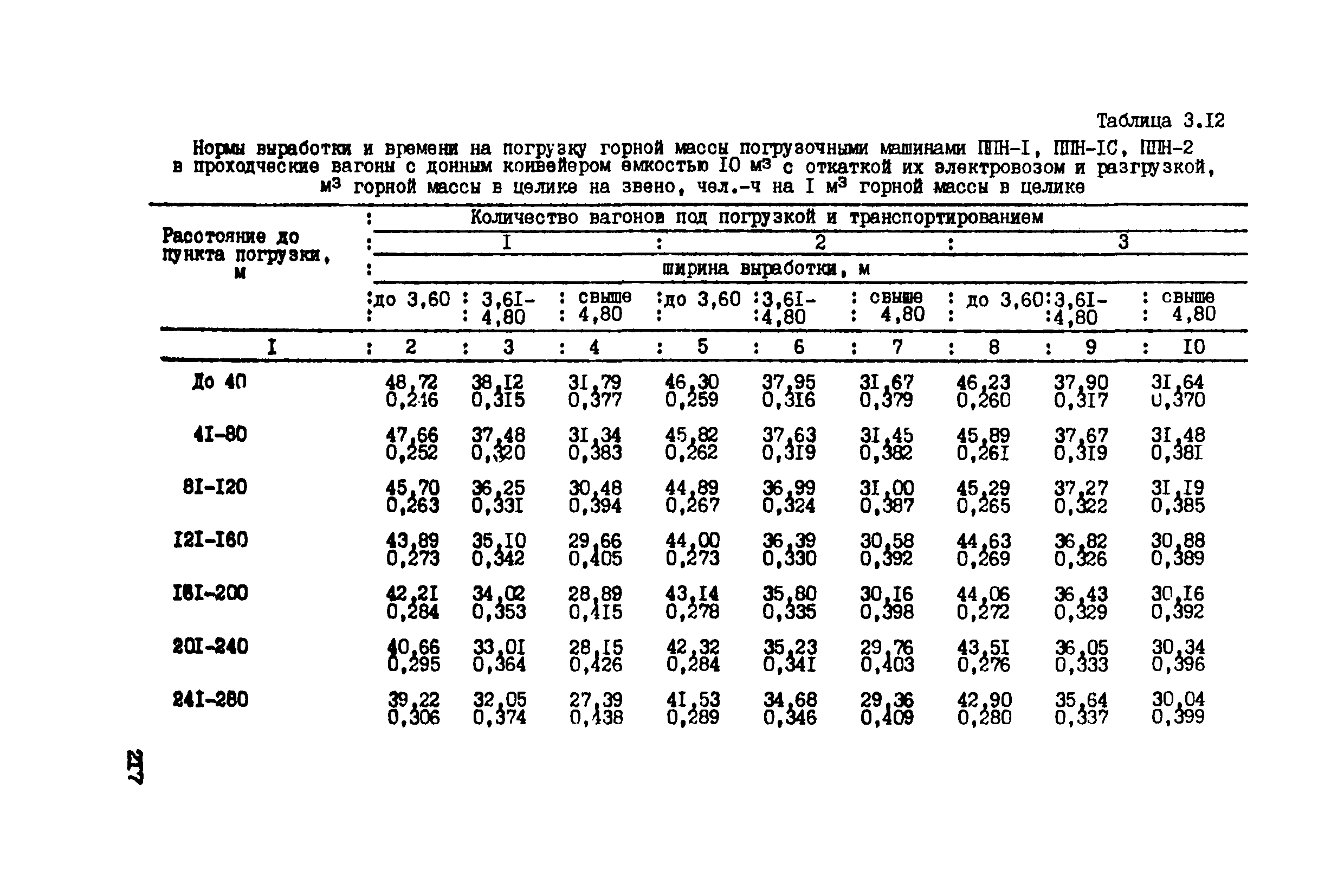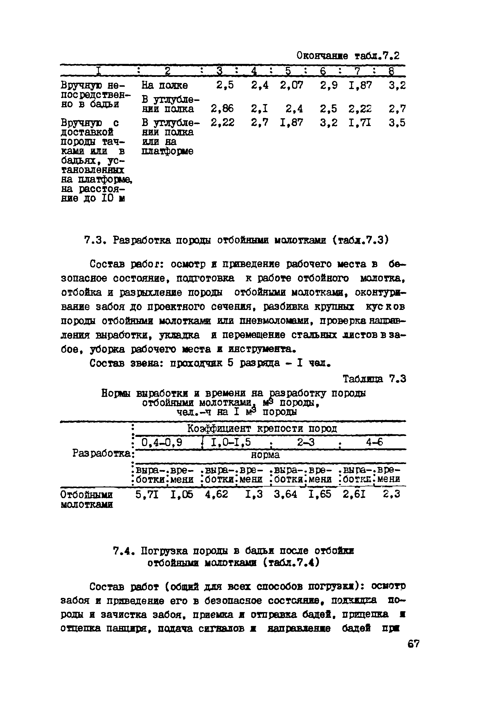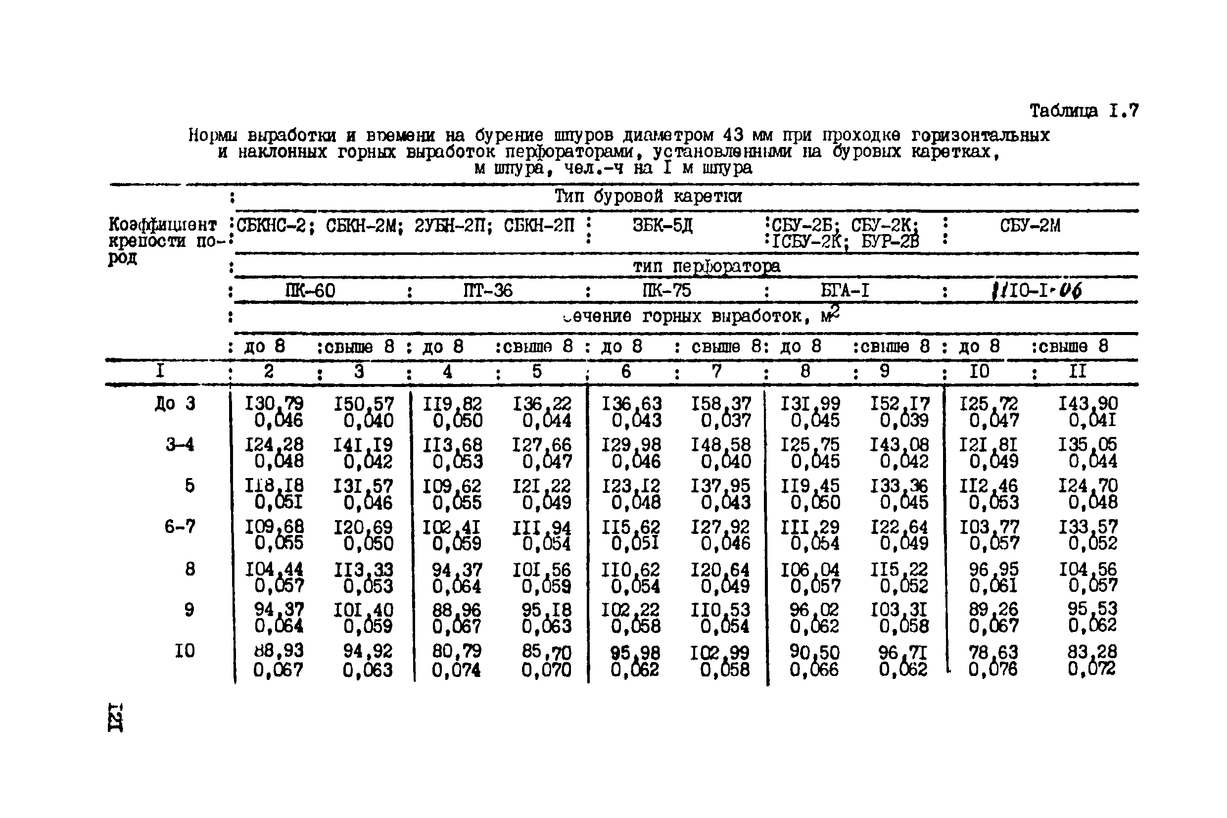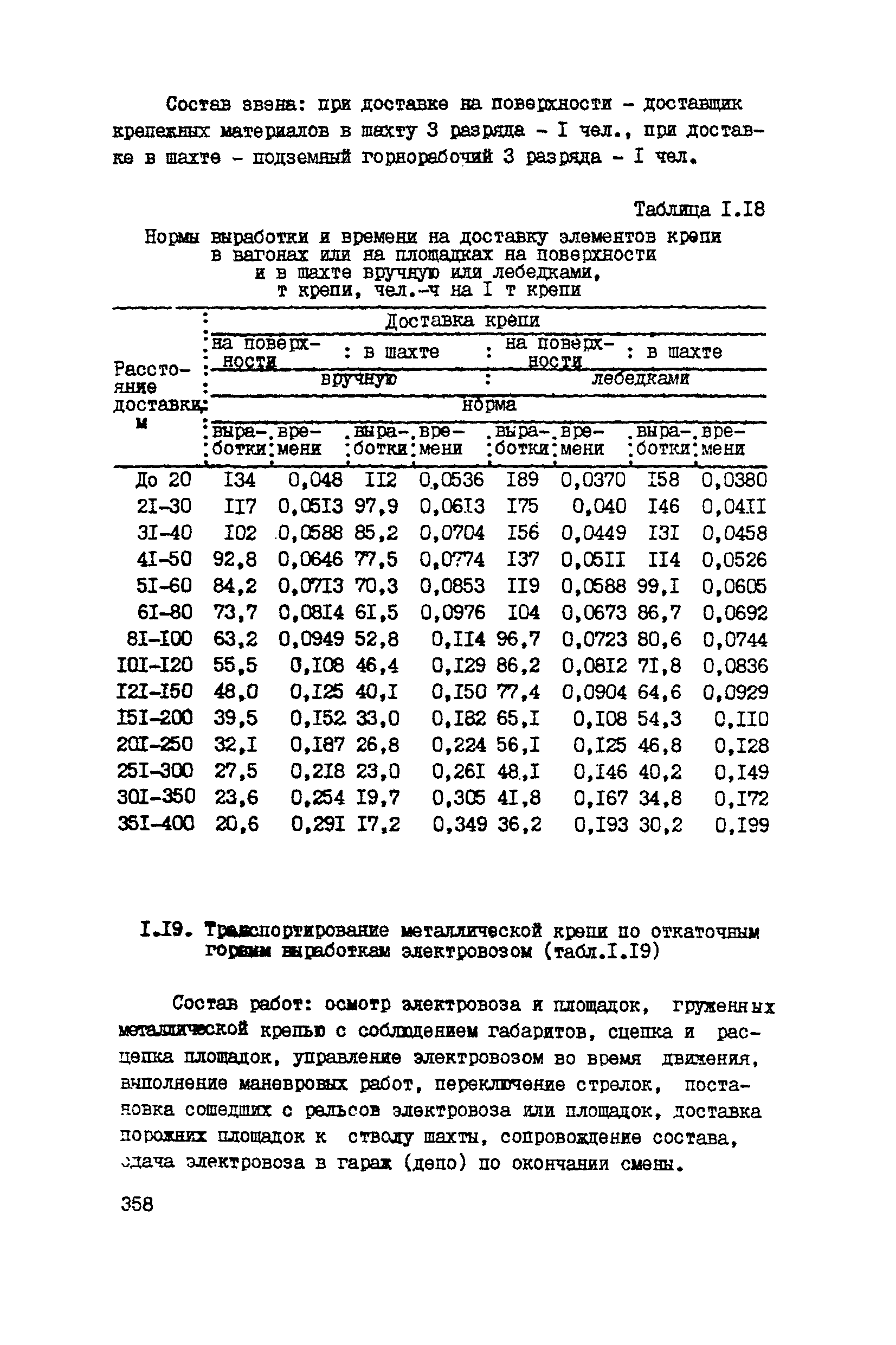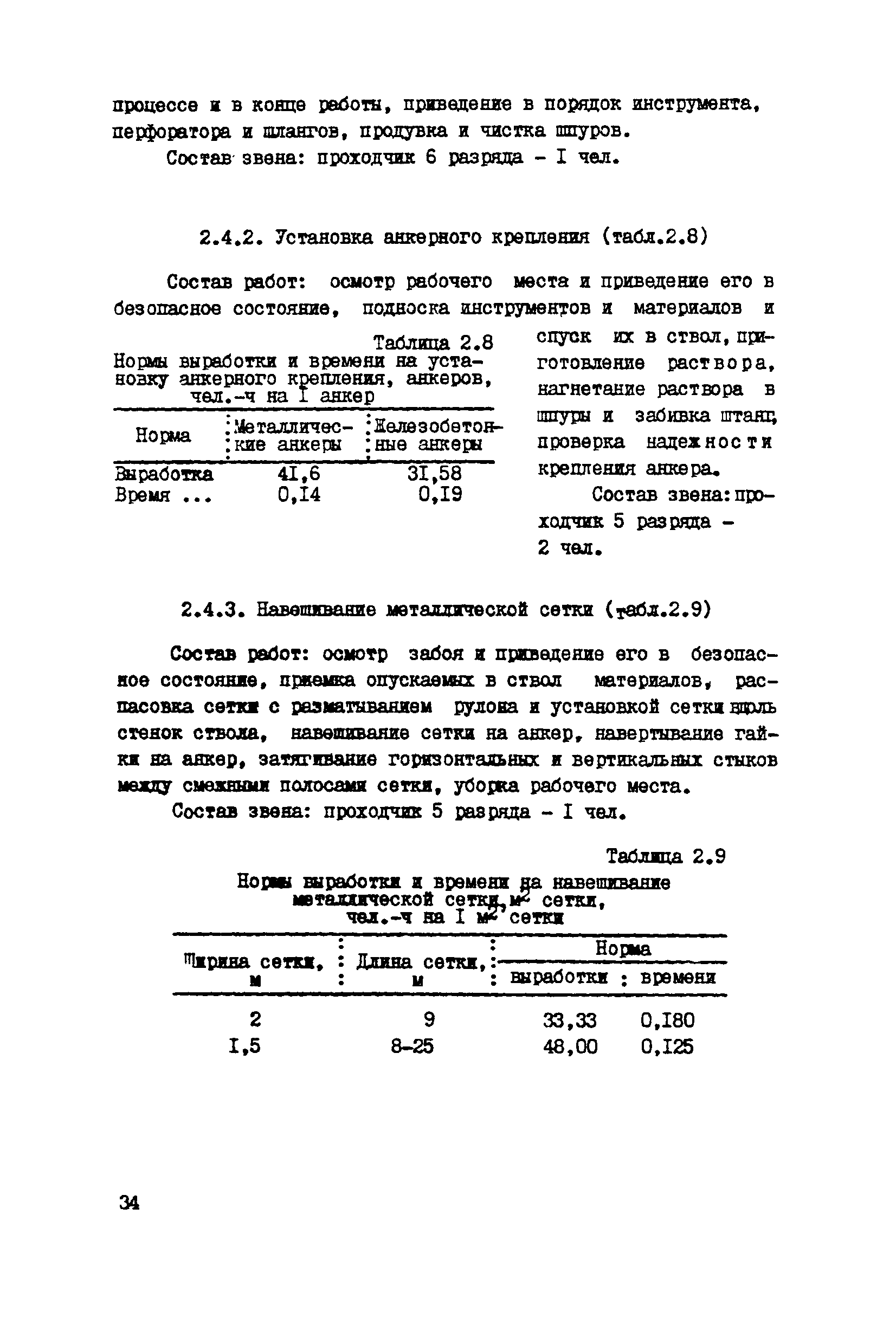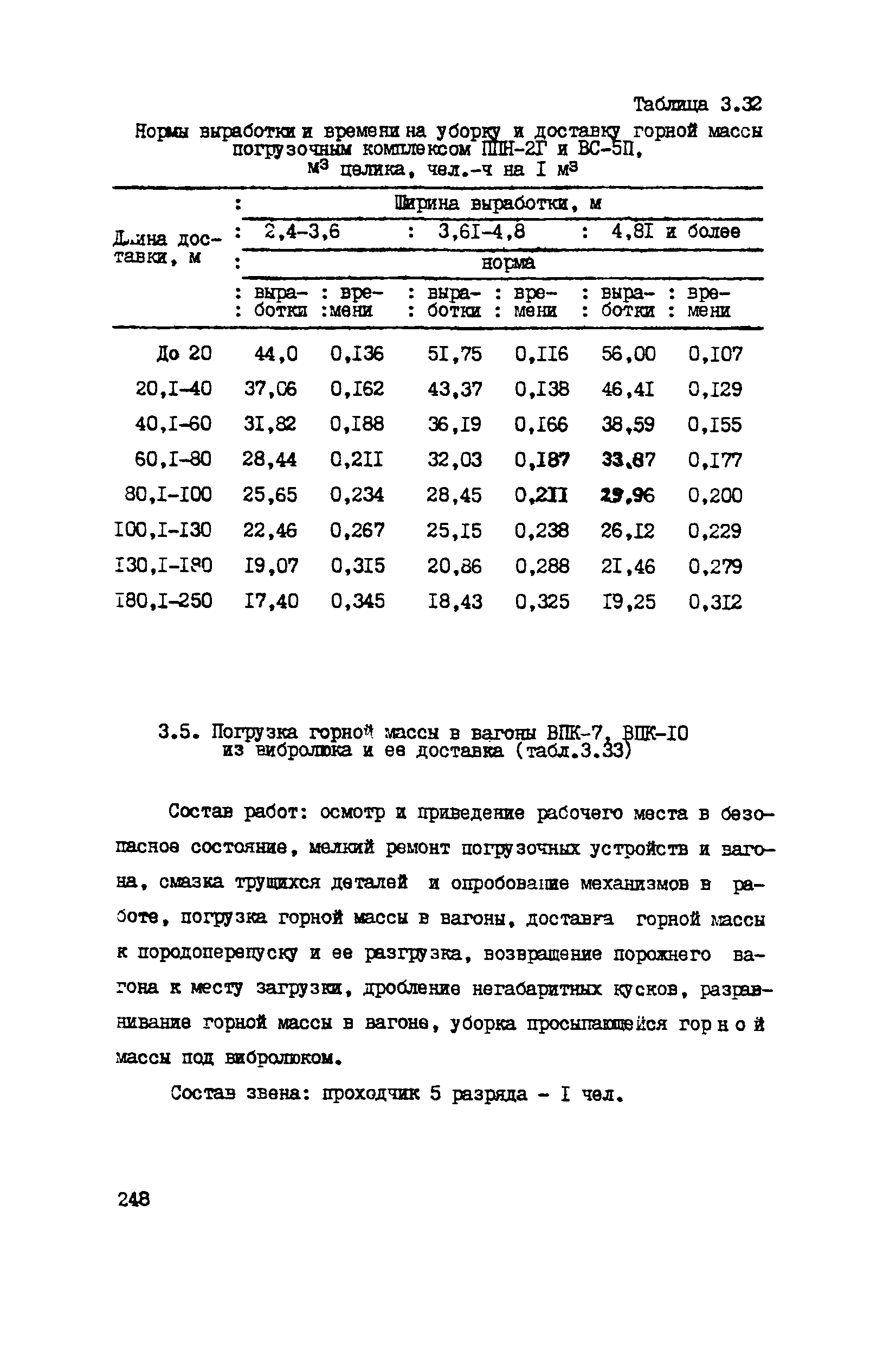 | Оглавление: | Общая часть Раздел 1. Проходка, крепление и армирование вертикальных стволов шахт; проведение сопряжений стволов с околоствольными дворами Глава 1. Проходка вертикальных стволов шахт 1.1 Проходка вертикальных стволов обычном способом 1.2 Проходка вертикальных стволов по замороженным породам 1.3 Проходка вертикальных стволов по породам, предварительно закрепленным химическим способом Глава 2. Крепление вертикальных стволов шахт бетоном 2.1 Временное крепление стволов металлическими кольцами 2.2 Крепление стволов круглого сечения бетоном и железобетоном 2.3 Крепление вертикальных стволов тюбингами 2.4 Крепление вертикальных стволов анкерной крепью 2.5 Установка и снятие деревянной опалубки заводного тюбингового кольца в конце заходки 2.6 Снятие первого тюбингового кольца 2.7 Сбивка кромки бетона на контакте заходки 2.8 Установка опорного венца из чугунных тюбингов 2.9 Укладка холодного бетона за опалубку при спуске его по трубам 2.10 Крепление стволов торкрет—бетоном Глава 3. Гидроизоляционные работы 3.1 Гидроизоляция тюбинговой крепи 3.2 Расчеканка свинцовых прокладок в тюбинговых швах и чеканка тюбинговых швов свинцовым шнуром 3.3 Очистка чугунной тюбинговой крепи после проходки и крепления ствола 3.4 Пикотаж горизонтального шва между двумя звеньями тюбинговой крепи ствола 3.5 Гидроизоляция чугунной тюбинговой крепи тампонажным раствором при поступлении его по трубам самотеком с поверхности 3.6 Первичное нагнетание за крепь шахтного ствола 3.7 Контрольное в нагнетание за крепь шахтного ствола 3.8 Контрольное подтягивание и замена болтов в тюбинговой отделке шахтного ствола 3.9 Установка и замена пробок в отверстиях тюбингов 3.10 Изоляция стыков тюбинговой крепи шахтного ствола 3.11 Штукатурка бетонной поверхности под изоляцию и по изоляции 3.12 Оклеечная изоляция стенок шахтного ствола 3.13 Устройство пикотажных манжет при крепления вертикальных стволов шахт железобетонными тюбингами 3.14 Бурение шпуров в бетоне Глава 4. Армирование стволов 4.1 Долбление лунок под расстрелы 4.2 Установка и заделка металлических расстрелов в готовые лунки 4.3 Сболчивание стальных расстрелов 4.4 Установка проводников 4.5 Оборудование лестничных отделений в стволах шахт 4.6 Устройство и разборка настилов по расстрелам 4.7 Установка рудничных станков на сопряжение с околоствольным двором 4.8 Монтаж компенсационных балок из спец профиля в стволе 4.9 Монтаж и демонтаж постоянных трубопроводов Глава 5. Вспомогательные работы при проходке и креплении стволов шахт 5.1 Устройство, разборка и переноска рабочего полка 5.2 Устройство деревянного временного переносного полка в стволе 5.3 Монтаж одноэтажных и двухэтажных подвесных металлических полков в стволах натяжных рам и предохранительных полков Глава 6. Устройство в стволах круглого сечения бетонного опорного венца (башмака) Глава 7. Проведение сопряжений вертикальных стволов с околоствольными дворами Раздел II. Проходка и крепление наклонных стволов Глава 1. Проходка наклонных стволов Глава 2. Крепление наклонных стволов Глава 3. Гидроизоляционные работы Глава 4. Вспомогательные работы при проходке и креплении вертикальных и наклонных стволов с применением специальных способов Раздел III. Проходка и крепление горизонтальных, наклонных и восстающих горных выработок Глава 1. Буровые работы Глава 2. Д