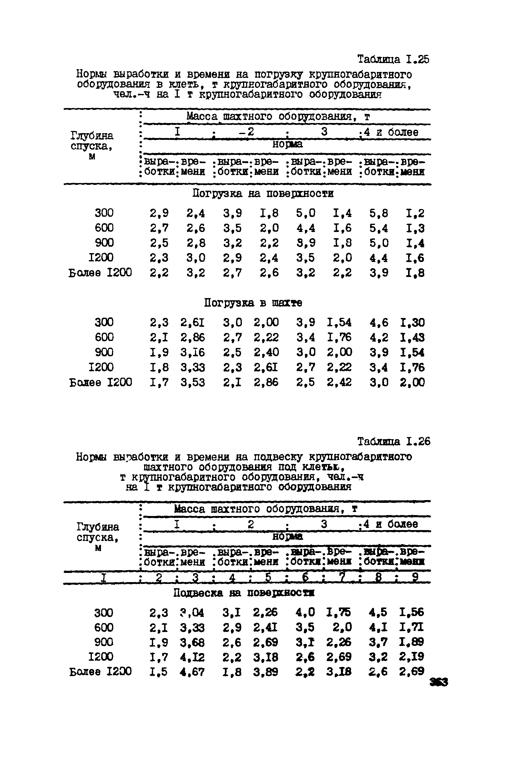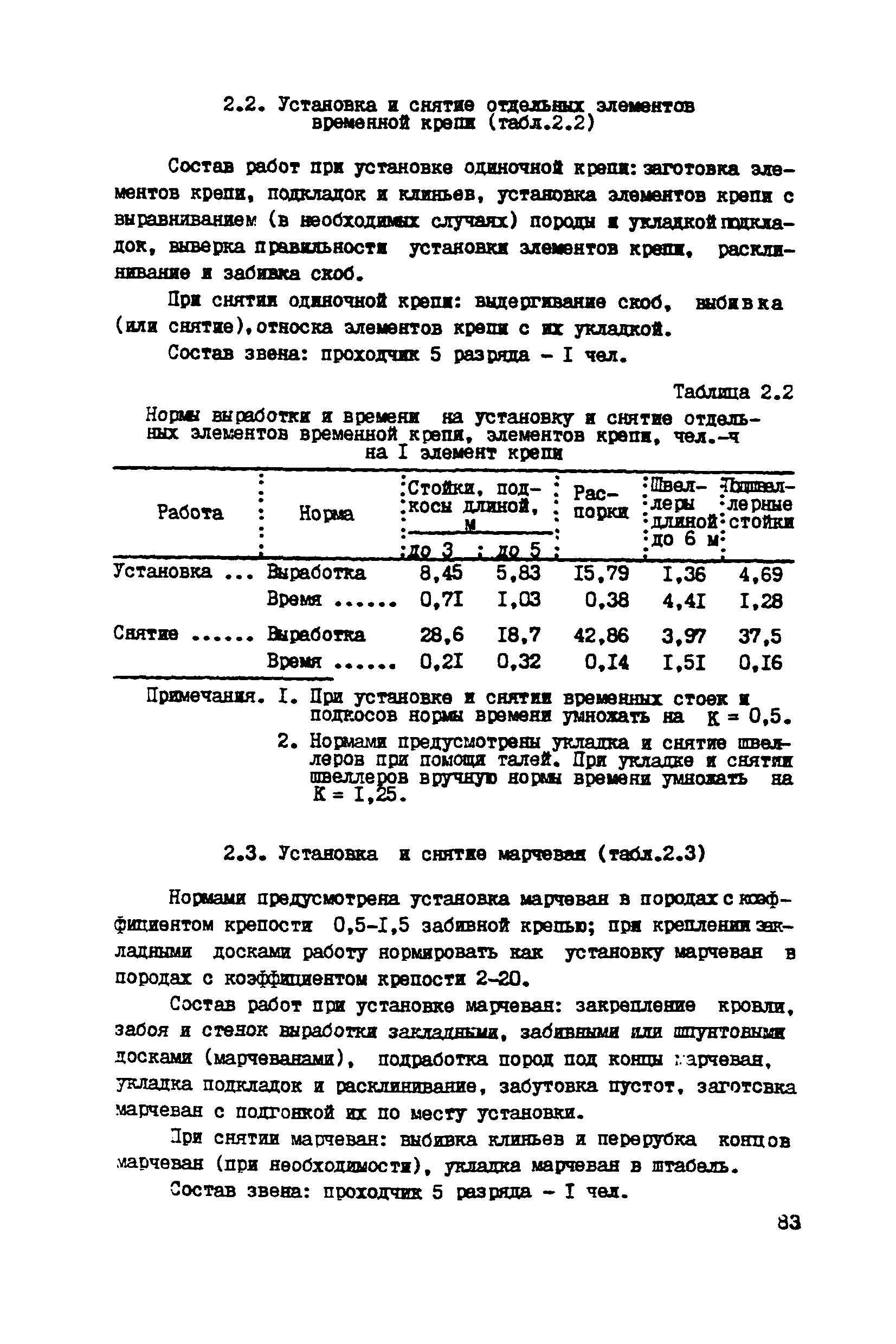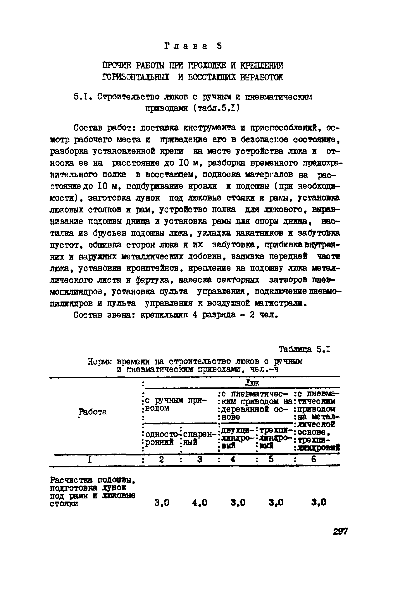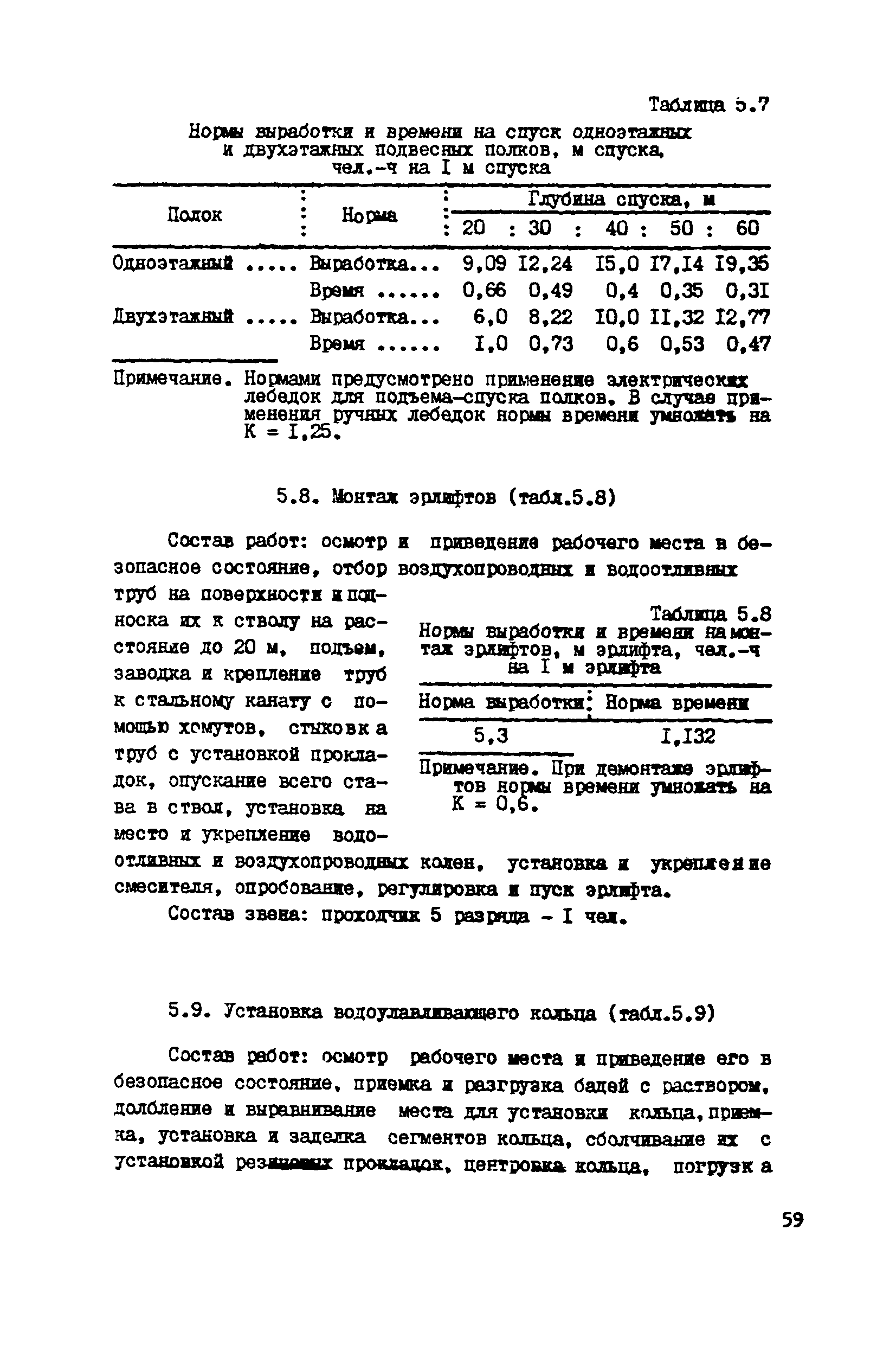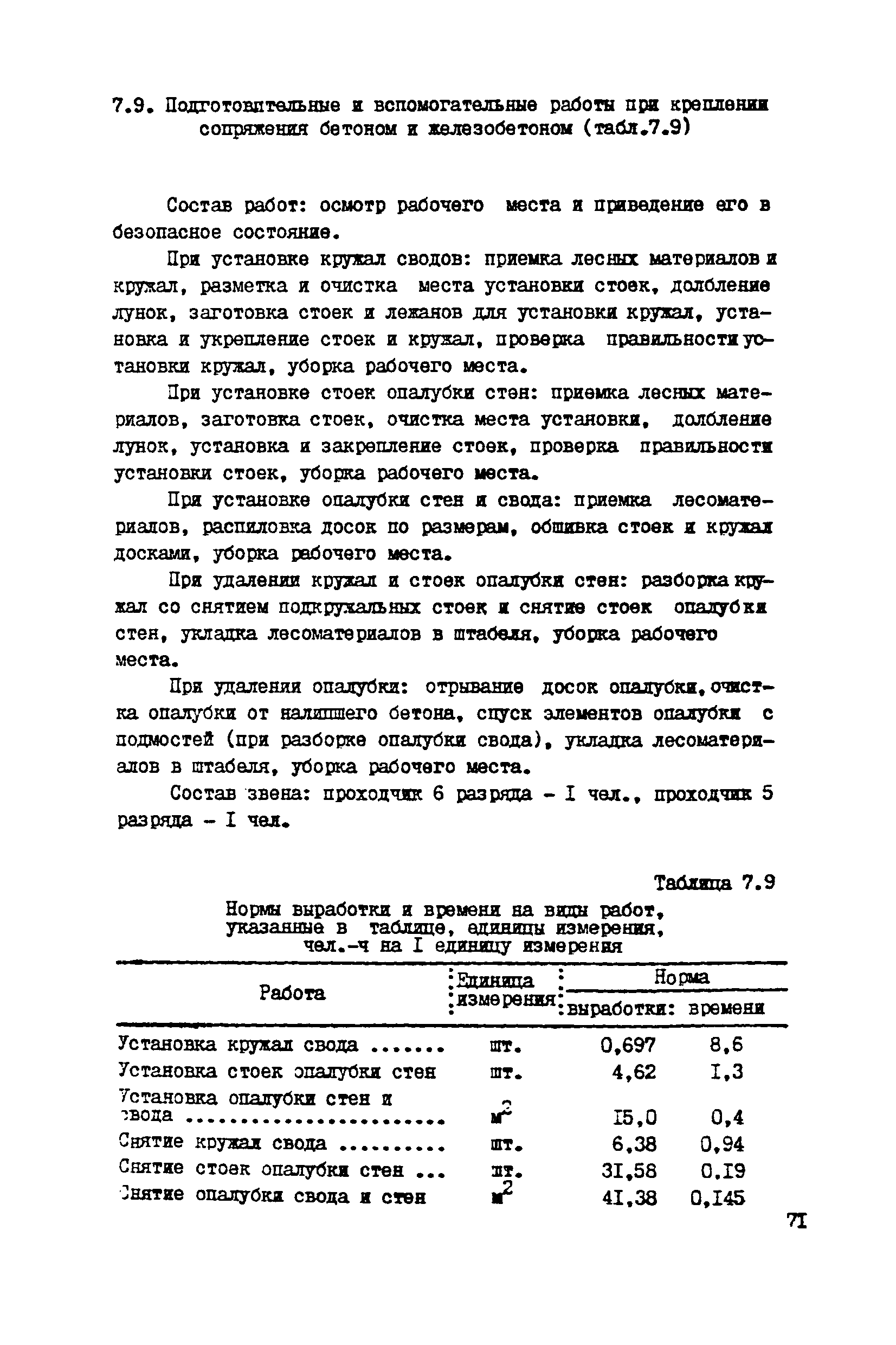 | Оглавление: | Общая часть Раздел 1. Проходка, крепление и армирование вертикальных стволов шахт; проведение сопряжений стволов с околоствольными дворами Глава 1. Проходка вертикальных стволов шахт 1.1 Проходка вертикальных стволов обычном способом 1.2 Проходка вертикальных стволов по замороженным породам 1.3 Проходка вертикальных стволов по породам, предварительно закрепленным химическим способом Глава 2. Крепление вертикальных стволов шахт бетоном 2.1 Временное крепление стволов металлическими кольцами 2.2 Крепление стволов круглого сечения бетоном и железобетоном 2.3 Крепление вертикальных стволов тюбингами 2.4 Крепление вертикальных стволов анкерной крепью 2.5 Установка и снятие деревянной опалубки заводного тюбингового кольца в конце заходки 2.6 Снятие первого тюбингового кольца 2.7 Сбивка кромки бетона на контакте заходки 2.8 Установка опорного венца из чугунных тюбингов 2.9 Укладка холодного бетона за опалубку при спуске его по трубам 2.10 Крепление стволов торкрет—бетоном Глава 3. Гидроизоляционные работы 3.1 Гидроизоляция тюбинговой крепи 3.2 Расчеканка свинцовых прокладок в тюбинговых швах и чеканка тюбинговых швов свинцовым шнуром 3.3 Очистка чугунной тюбинговой крепи после проходки и крепления ствола 3.4 Пикотаж горизонтального шва между двумя звеньями тюбинговой крепи ствола 3.5 Гидроизоляция чугунной тюбинговой крепи тампонажным раствором при поступлении его по трубам самотеком с поверхности 3.6 Первичное нагнетание за крепь шахтного ствола 3.7 Контрольное в нагнетание за крепь шахтного ствола 3.8 Контрольное подтягивание и замена болтов в тюбинговой отделке шахтного ствола 3.9 Установка и замена пробок в отверстиях тюбингов 3.10 Изоляция стыков тюбинговой крепи шахтного ствола 3.11 Штукатурка бетонной поверхности под изоляцию и по изоляции 3.12 Оклеечная изоляция стенок шахтного ствола 3.13 Устройство пикотажных манжет при крепления вертикальных стволов шахт железобетонными тюбингами 3.14 Бурение шпуров в бетоне Глава 4. Армирование стволов 4.1 Долбление лунок под расстрелы 4.2 Установка и заделка металлических расстрелов в готовые лунки 4.3 Сболчивание стальных расстрелов 4.4 Установка проводников 4.5 Оборудование лестничных отделений в стволах шахт 4.6 Устройство и разборка настилов по расстрелам 4.7 Установка рудничных станков на сопряжение с околоствольным двором 4.8 Монтаж компенсационных балок из спец профиля в стволе 4.9 Монтаж и демонтаж постоянных трубопроводов Глава 5. Вспомогательные работы при проходке и креплении стволов шахт 5.1 Устройство, разборка и переноска рабочего полка 5.2 Устройство деревянного временного переносного полка в стволе 5.3 Монтаж одноэтажных и двухэтажных подвесных металлических полков в стволах натяжных рам и предохранительных полков Глава 6. Устройство в стволах круглого сечения бетонного опорного венца (башмака) Глава 7. Проведение сопряжений вертикальных стволов с околоствольными дворами Раздел II. Проходка и крепление наклонных стволов Глава 1. Проходка наклонных стволов Глава 2. Крепление наклонных стволов Глава 3. Гидроизоляционные работы Глава 4. Вспомогательные работы при проходке и креплении вертикальных и наклонных стволов с применением специальных способов Раздел III. Проходка и крепление горизонтальных, наклонных и восстающих горных выработок Глава 1. Буровые работы Глава 2. Д