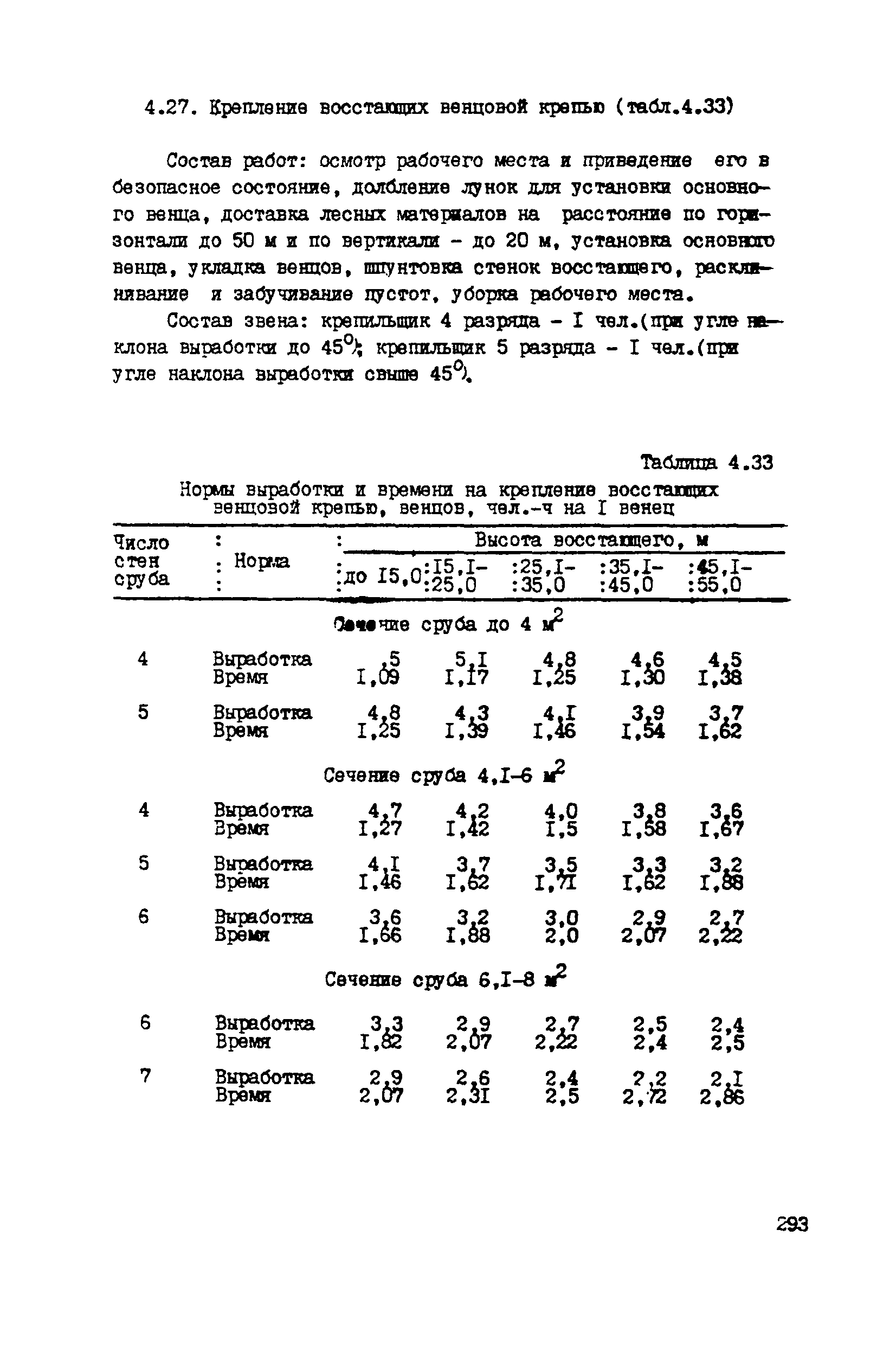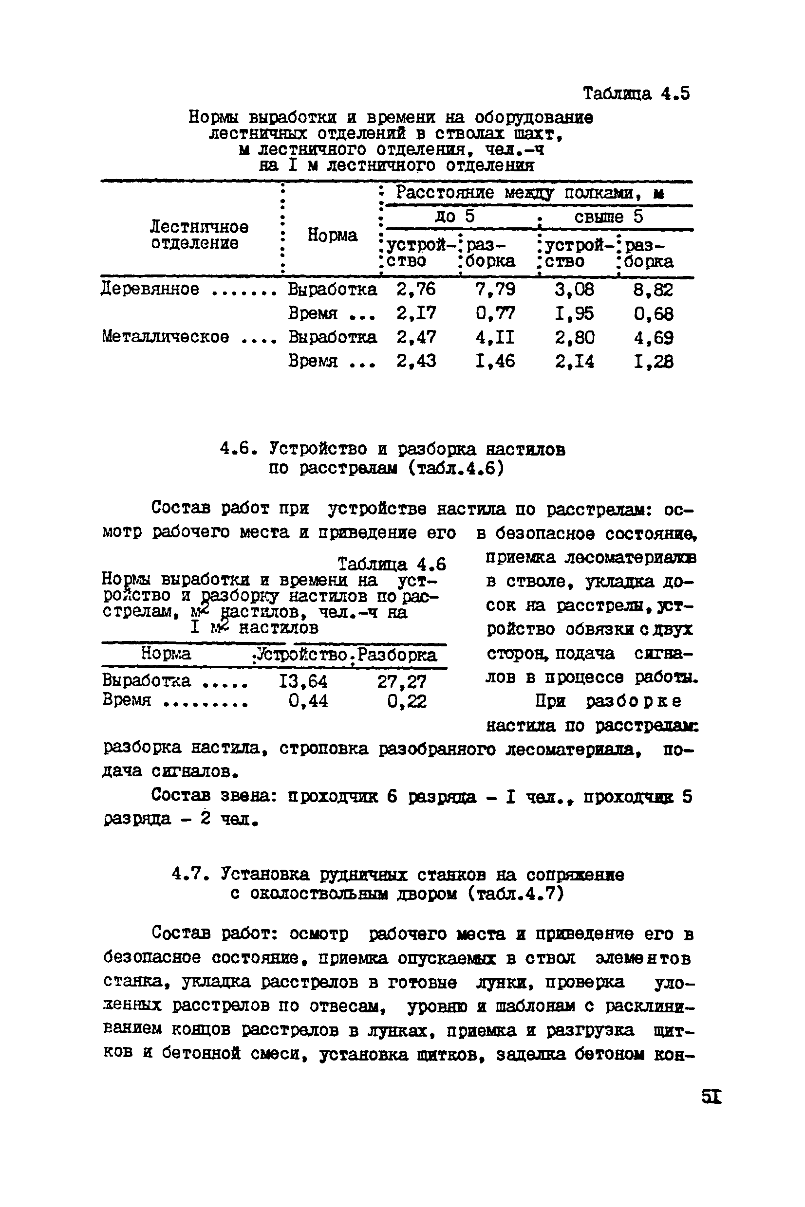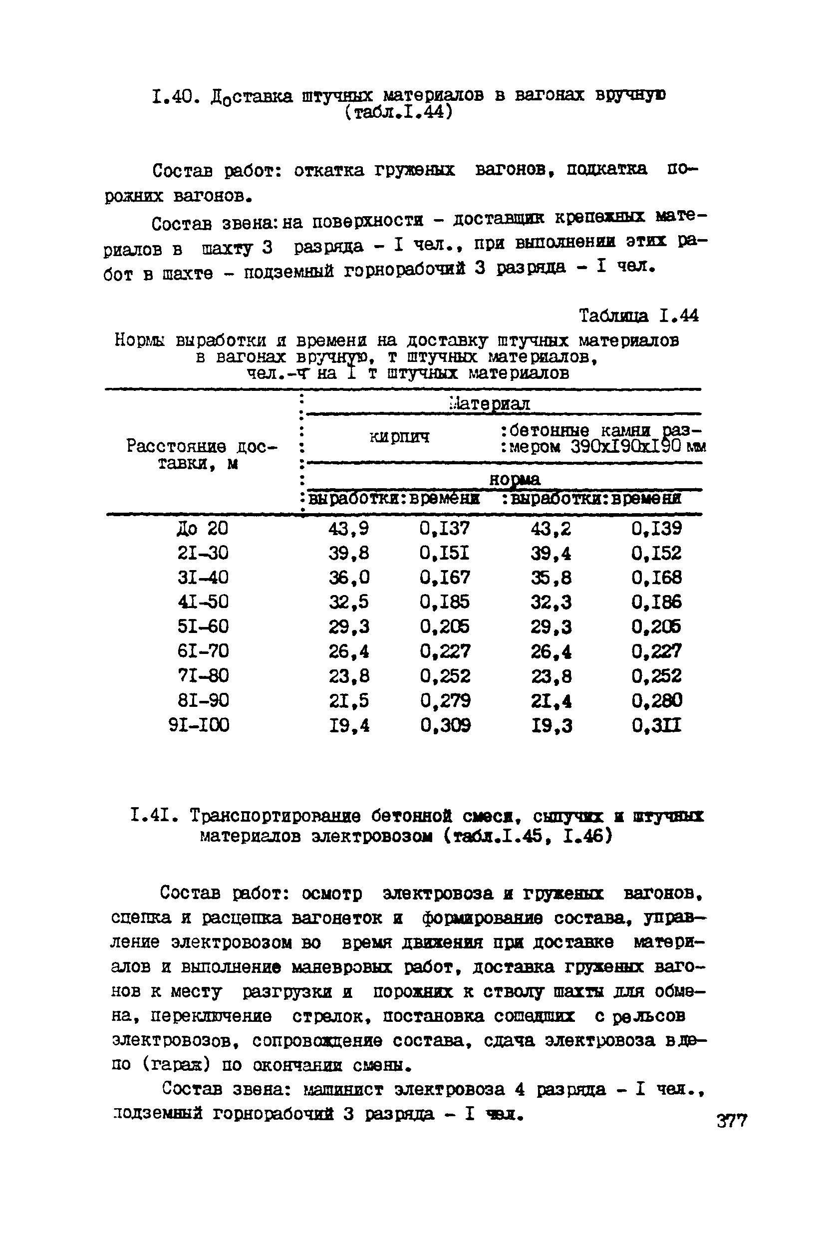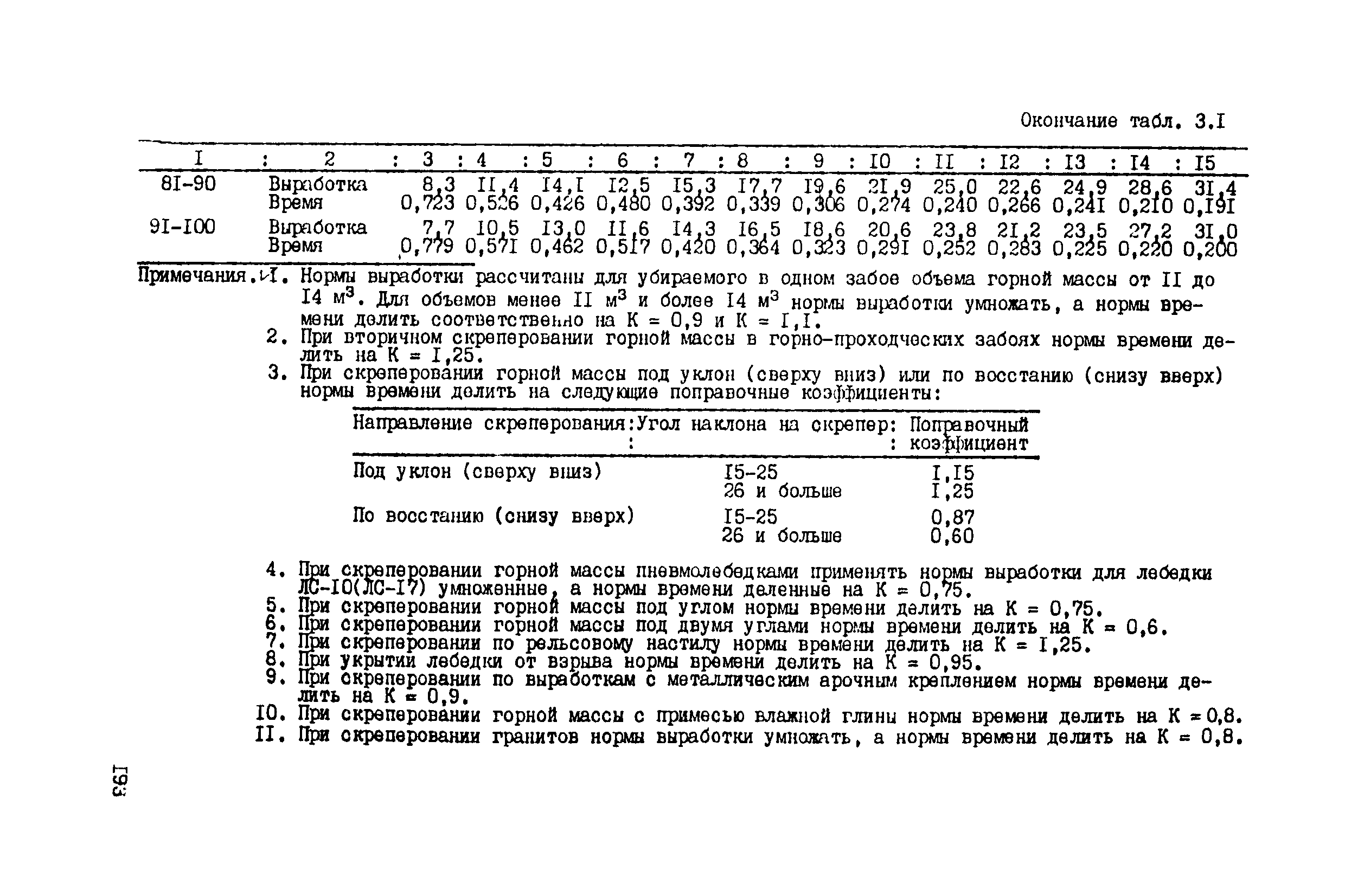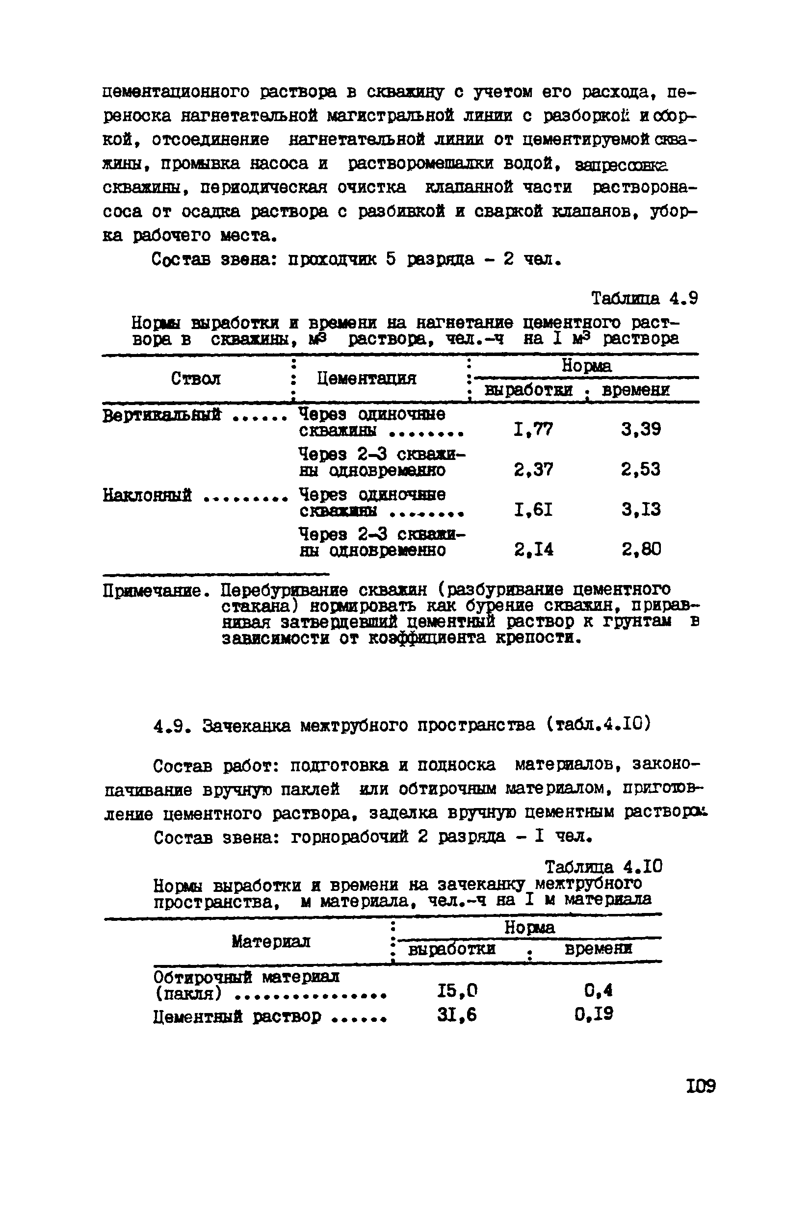 | Оглавление: | Общая часть Раздел 1. Проходка, крепление и армирование вертикальных стволов шахт; проведение сопряжений стволов с околоствольными дворами Глава 1. Проходка вертикальных стволов шахт 1.1 Проходка вертикальных стволов обычном способом 1.2 Проходка вертикальных стволов по замороженным породам 1.3 Проходка вертикальных стволов по породам, предварительно закрепленным химическим способом Глава 2. Крепление вертикальных стволов шахт бетоном 2.1 Временное крепление стволов металлическими кольцами 2.2 Крепление стволов круглого сечения бетоном и железобетоном 2.3 Крепление вертикальных стволов тюбингами 2.4 Крепление вертикальных стволов анкерной крепью 2.5 Установка и снятие деревянной опалубки заводного тюбингового кольца в конце заходки 2.6 Снятие первого тюбингового кольца 2.7 Сбивка кромки бетона на контакте заходки 2.8 Установка опорного венца из чугунных тюбингов 2.9 Укладка холодного бетона за опалубку при спуске его по трубам 2.10 Крепление стволов торкрет—бетоном Глава 3. Гидроизоляционные работы 3.1 Гидроизоляция тюбинговой крепи 3.2 Расчеканка свинцовых прокладок в тюбинговых швах и чеканка тюбинговых швов свинцовым шнуром 3.3 Очистка чугунной тюбинговой крепи после проходки и крепления ствола 3.4 Пикотаж горизонтального шва между двумя звеньями тюбинговой крепи ствола 3.5 Гидроизоляция чугунной тюбинговой крепи тампонажным раствором при поступлении его по трубам самотеком с поверхности 3.6 Первичное нагнетание за крепь шахтного ствола 3.7 Контрольное в нагнетание за крепь шахтного ствола 3.8 Контрольное подтягивание и замена болтов в тюбинговой отделке шахтного ствола 3.9 Установка и замена пробок в отверстиях тюбингов 3.10 Изоляция стыков тюбинговой крепи шахтного ствола 3.11 Штукатурка бетонной поверхности под изоляцию и по изоляции 3.12 Оклеечная изоляция стенок шахтного ствола 3.13 Устройство пикотажных манжет при крепления вертикальных стволов шахт железобетонными тюбингами 3.14 Бурение шпуров в бетоне Глава 4. Армирование стволов 4.1 Долбление лунок под расстрелы 4.2 Установка и заделка металлических расстрелов в готовые лунки 4.3 Сболчивание стальных расстрелов 4.4 Установка проводников 4.5 Оборудование лестничных отделений в стволах шахт 4.6 Устройство и разборка настилов по расстрелам 4.7 Установка рудничных станков на сопряжение с околоствольным двором 4.8 Монтаж компенсационных балок из спец профиля в стволе 4.9 Монтаж и демонтаж постоянных трубопроводов Глава 5. Вспомогательные работы при проходке и креплении стволов шахт 5.1 Устройство, разборка и переноска рабочего полка 5.2 Устройство деревянного временного переносного полка в стволе 5.3 Монтаж одноэтажных и двухэтажных подвесных металлических полков в стволах натяжных рам и предохранительных полков Глава 6. Устройство в стволах круглого сечения бетонного опорного венца (башмака) Глава 7. Проведение сопряжений вертикальных стволов с околоствольными дворами Раздел II. Проходка и крепление наклонных стволов Глава 1. Проходка наклонных стволов Глава 2. Крепление наклонных стволов Глава 3. Гидроизоляционные работы Глава 4. Вспомогательные работы при проходке и креплении вертикальных и наклонных стволов с применением специальных способов Раздел III. Проходка и крепление горизонтальных, наклонных и восстающих горных выработок Глава 1. Буровые работы Глава 2. Д