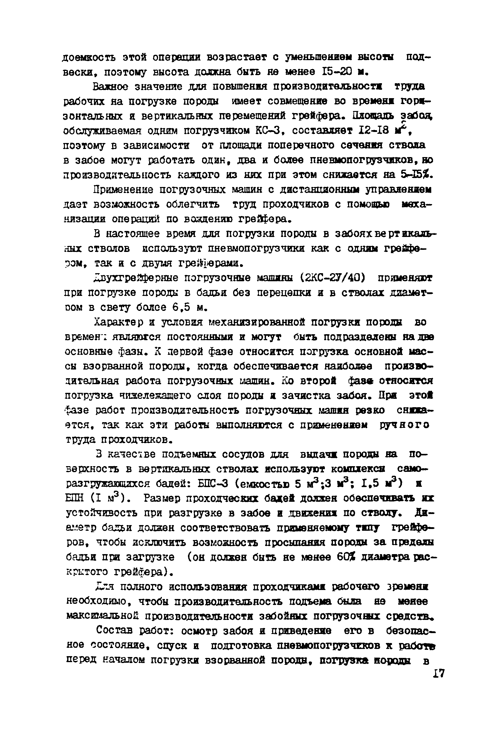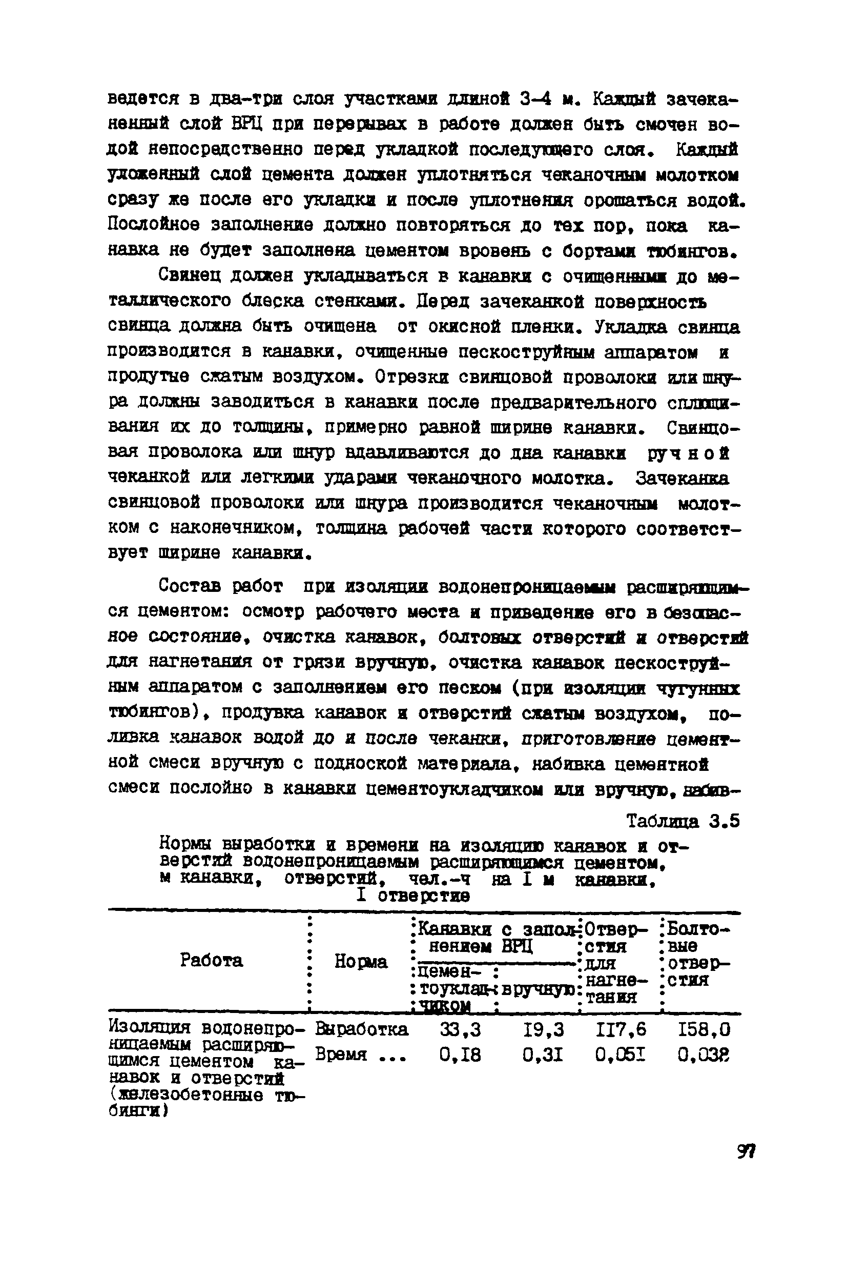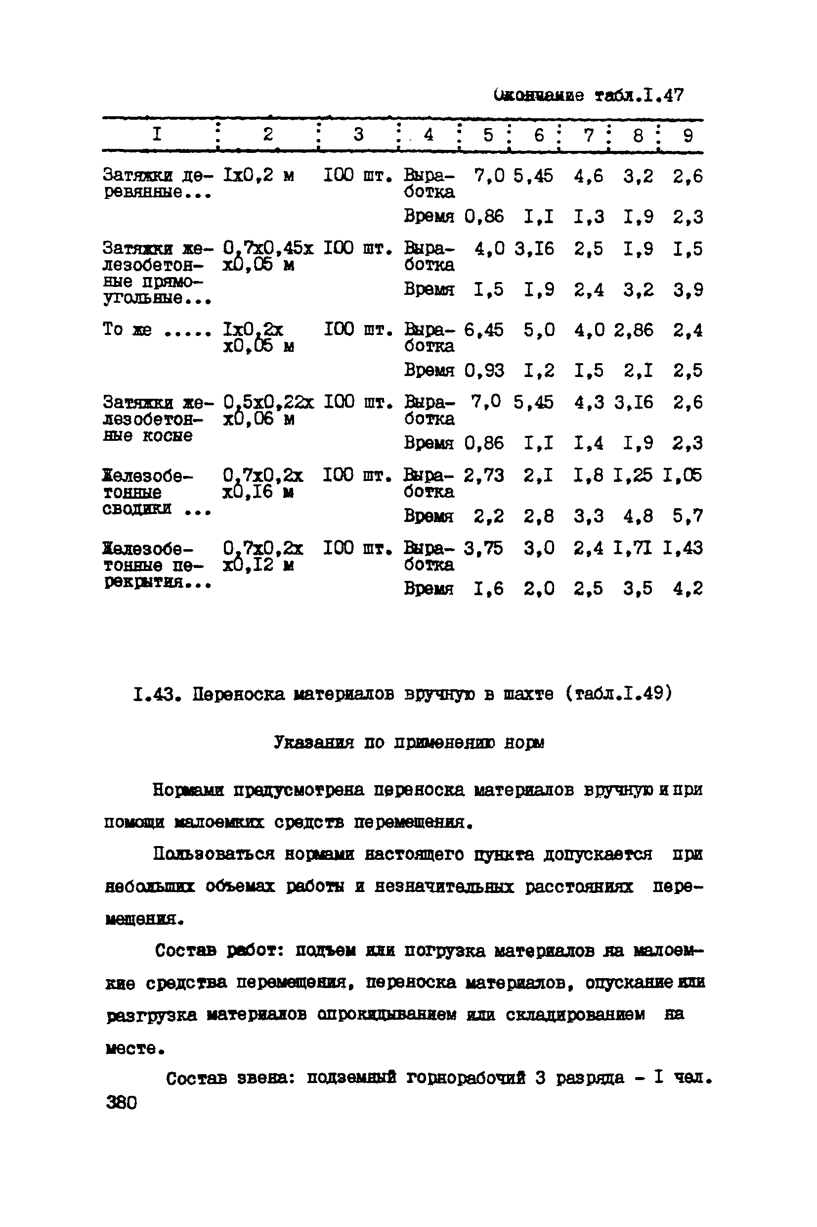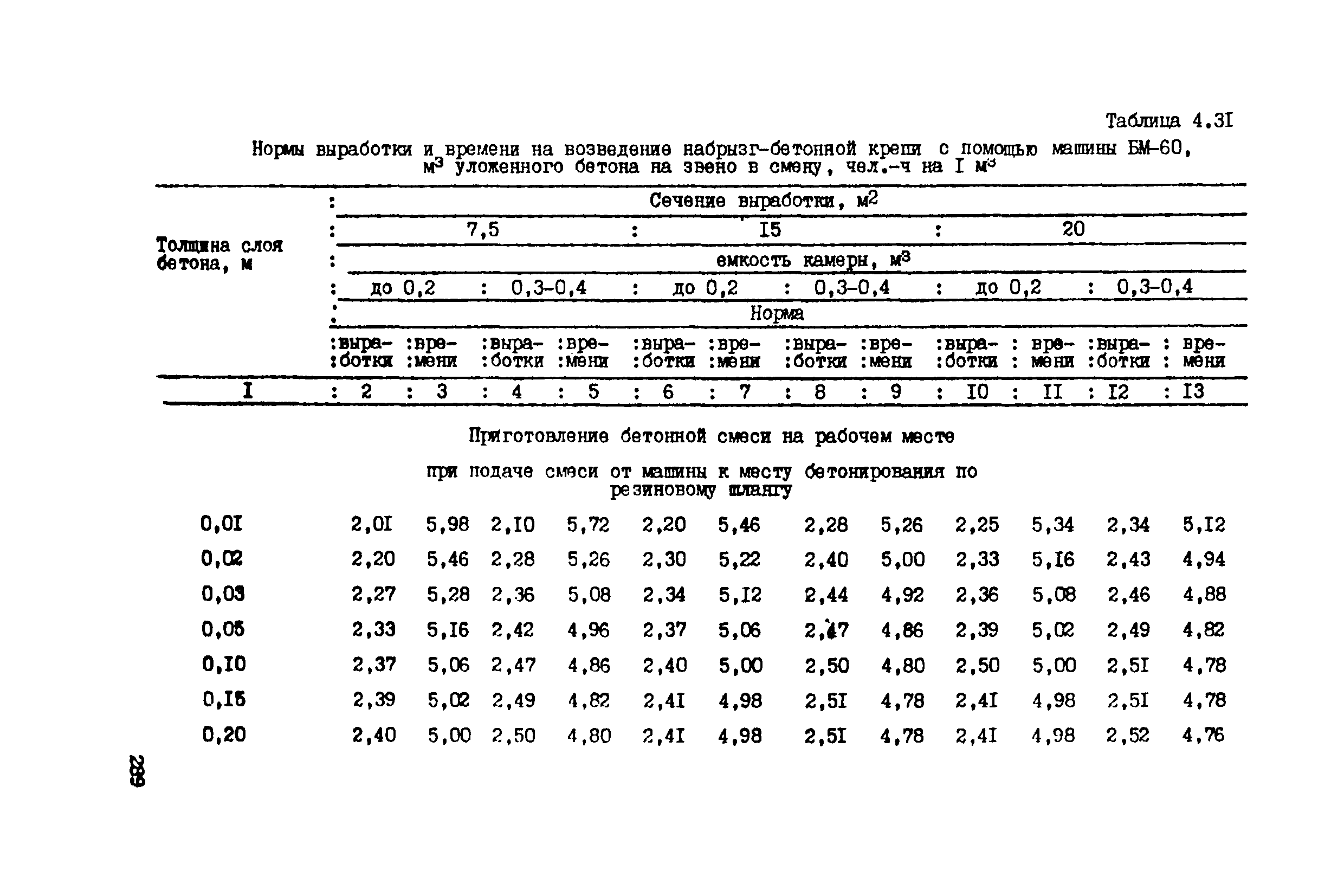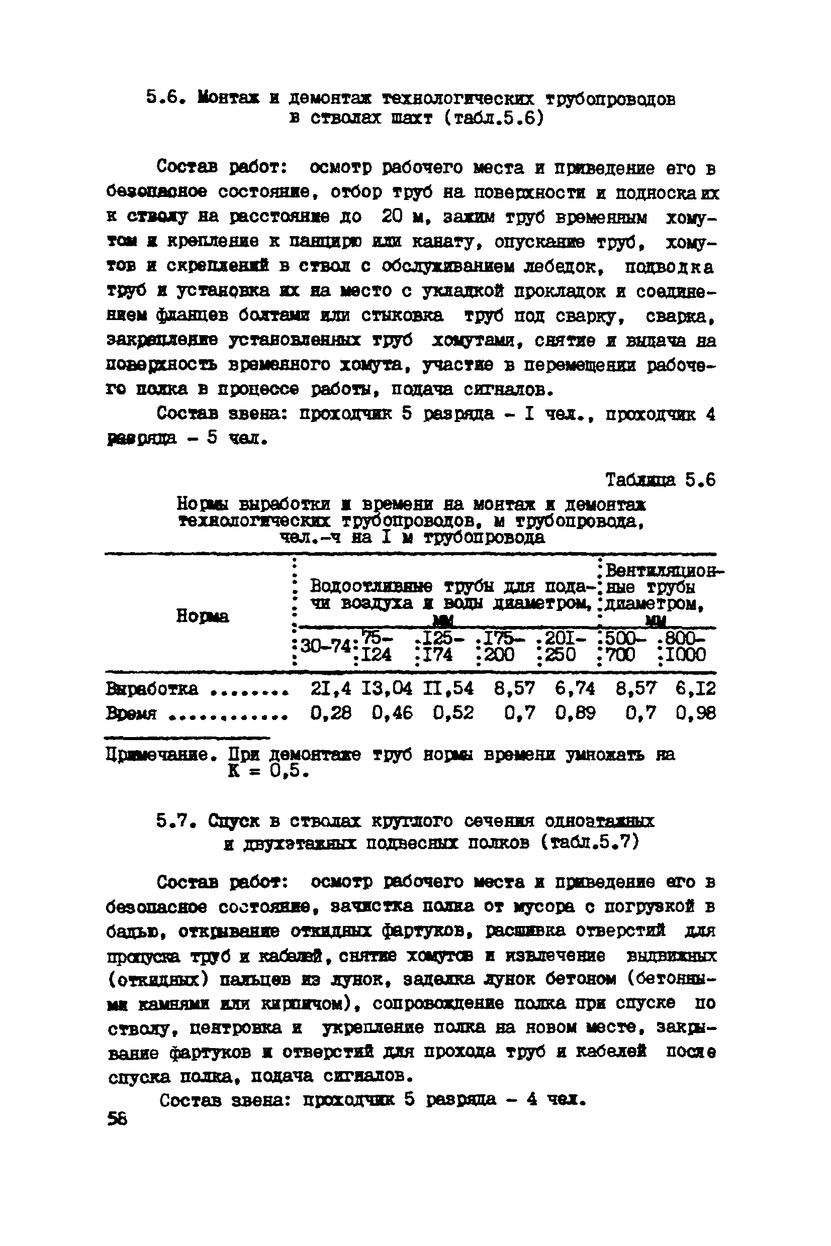 | Оглавление: | Общая часть Раздел 1. Проходка, крепление и армирование вертикальных стволов шахт; проведение сопряжений стволов с околоствольными дворами Глава 1. Проходка вертикальных стволов шахт 1.1 Проходка вертикальных стволов обычном способом 1.2 Проходка вертикальных стволов по замороженным породам 1.3 Проходка вертикальных стволов по породам, предварительно закрепленным химическим способом Глава 2. Крепление вертикальных стволов шахт бетоном 2.1 Временное крепление стволов металлическими кольцами 2.2 Крепление стволов круглого сечения бетоном и железобетоном 2.3 Крепление вертикальных стволов тюбингами 2.4 Крепление вертикальных стволов анкерной крепью 2.5 Установка и снятие деревянной опалубки заводного тюбингового кольца в конце заходки 2.6 Снятие первого тюбингового кольца 2.7 Сбивка кромки бетона на контакте заходки 2.8 Установка опорного венца из чугунных тюбингов 2.9 Укладка холодного бетона за опалубку при спуске его по трубам 2.10 Крепление стволов торкрет—бетоном Глава 3. Гидроизоляционные работы 3.1 Гидроизоляция тюбинговой крепи 3.2 Расчеканка свинцовых прокладок в тюбинговых швах и чеканка тюбинговых швов свинцовым шнуром 3.3 Очистка чугунной тюбинговой крепи после проходки и крепления ствола 3.4 Пикотаж горизонтального шва между двумя звеньями тюбинговой крепи ствола 3.5 Гидроизоляция чугунной тюбинговой крепи тампонажным раствором при поступлении его по трубам самотеком с поверхности 3.6 Первичное нагнетание за крепь шахтного ствола 3.7 Контрольное в нагнетание за крепь шахтного ствола 3.8 Контрольное подтягивание и замена болтов в тюбинговой отделке шахтного ствола 3.9 Установка и замена пробок в отверстиях тюбингов 3.10 Изоляция стыков тюбинговой крепи шахтного ствола 3.11 Штукатурка бетонной поверхности под изоляцию и по изоляции 3.12 Оклеечная изоляция стенок шахтного ствола 3.13 Устройство пикотажных манжет при крепления вертикальных стволов шахт железобетонными тюбингами 3.14 Бурение шпуров в бетоне Глава 4. Армирование стволов 4.1 Долбление лунок под расстрелы 4.2 Установка и заделка металлических расстрелов в готовые лунки 4.3 Сболчивание стальных расстрелов 4.4 Установка проводников 4.5 Оборудование лестничных отделений в стволах шахт 4.6 Устройство и разборка настилов по расстрелам 4.7 Установка рудничных станков на сопряжение с околоствольным двором 4.8 Монтаж компенсационных балок из спец профиля в стволе 4.9 Монтаж и демонтаж постоянных трубопроводов Глава 5. Вспомогательные работы при проходке и креплении стволов шахт 5.1 Устройство, разборка и переноска рабочего полка 5.2 Устройство деревянного временного переносного полка в стволе 5.3 Монтаж одноэтажных и двухэтажных подвесных металлических полков в стволах натяжных рам и предохранительных полков Глава 6. Устройство в стволах круглого сечения бетонного опорного венца (башмака) Глава 7. Проведение сопряжений вертикальных стволов с околоствольными дворами Раздел II. Проходка и крепление наклонных стволов Глава 1. Проходка наклонных стволов Глава 2. Крепление наклонных стволов Глава 3. Гидроизоляционные работы Глава 4. Вспомогательные работы при проходке и креплении вертикальных и наклонных стволов с применением специальных способов Раздел III. Проходка и крепление горизонтальных, наклонных и восстающих горных выработок Глава 1. Буровые работы Глава 2. Д