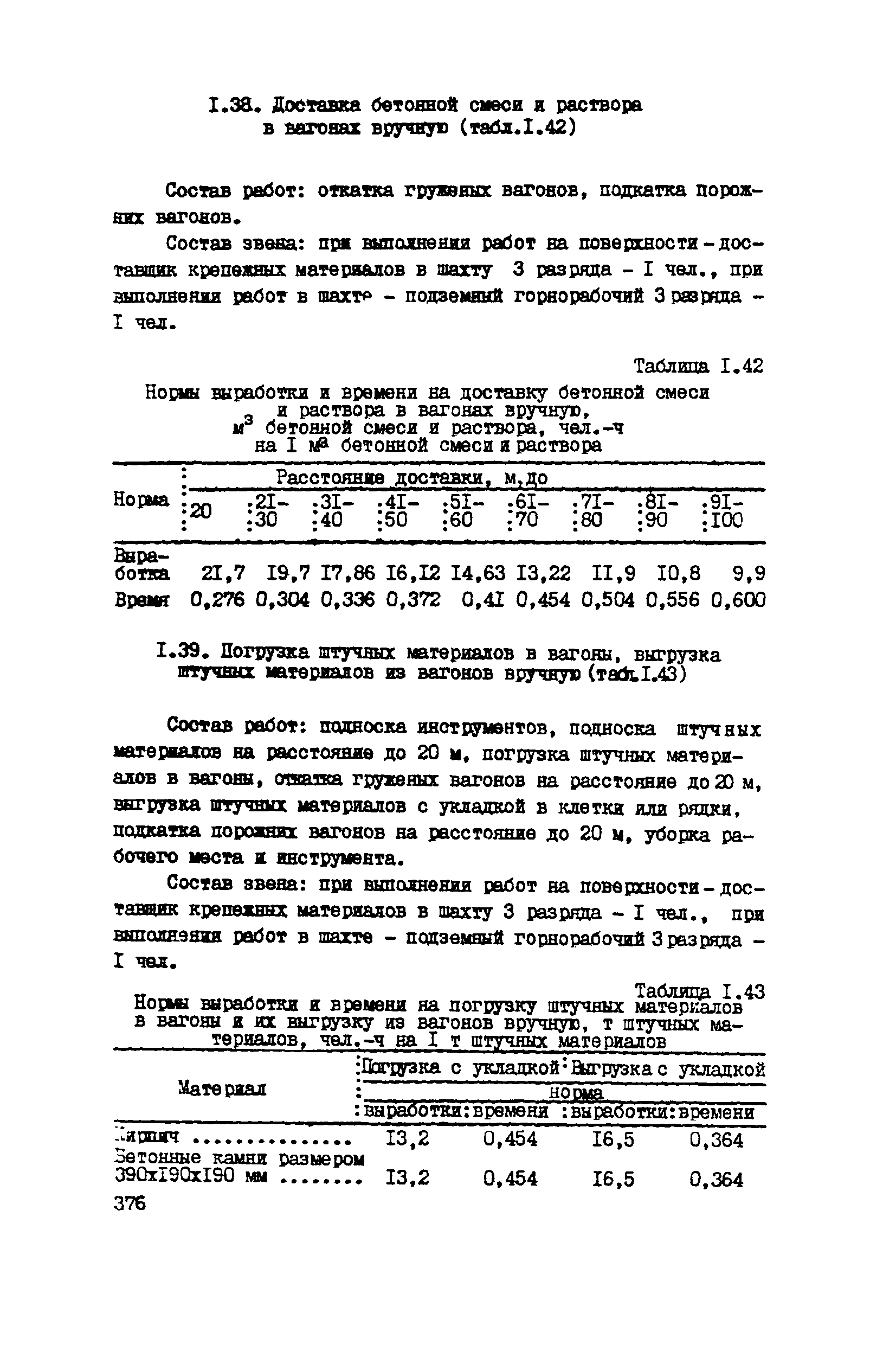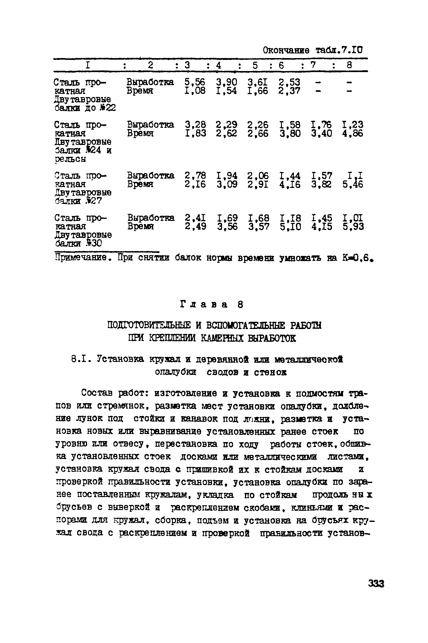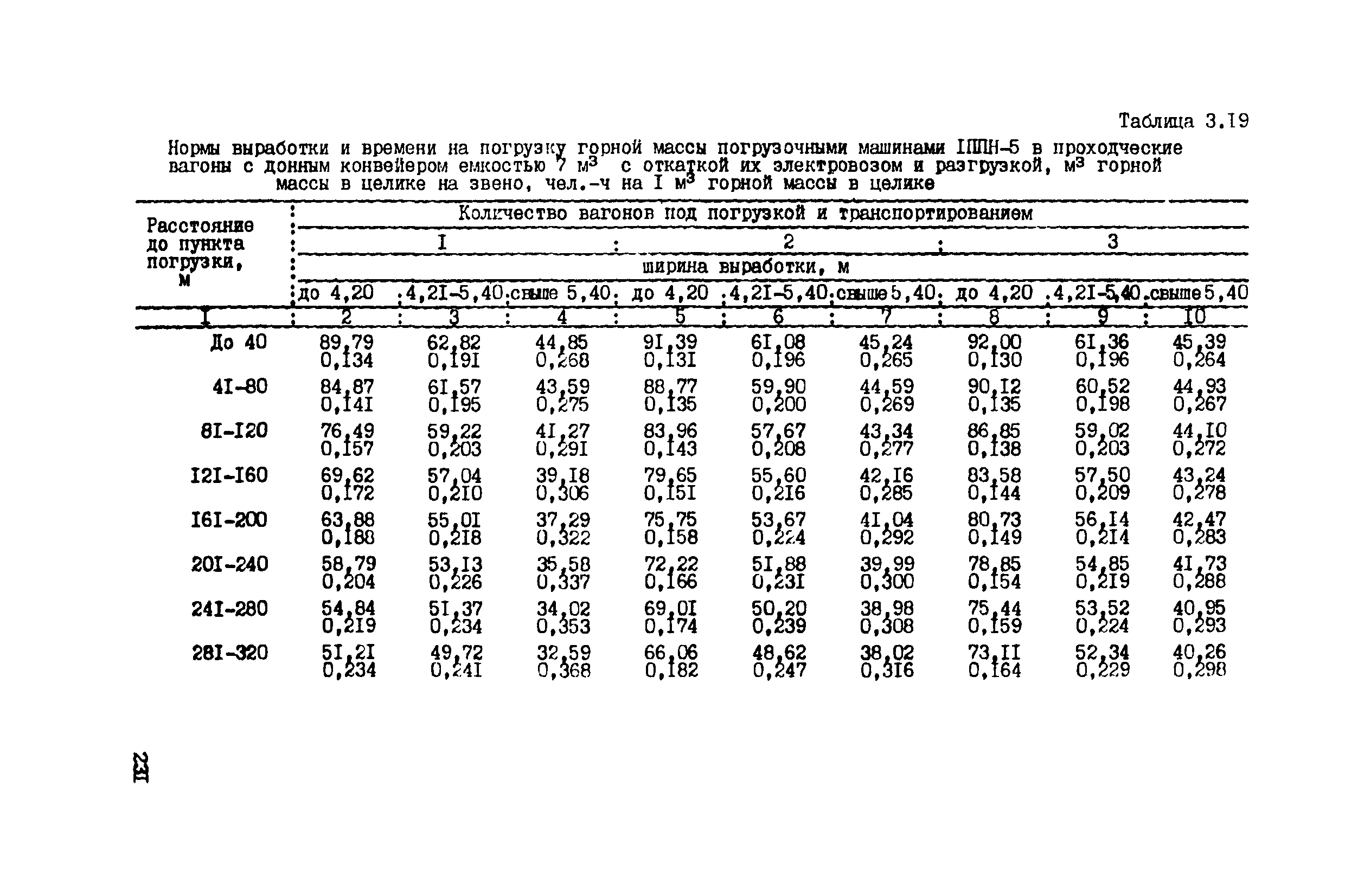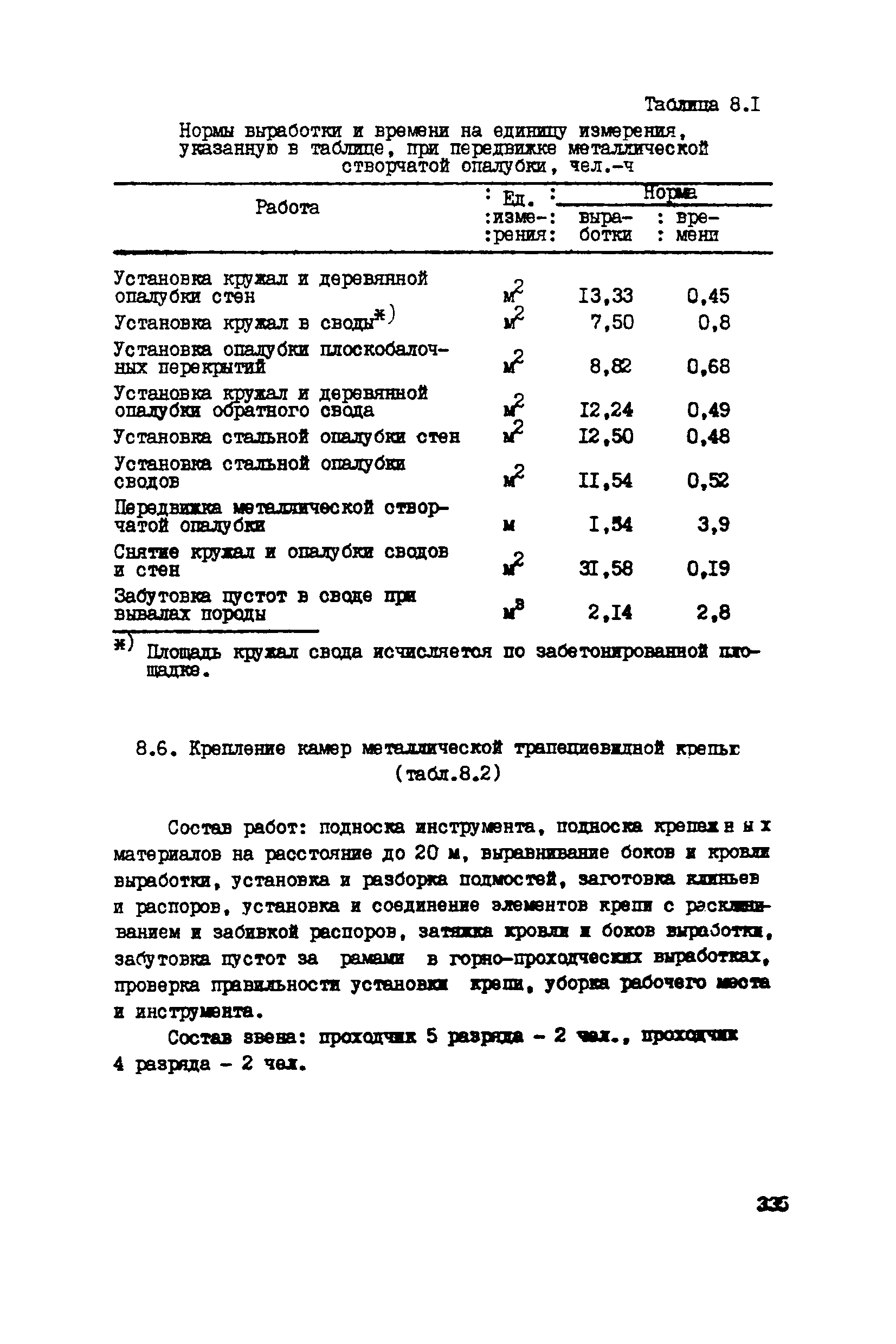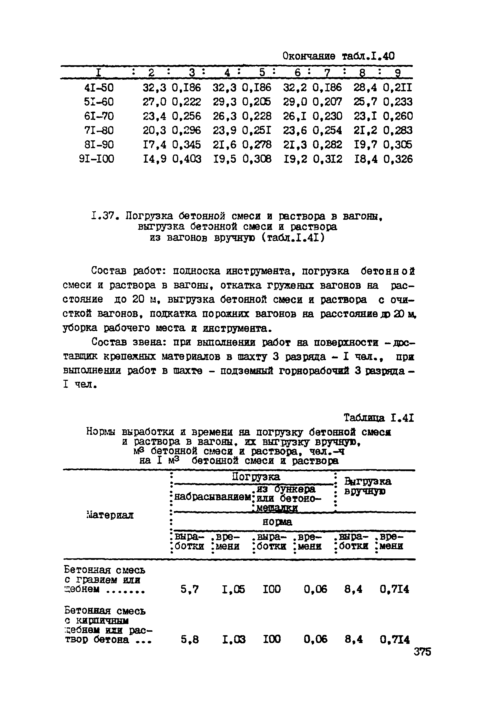 | Оглавление: | Общая часть Раздел 1. Проходка, крепление и армирование вертикальных стволов шахт; проведение сопряжений стволов с околоствольными дворами Глава 1. Проходка вертикальных стволов шахт 1.1 Проходка вертикальных стволов обычном способом 1.2 Проходка вертикальных стволов по замороженным породам 1.3 Проходка вертикальных стволов по породам, предварительно закрепленным химическим способом Глава 2. Крепление вертикальных стволов шахт бетоном 2.1 Временное крепление стволов металлическими кольцами 2.2 Крепление стволов круглого сечения бетоном и железобетоном 2.3 Крепление вертикальных стволов тюбингами 2.4 Крепление вертикальных стволов анкерной крепью 2.5 Установка и снятие деревянной опалубки заводного тюбингового кольца в конце заходки 2.6 Снятие первого тюбингового кольца 2.7 Сбивка кромки бетона на контакте заходки 2.8 Установка опорного венца из чугунных тюбингов 2.9 Укладка холодного бетона за опалубку при спуске его по трубам 2.10 Крепление стволов торкрет—бетоном Глава 3. Гидроизоляционные работы 3.1 Гидроизоляция тюбинговой крепи 3.2 Расчеканка свинцовых прокладок в тюбинговых швах и чеканка тюбинговых швов свинцовым шнуром 3.3 Очистка чугунной тюбинговой крепи после проходки и крепления ствола 3.4 Пикотаж горизонтального шва между двумя звеньями тюбинговой крепи ствола 3.5 Гидроизоляция чугунной тюбинговой крепи тампонажным раствором при поступлении его по трубам самотеком с поверхности 3.6 Первичное нагнетание за крепь шахтного ствола 3.7 Контрольное в нагнетание за крепь шахтного ствола 3.8 Контрольное подтягивание и замена болтов в тюбинговой отделке шахтного ствола 3.9 Установка и замена пробок в отверстиях тюбингов 3.10 Изоляция стыков тюбинговой крепи шахтного ствола 3.11 Штукатурка бетонной поверхности под изоляцию и по изоляции 3.12 Оклеечная изоляция стенок шахтного ствола 3.13 Устройство пикотажных манжет при крепления вертикальных стволов шахт железобетонными тюбингами 3.14 Бурение шпуров в бетоне Глава 4. Армирование стволов 4.1 Долбление лунок под расстрелы 4.2 Установка и заделка металлических расстрелов в готовые лунки 4.3 Сболчивание стальных расстрелов 4.4 Установка проводников 4.5 Оборудование лестничных отделений в стволах шахт 4.6 Устройство и разборка настилов по расстрелам 4.7 Установка рудничных станков на сопряжение с околоствольным двором 4.8 Монтаж компенсационных балок из спец профиля в стволе 4.9 Монтаж и демонтаж постоянных трубопроводов Глава 5. Вспомогательные работы при проходке и креплении стволов шахт 5.1 Устройство, разборка и переноска рабочего полка 5.2 Устройство деревянного временного переносного полка в стволе 5.3 Монтаж одноэтажных и двухэтажных подвесных металлических полков в стволах натяжных рам и предохранительных полков Глава 6. Устройство в стволах круглого сечения бетонного опорного венца (башмака) Глава 7. Проведение сопряжений вертикальных стволов с околоствольными дворами Раздел II. Проходка и крепление наклонных стволов Глава 1. Проходка наклонных стволов Глава 2. Крепление наклонных стволов Глава 3. Гидроизоляционные работы Глава 4. Вспомогательные работы при проходке и креплении вертикальных и наклонных стволов с применением специальных способов Раздел III. Проходка и крепление горизонтальных, наклонных и восстающих горных выработок Глава 1. Буровые работы Глава 2. Д