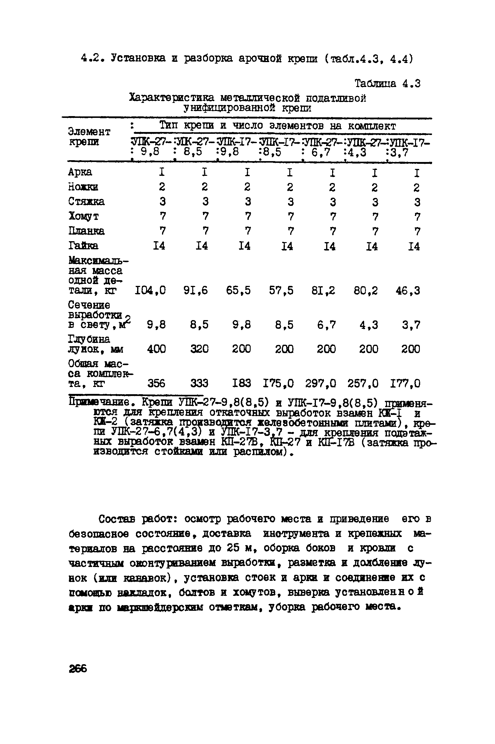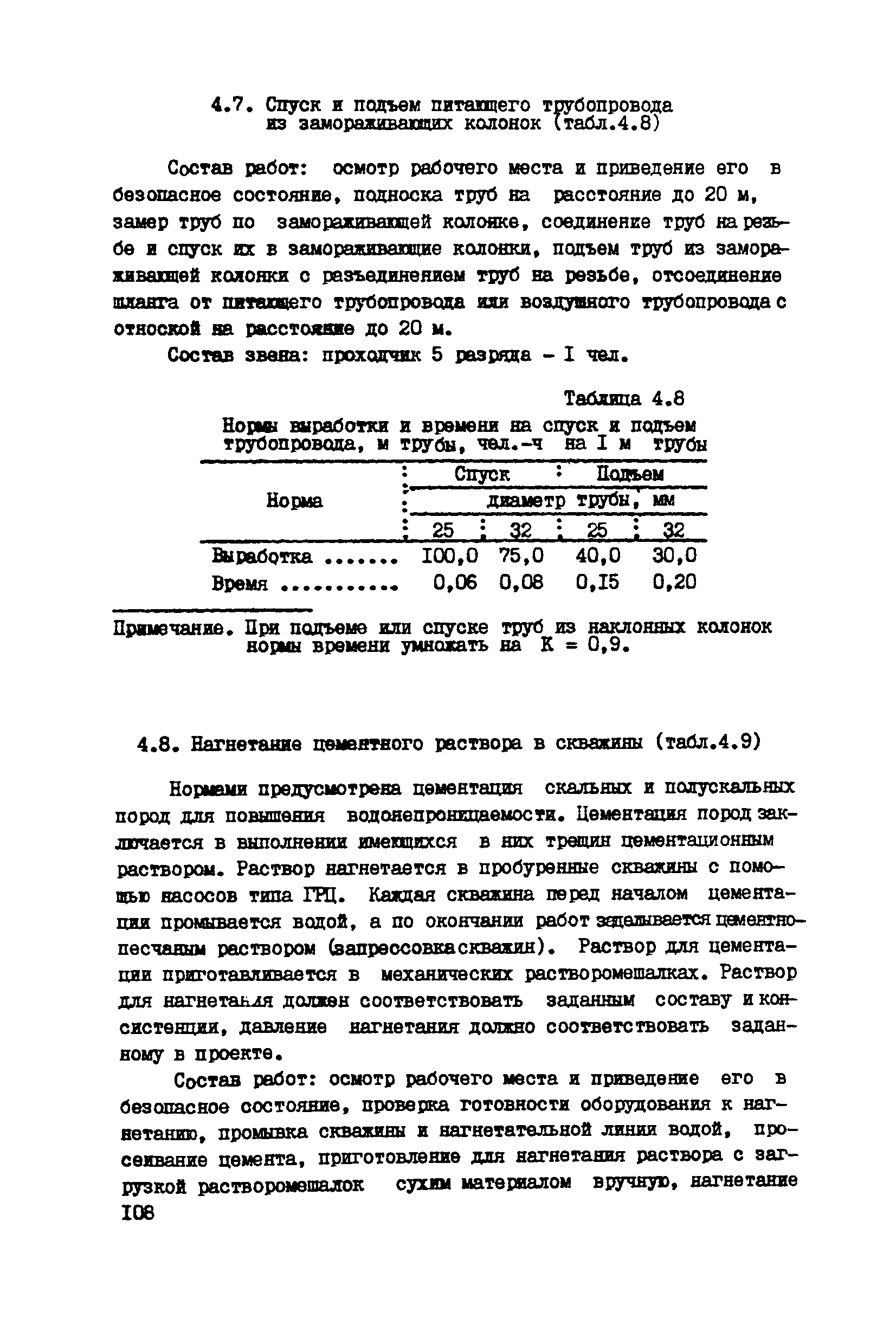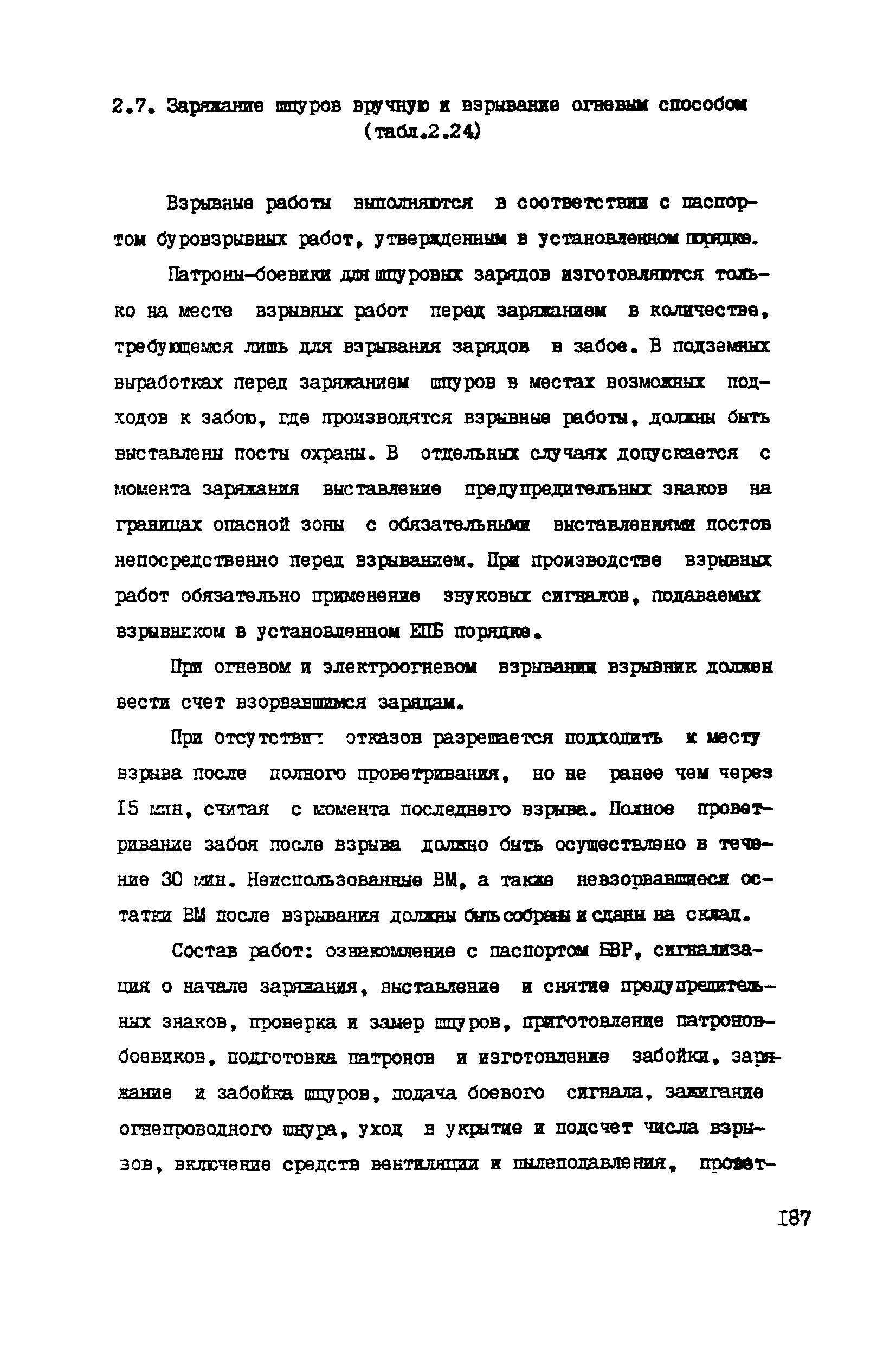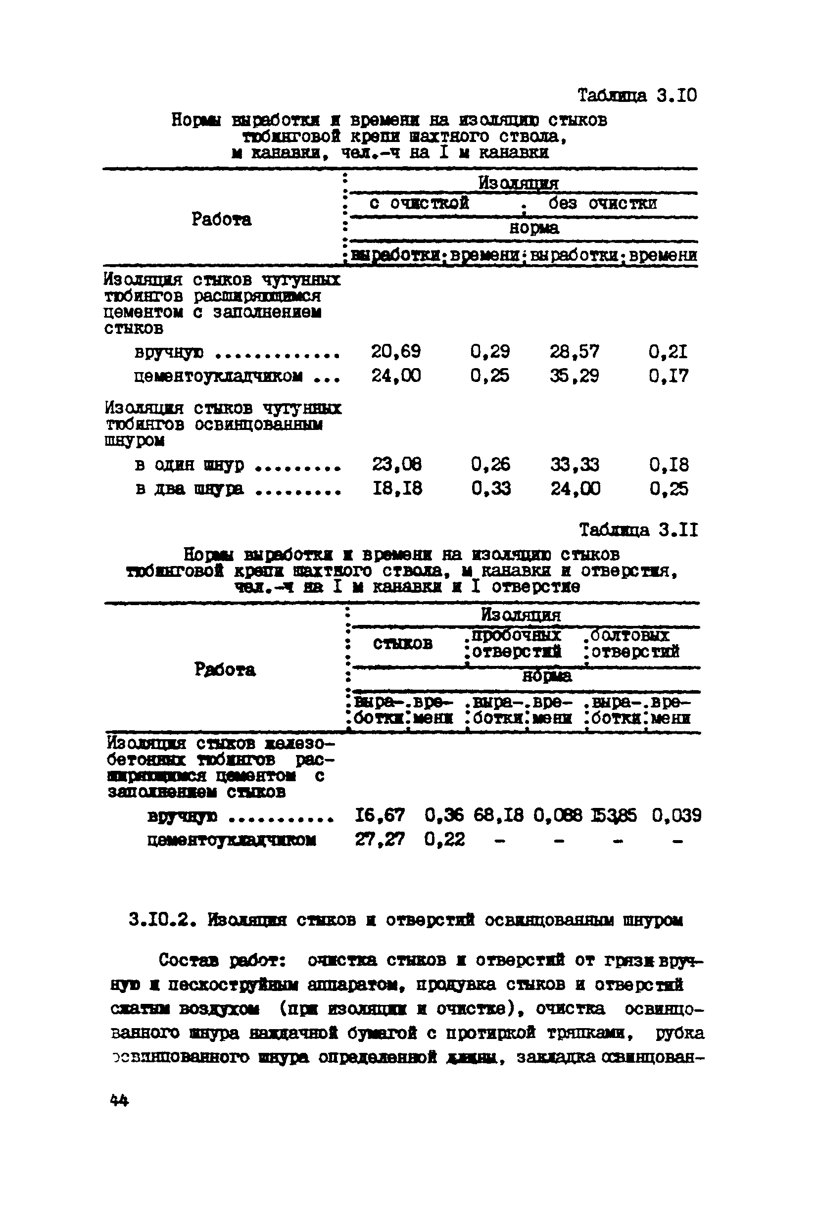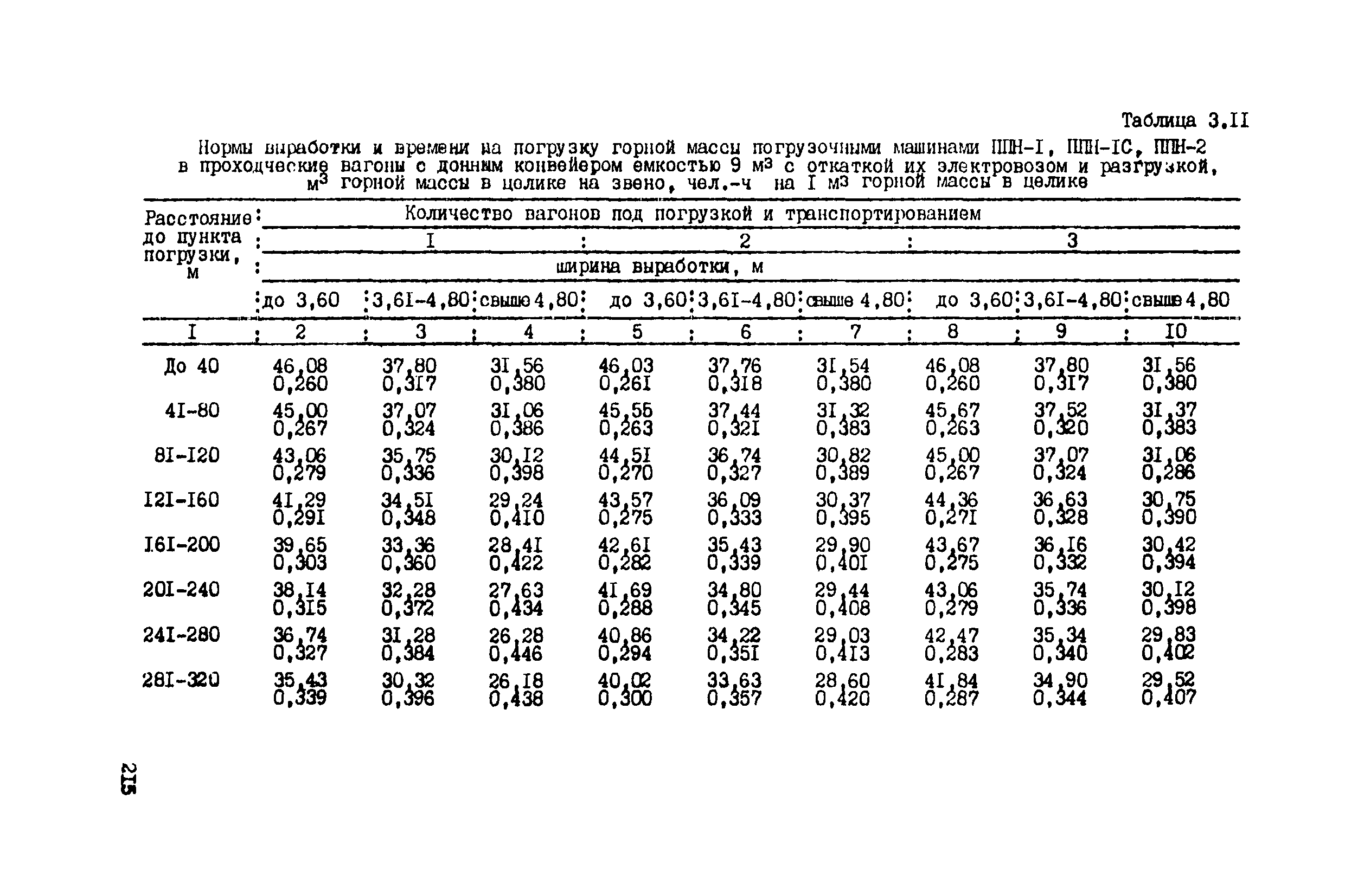 | Оглавление: | Общая часть Раздел 1. Проходка, крепление и армирование вертикальных стволов шахт; проведение сопряжений стволов с околоствольными дворами Глава 1. Проходка вертикальных стволов шахт 1.1 Проходка вертикальных стволов обычном способом 1.2 Проходка вертикальных стволов по замороженным породам 1.3 Проходка вертикальных стволов по породам, предварительно закрепленным химическим способом Глава 2. Крепление вертикальных стволов шахт бетоном 2.1 Временное крепление стволов металлическими кольцами 2.2 Крепление стволов круглого сечения бетоном и железобетоном 2.3 Крепление вертикальных стволов тюбингами 2.4 Крепление вертикальных стволов анкерной крепью 2.5 Установка и снятие деревянной опалубки заводного тюбингового кольца в конце заходки 2.6 Снятие первого тюбингового кольца 2.7 Сбивка кромки бетона на контакте заходки 2.8 Установка опорного венца из чугунных тюбингов 2.9 Укладка холодного бетона за опалубку при спуске его по трубам 2.10 Крепление стволов торкрет—бетоном Глава 3. Гидроизоляционные работы 3.1 Гидроизоляция тюбинговой крепи 3.2 Расчеканка свинцовых прокладок в тюбинговых швах и чеканка тюбинговых швов свинцовым шнуром 3.3 Очистка чугунной тюбинговой крепи после проходки и крепления ствола 3.4 Пикотаж горизонтального шва между двумя звеньями тюбинговой крепи ствола 3.5 Гидроизоляция чугунной тюбинговой крепи тампонажным раствором при поступлении его по трубам самотеком с поверхности 3.6 Первичное нагнетание за крепь шахтного ствола 3.7 Контрольное в нагнетание за крепь шахтного ствола 3.8 Контрольное подтягивание и замена болтов в тюбинговой отделке шахтного ствола 3.9 Установка и замена пробок в отверстиях тюбингов 3.10 Изоляция стыков тюбинговой крепи шахтного ствола 3.11 Штукатурка бетонной поверхности под изоляцию и по изоляции 3.12 Оклеечная изоляция стенок шахтного ствола 3.13 Устройство пикотажных манжет при крепления вертикальных стволов шахт железобетонными тюбингами 3.14 Бурение шпуров в бетоне Глава 4. Армирование стволов 4.1 Долбление лунок под расстрелы 4.2 Установка и заделка металлических расстрелов в готовые лунки 4.3 Сболчивание стальных расстрелов 4.4 Установка проводников 4.5 Оборудование лестничных отделений в стволах шахт 4.6 Устройство и разборка настилов по расстрелам 4.7 Установка рудничных станков на сопряжение с околоствольным двором 4.8 Монтаж компенсационных балок из спец профиля в стволе 4.9 Монтаж и демонтаж постоянных трубопроводов Глава 5. Вспомогательные работы при проходке и креплении стволов шахт 5.1 Устройство, разборка и переноска рабочего полка 5.2 Устройство деревянного временного переносного полка в стволе 5.3 Монтаж одноэтажных и двухэтажных подвесных металлических полков в стволах натяжных рам и предохранительных полков Глава 6. Устройство в стволах круглого сечения бетонного опорного венца (башмака) Глава 7. Проведение сопряжений вертикальных стволов с околоствольными дворами Раздел II. Проходка и крепление наклонных стволов Глава 1. Проходка наклонных стволов Глава 2. Крепление наклонных стволов Глава 3. Гидроизоляционные работы Глава 4. Вспомогательные работы при проходке и креплении вертикальных и наклонных стволов с применением специальных способов Раздел III. Проходка и крепление горизонтальных, наклонных и восстающих горных выработок Глава 1. Буровые работы Глава 2. Д
