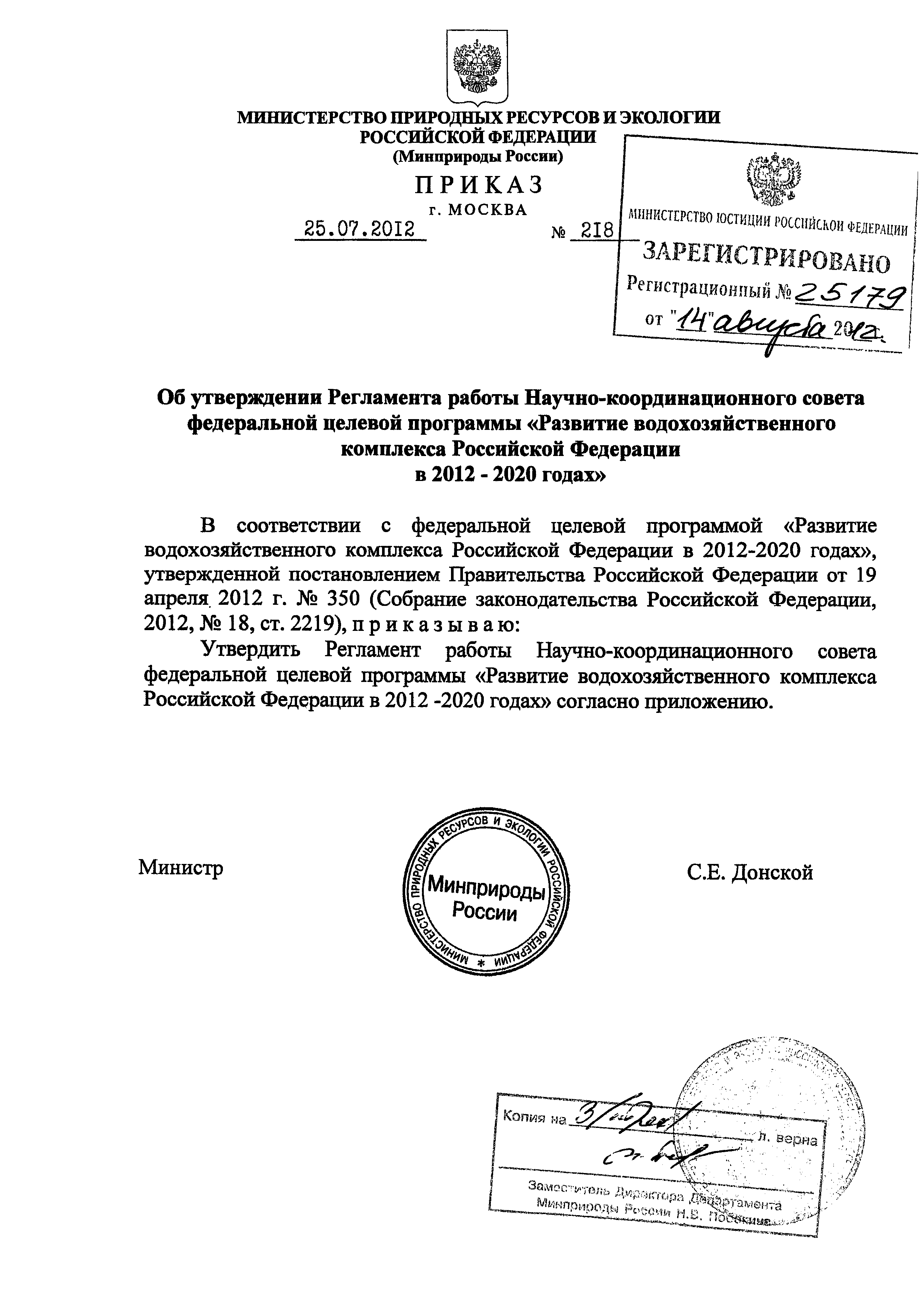 | Утверждён: | 25.07.2012 Министерство природных ресурсов и экологии Российской Федерации (218)