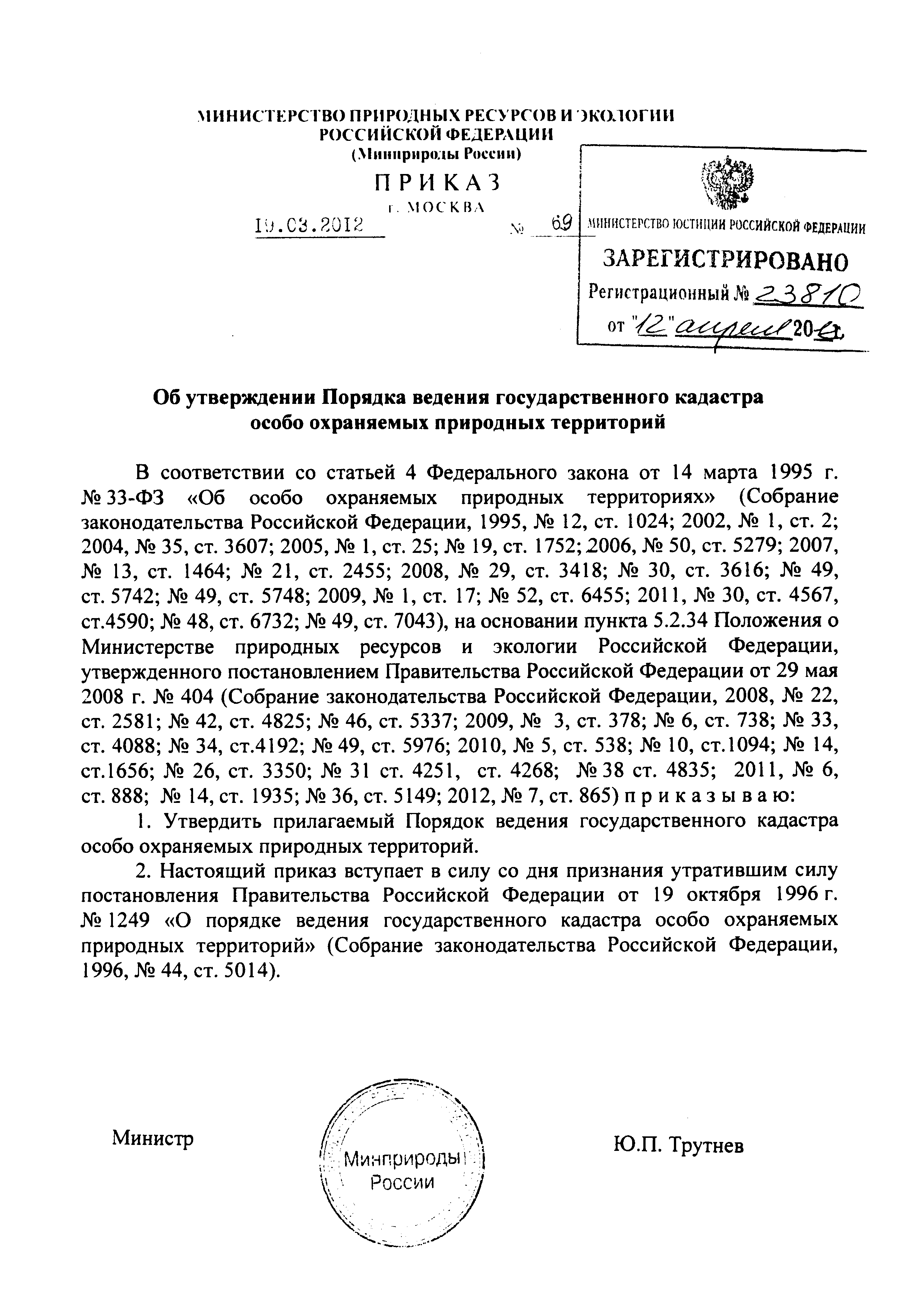 | Название рус.: | Порядок ведения государственного кадастра особо охраняемых природных территорий |