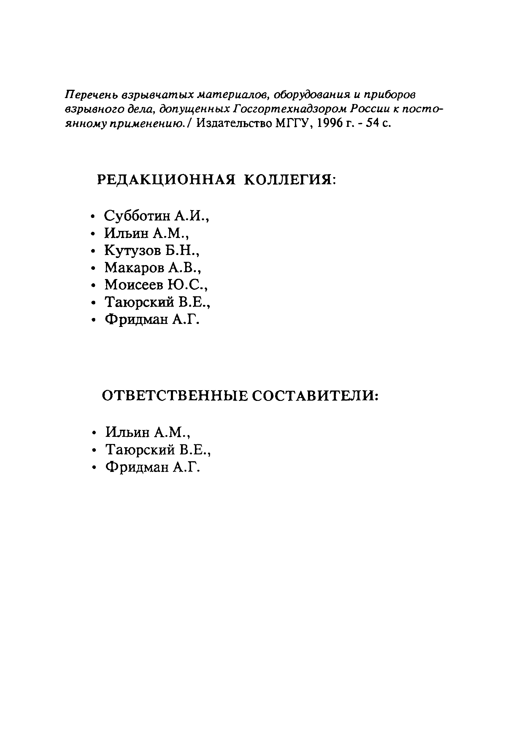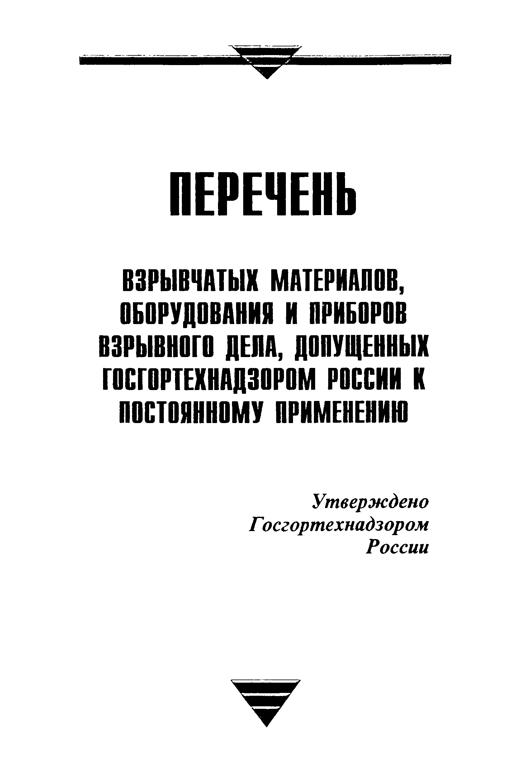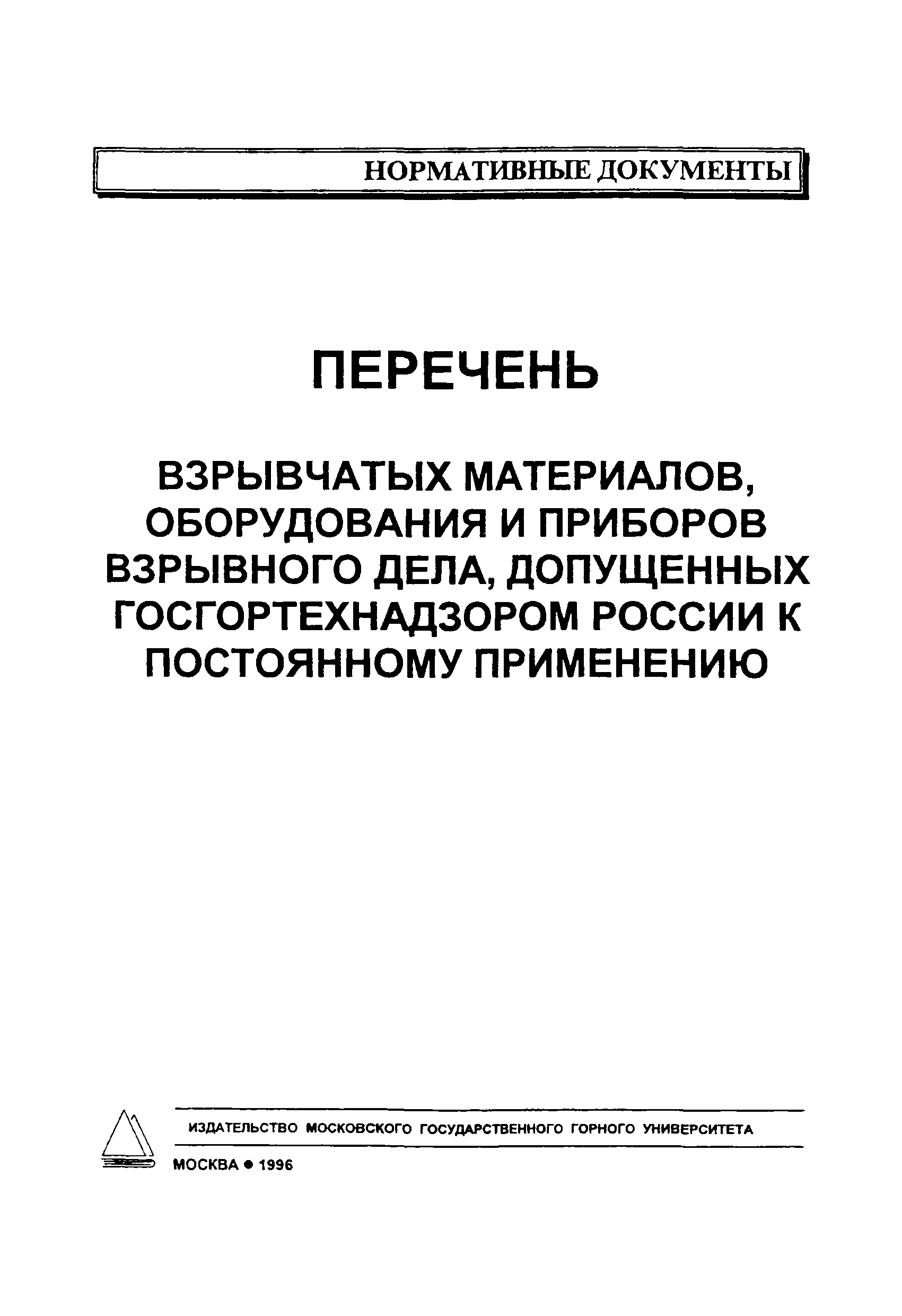 | Название рус.: | Перечень взрывчатых материалов, оборудования и приборов взрывного дела, допущенных Госгортехнадзором России к постоянному применению |