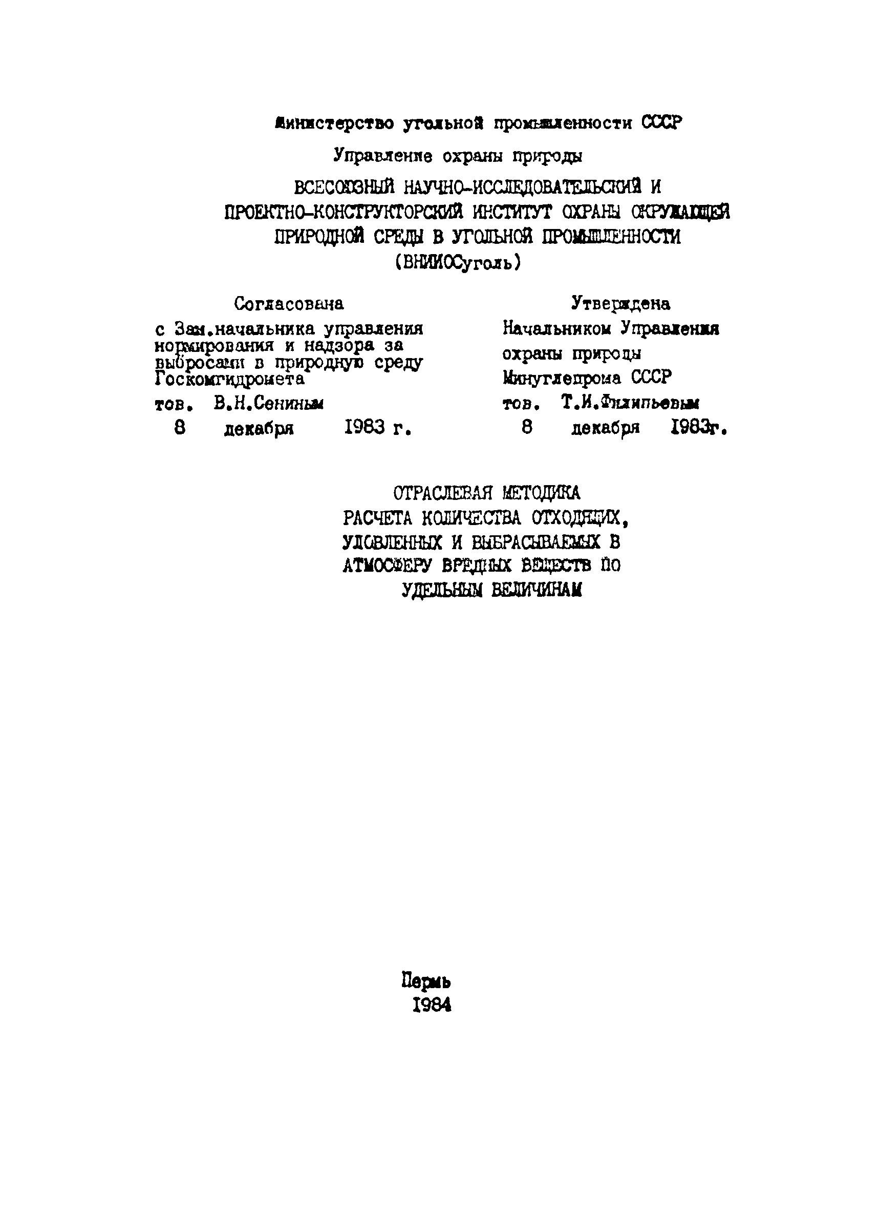 | | Утверждён: | 06.12.1983 Министерство угольной промышленности СССР (USSR Ministry of the Coal Industry )