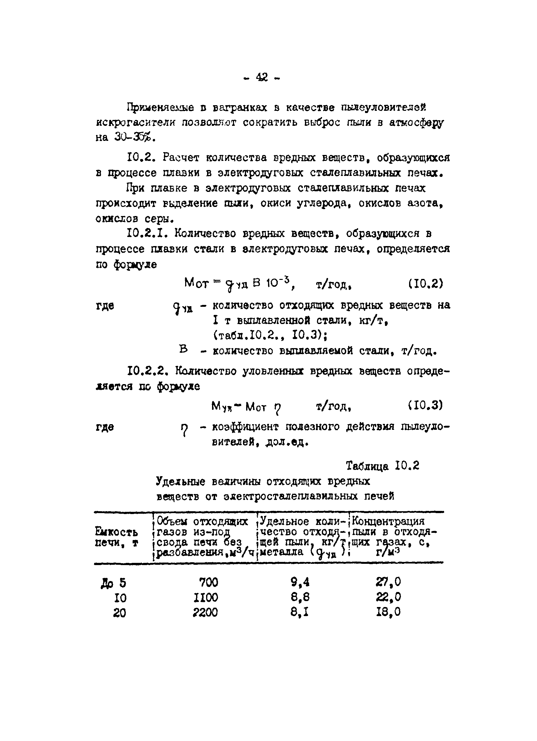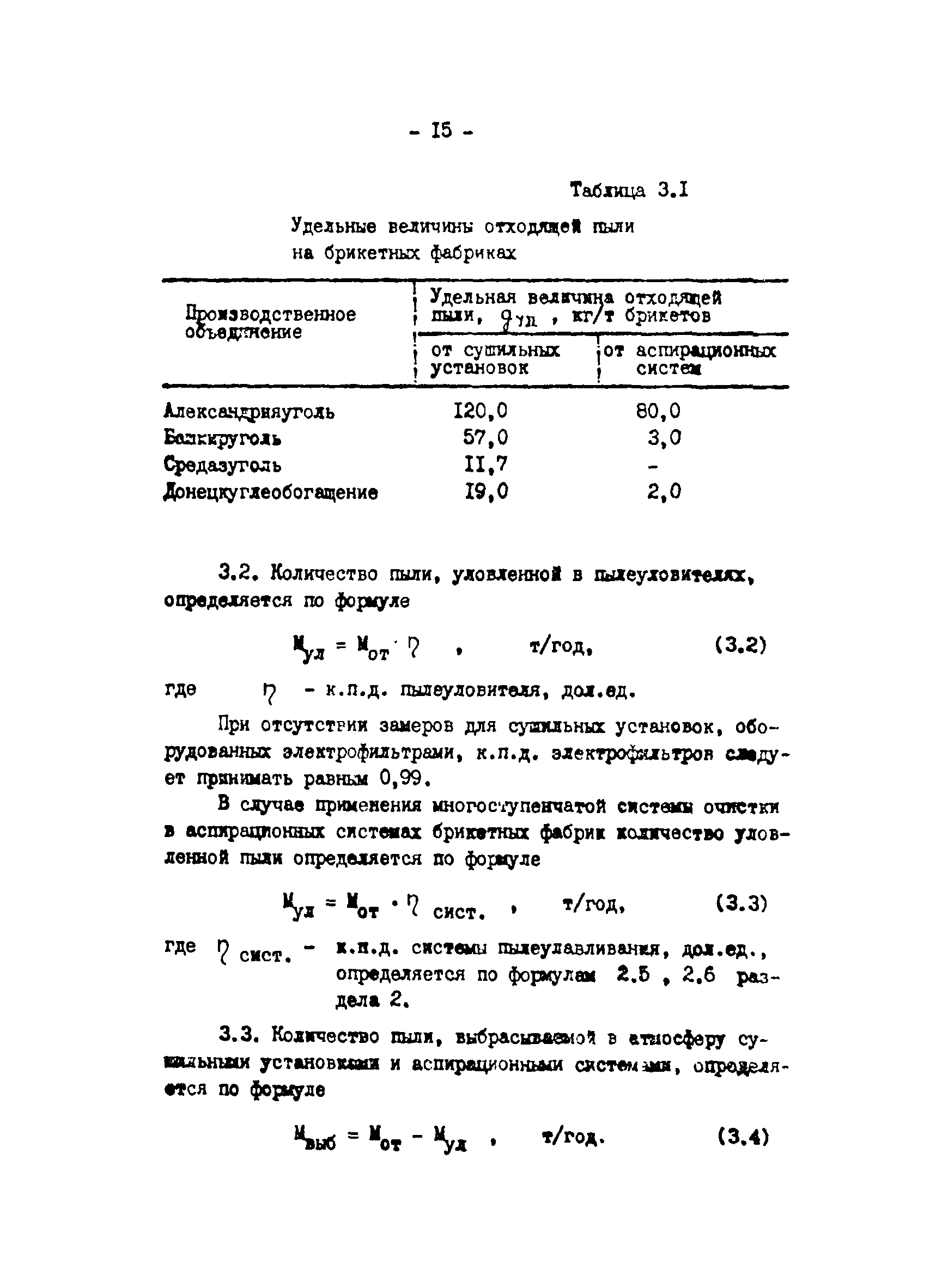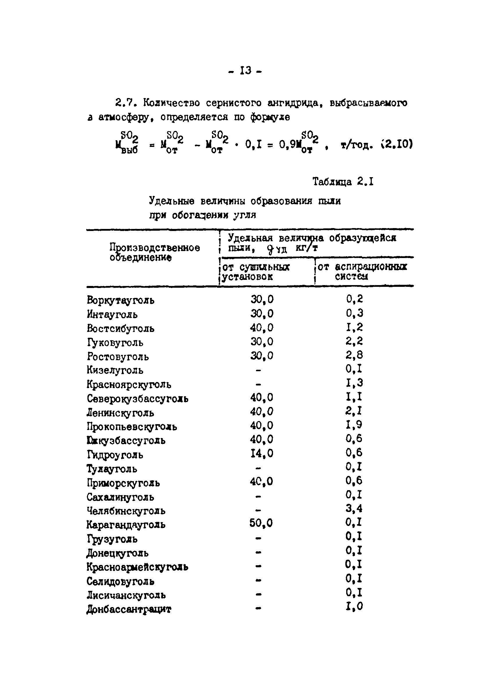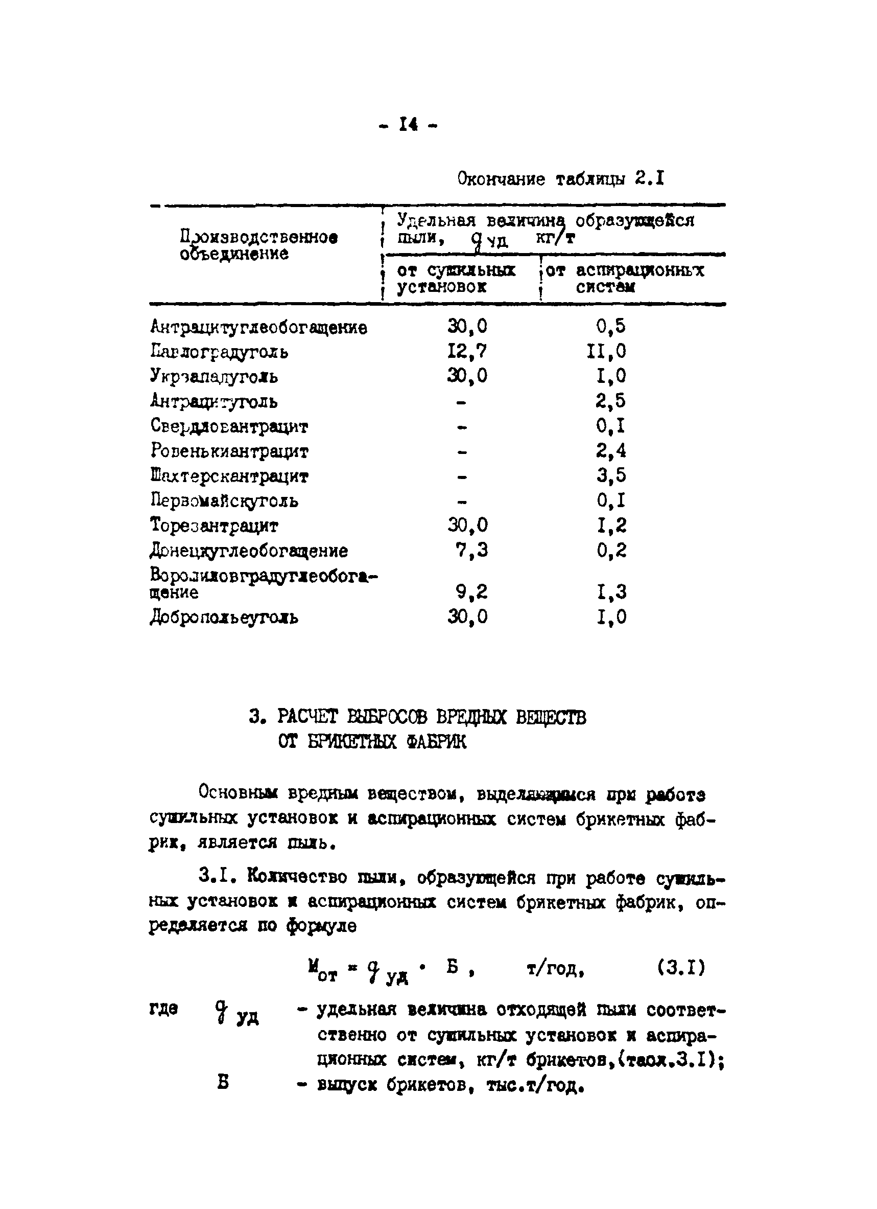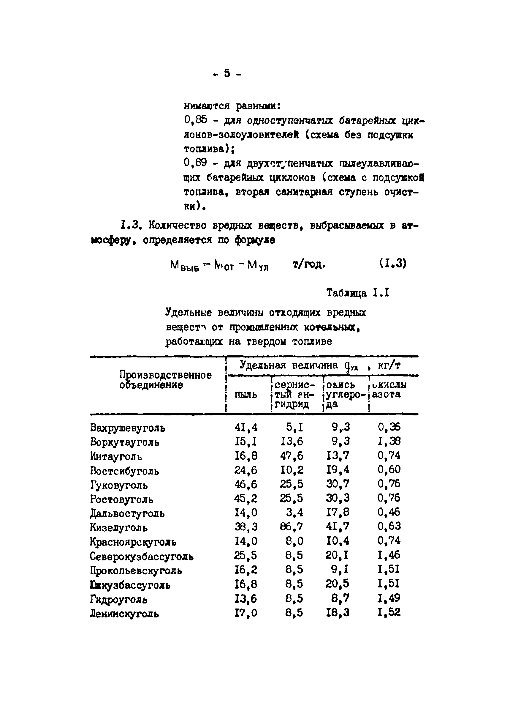 Отраслевая методика расчета количества отходящих, уловленных и выбрасываемых в атмосферу вредных веществ по удельным величинам| Статус: | справочные материалы, мп, тпр | | Название рус.: | Отраслевая методика расчета количества отходящих, уловленных и выбрасываемых в атмосферу вредных веществ по удельным величинам | | Дата добавления в базу: | 01.01.2021 | | Дата актуализации: | 01.01.2021 | | Область применения: | Методика предназначена для расчета количества отходящих, улавливаемых и выбрасываемых в атмосферу вредных веществ при разработке планов и ведения статистической отчетности на предприятиях угольной промышленности. | | Оглавление: | 1. Расчет количества отходящих, уловленных и выбрасываемых в атмосферу вредных веществ при сжигании топлива в котлоагрегатах 2. Расчет количества отходящих, уловленных и выбрасываемых в атмосферу вредных веществ при обогащении угля на обогатительных фабриках 3. Расчет выбросов вредных веществ от брикетных фабрик 4. Расчет выбросов вредных веществ от горящих породных отвалов 5. Расчет выбросов вредных веществ от аспирационных систем комплекса поверхности шахт разрезов 6. Расчет количества вредных веществ, выделяющихся при работе автотранспорта 7. Расчет выбросов вредных веществ, выделяющихся при деревообработке 8. Расчет выбросов вредных веществ при производстве электросварочных работ 9. Расчет количества вредных веществ от гальванических ванн 10. Расчет количества вредных веществ, поступающих в атмосферу от оборудования литейных цехов 11. Расчет количества вредных веществ при производстве асфальтобетона 12. Расчета количества вредных веществ, выделяющихся при покраске 13. Расчет выбросов вредных веществ от оборудования механических цехов 14. Пример расчета количества отходящих, уловленных и выбрасываемых в атмосферу вредных веществ по удельным величинам Список использованных источников | | Разработан: | ВНИИОСуголь