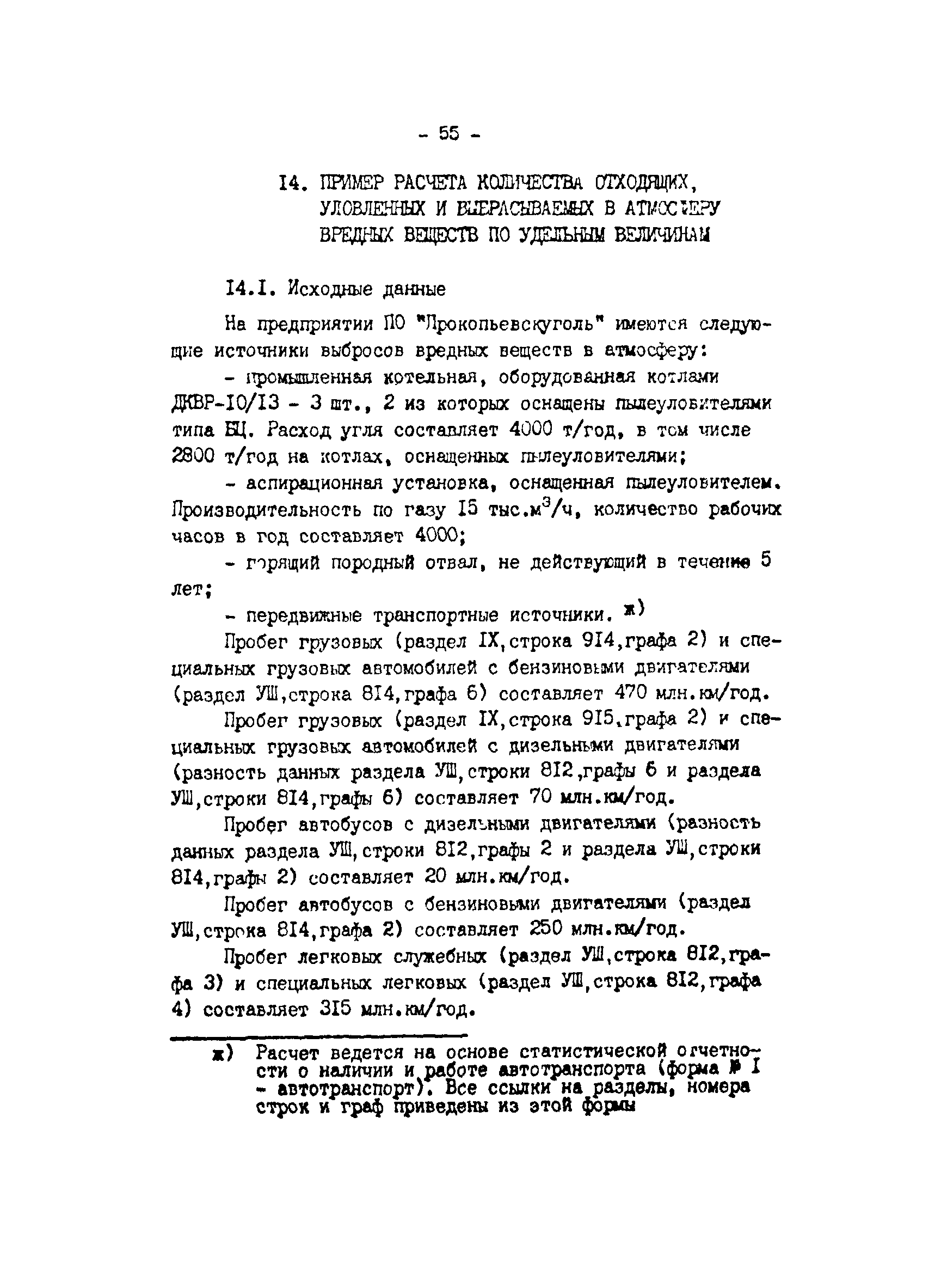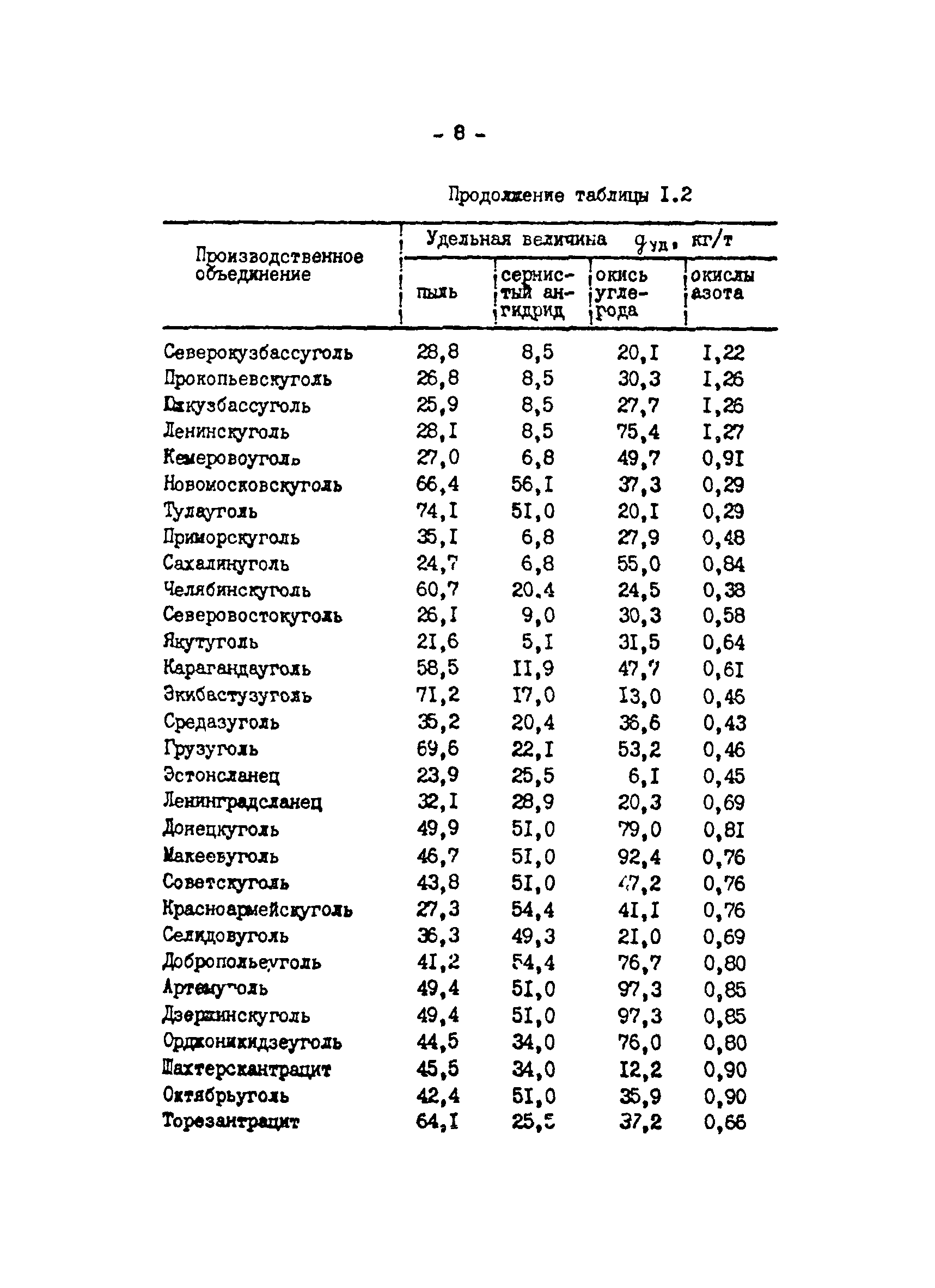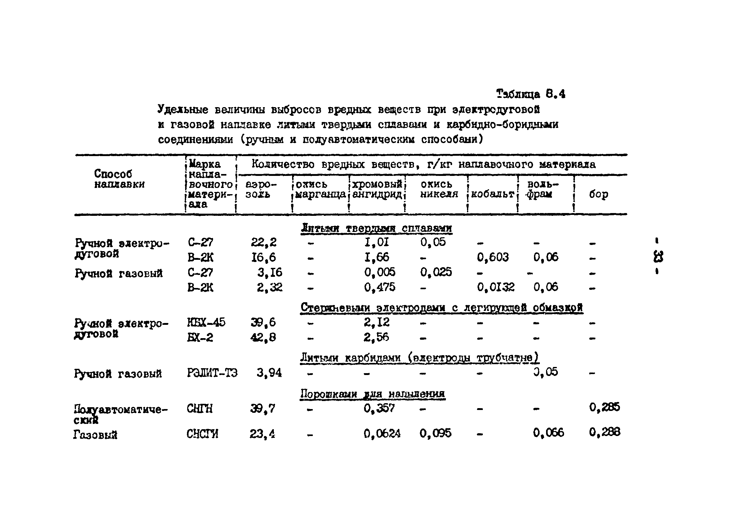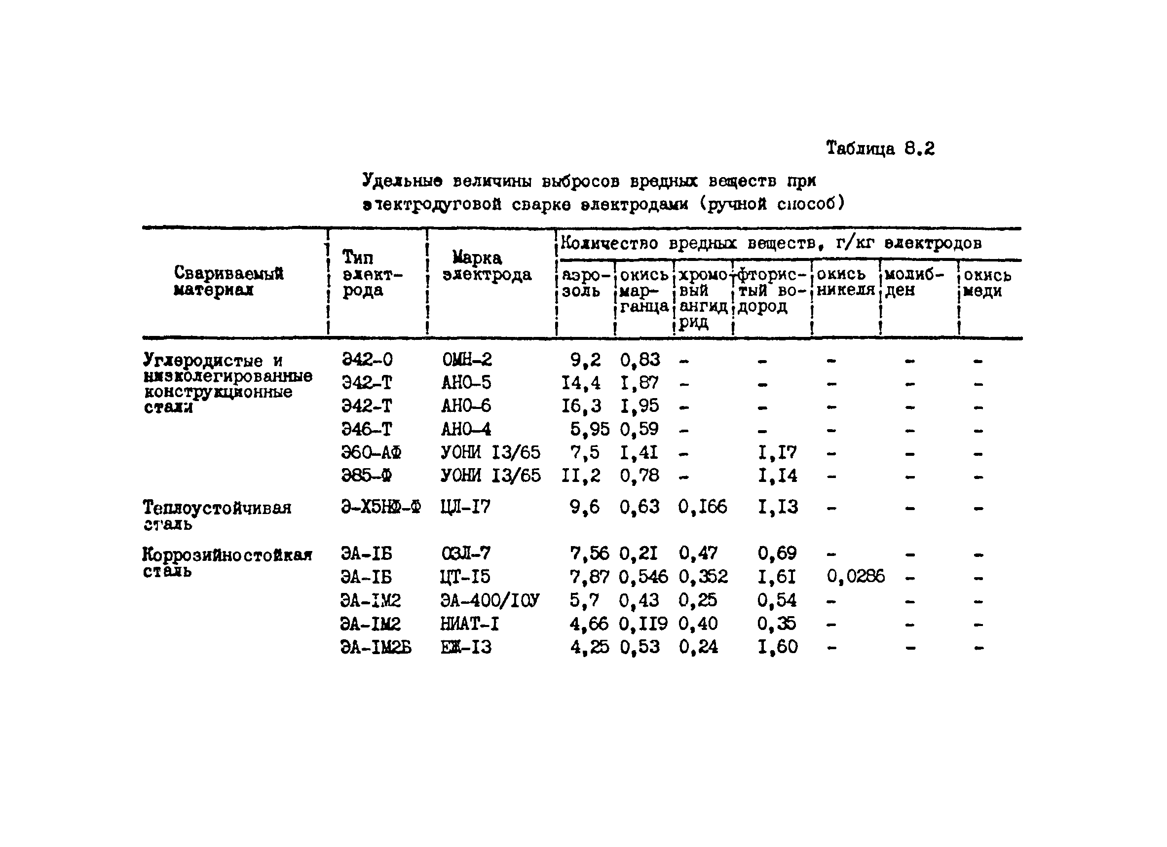 Отраслевая методика расчета количества отходящих, уловленных и выбрасываемых в атмосферу вредных веществ по удельным величинам| Статус: | справочные материалы, мп, тпр | | Название рус.: | Отраслевая методика расчета количества отходящих, уловленных и выбрасываемых в атмосферу вредных веществ по удельным величинам | | Дата добавления в базу: | 01.01.2021 | | Дата актуализации: | 01.01.2021 | | Область применения: | Методика предназначена для расчета количества отходящих, улавливаемых и выбрасываемых в атмосферу вредных веществ при разработке планов и ведения статистической отчетности на предприятиях угольной промышленности. | | Оглавление: | 1. Расчет количества отходящих, уловленных и выбрасываемых в атмосферу вредных веществ при сжигании топлива в котлоагрегатах 2. Расчет количества отходящих, уловленных и выбрасываемых в атмосферу вредных веществ при обогащении угля на обогатительных фабриках 3. Расчет выбросов вредных веществ от брикетных фабрик 4. Расчет выбросов вредных веществ от горящих породных отвалов 5. Расчет выбросов вредных веществ от аспирационных систем комплекса поверхности шахт разрезов 6. Расчет количества вредных веществ, выделяющихся при работе автотранспорта 7. Расчет выбросов вредных веществ, выделяющихся при деревообработке 8. Расчет выбросов вредных веществ при производстве электросварочных работ 9. Расчет количества вредных веществ от гальванических ванн 10. Расчет количества вредных веществ, поступающих в атмосферу от оборудования литейных цехов 11. Расчет количества вредных веществ при производстве асфальтобетона 12. Расчета количества вредных веществ, выделяющихся при покраске 13. Расчет выбросов вредных веществ от оборудования механических цехов 14. Пример расчета количества отходящих, уловленных и выбрасываемых в атмосферу вредных веществ по удельным величинам Список использованных источников | | Разработан: | ВНИИОСуголь
