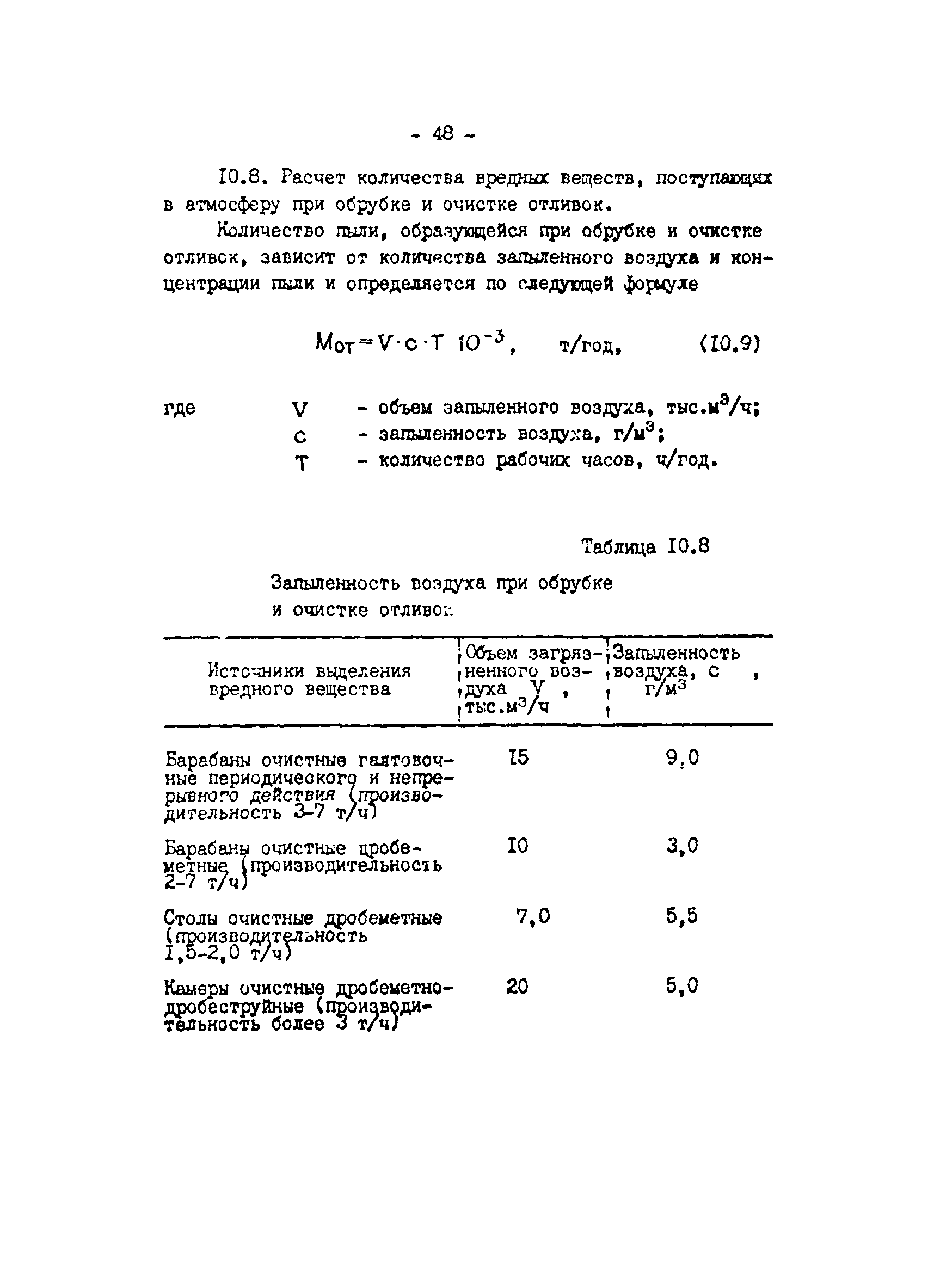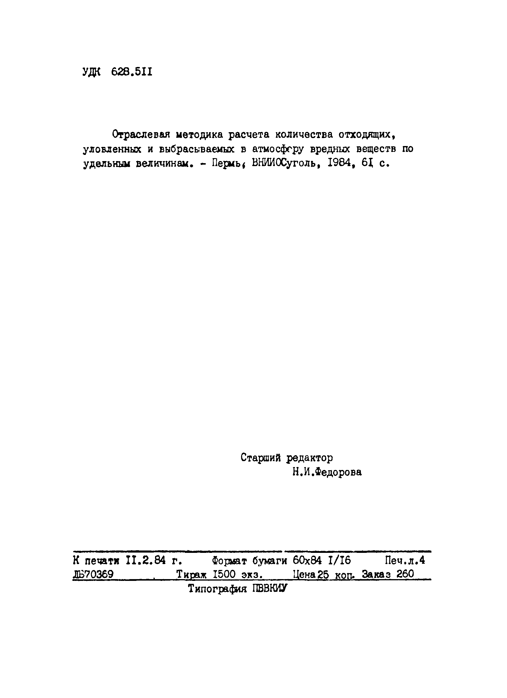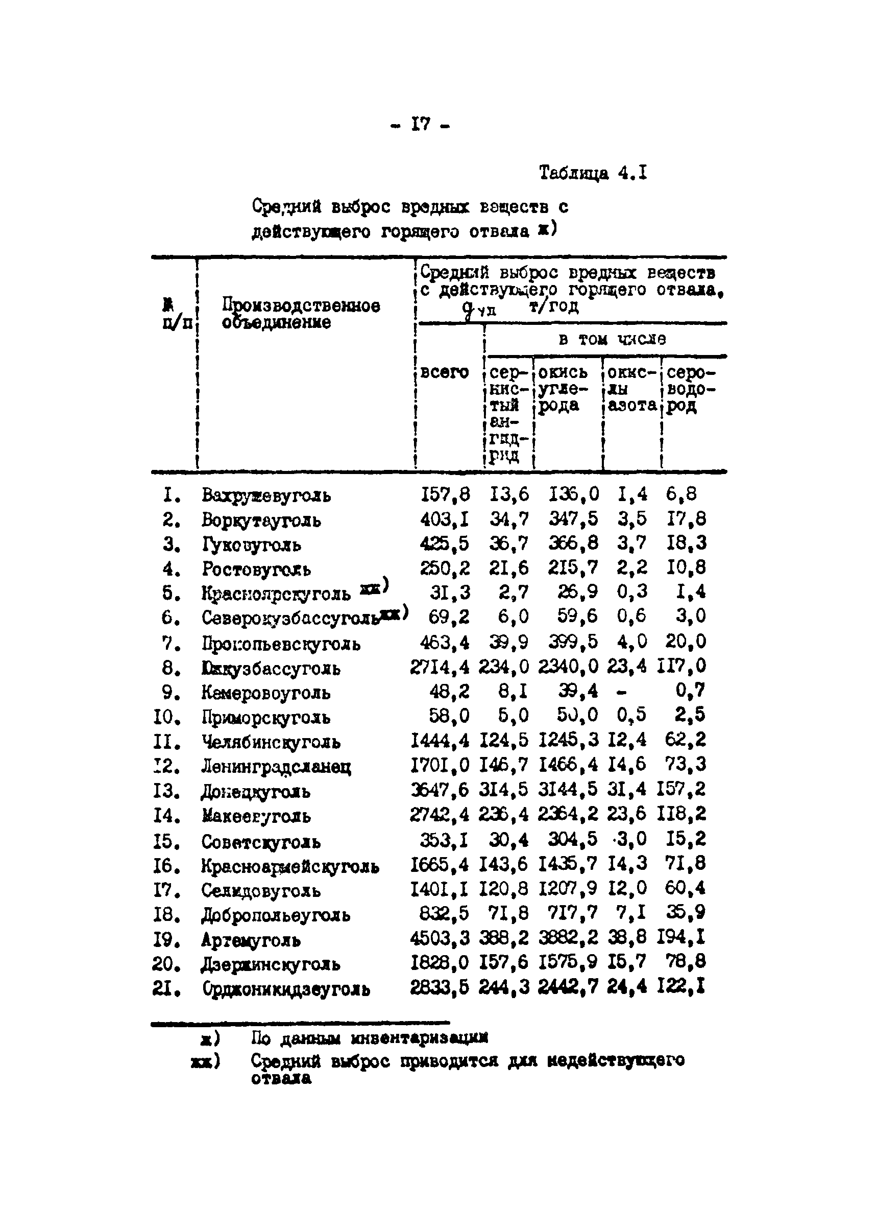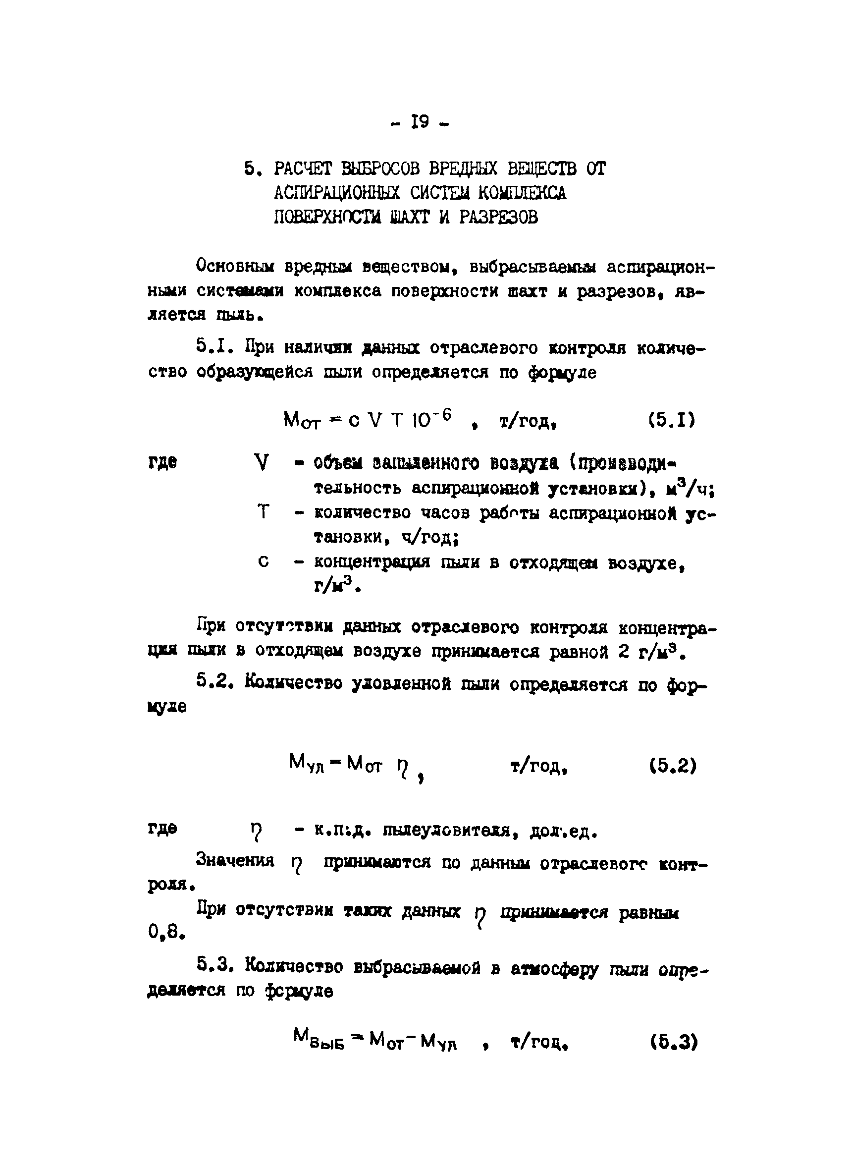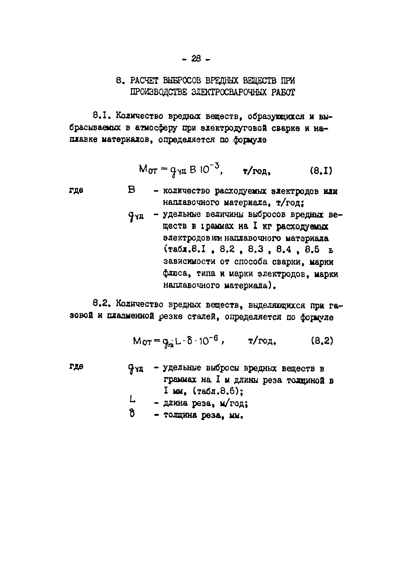 Отраслевая методика расчета количества отходящих, уловленных и выбрасываемых в атмосферу вредных веществ по удельным величинам| Статус: | справочные материалы, мп, тпр | | Название рус.: | Отраслевая методика расчета количества отходящих, уловленных и выбрасываемых в атмосферу вредных веществ по удельным величинам | | Дата добавления в базу: | 01.01.2021 | | Дата актуализации: | 01.01.2021 | | Область применения: | Методика предназначена для расчета количества отходящих, улавливаемых и выбрасываемых в атмосферу вредных веществ при разработке планов и ведения статистической отчетности на предприятиях угольной промышленности. | | Оглавление: | 1. Расчет количества отходящих, уловленных и выбрасываемых в атмосферу вредных веществ при сжигании топлива в котлоагрегатах 2. Расчет количества отходящих, уловленных и выбрасываемых в атмосферу вредных веществ при обогащении угля на обогатительных фабриках 3. Расчет выбросов вредных веществ от брикетных фабрик 4. Расчет выбросов вредных веществ от горящих породных отвалов 5. Расчет выбросов вредных веществ от аспирационных систем комплекса поверхности шахт разрезов 6. Расчет количества вредных веществ, выделяющихся при работе автотранспорта 7. Расчет выбросов вредных веществ, выделяющихся при деревообработке 8. Расчет выбросов вредных веществ при производстве электросварочных работ 9. Расчет количества вредных веществ от гальванических ванн 10. Расчет количества вредных веществ, поступающих в атмосферу от оборудования литейных цехов 11. Расчет количества вредных веществ при производстве асфальтобетона 12. Расчета количества вредных веществ, выделяющихся при покраске 13. Расчет выбросов вредных веществ от оборудования механических цехов 14. Пример расчета количества отходящих, уловленных и выбрасываемых в атмосферу вредных веществ по удельным величинам Список использованных источников | | Разработан: | ВНИИОСуголь