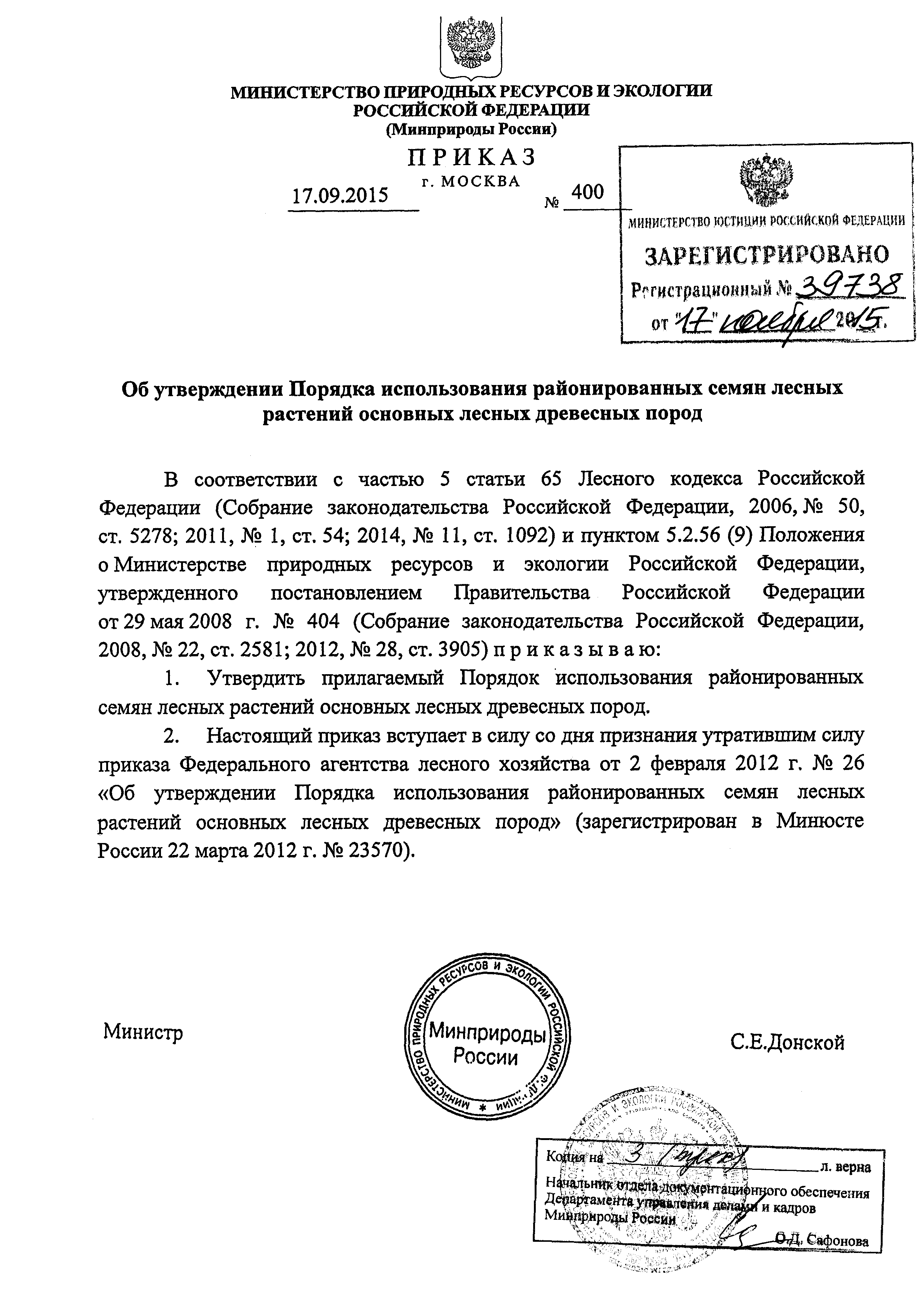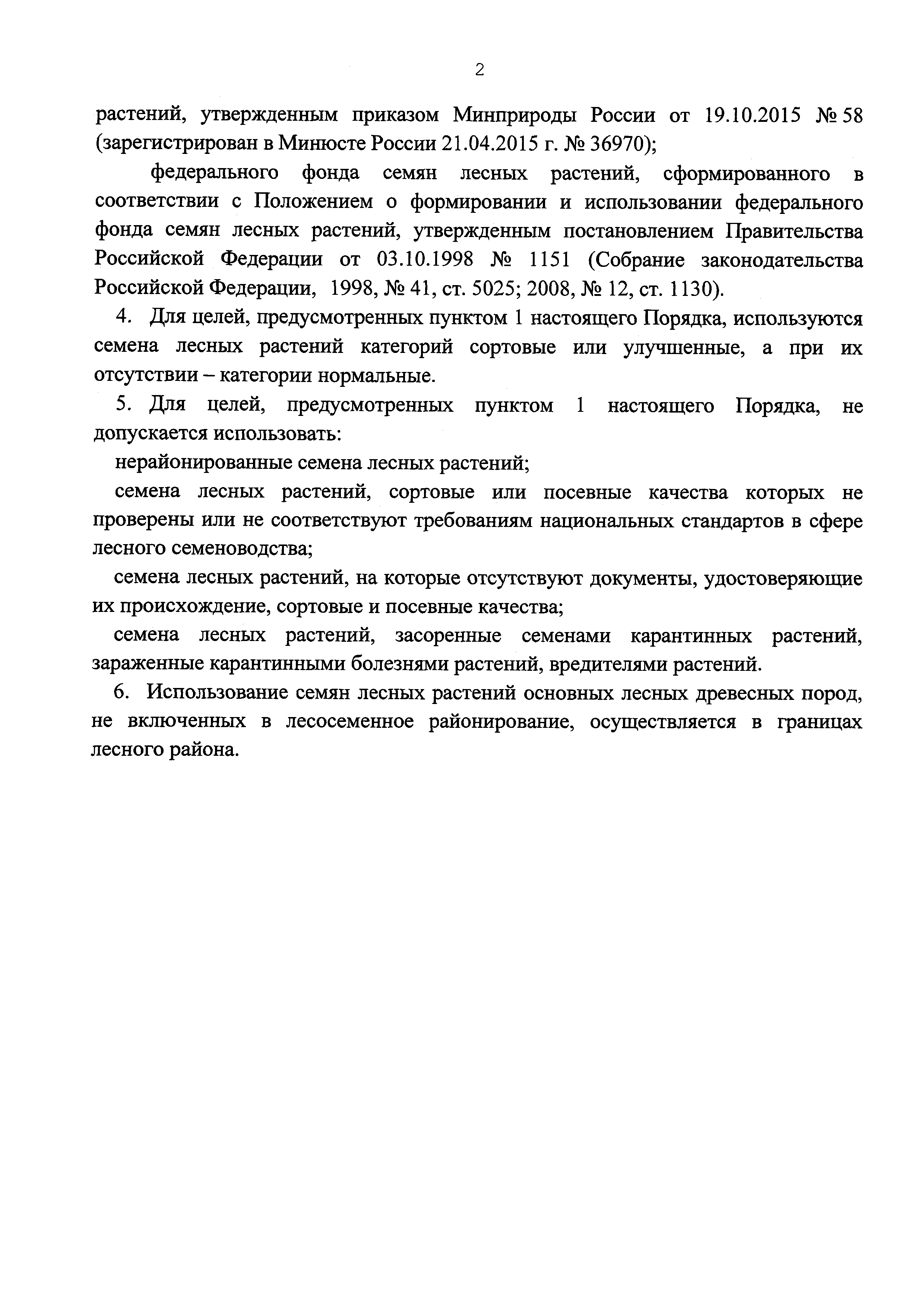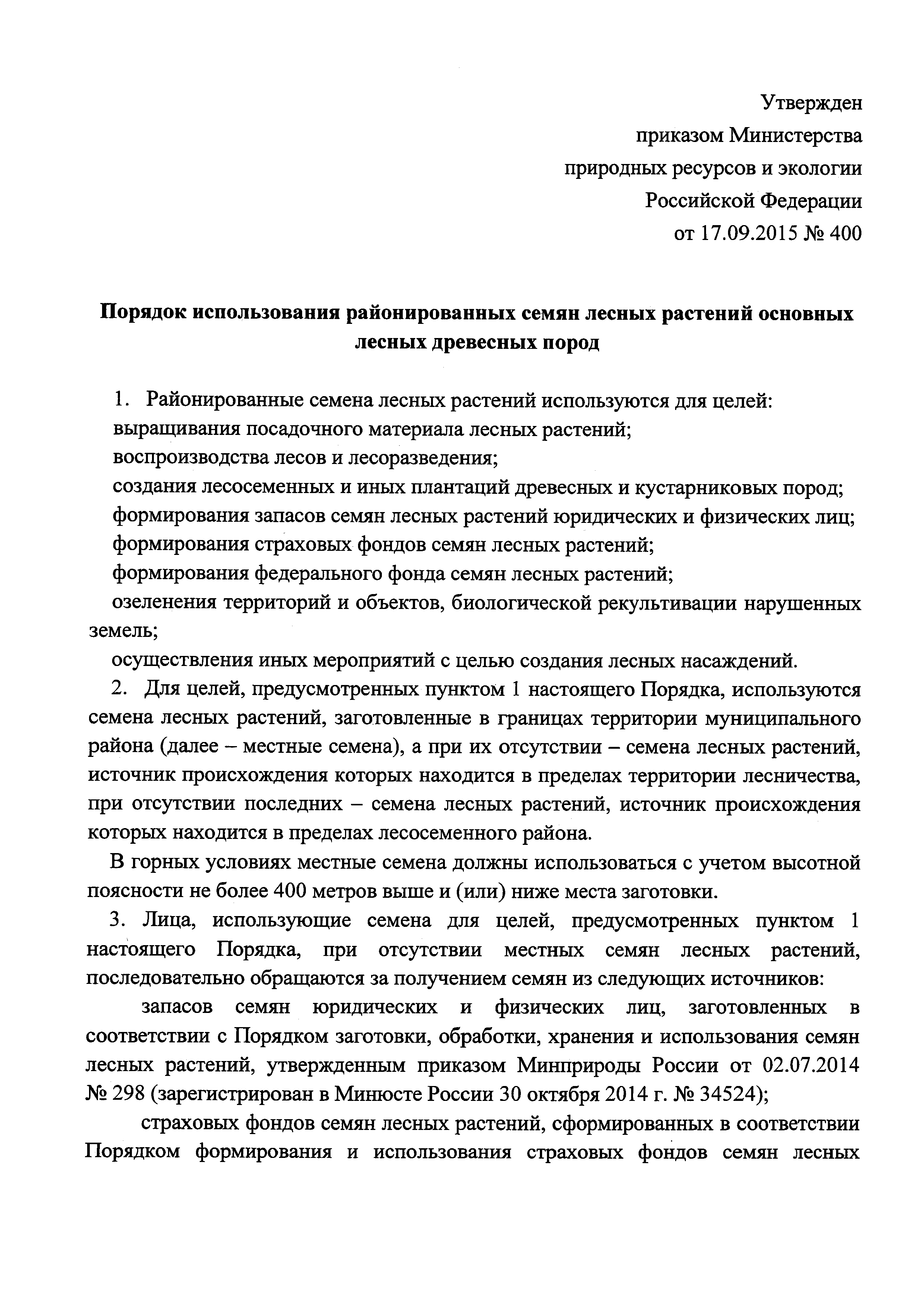 | Название рус.: | Порядок использования районированных семян лесных растений основных лесных древесных пород |