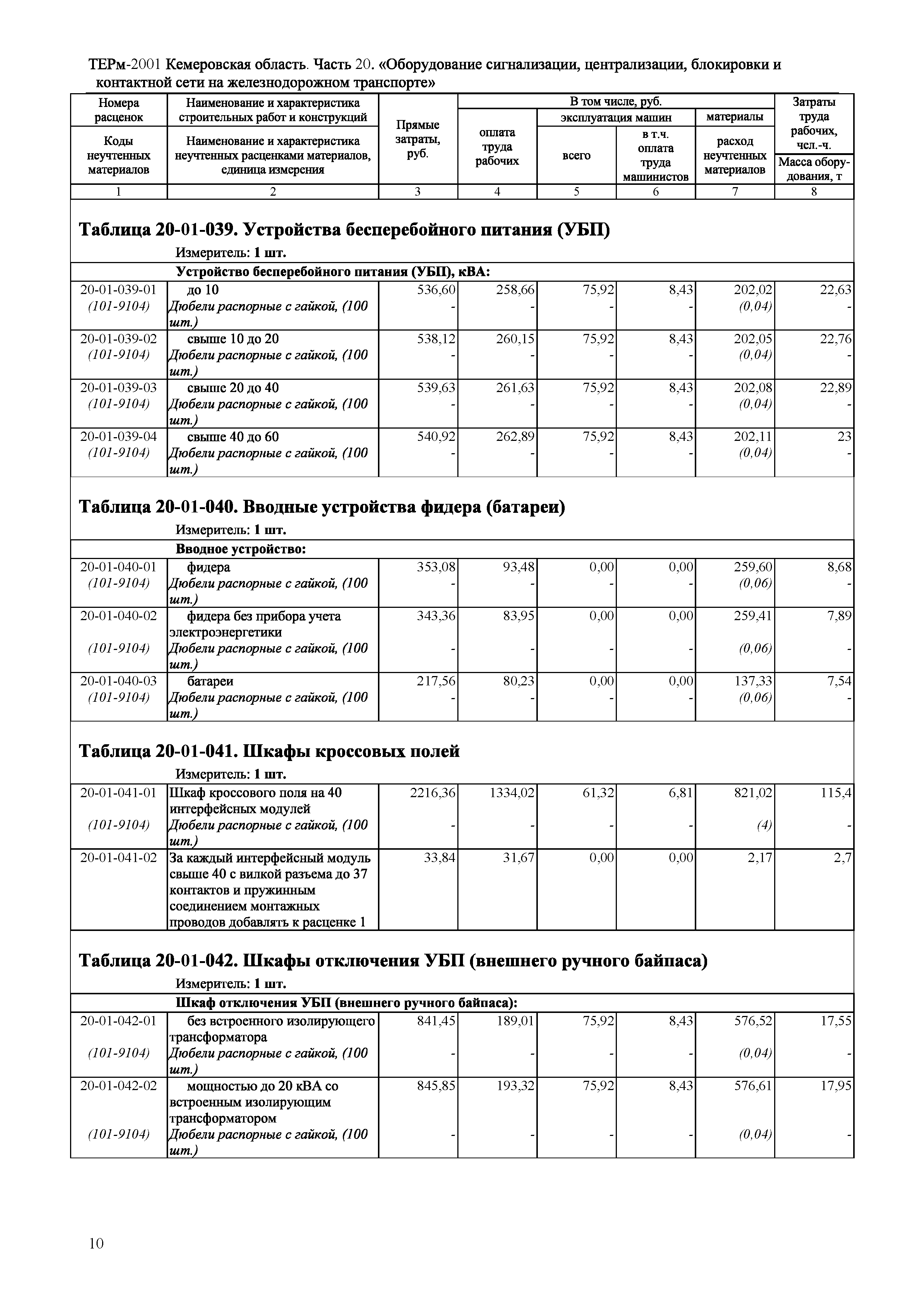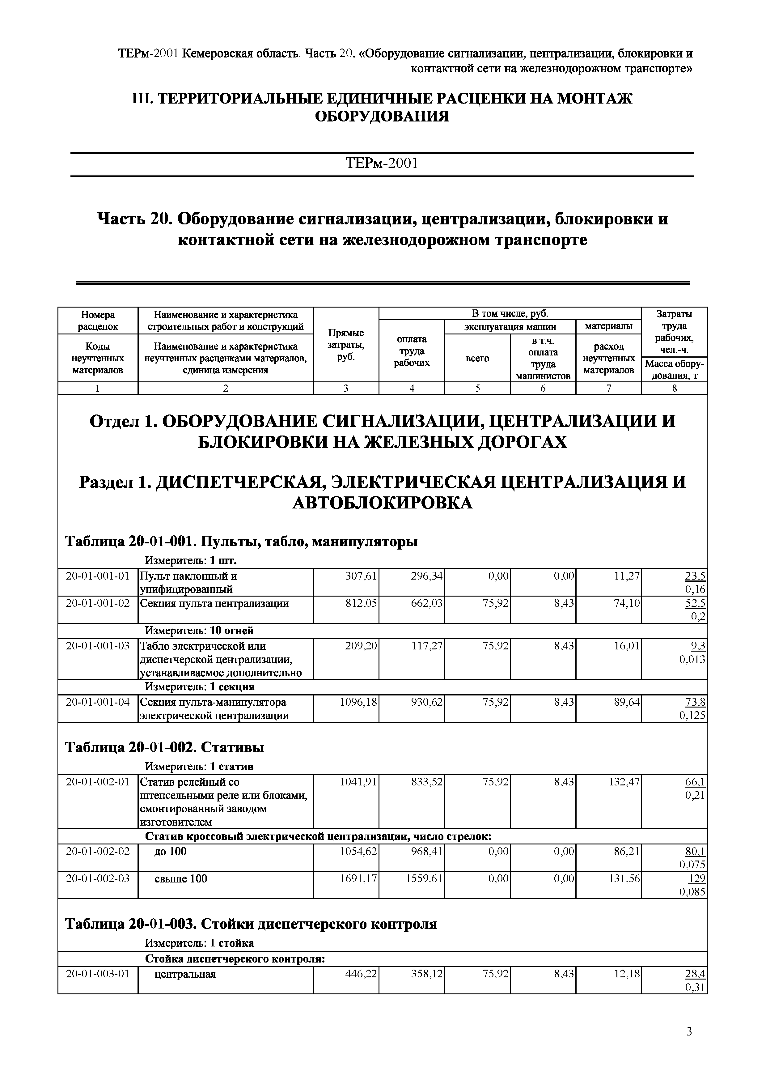 | Название рус.: | Часть 20. Оборудование сигнализации, централизации, блокировки и контактной сети на железнодорожном транспорте. Территориальные единичные расценки на монтаж оборудования |