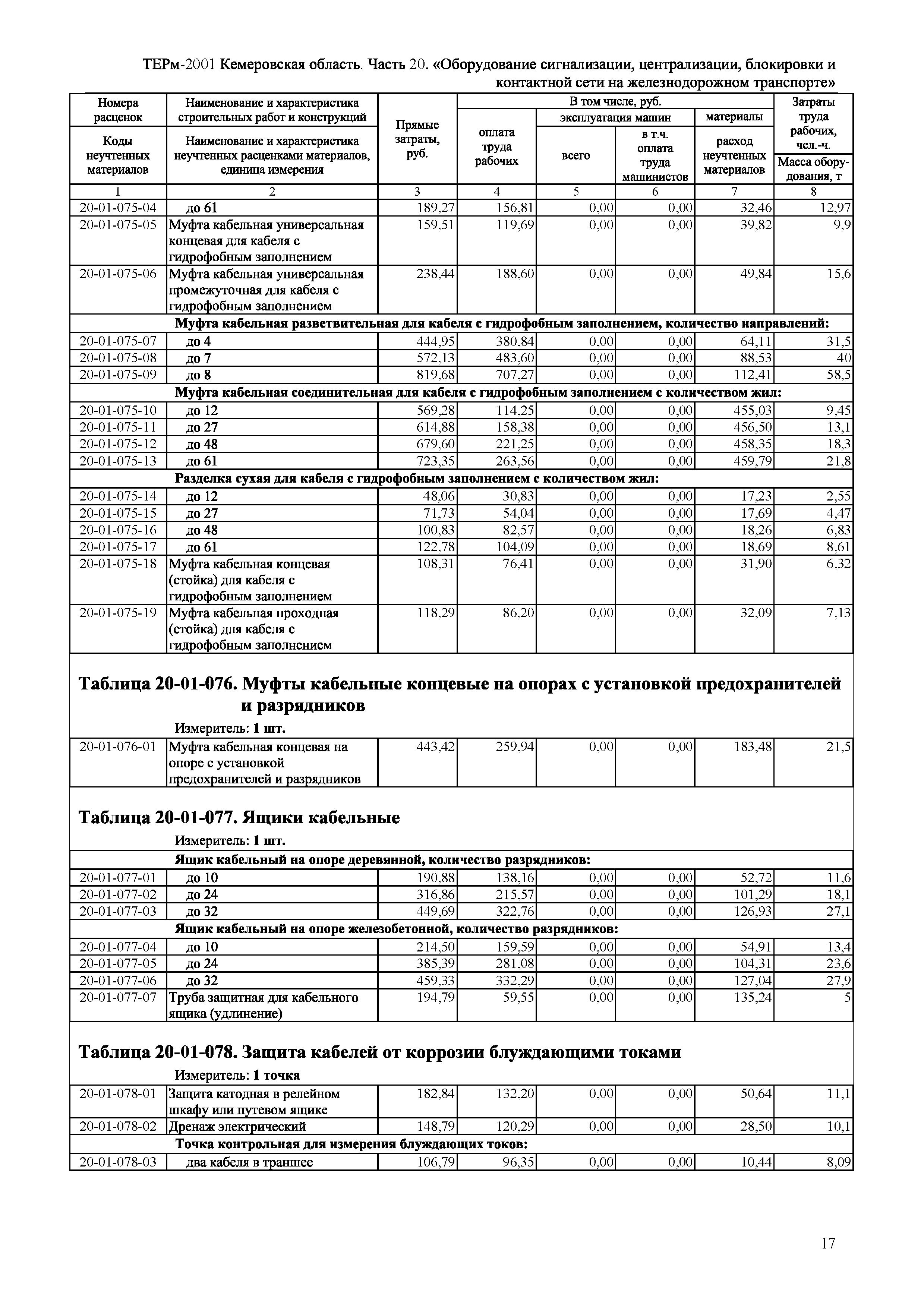 Скачать ТЕРм Кемеровская область 81-03-20-2001 Часть 20. Оборудование сигнализации, централизации, блокировки и контактной сети на железнодорожном транспорте. Территориальные единичные расценки на монтаж оборудованияДата актуализации: 01.01.2021