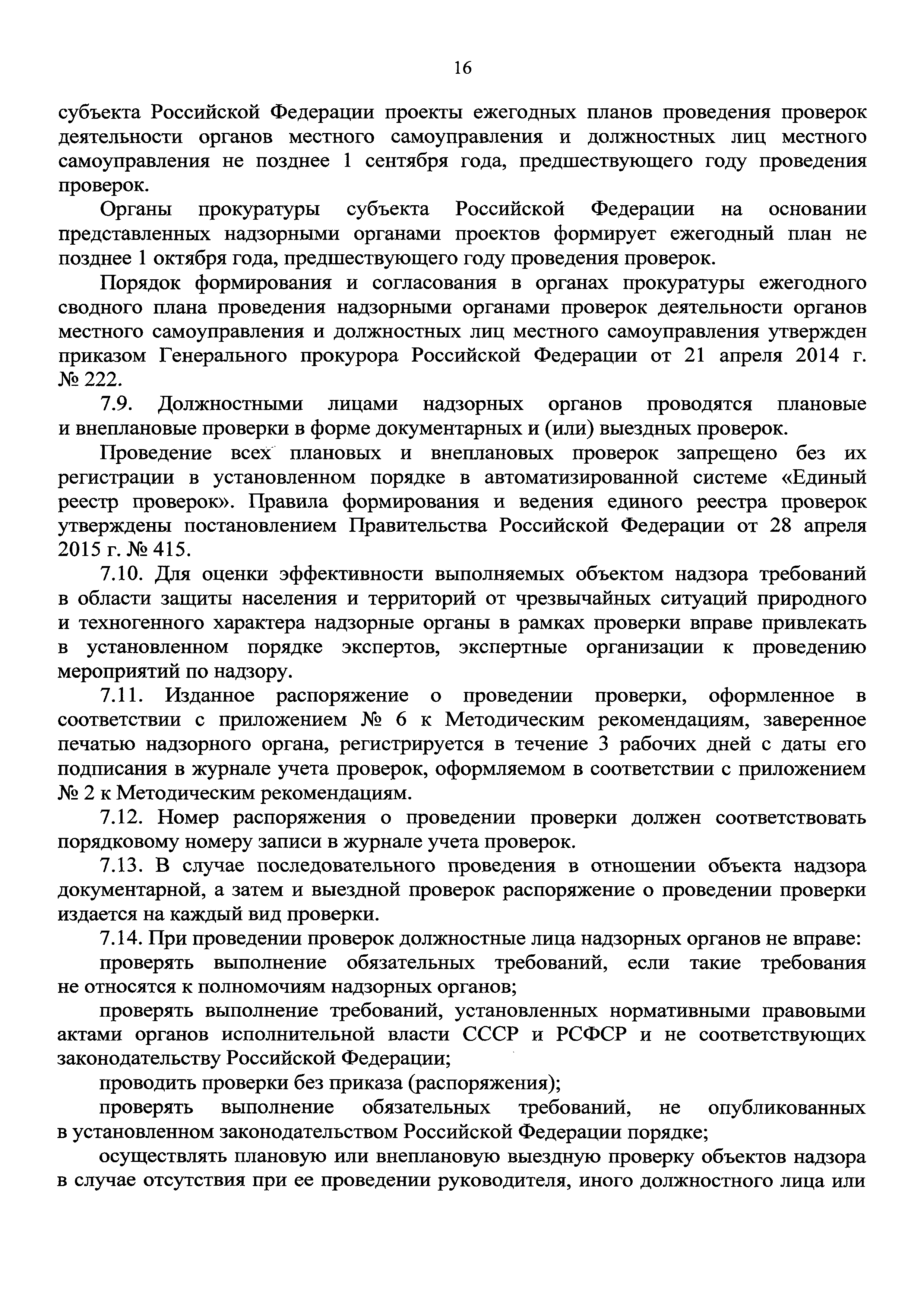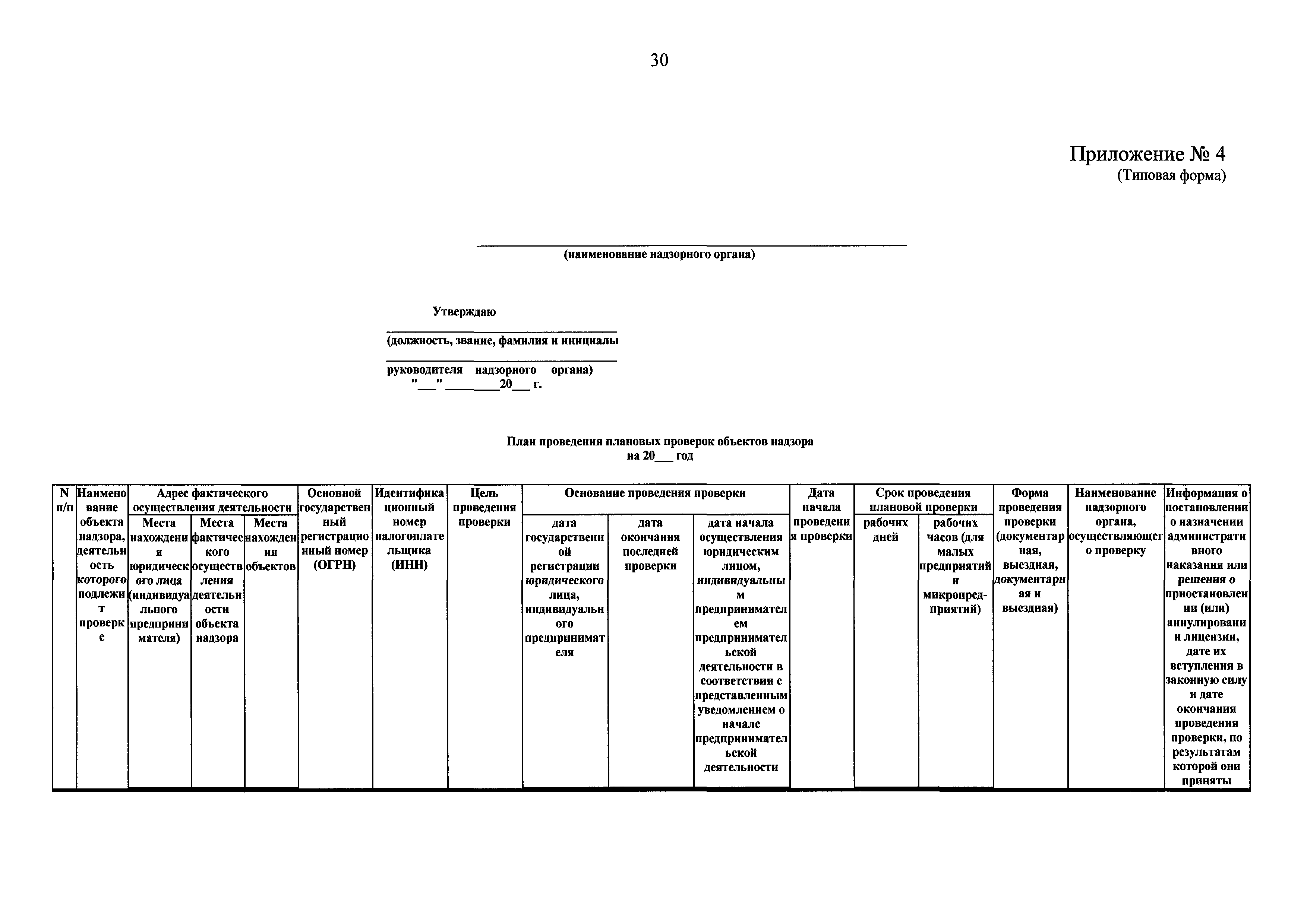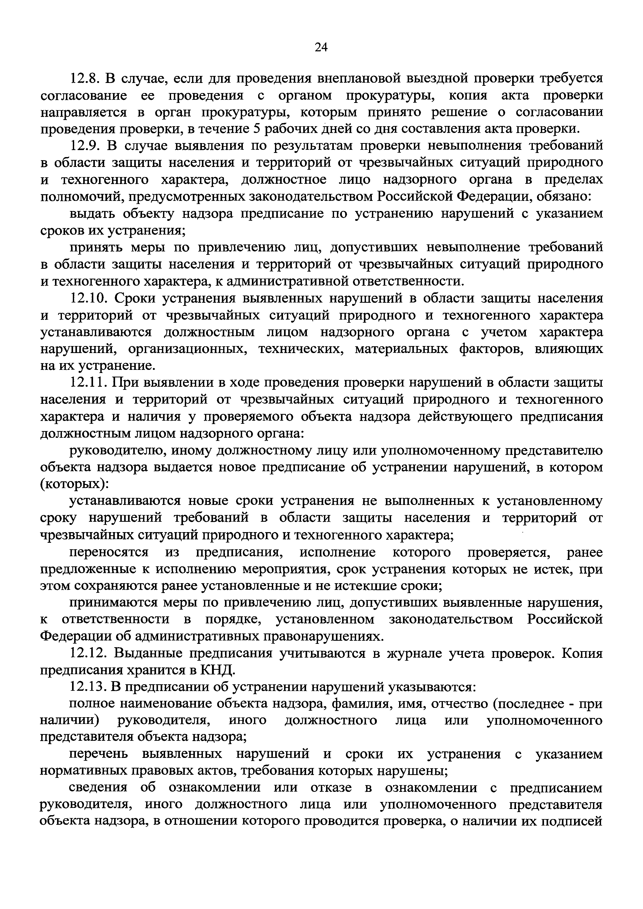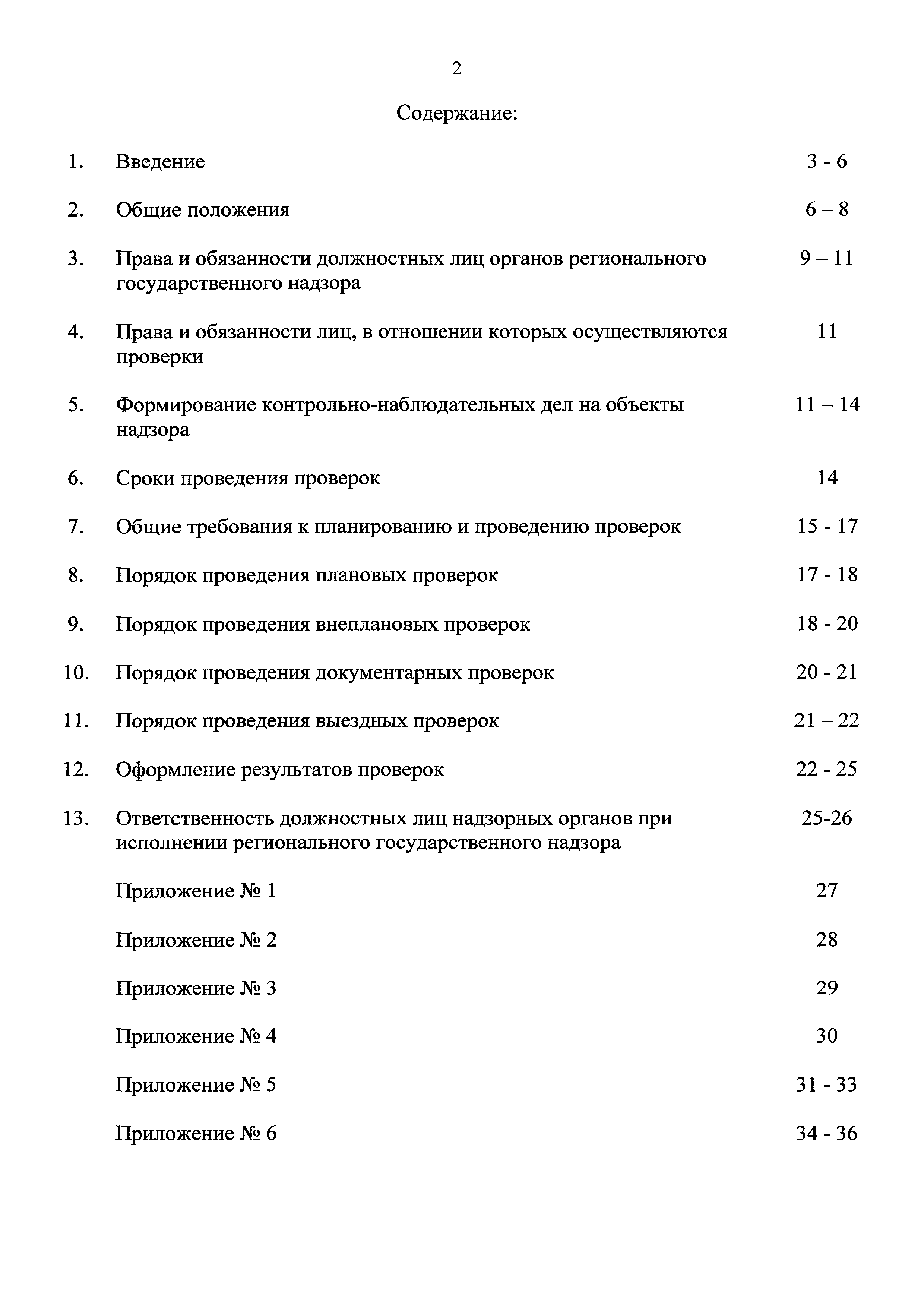 | Оглавление: | 1. Введение 2. Общие положения 3. Права и обязанности должностных лиц органов регионального государственного надзора 4. Права и обязанности лиц, в отношении которых осуществляются проверки 5. Формирование контрольно-наблюдательных дел на объекты надзора 6. Сроки проведения проверок 7. Общие требования к планированию и проведению проверок 8. Порядок проведения плановых проверок 9. Порядок проведения внеплановых проверок 10. Порядок проведения документарных проверок 11. Порядок проведения выездных проверок 12. Оформление результатов проверок 13. Ответственность должностных лиц надзорных органов при исполнении государственной функции Приложение № 1. Журнал учета объектов надзора Приложение № 2. Журнал учета проверок Приложение № 3. Журнал учета дел об административных правонарушениях Приложение № 4. План проведения плановых проверок объектов надзора на 20__ год Приложение № 5. Акт проверки органом государственного контроля (надзора), органом муниципального контроля юридического лица, индивидуального предпринимателя Приложение № 6. Распоряжение (приказ) |