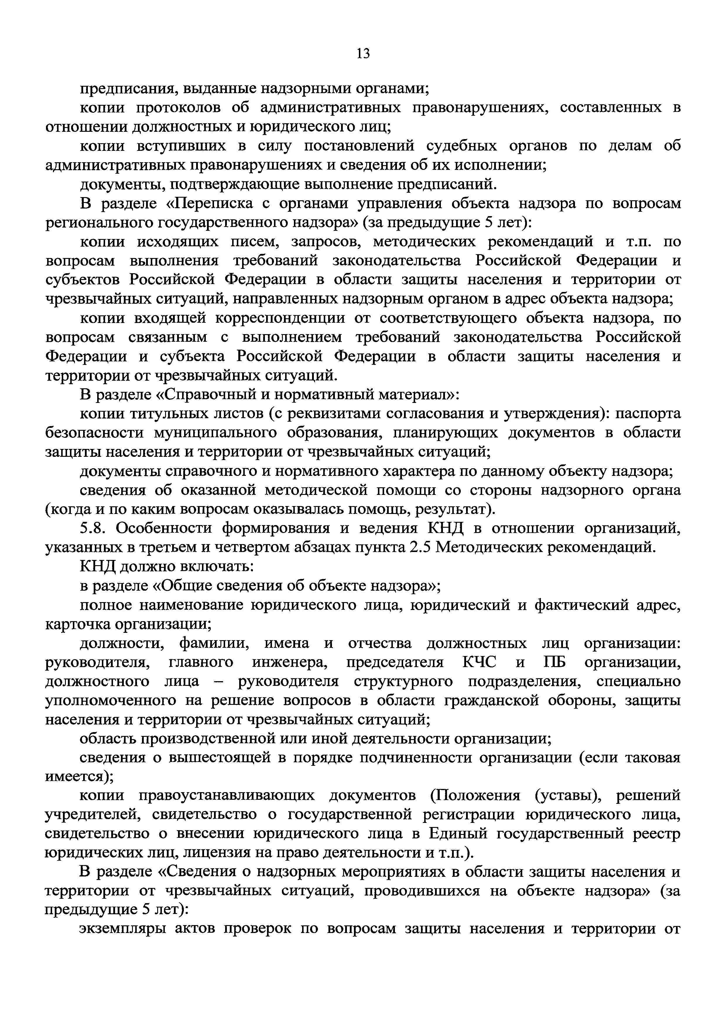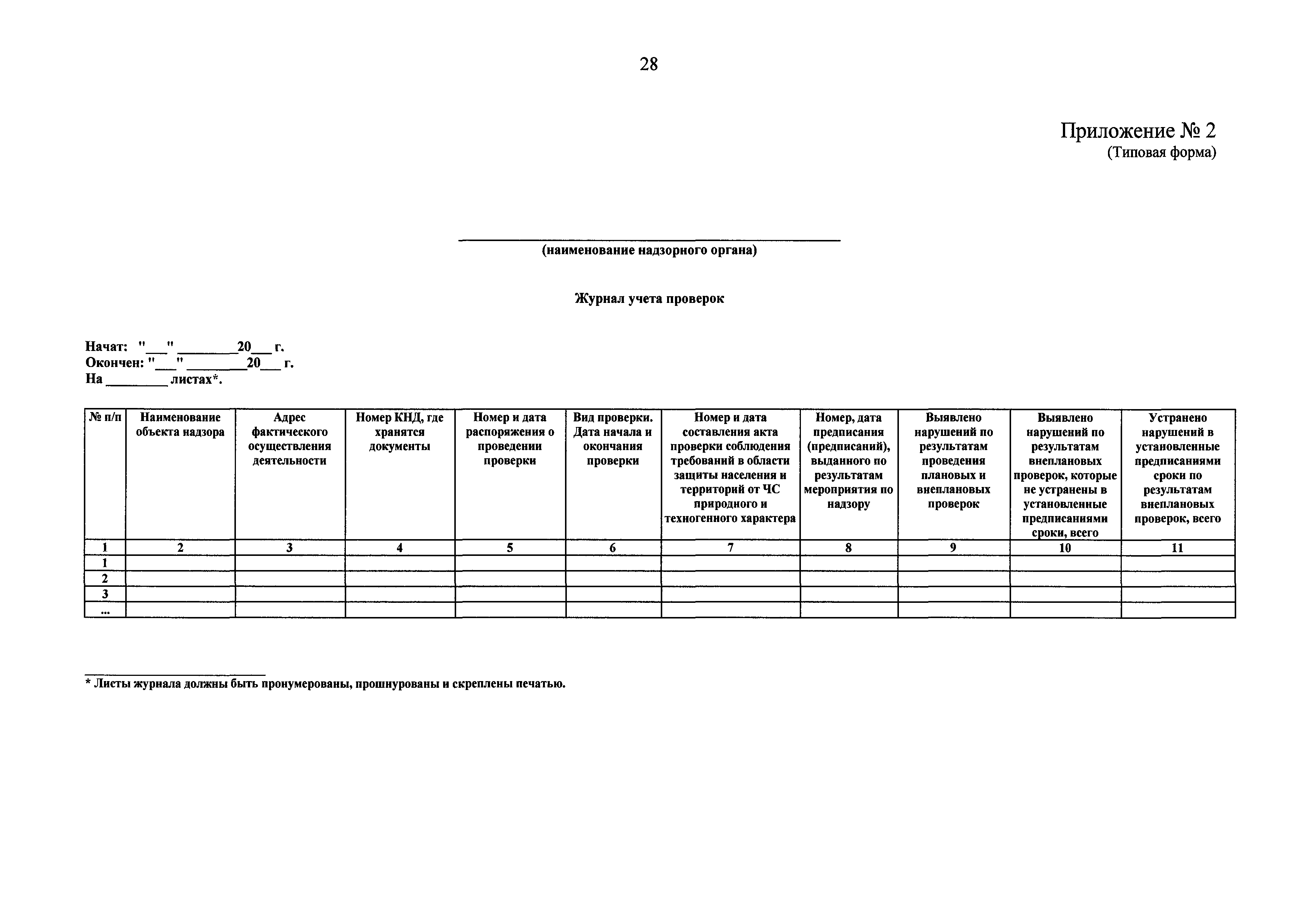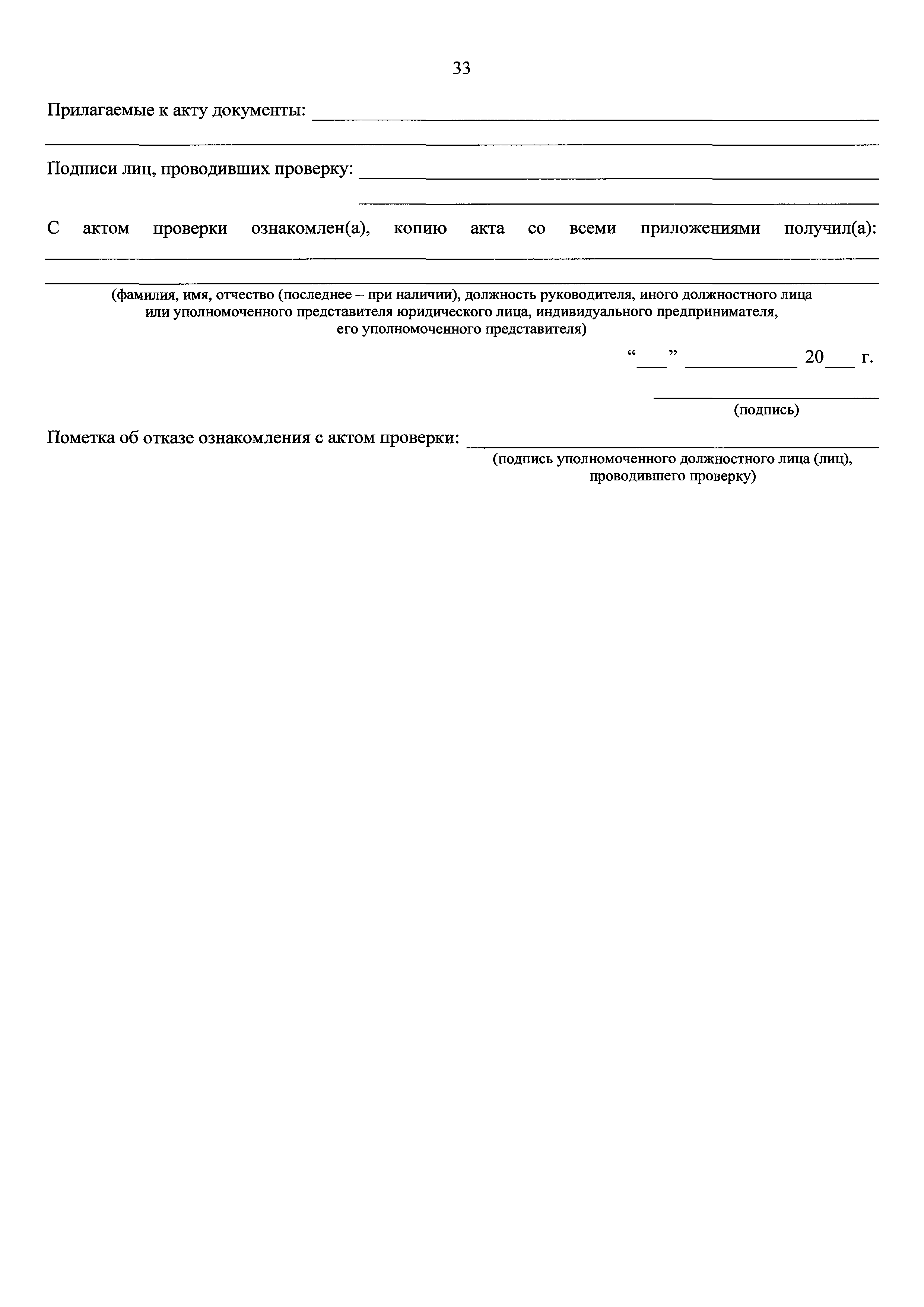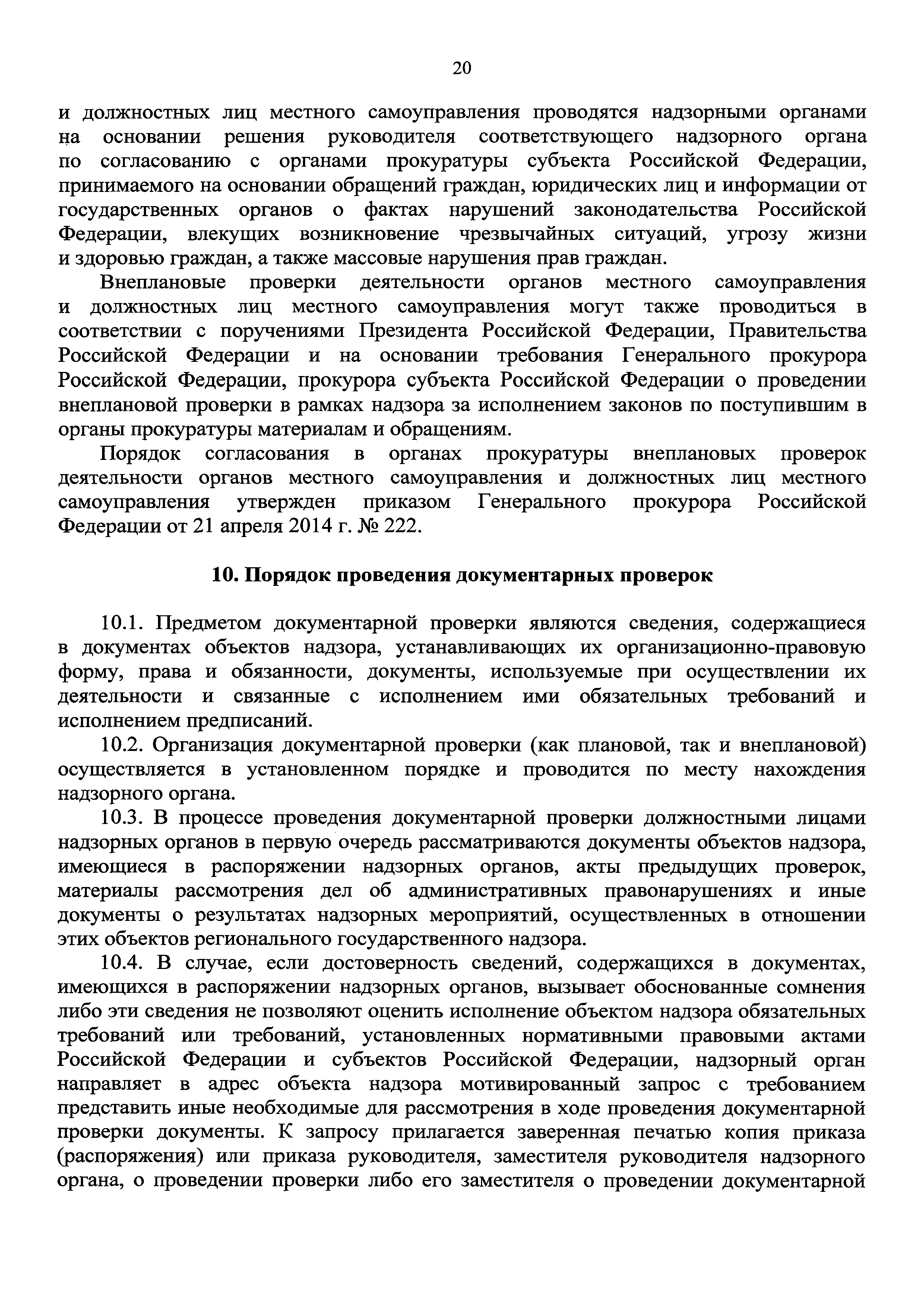 | Оглавление: | 1. Введение 2. Общие положения 3. Права и обязанности должностных лиц органов регионального государственного надзора 4. Права и обязанности лиц, в отношении которых осуществляются проверки 5. Формирование контрольно-наблюдательных дел на объекты надзора 6. Сроки проведения проверок 7. Общие требования к планированию и проведению проверок 8. Порядок проведения плановых проверок 9. Порядок проведения внеплановых проверок 10. Порядок проведения документарных проверок 11. Порядок проведения выездных проверок 12. Оформление результатов проверок 13. Ответственность должностных лиц надзорных органов при исполнении государственной функции Приложение № 1. Журнал учета объектов надзора Приложение № 2. Журнал учета проверок Приложение № 3. Журнал учета дел об административных правонарушениях Приложение № 4. План проведения плановых проверок объектов надзора на 20__ год Приложение № 5. Акт проверки органом государственного контроля (надзора), органом муниципального контроля юридического лица, индивидуального предпринимателя Приложение № 6. Распоряжение (приказ) |