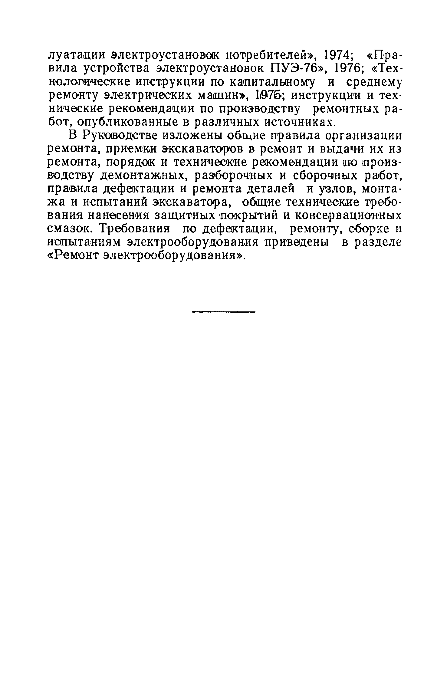 | Область применения: | Руководство устанавливает общие технические требования на ремонт, поэтому при производстве капитального ремонта необходимо пользоваться еще н руководствами по капитальному ремонту конкретных моделей экскаваторов. В Руководстве изложены общие правила организации ремонта, приемки экскаваторов в ремонт и выдачи их из ремонта, порядок и технические рекомендации ю производству демонтажных, разборочных и сборочных работ, правила дефектации и ремонта деталей и узлов, монтажа и испытаний экскаватора, общие технические требования нанесения защитных покрытий и консервационных смазок. Требования по дефектации, ремонту, сборке и испытаниям электрооборудования приведены в разделе «Ремонт электрооборудования». |