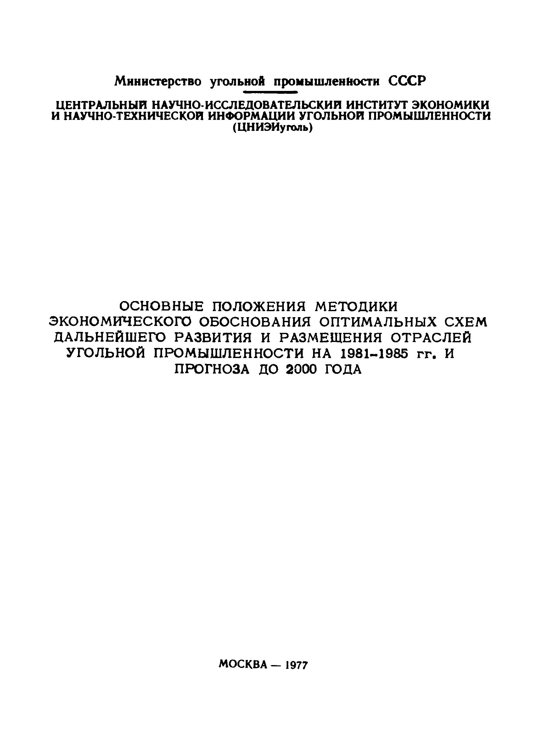 | Название рус.: | Основные положения методики экономического обоснования оптимальных схем дальнейшего развития и размещения отраслей угольной промышленности на 1981 - 1985 гг. и прогноза до 2000 года |