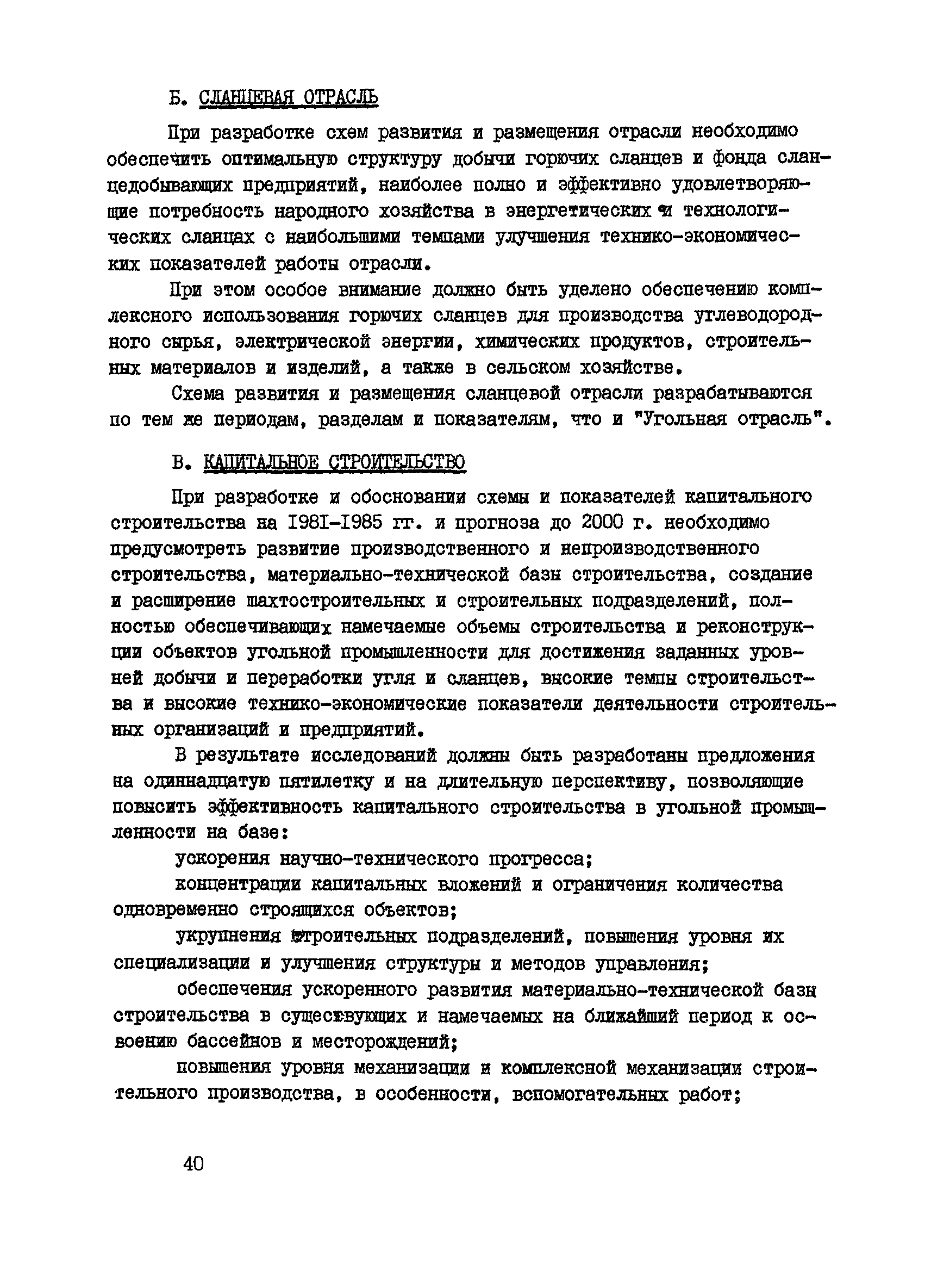 | Оглавление: | Общие указания А. Угольная отрасль Б. Сланцевая отрасль В. Капитальное строительство Г. Угольное машиностроение Д. Порядок проведения научных исследований по экономическому обоснованию оптимальных схем развития отраслей |